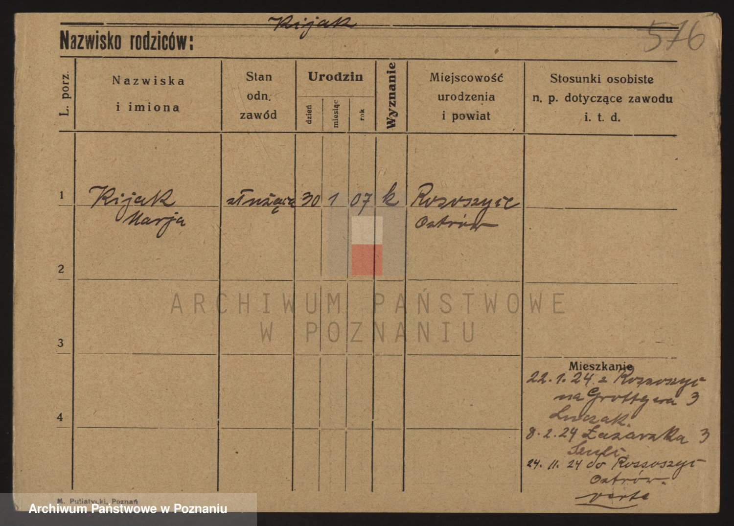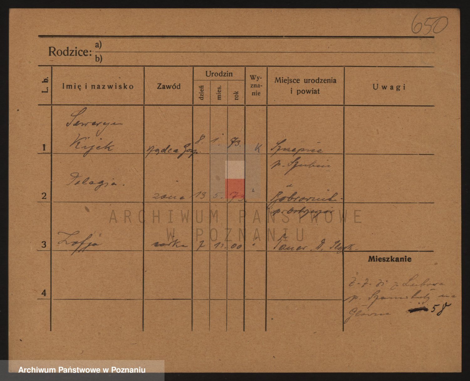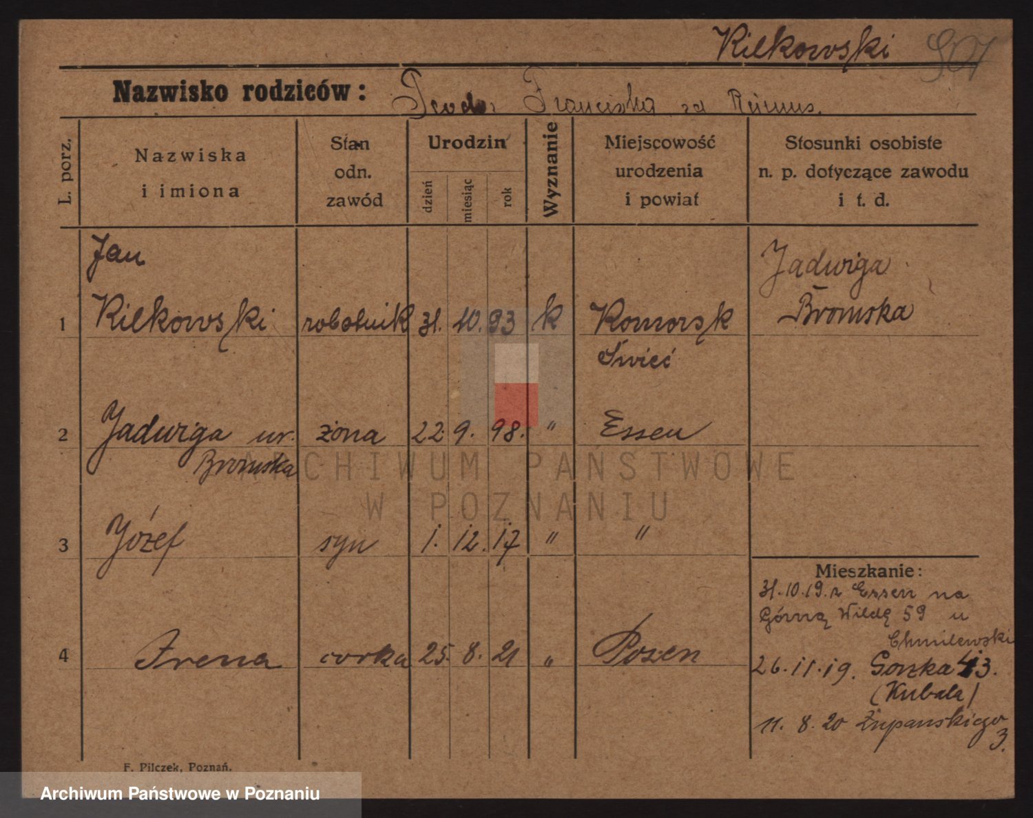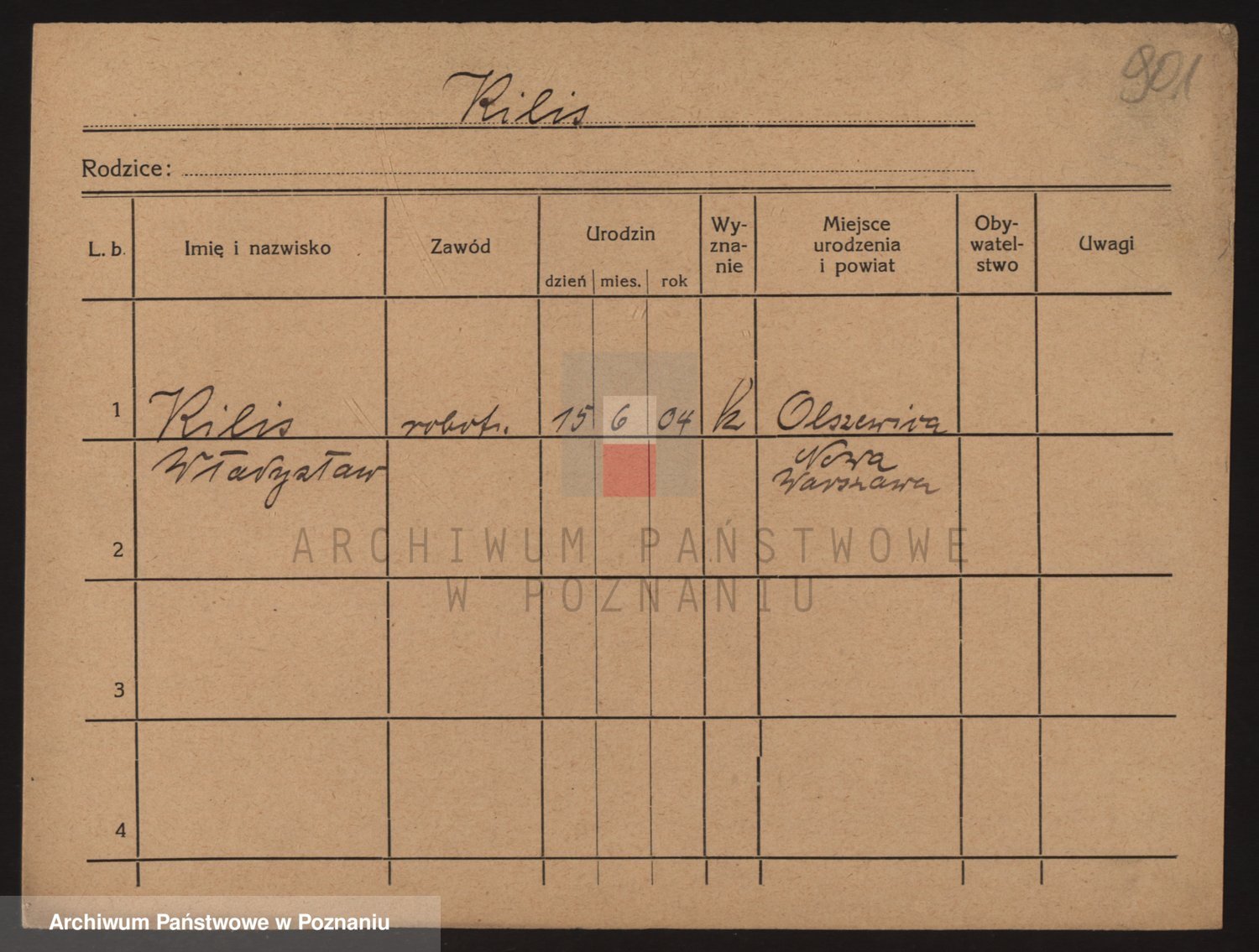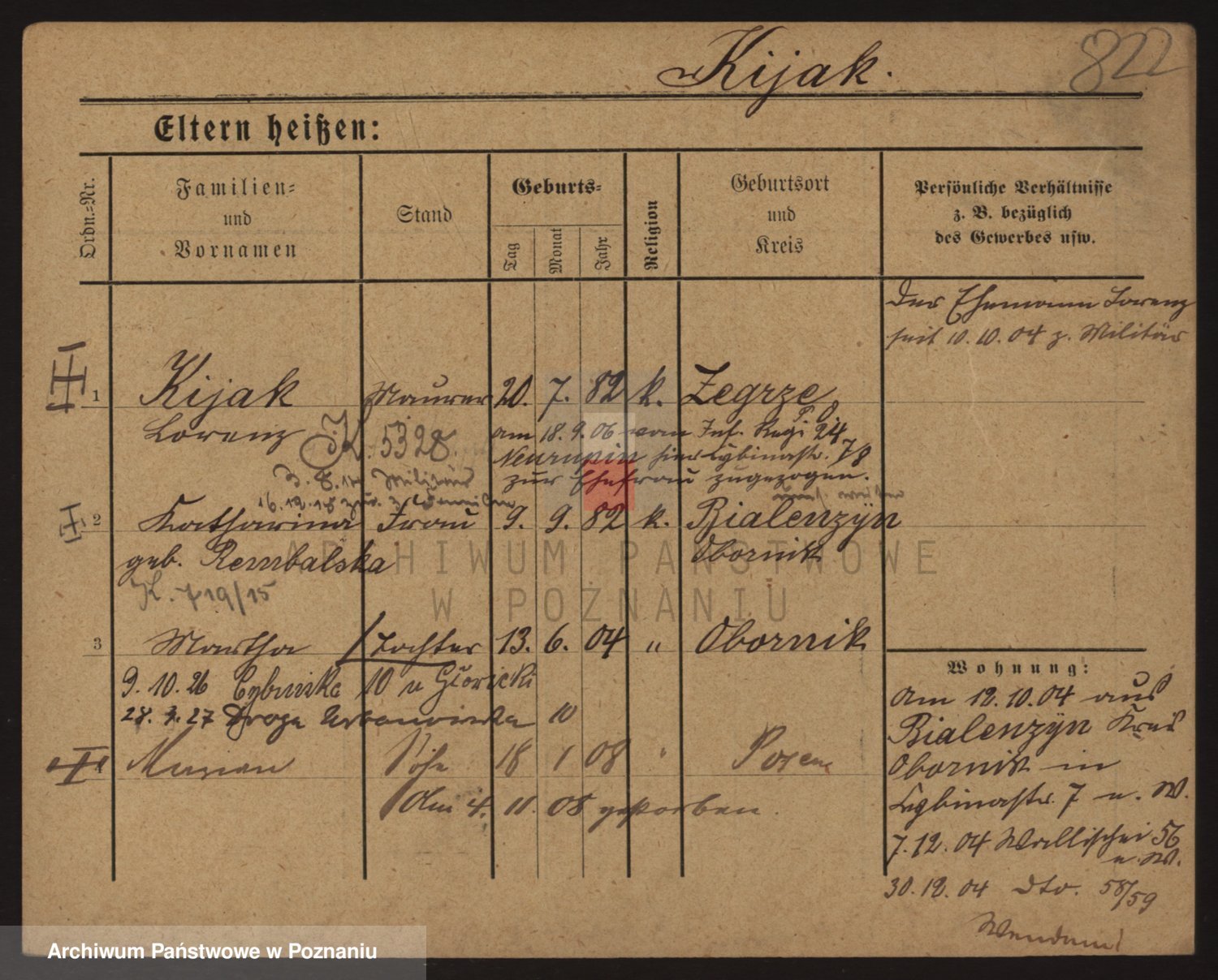 Podgląd karty osobowej dostępny jest po kliknięciu na nazwisko lub ikonkę karty. Można dokonywać powiększenia (ikony na górze) lub przechodzić między kolejnymi skanami (strzałki po bokach).
