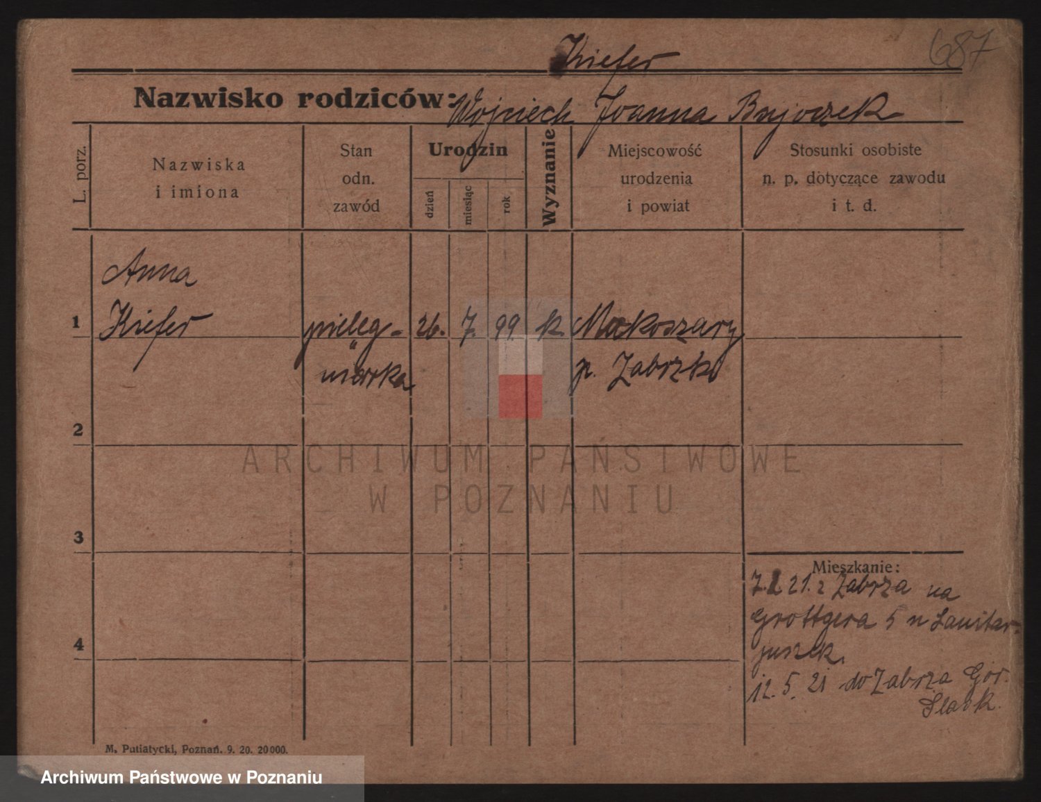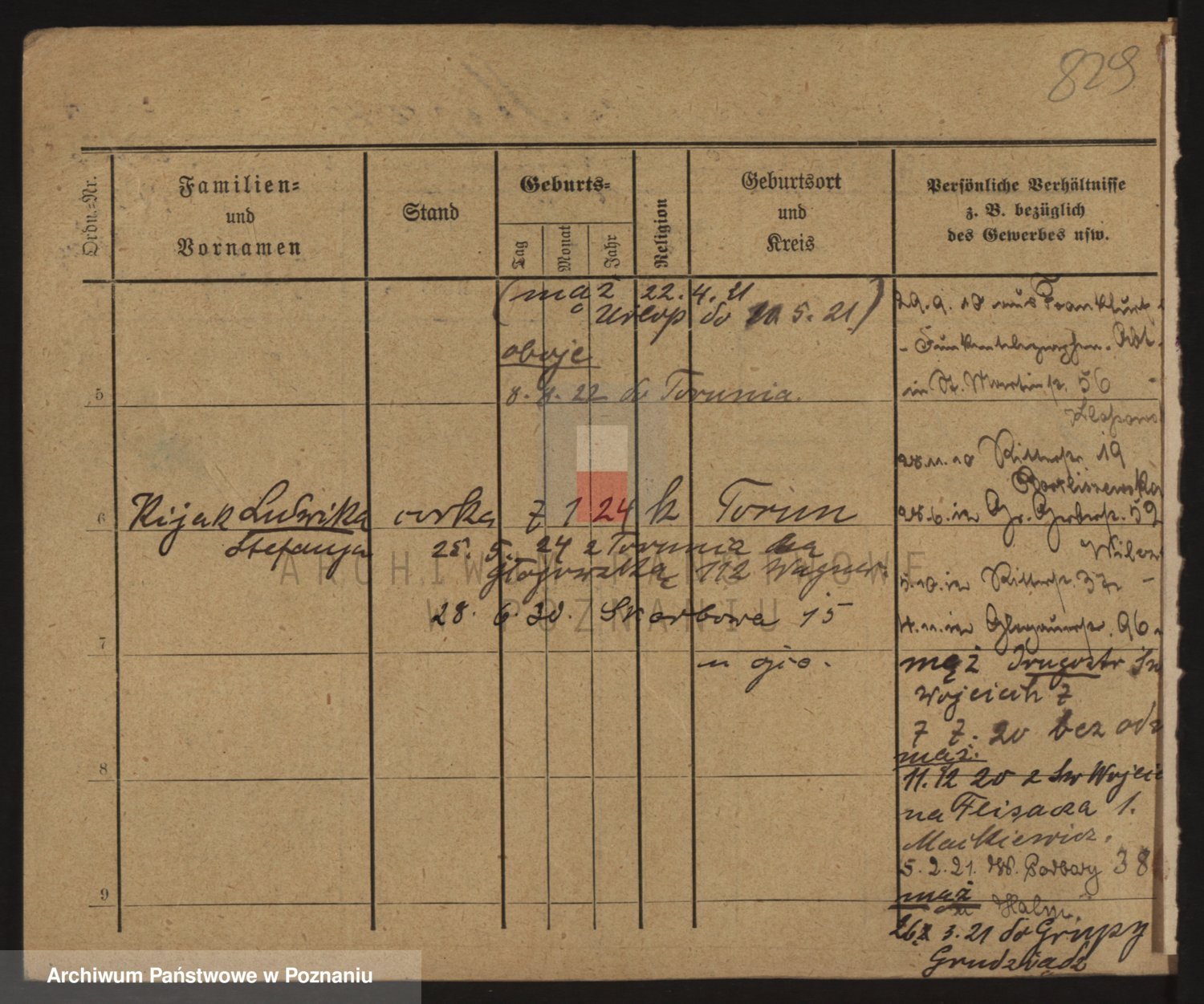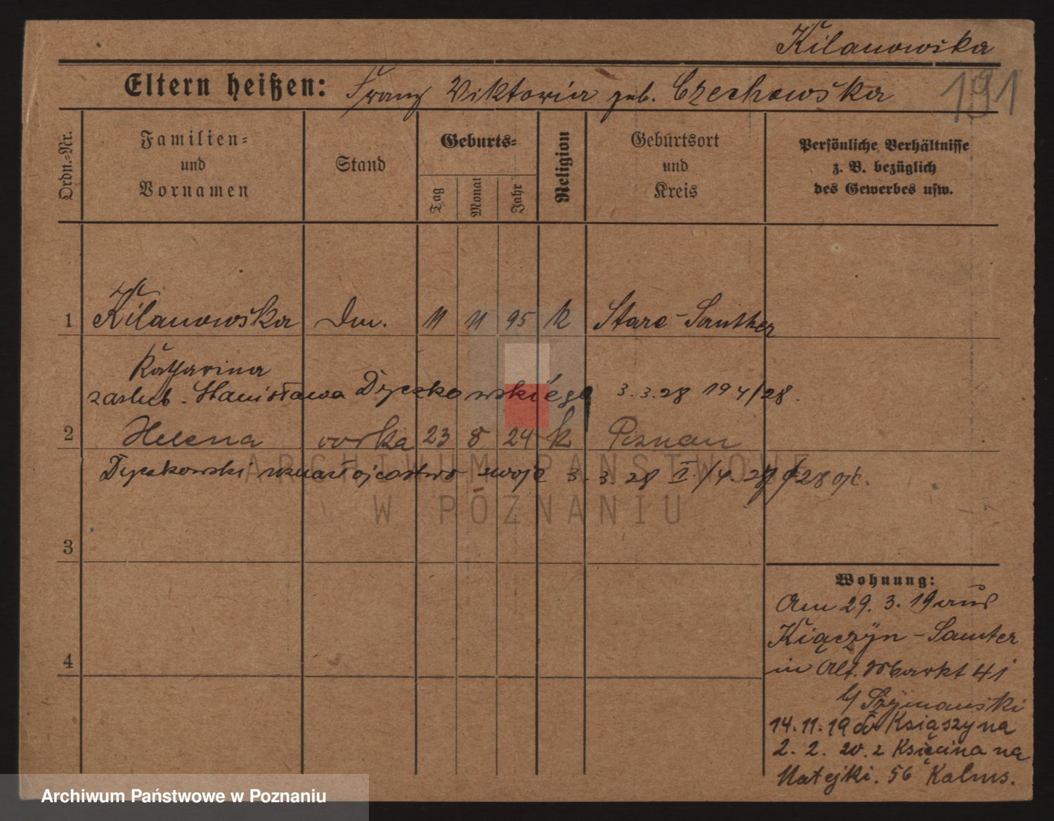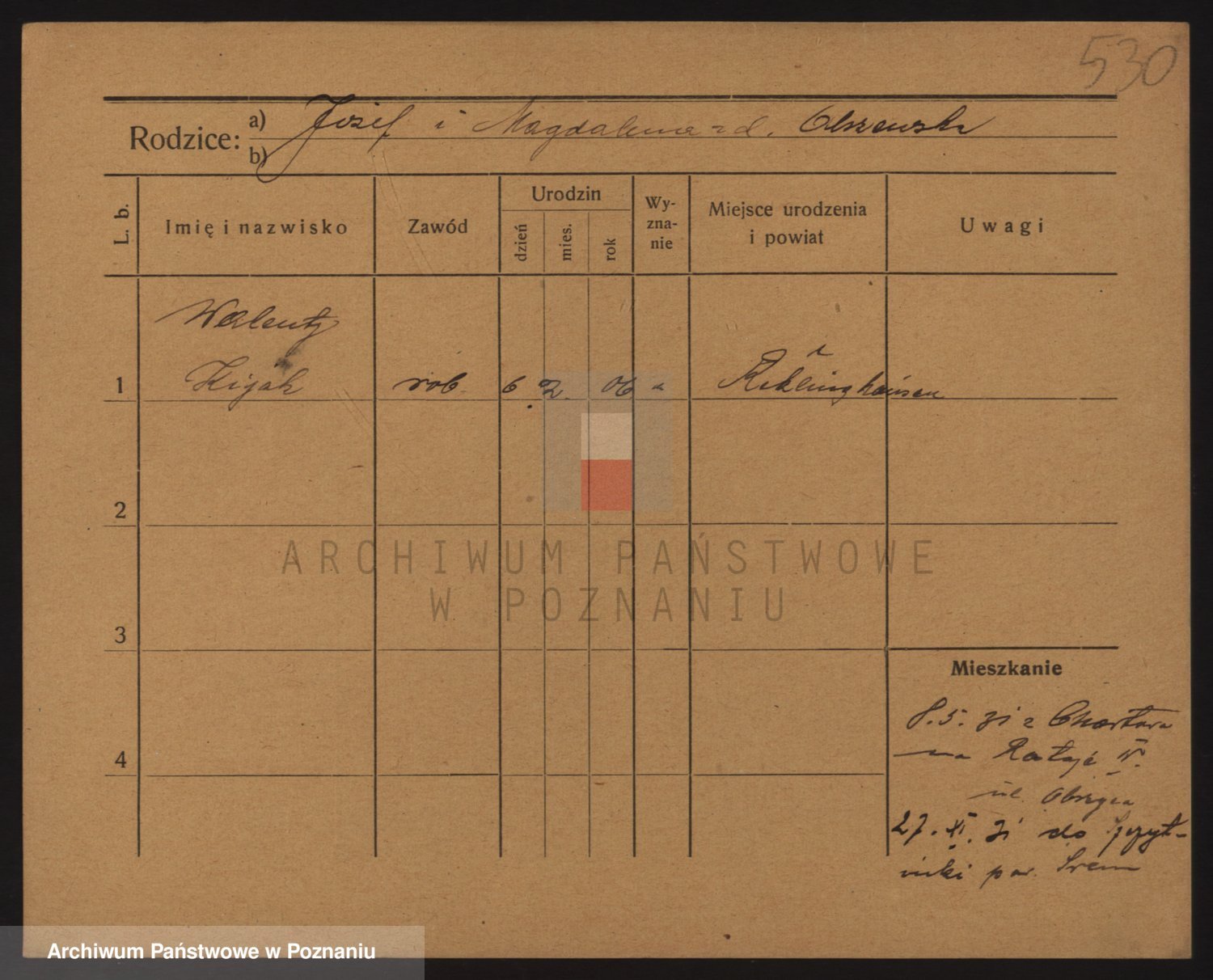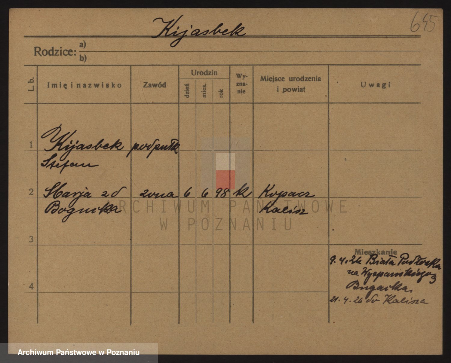 Podgląd karty osobowej dostępny jest po kliknięciu na nazwisko lub ikonkę karty. Można dokonywać powiększenia (ikony na górze) lub przechodzić między kolejnymi skanami (strzałki po bokach).