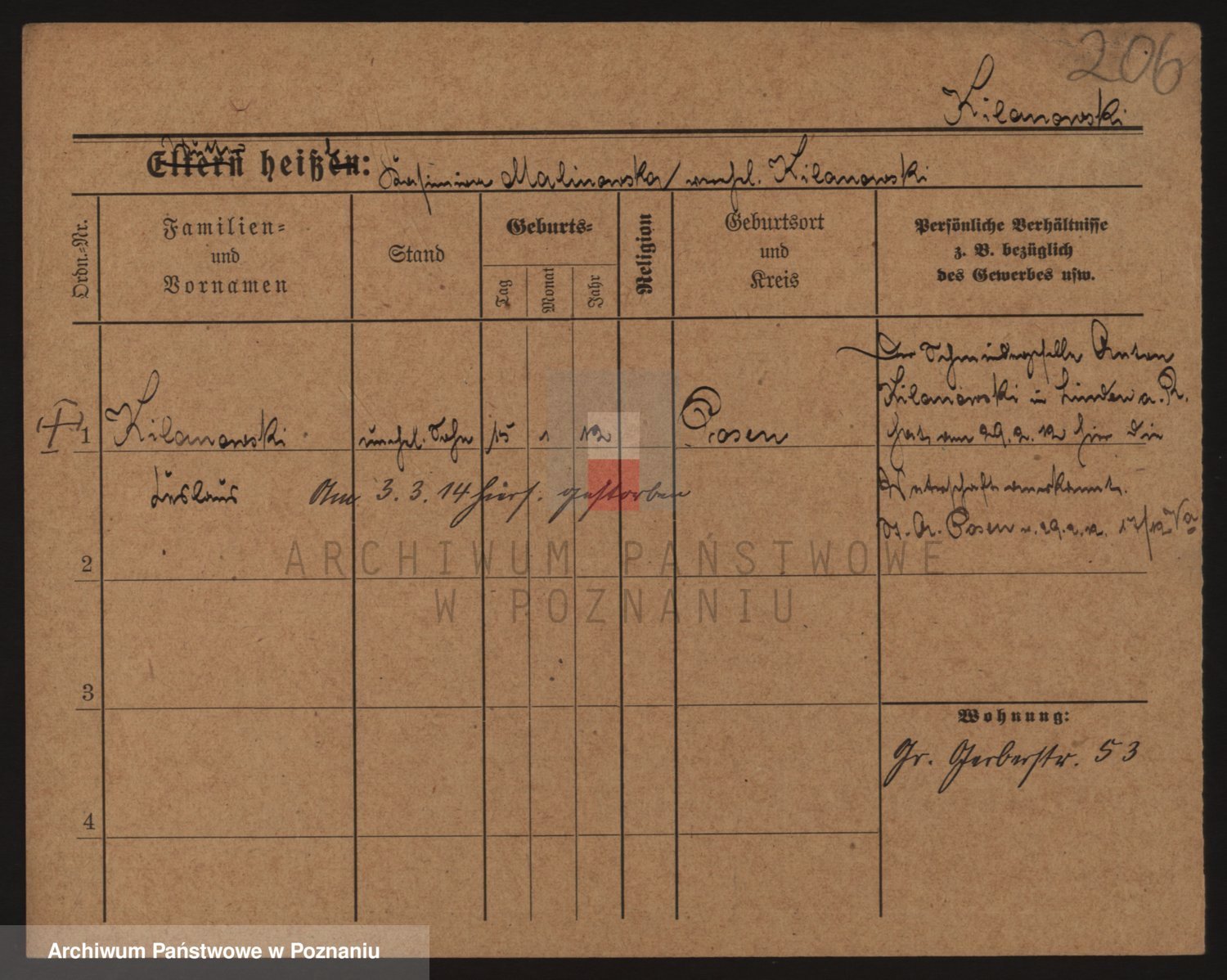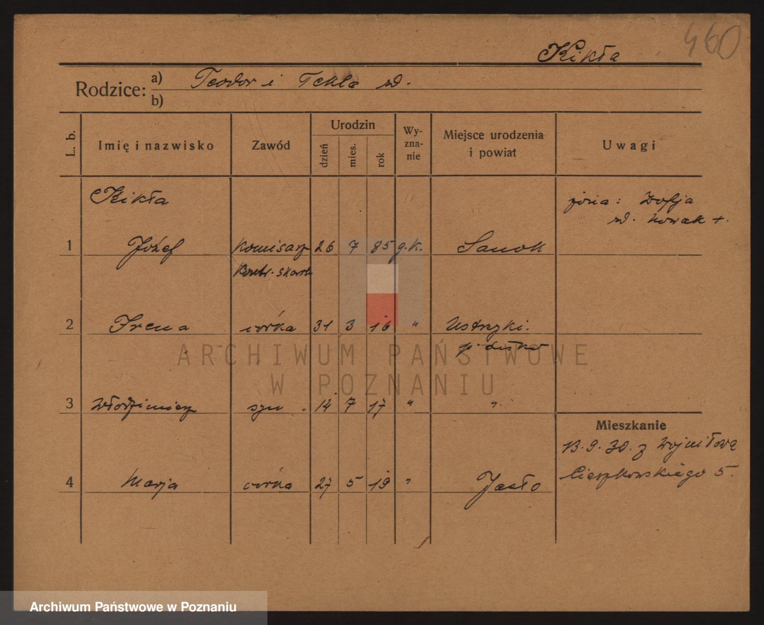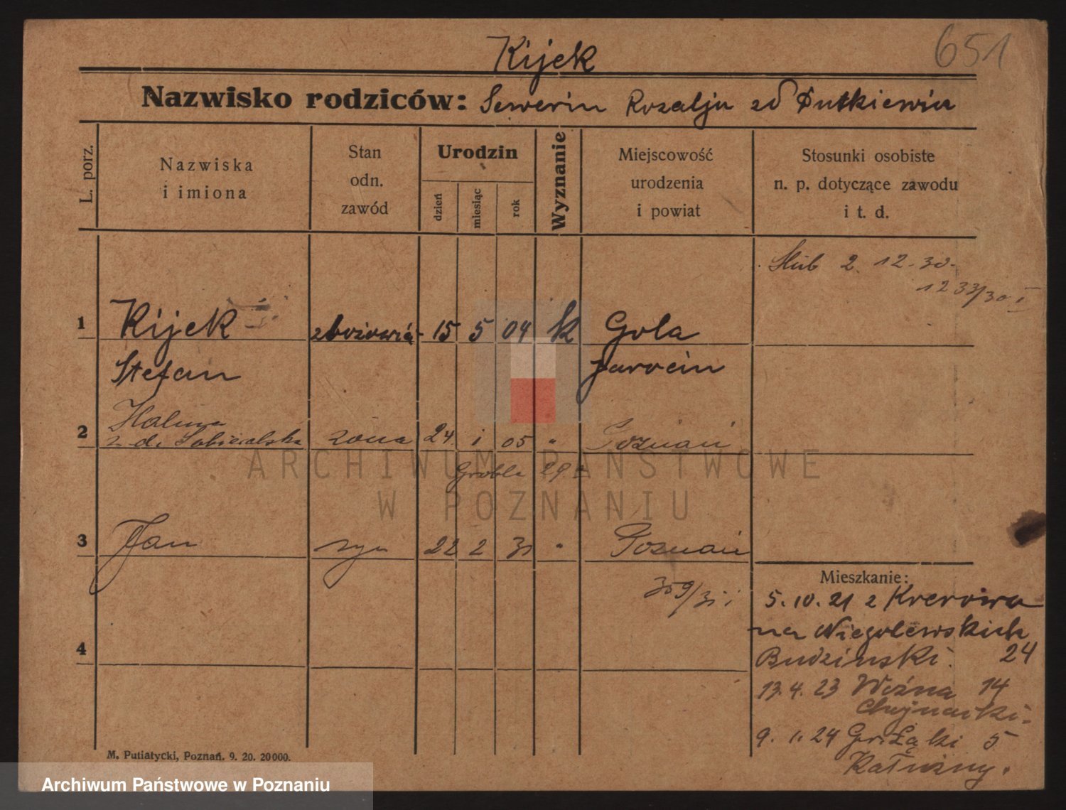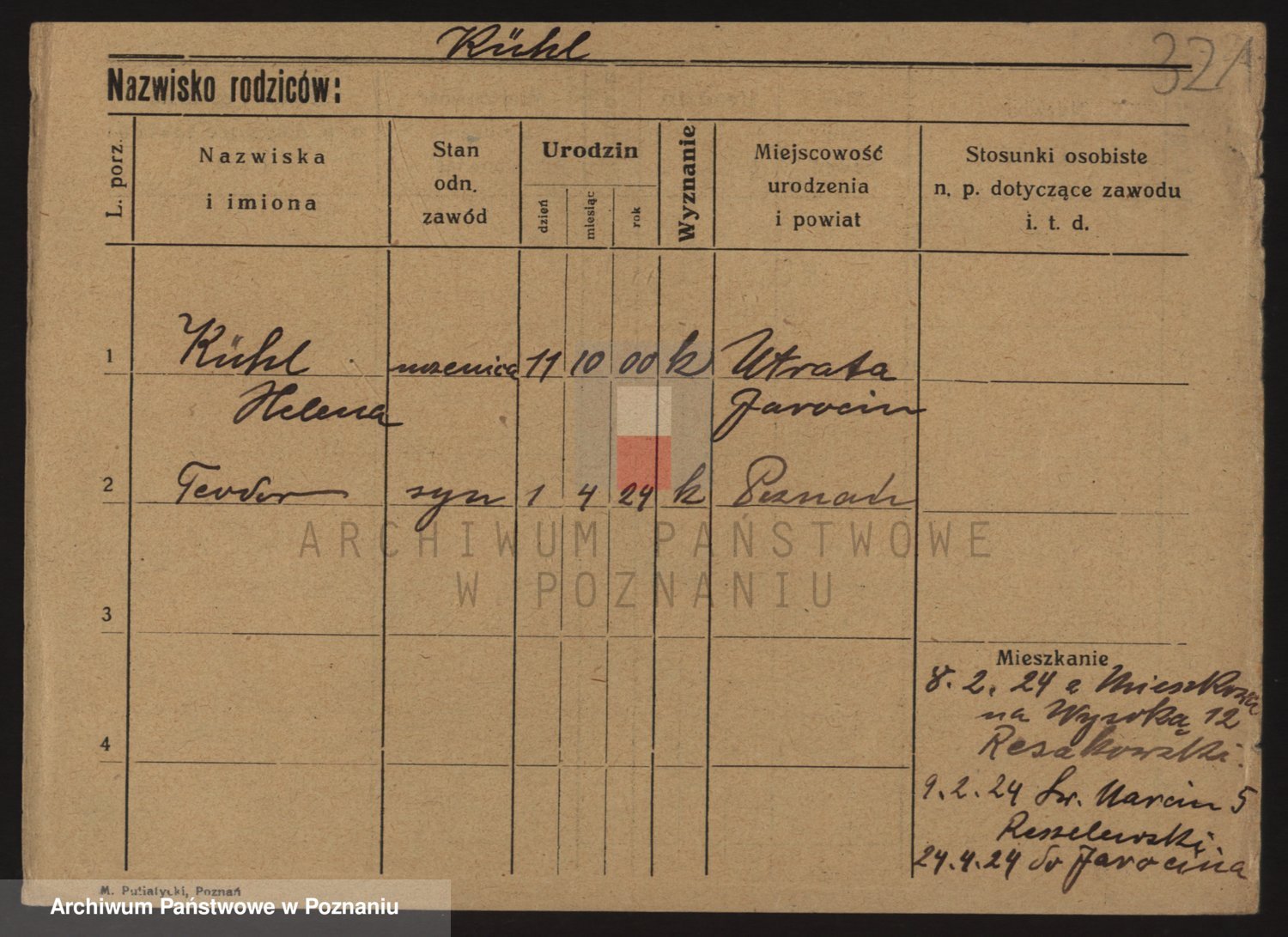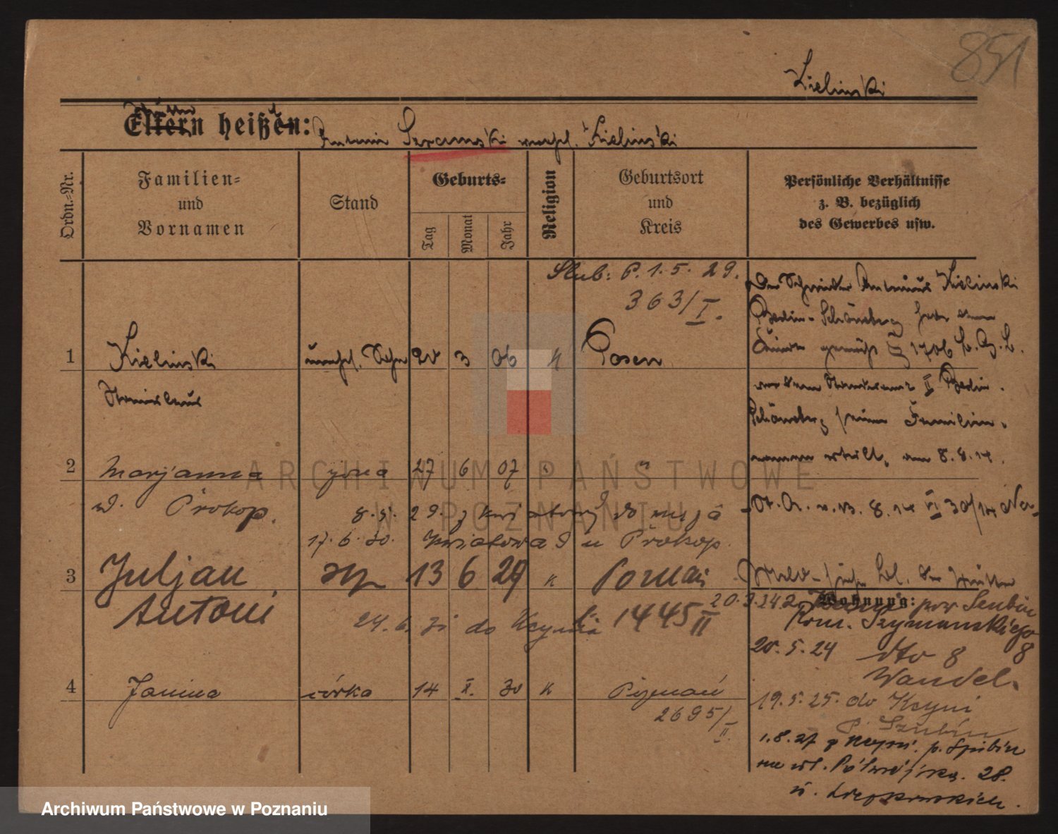 Podgląd karty osobowej dostępny jest po kliknięciu na nazwisko lub ikonkę karty. Można dokonywać powiększenia (ikony na górze) lub przechodzić między kolejnymi skanami (strzałki po bokach).