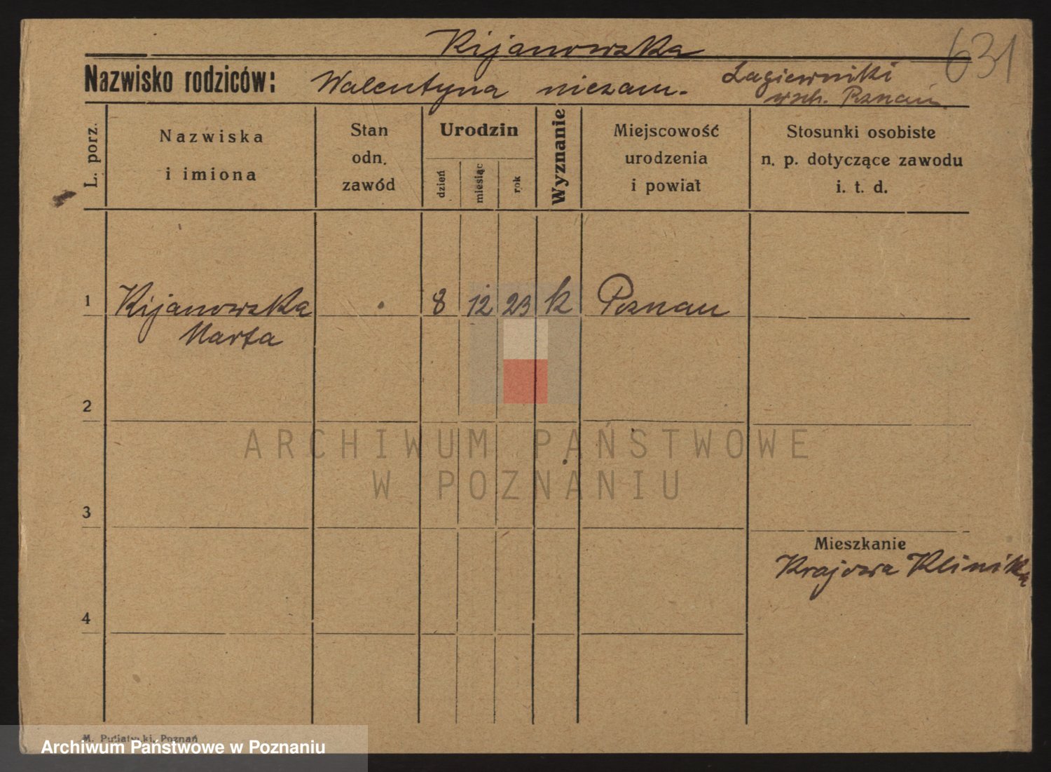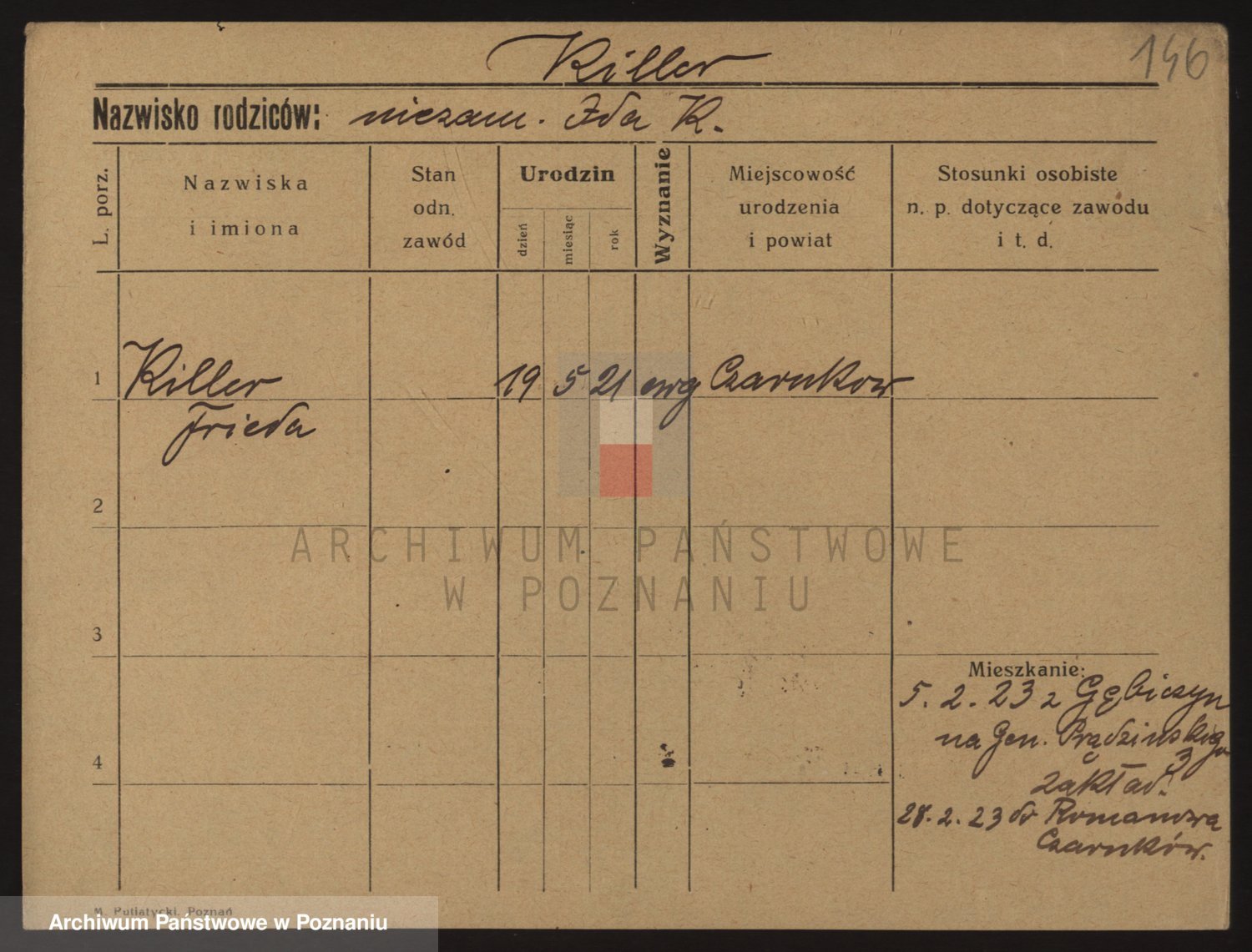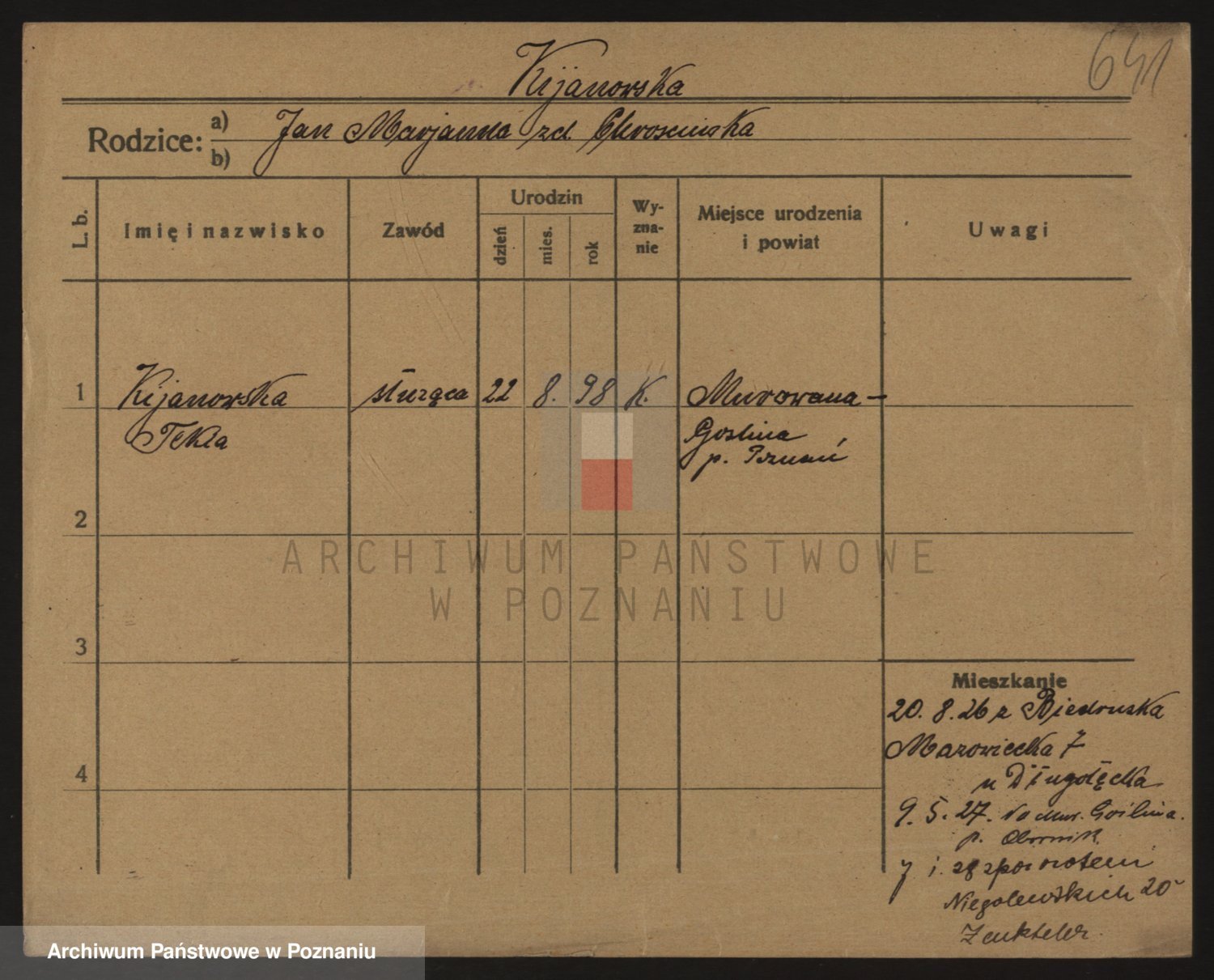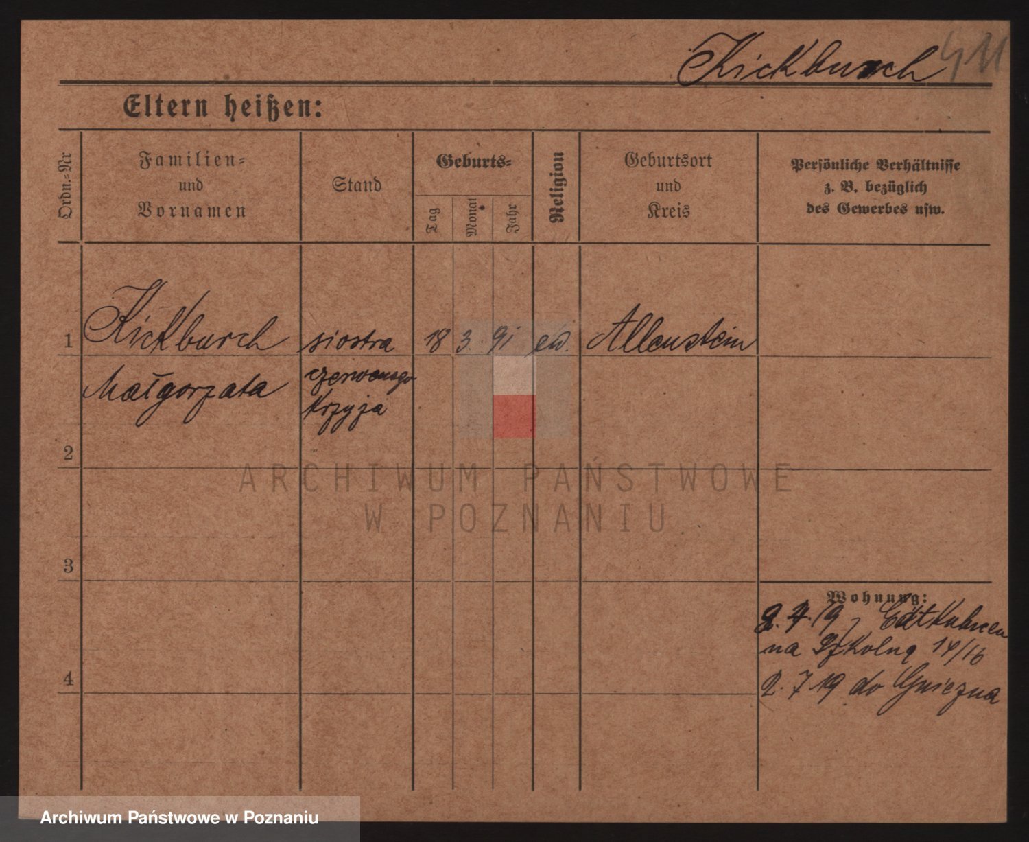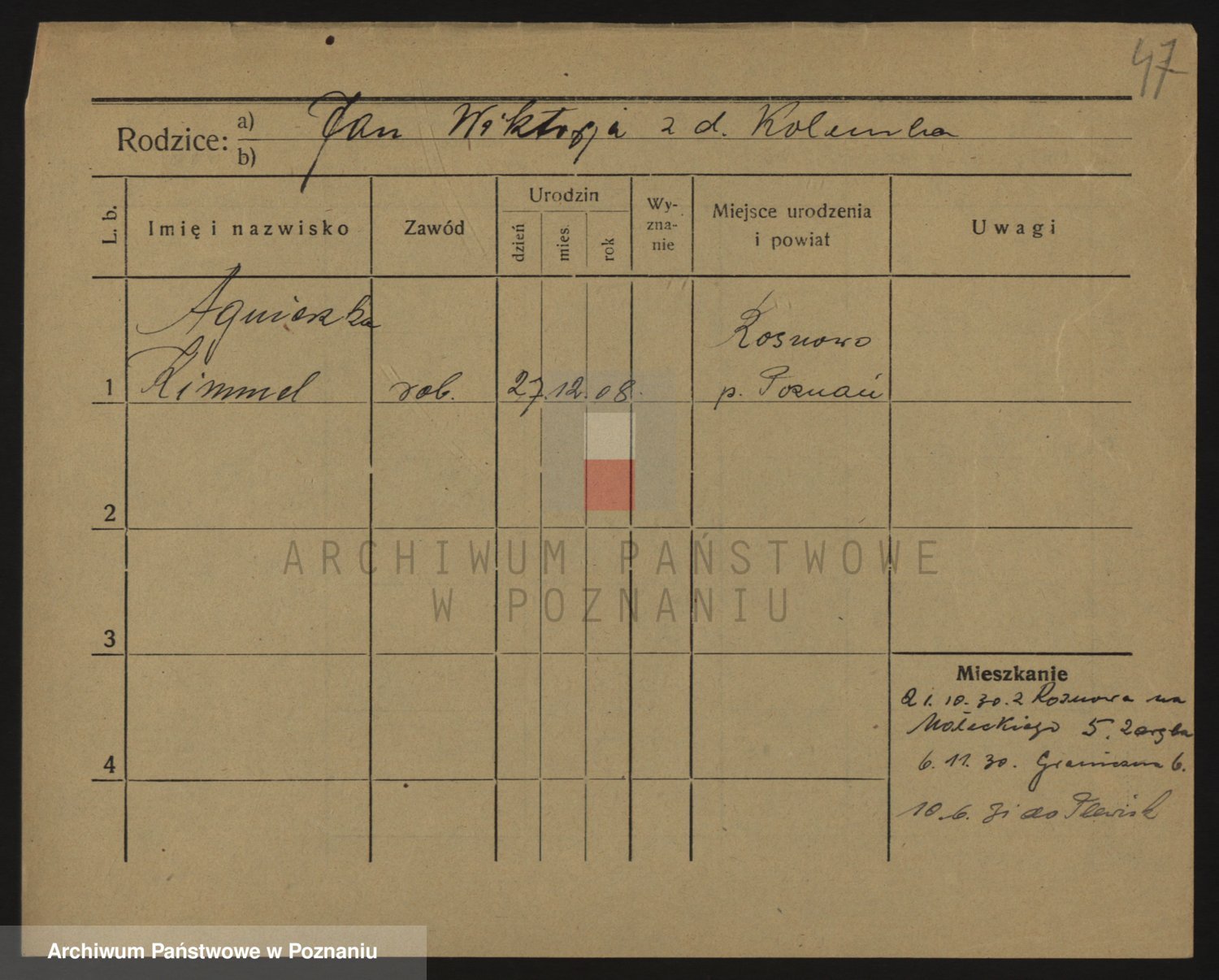 Podgląd karty osobowej dostępny jest po kliknięciu na nazwisko lub ikonkę karty. Można dokonywać powiększenia (ikony na górze) lub przechodzić między kolejnymi skanami (strzałki po bokach).