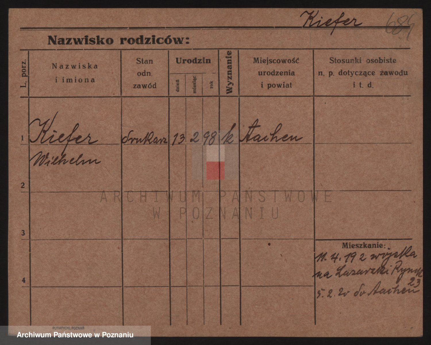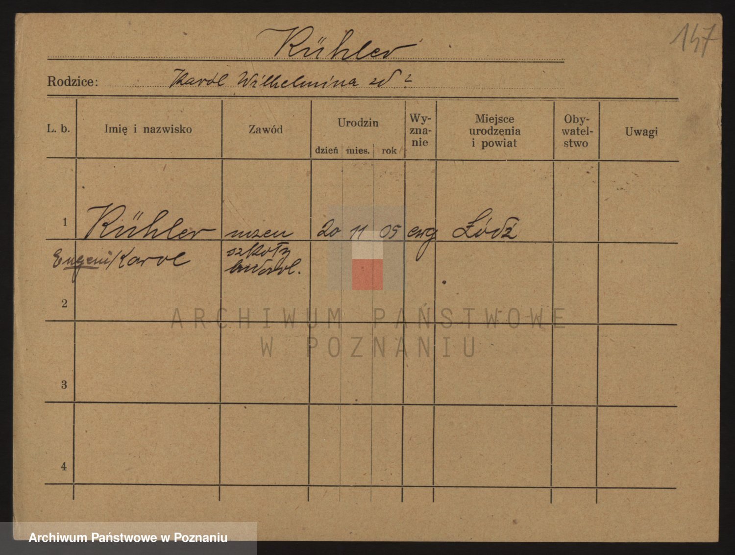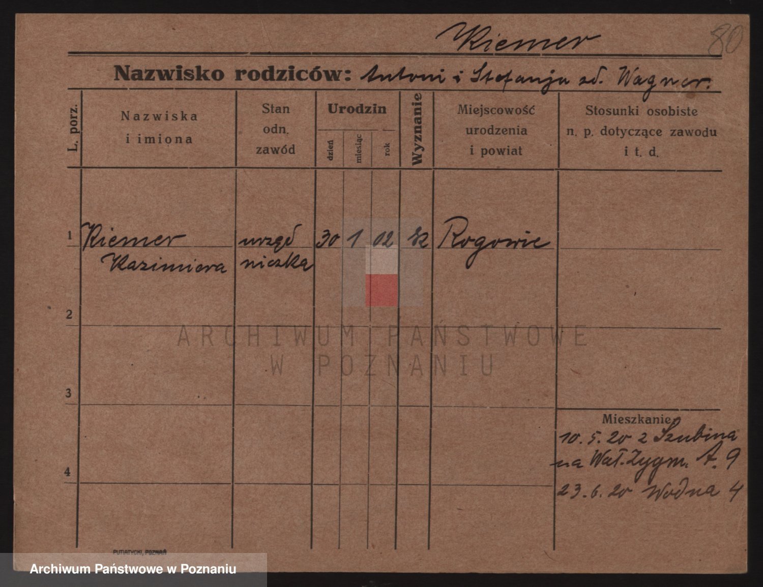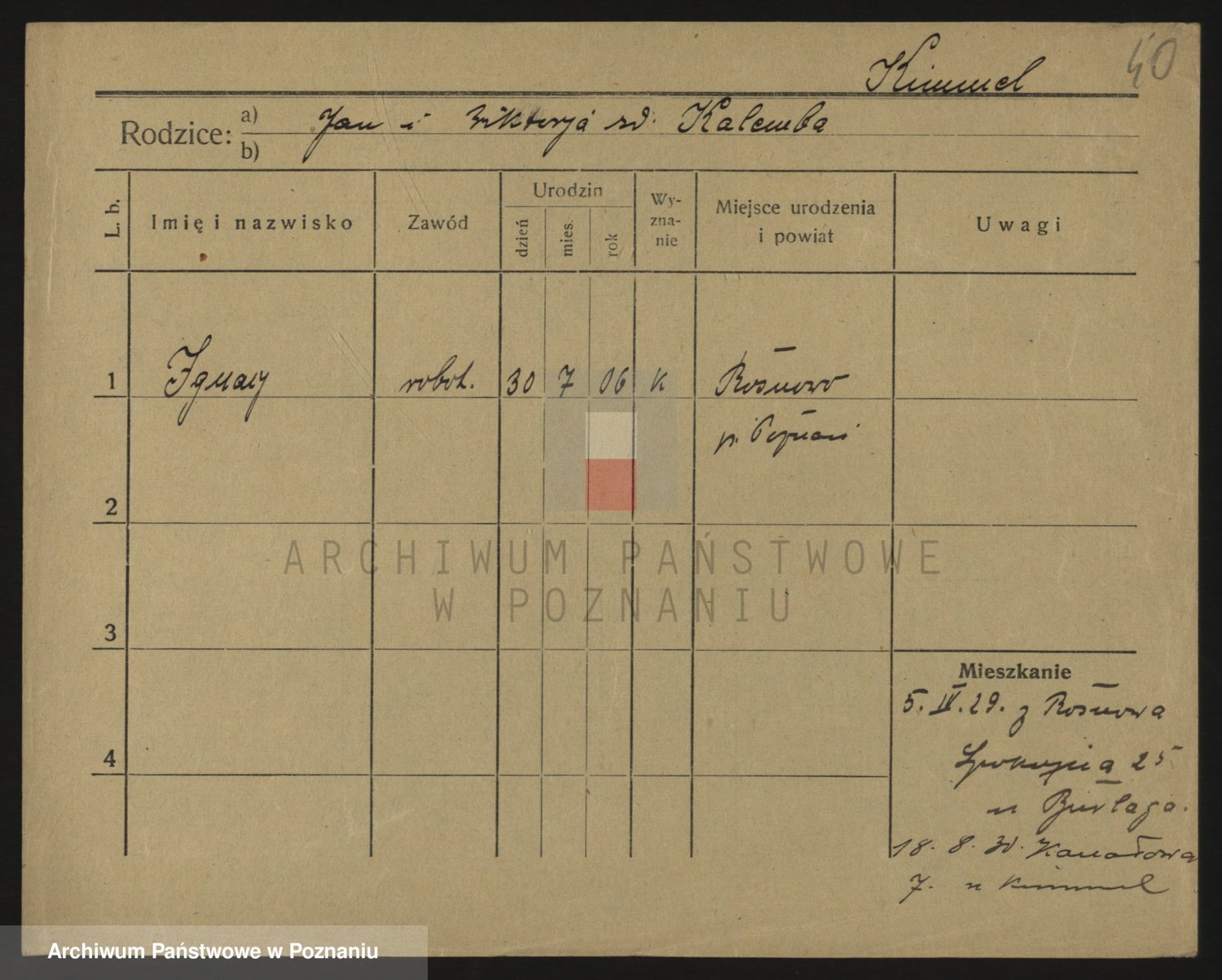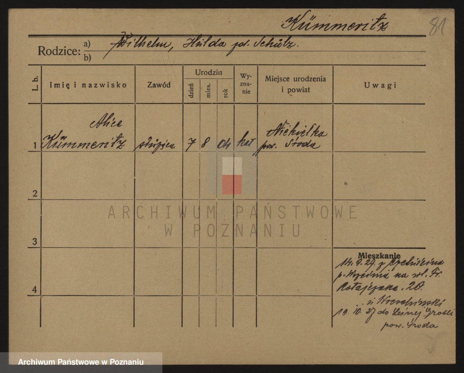 Podgląd karty osobowej dostępny jest po kliknięciu na nazwisko lub ikonkę karty. Można dokonywać powiększenia (ikony na górze) lub przechodzić między kolejnymi skanami (strzałki po bokach).
