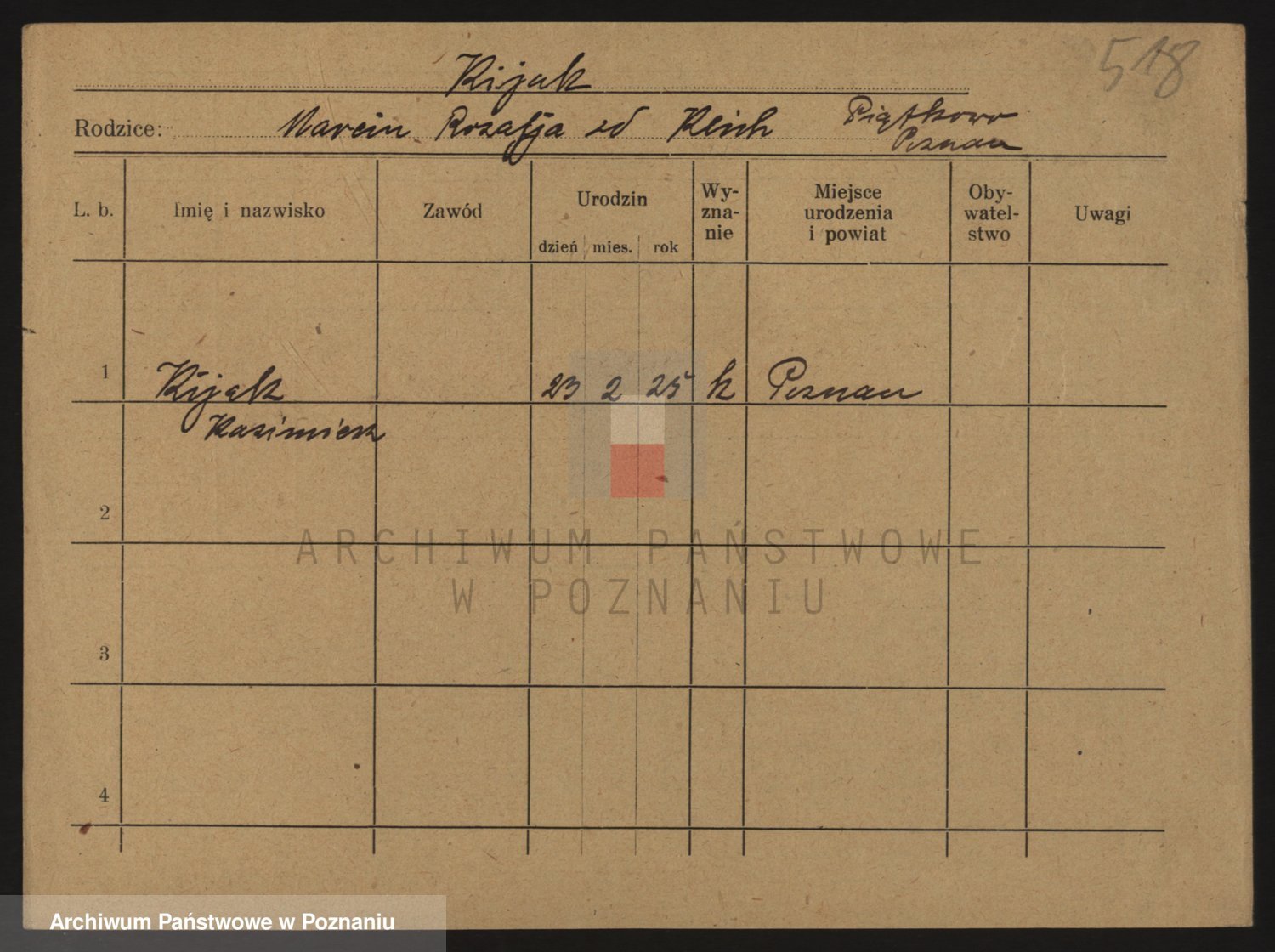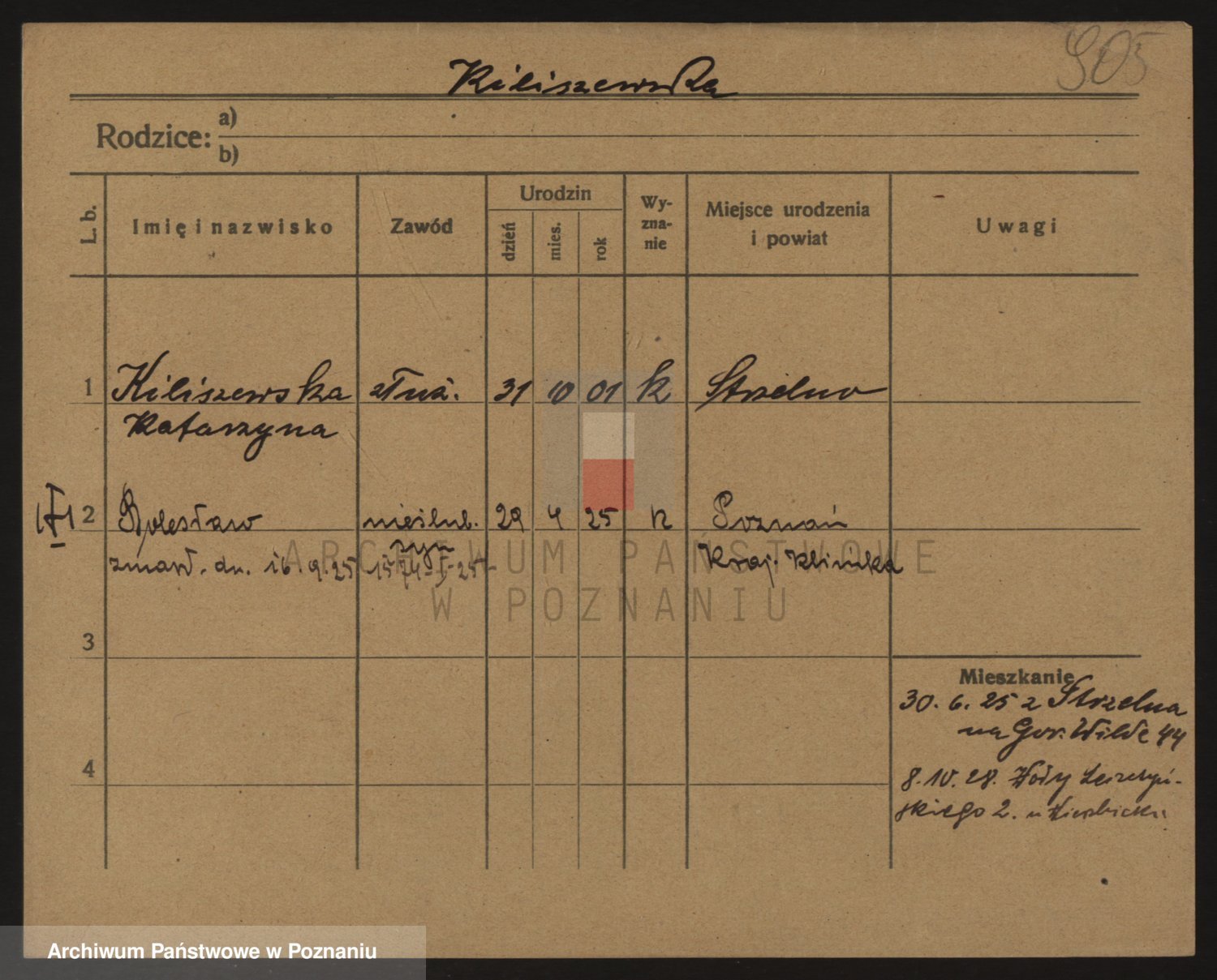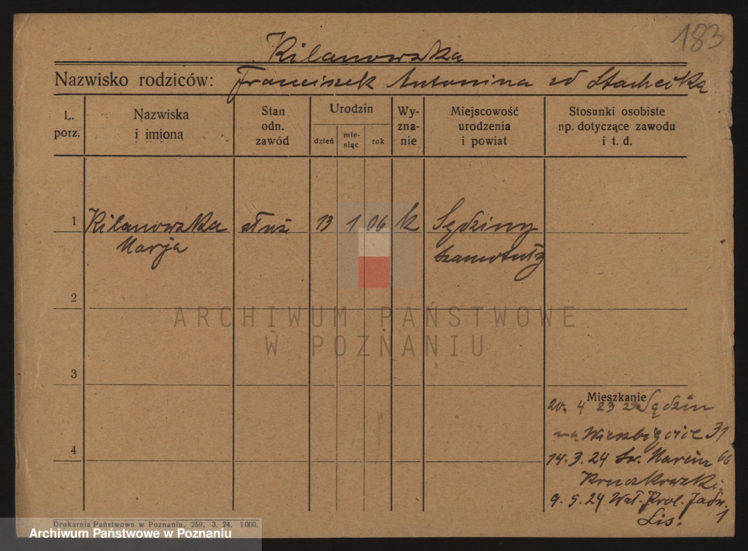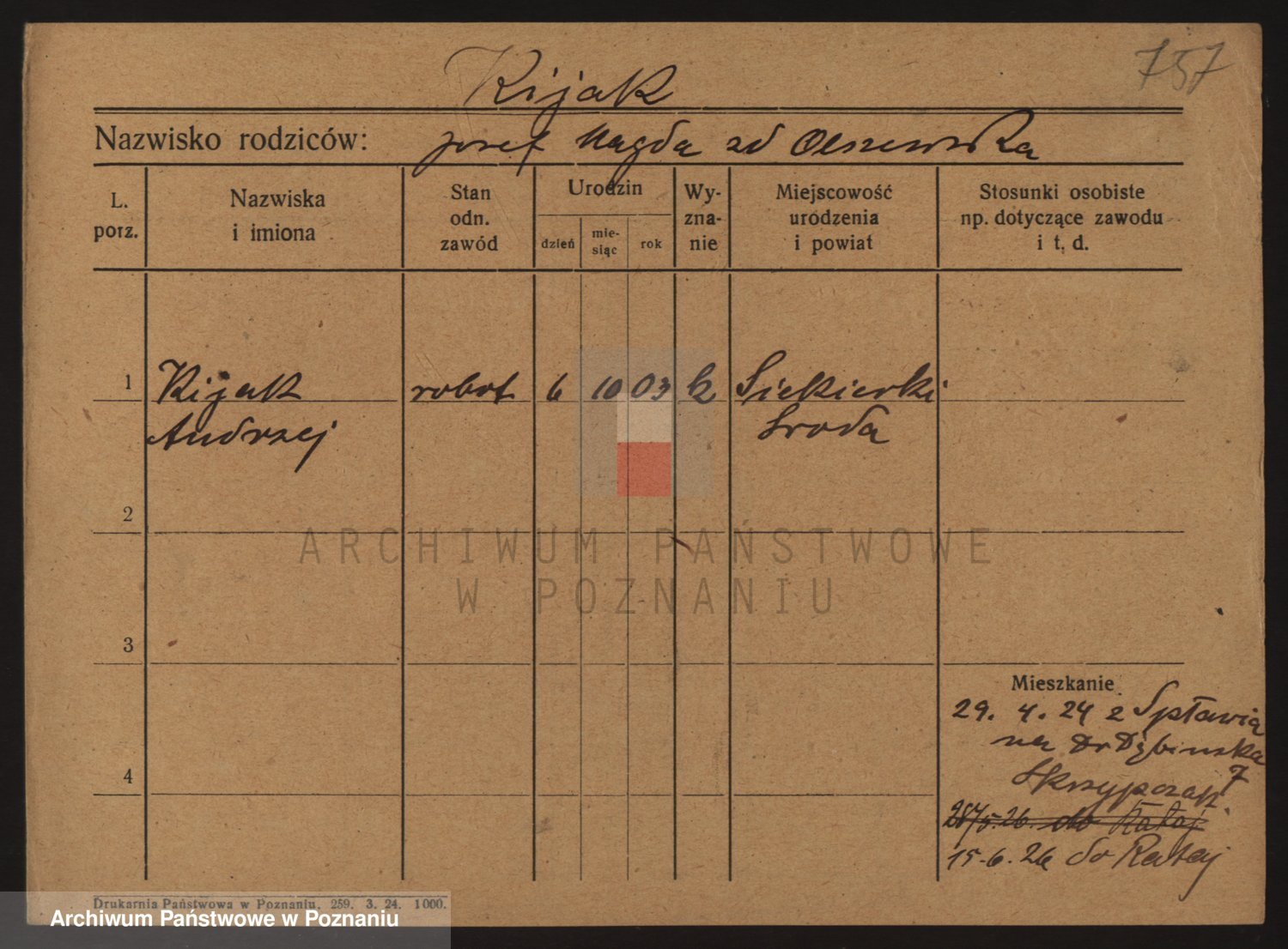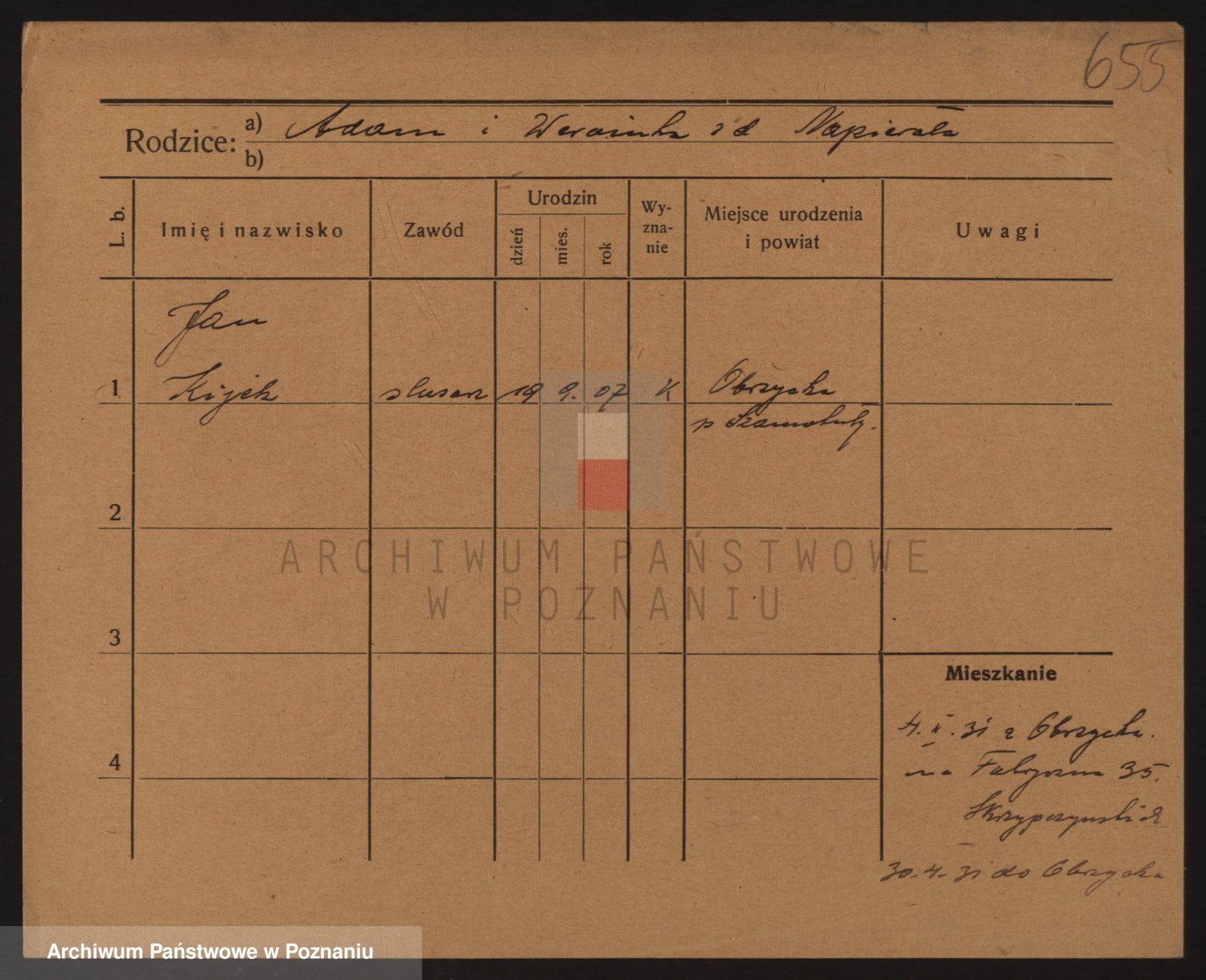 Podgląd karty osobowej dostępny jest po kliknięciu na nazwisko lub ikonkę karty. Można dokonywać powiększenia (ikony na górze) lub przechodzić między kolejnymi skanami (strzałki po bokach).