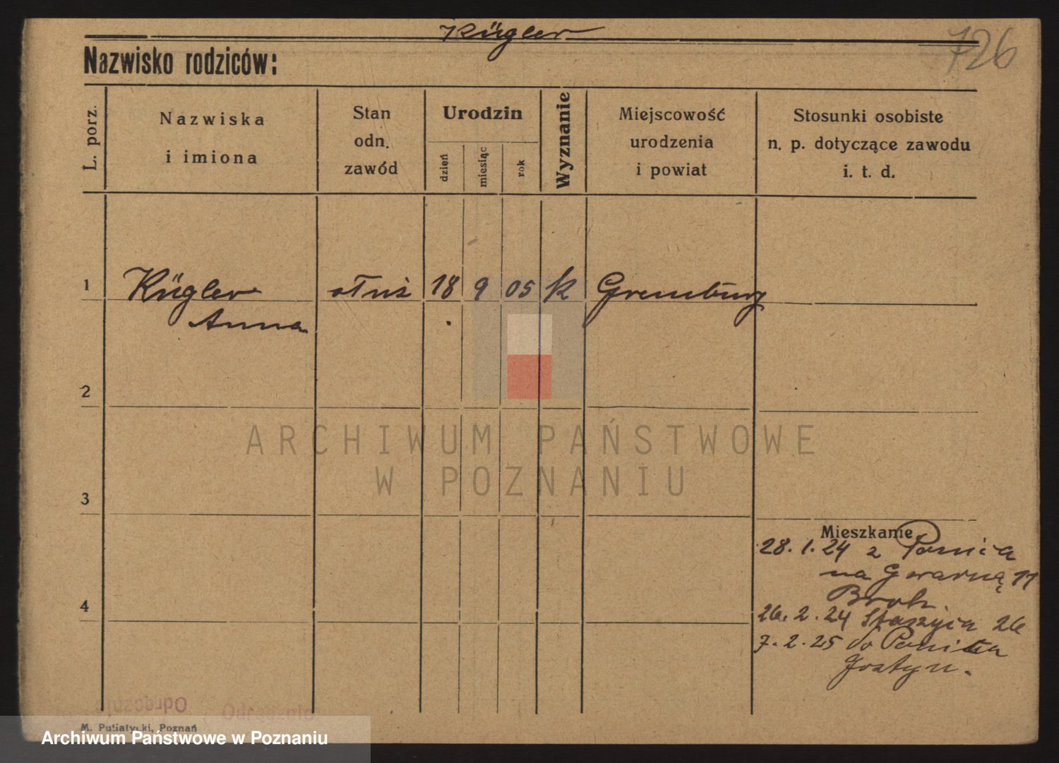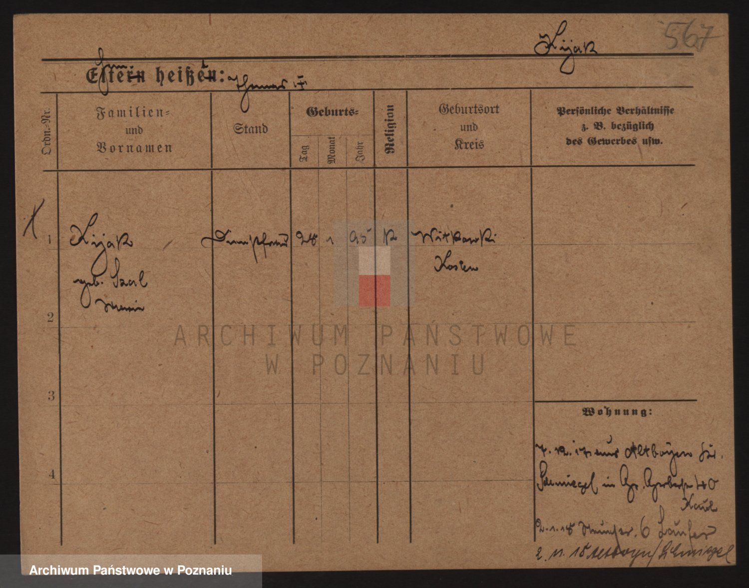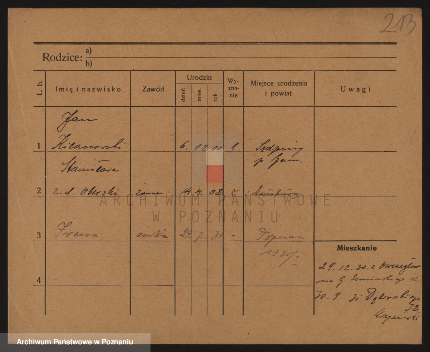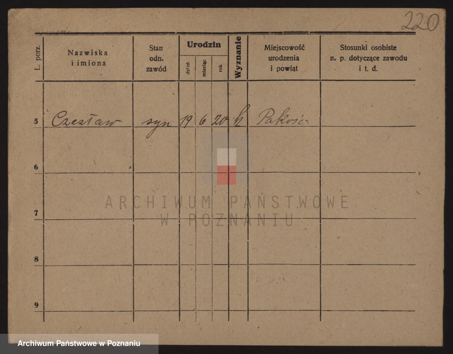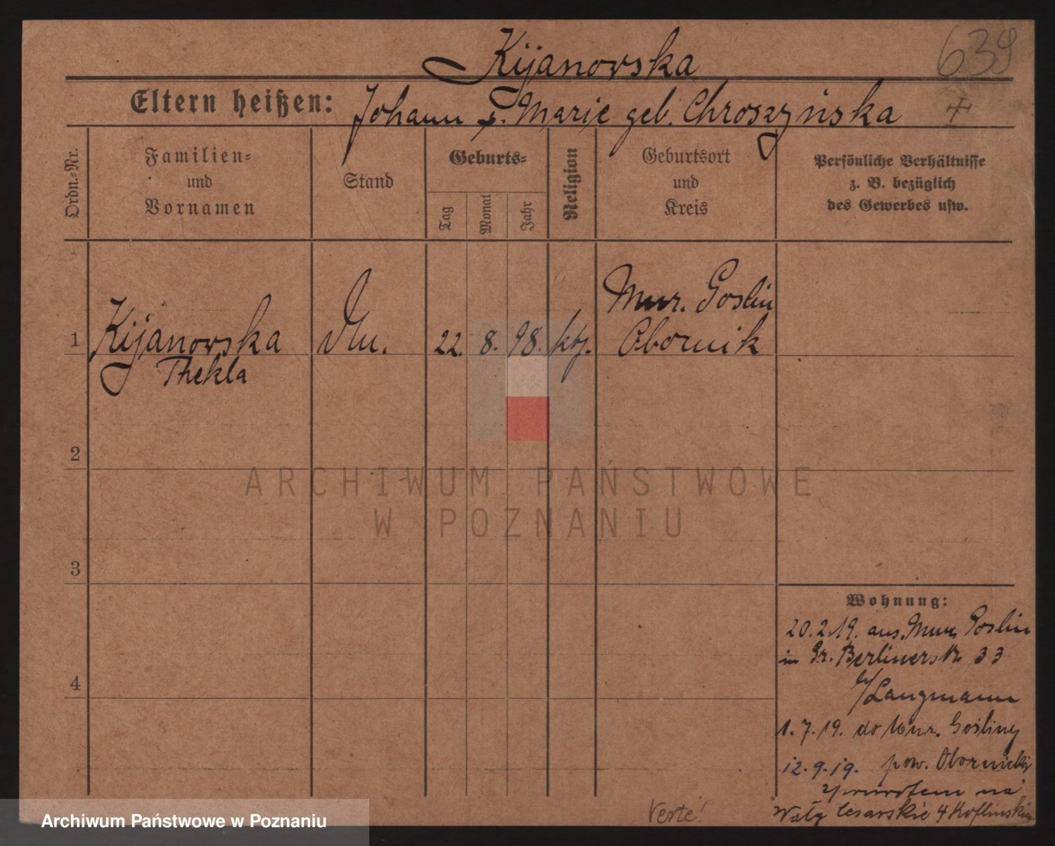 Podgląd karty osobowej dostępny jest po kliknięciu na nazwisko lub ikonkę karty. Można dokonywać powiększenia (ikony na górze) lub przechodzić między kolejnymi skanami (strzałki po bokach).