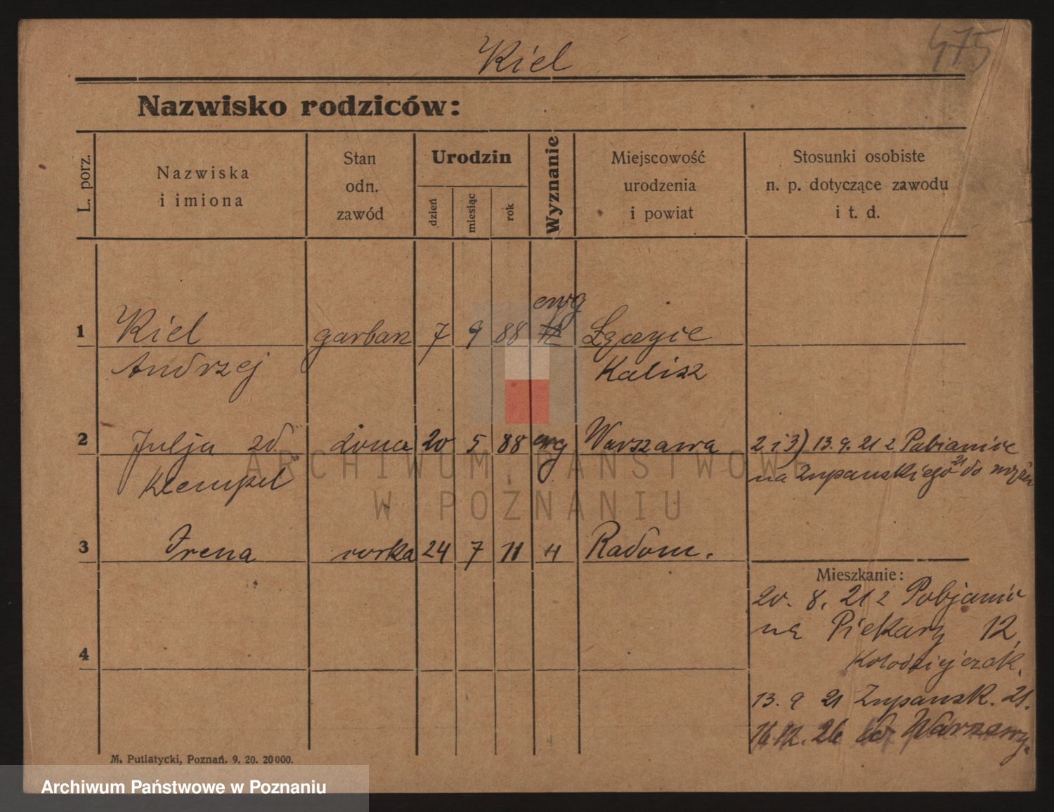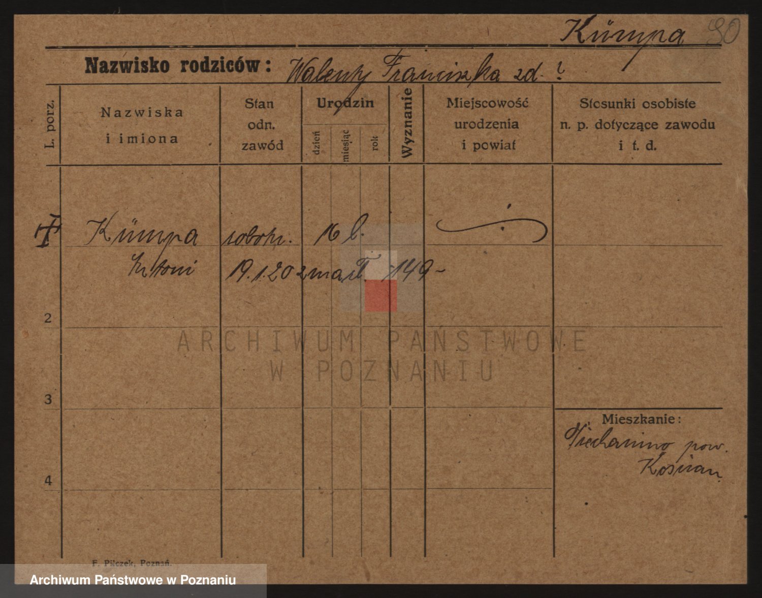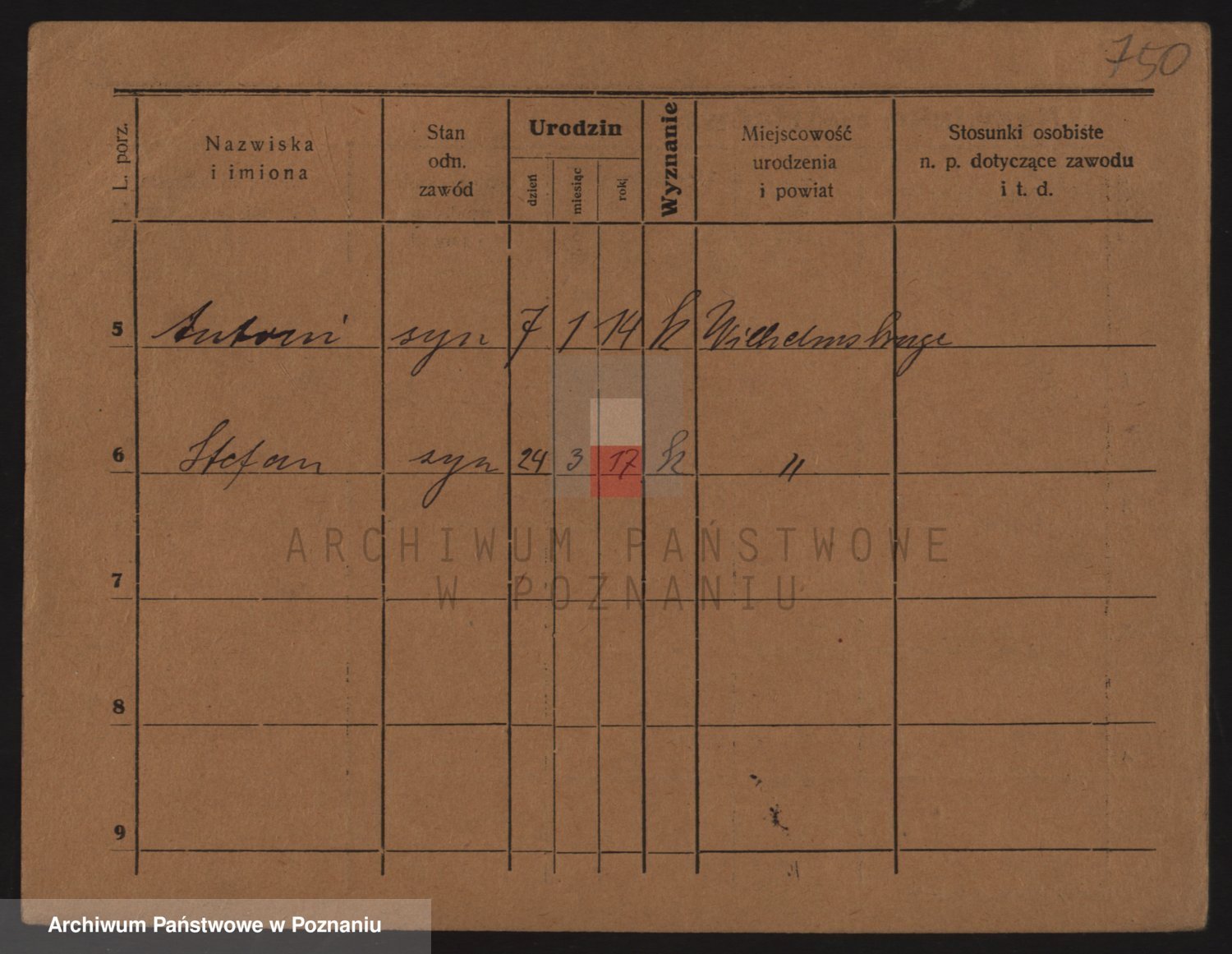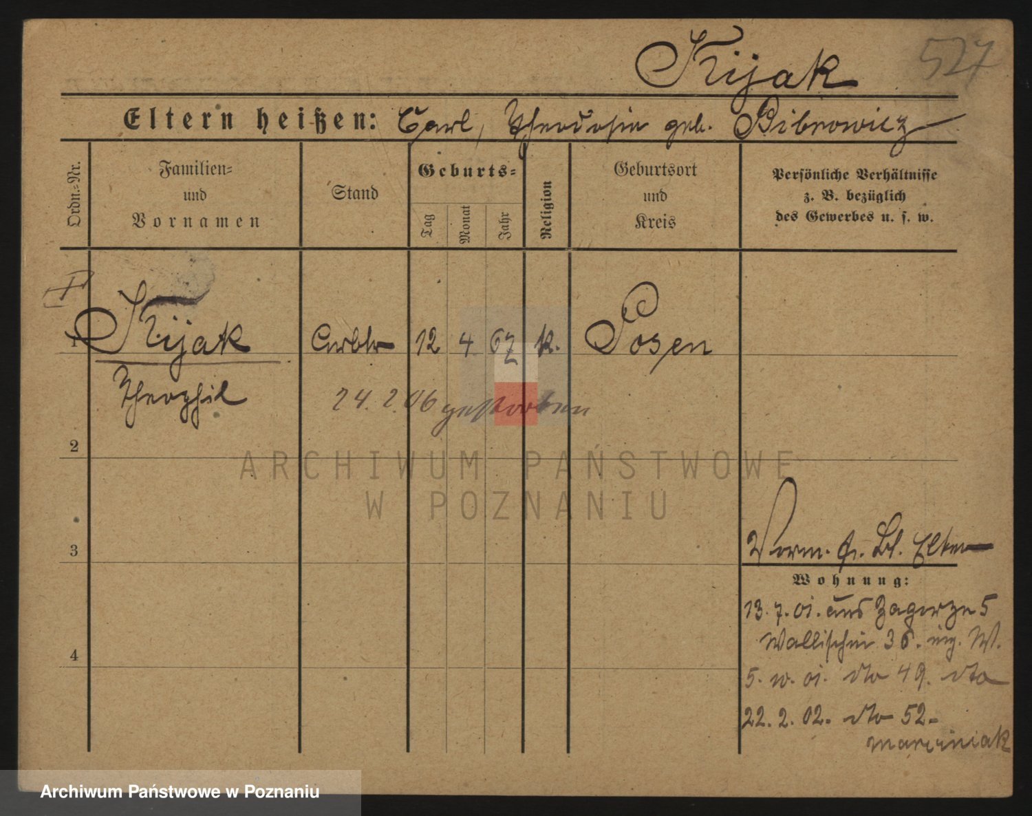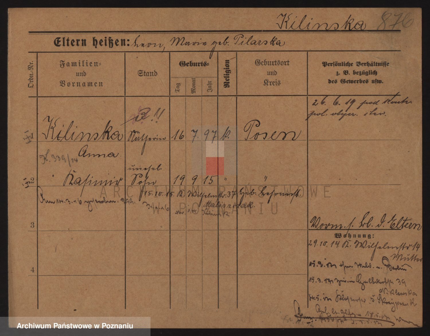Podgląd karty osobowej dostępny jest po kliknięciu na nazwisko lub ikonkę karty. Można dokonywać powiększenia (ikony na górze) lub przechodzić między kolejnymi skanami (strzałki po bokach).