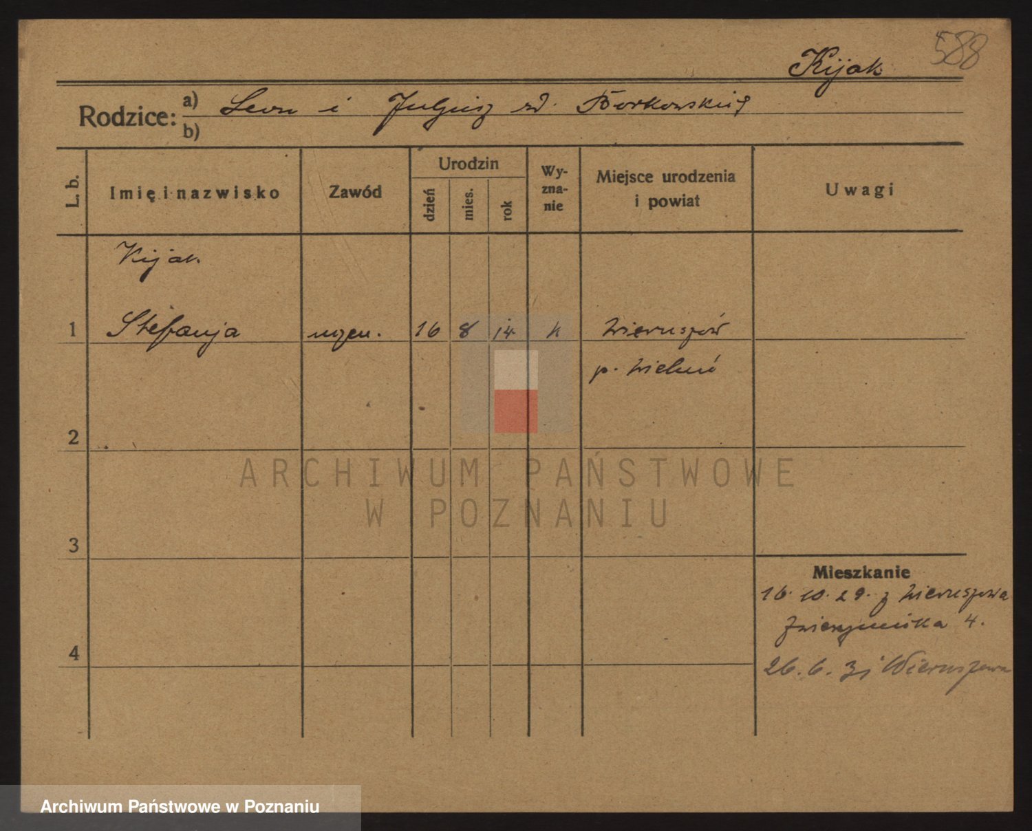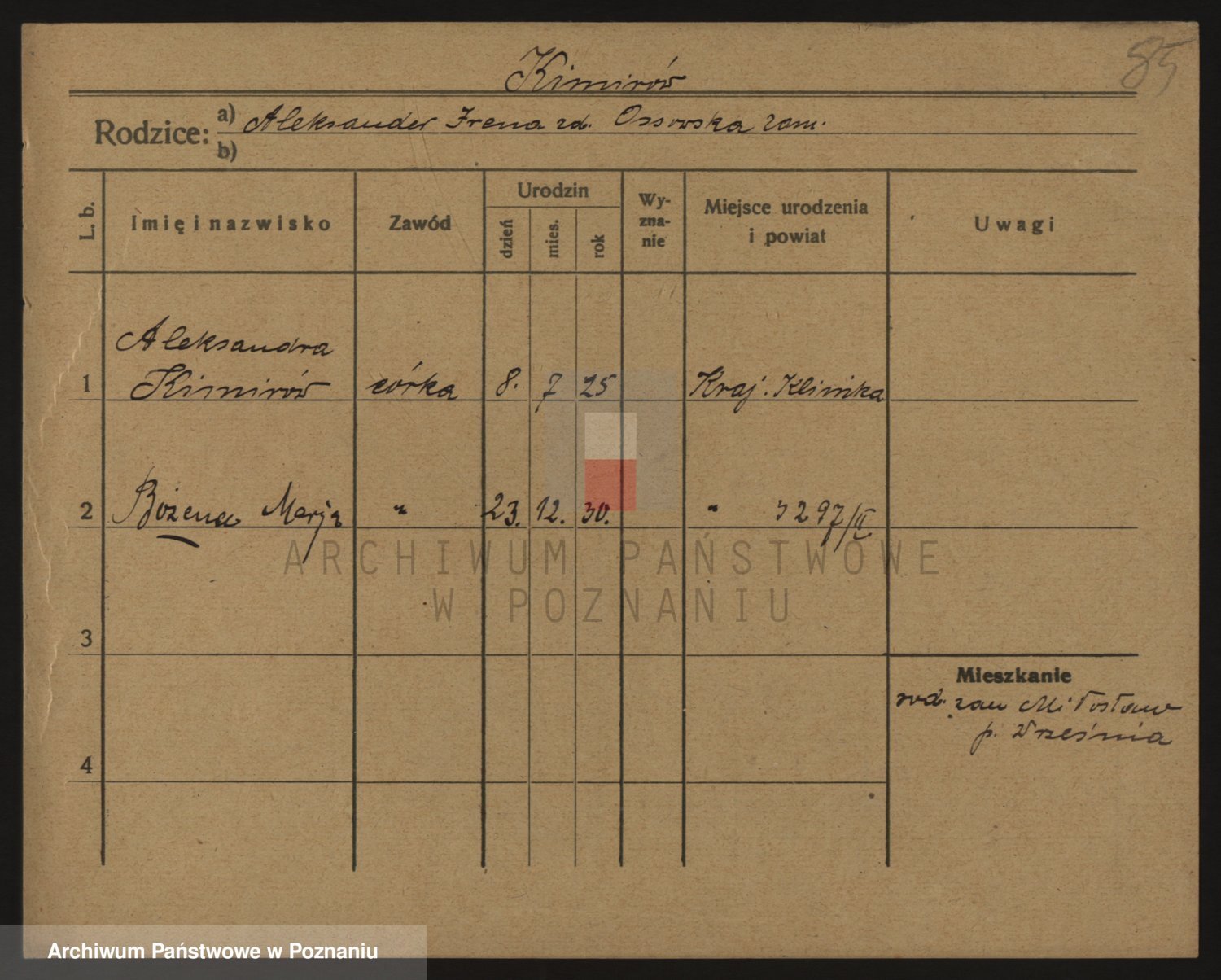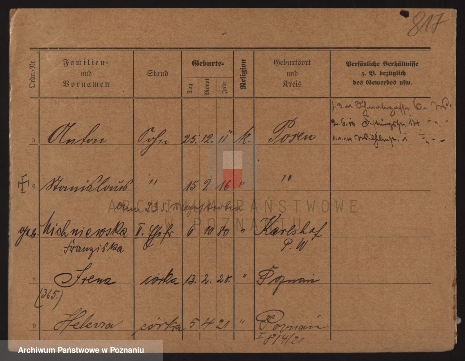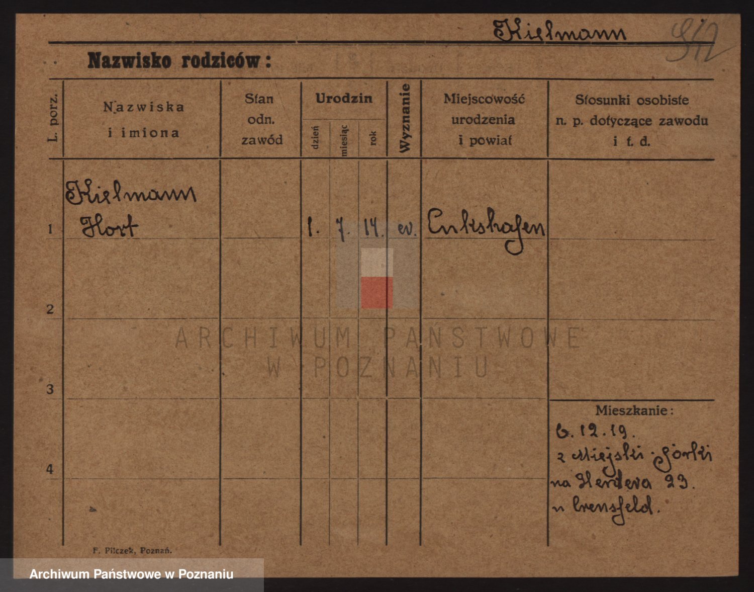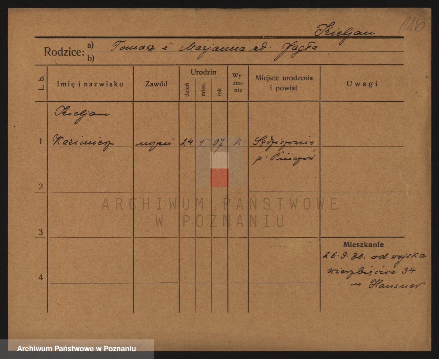Podgląd karty osobowej dostępny jest po kliknięciu na nazwisko lub ikonkę karty. Można dokonywać powiększenia (ikony na górze) lub przechodzić między kolejnymi skanami (strzałki po bokach).