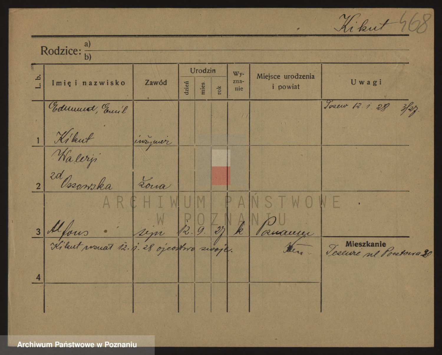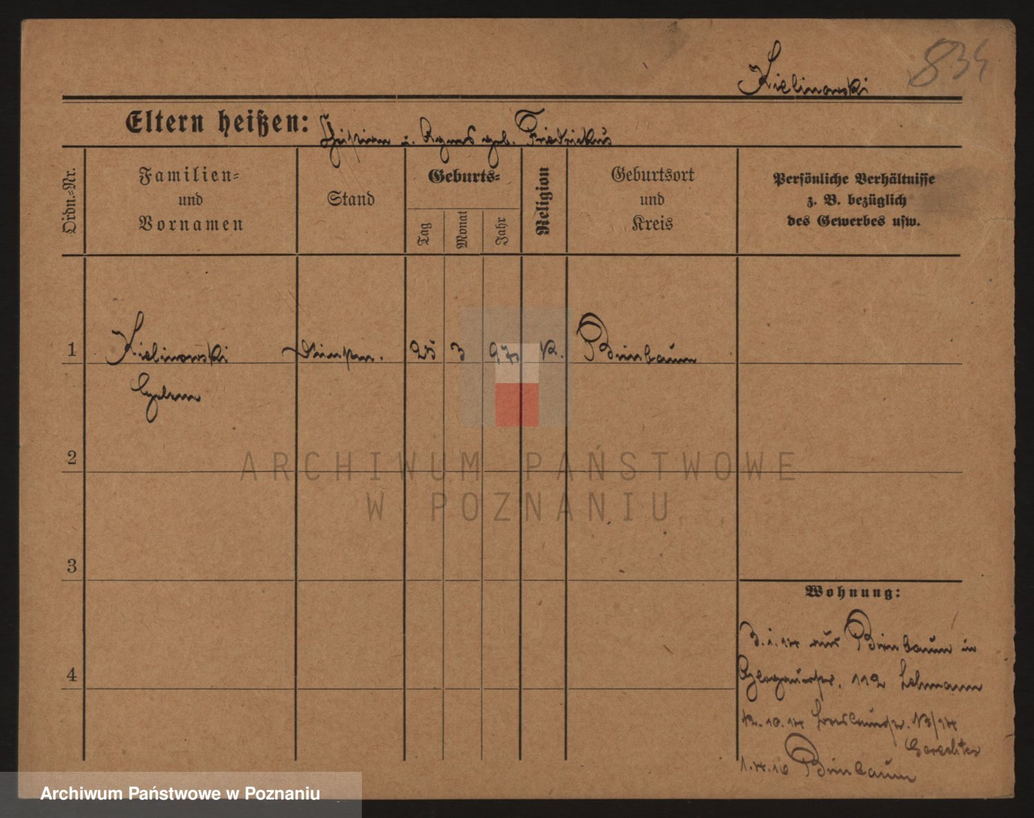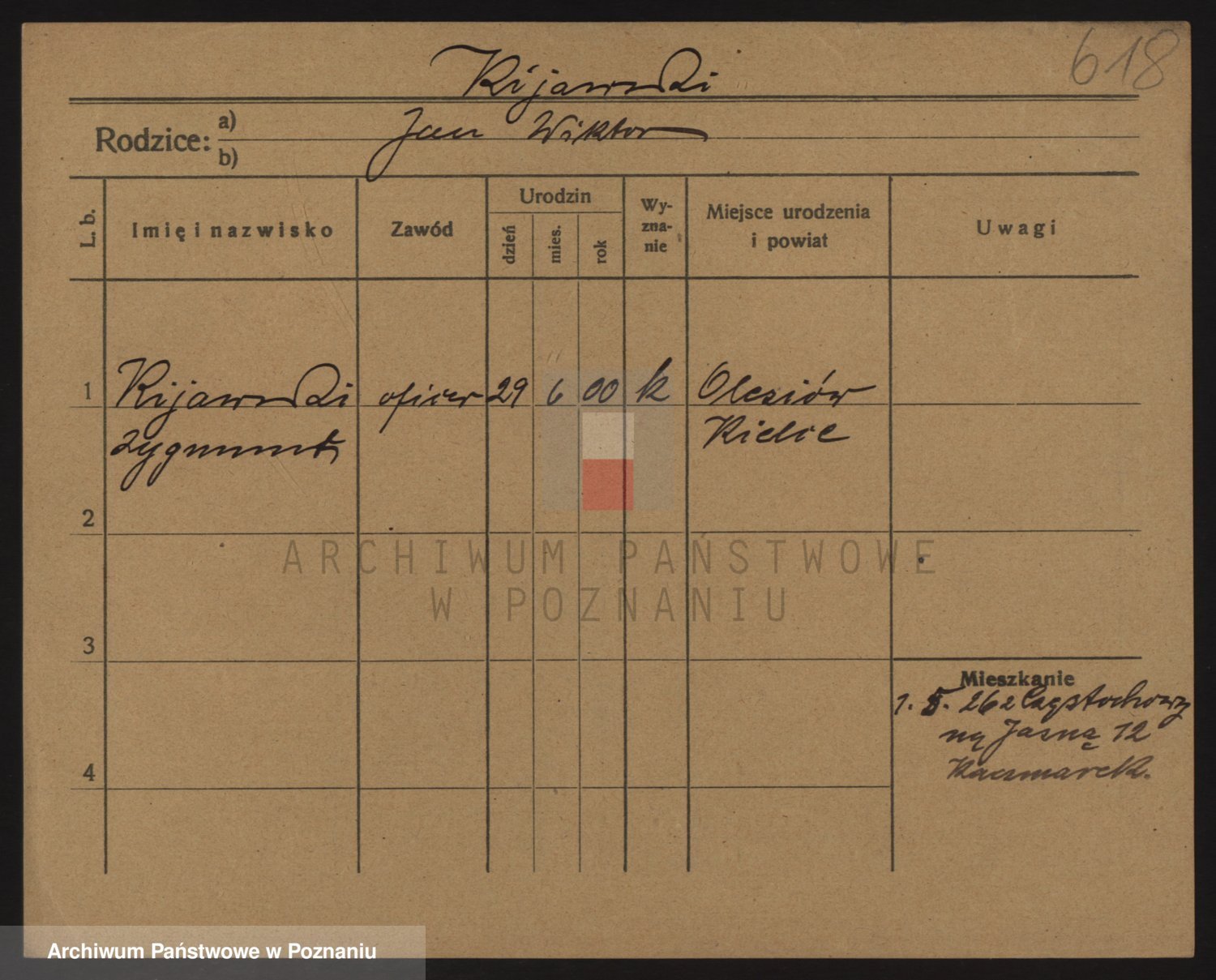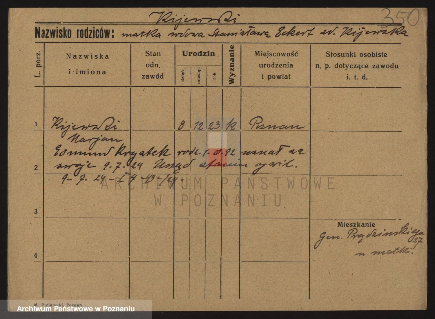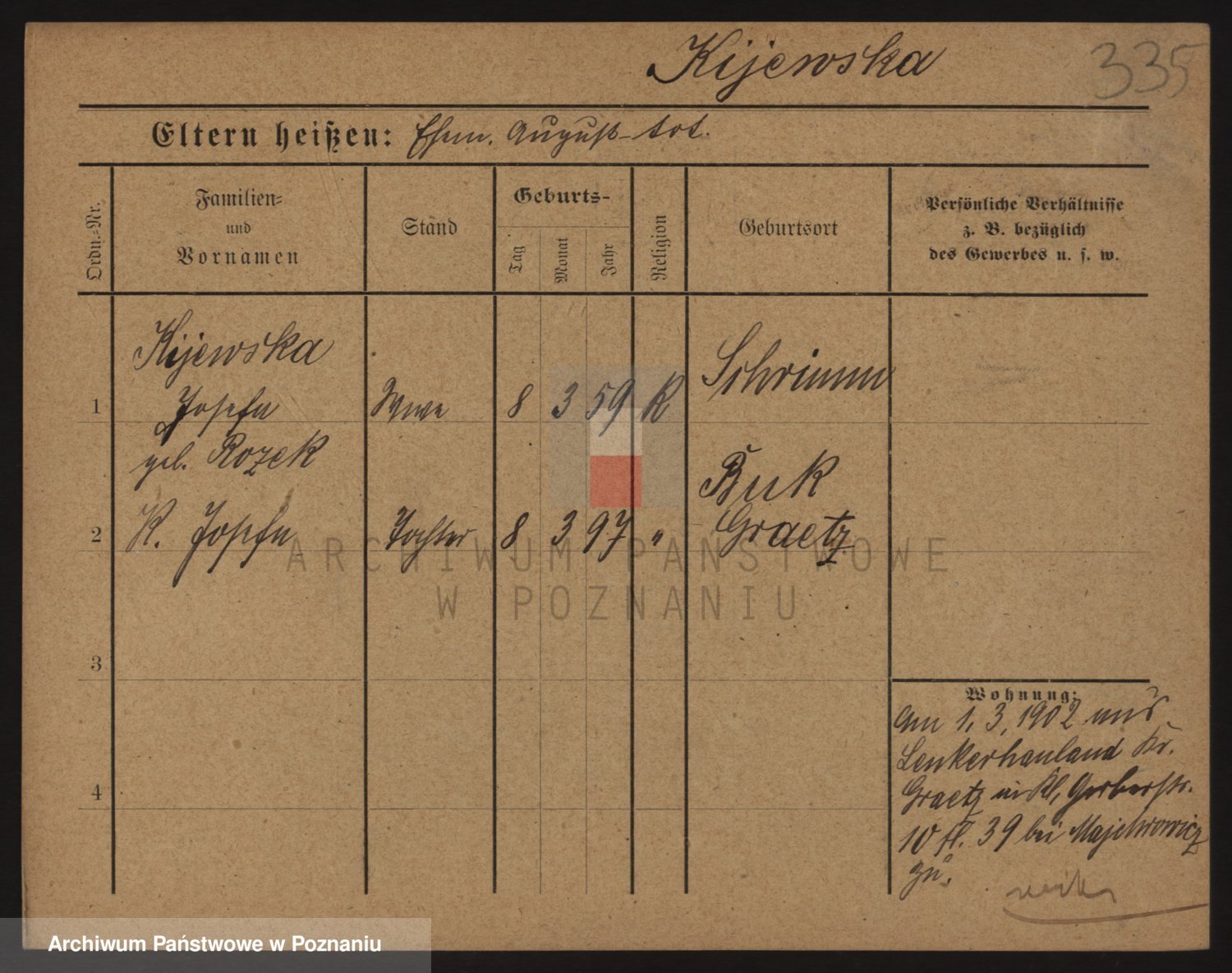 Podgląd karty osobowej dostępny jest po kliknięciu na nazwisko lub ikonkę karty. Można dokonywać powiększenia (ikony na górze) lub przechodzić między kolejnymi skanami (strzałki po bokach).