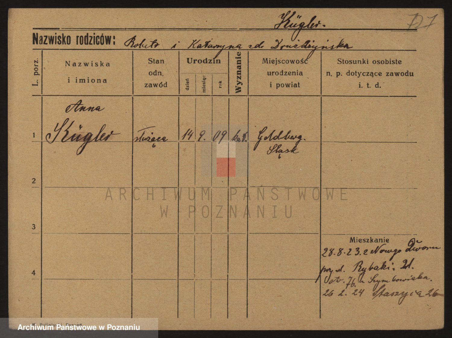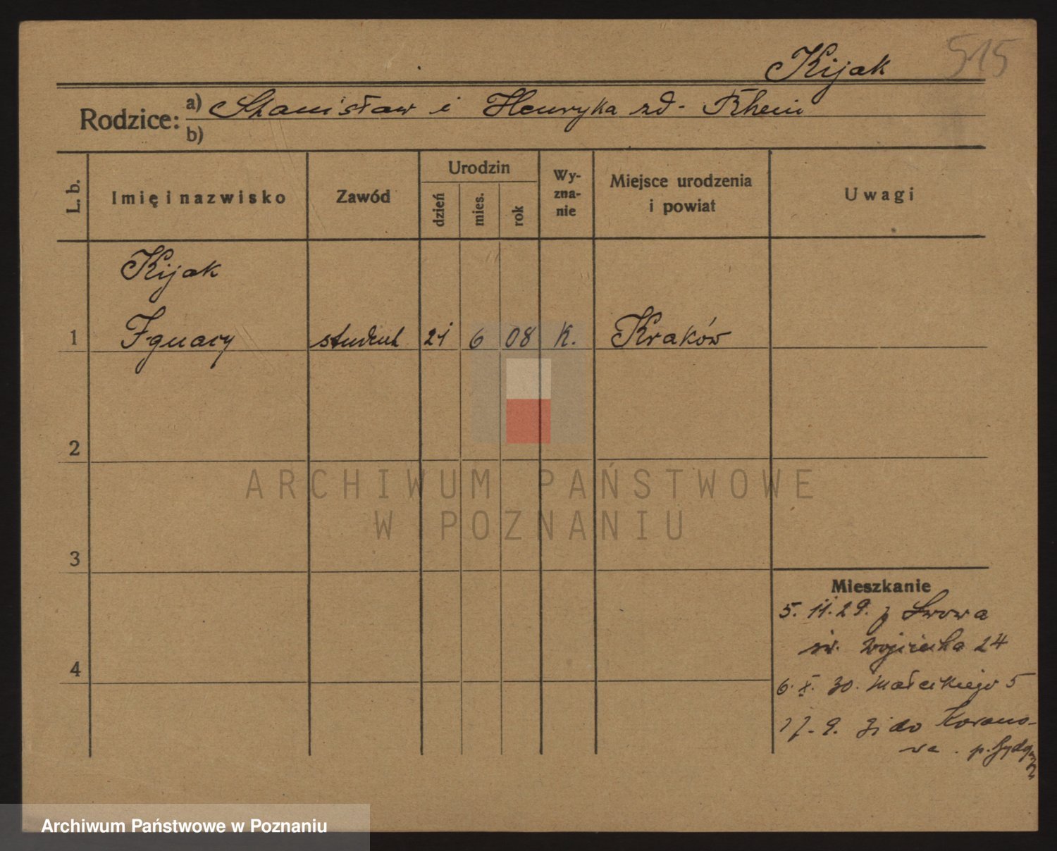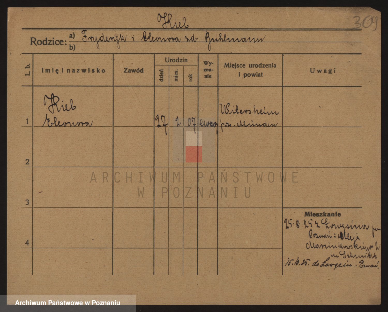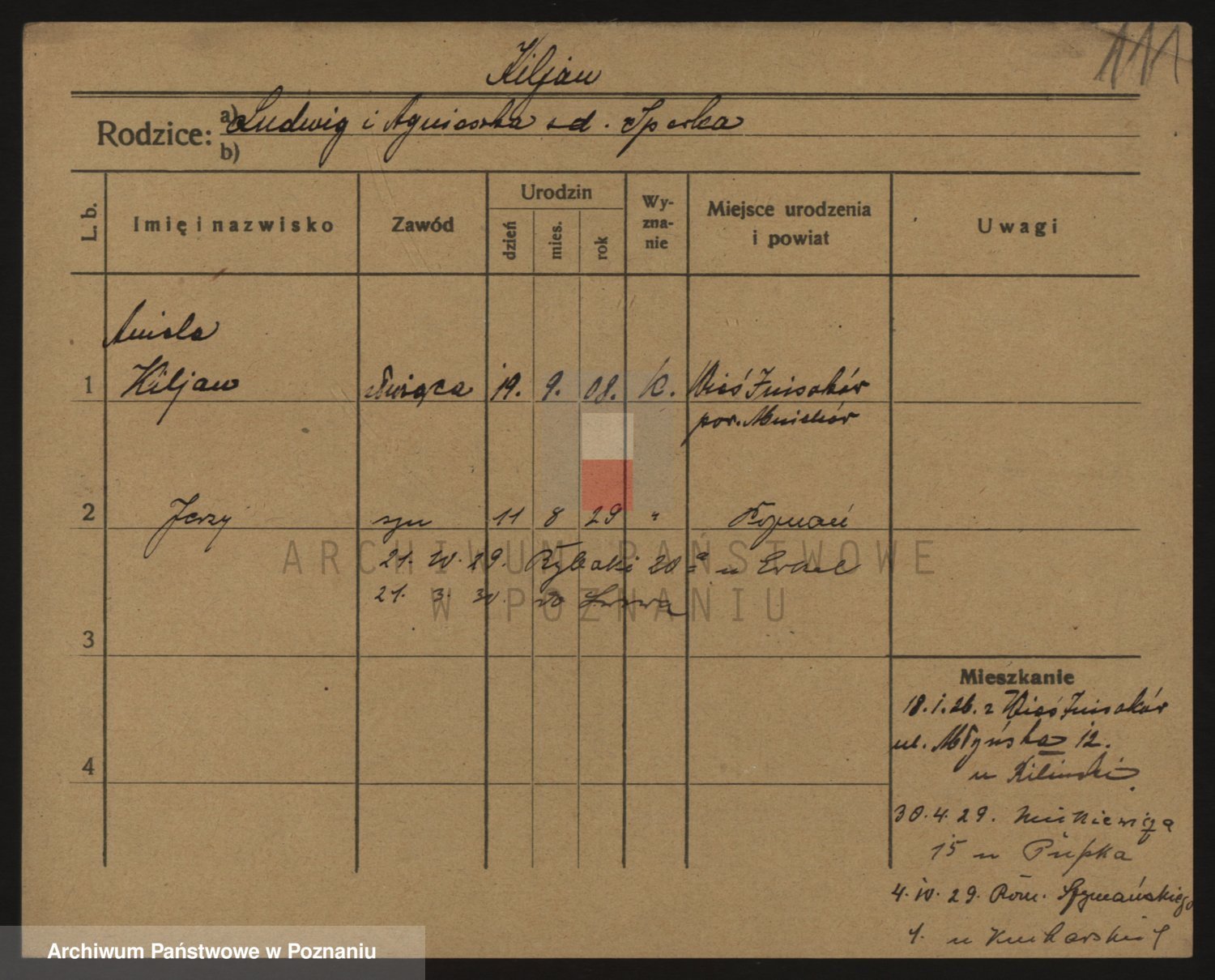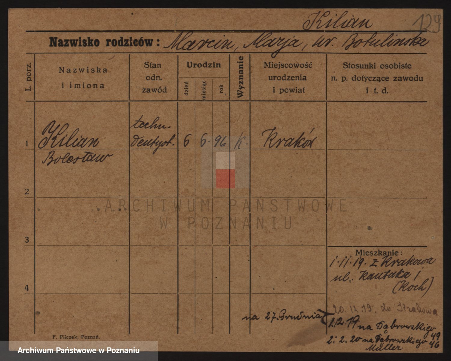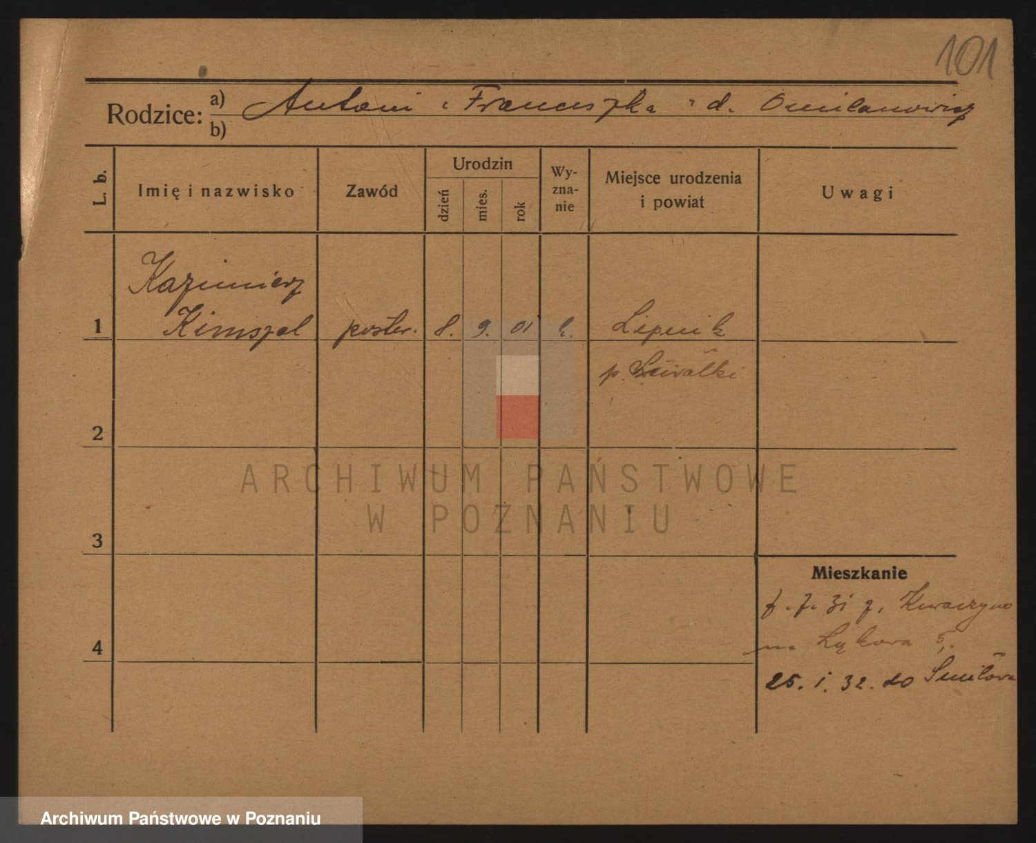 Podgląd karty osobowej dostępny jest po kliknięciu na nazwisko lub ikonkę karty. Można dokonywać powiększenia (ikony na górze) lub przechodzić między kolejnymi skanami (strzałki po bokach).