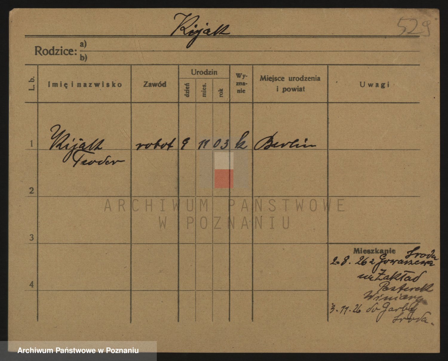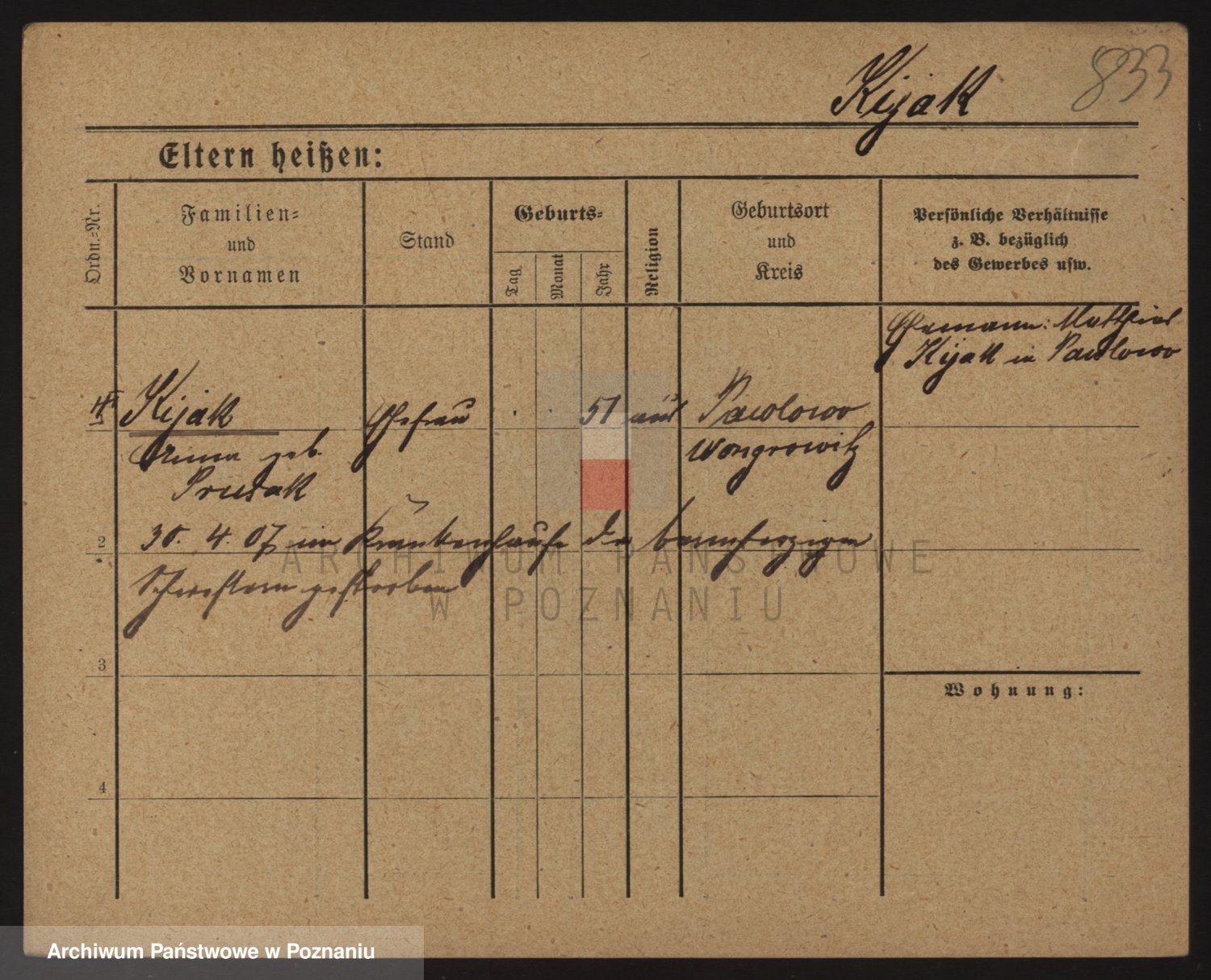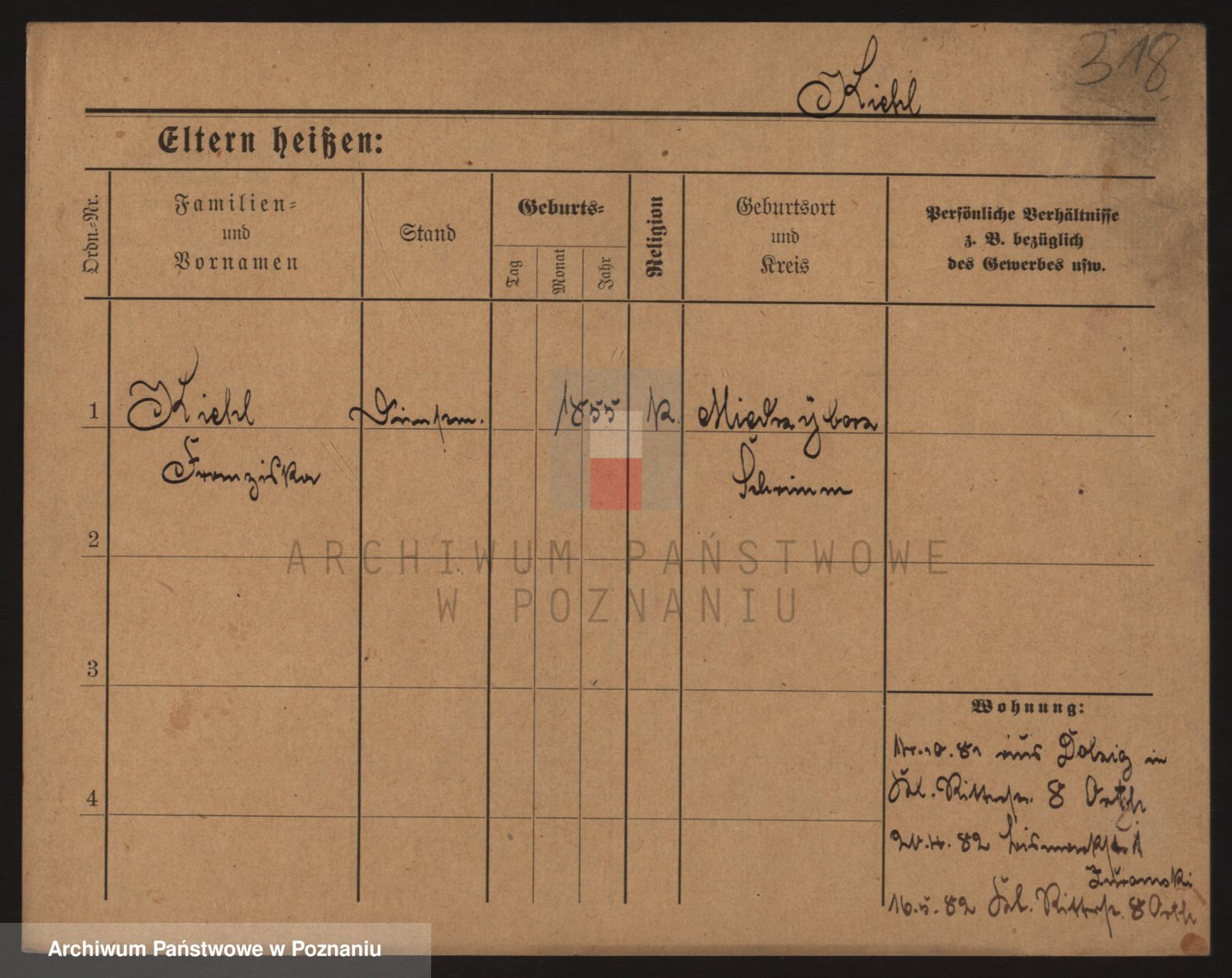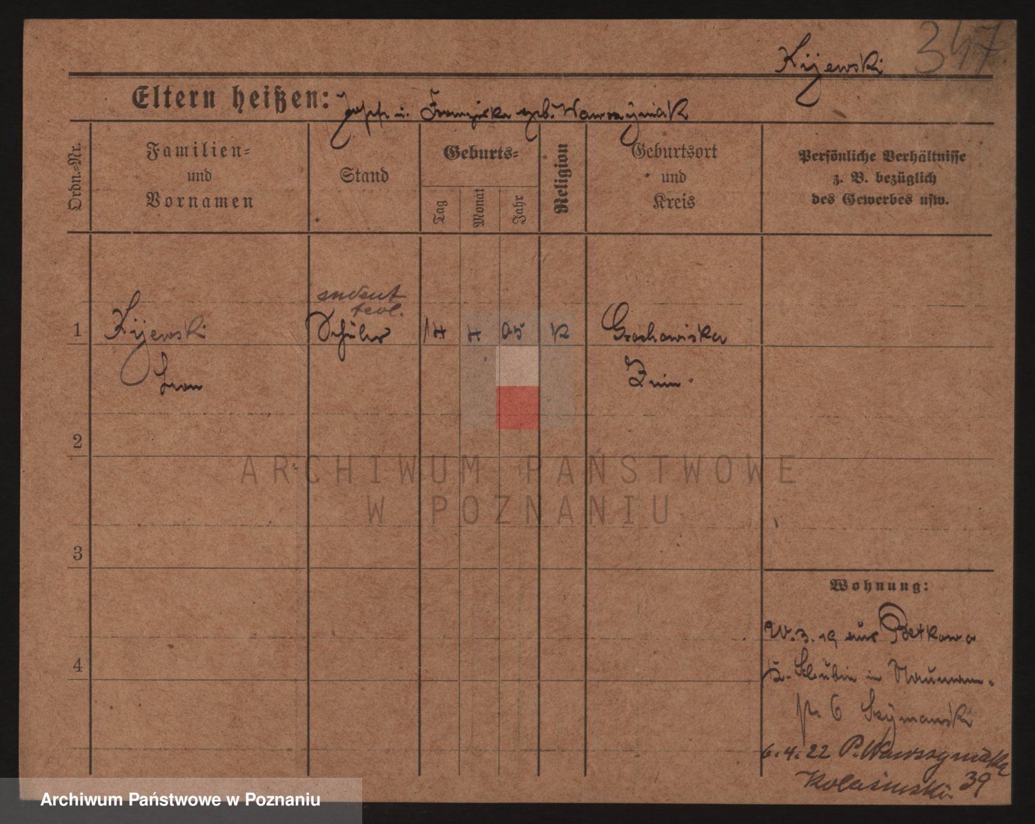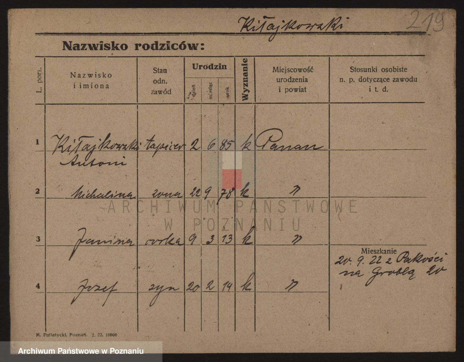 Podgląd karty osobowej dostępny jest po kliknięciu na nazwisko lub ikonkę karty. Można dokonywać powiększenia (ikony na górze) lub przechodzić między kolejnymi skanami (strzałki po bokach).