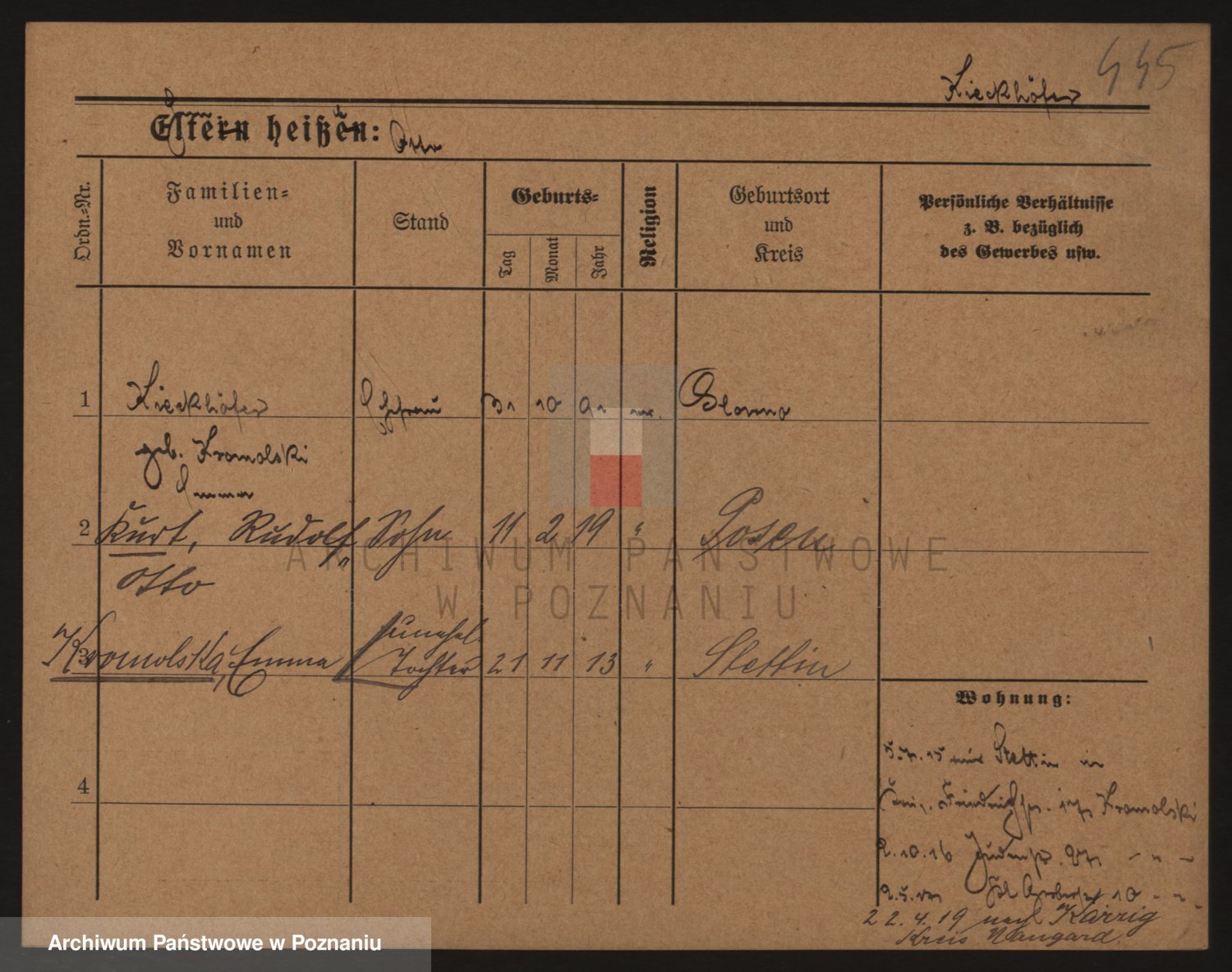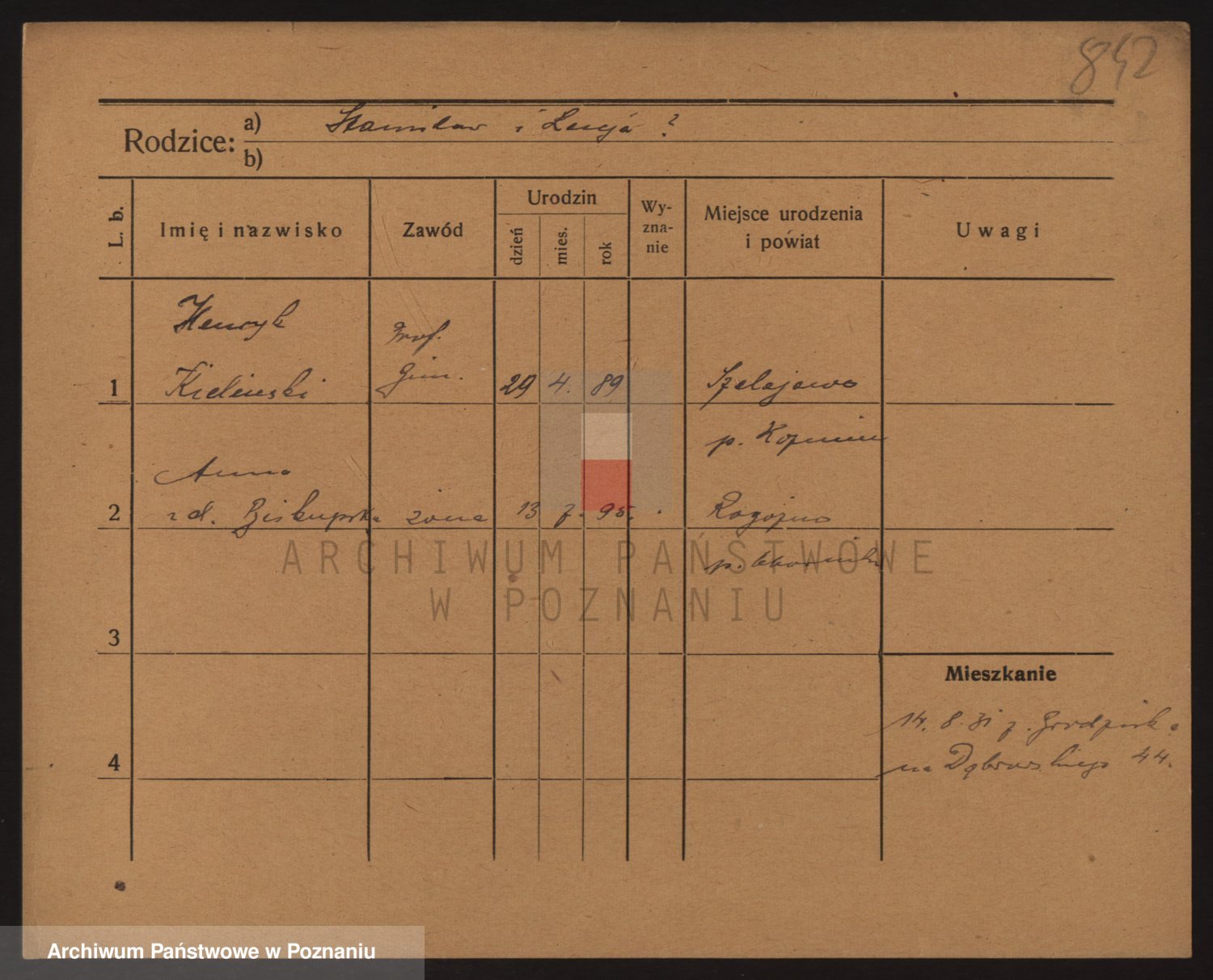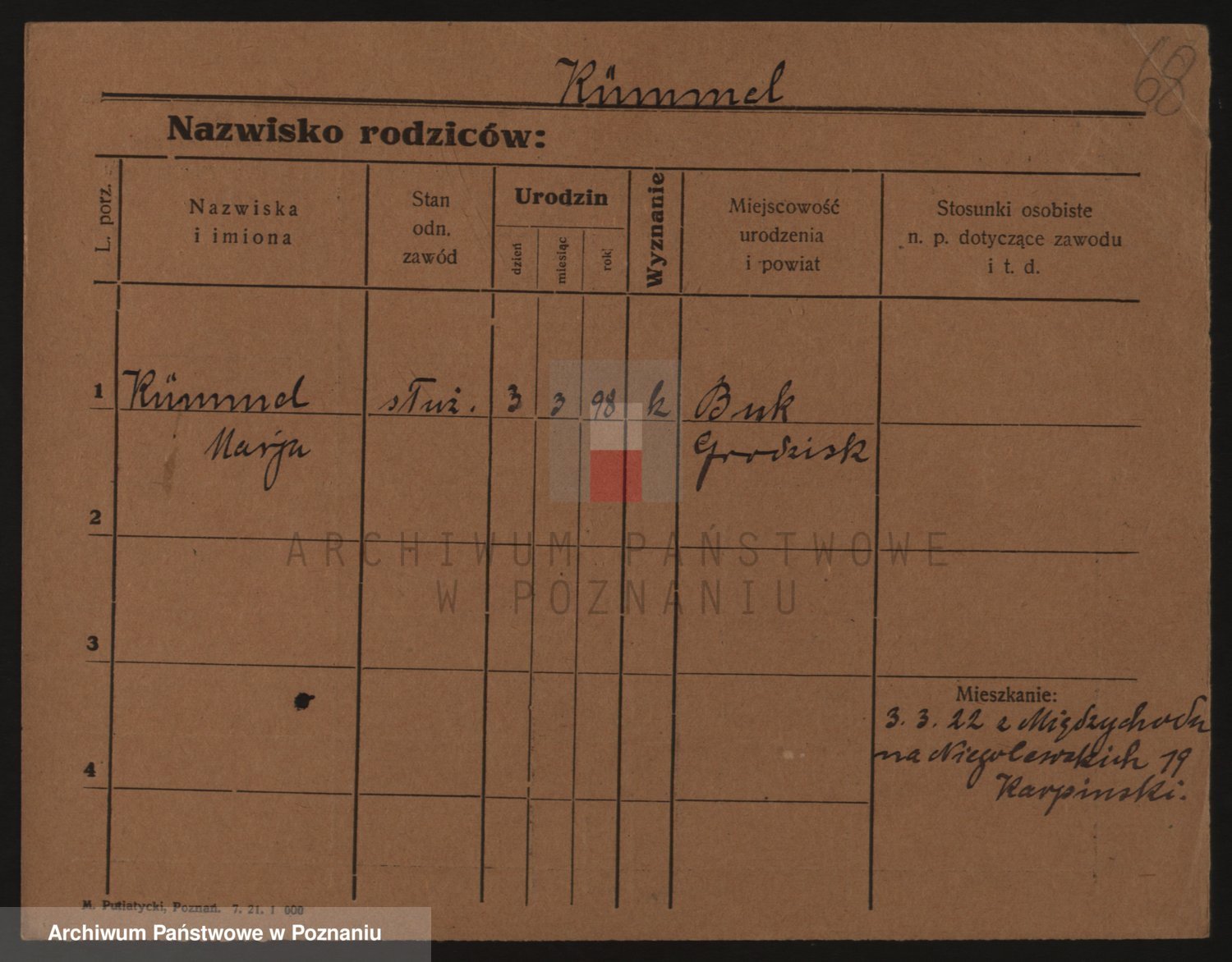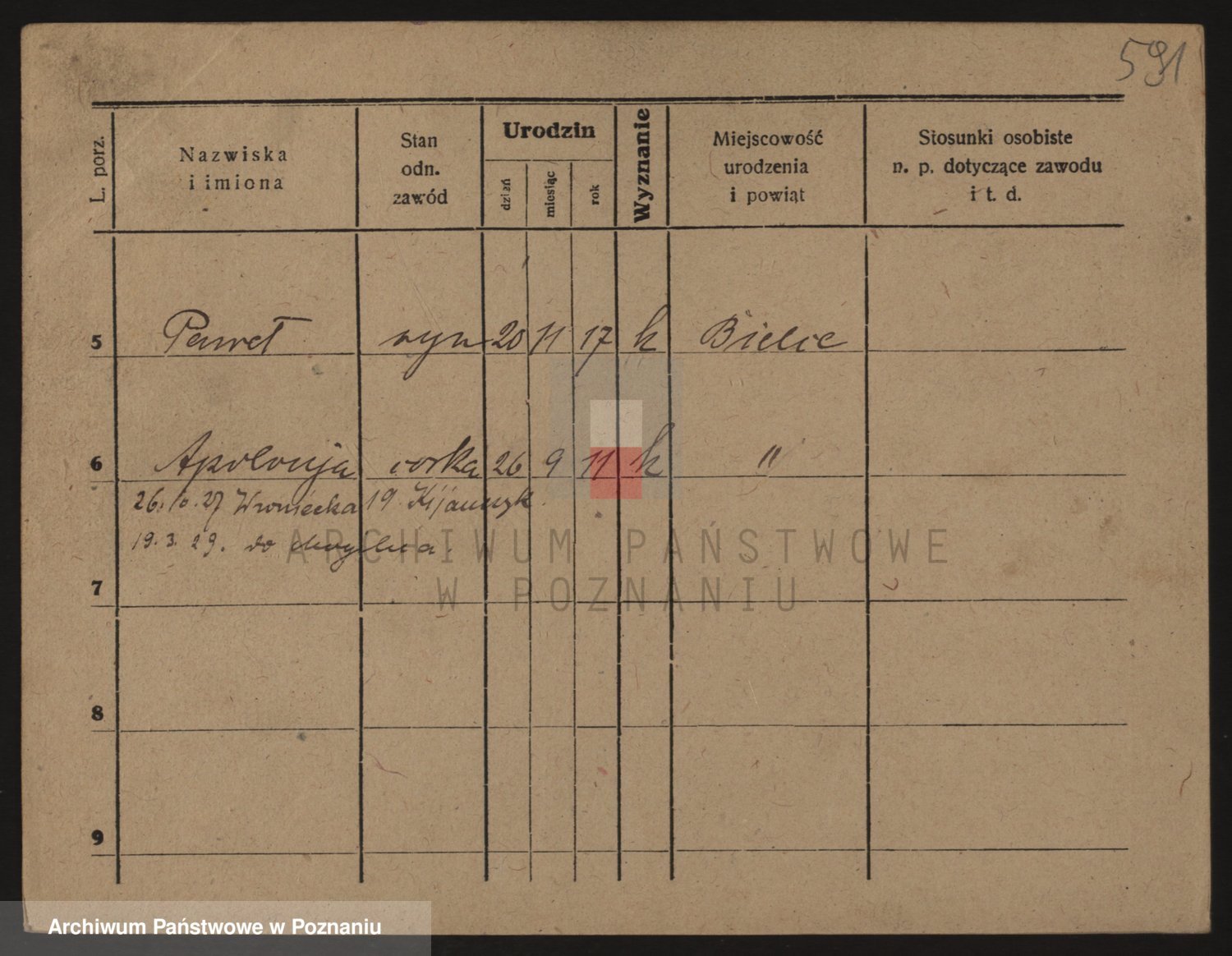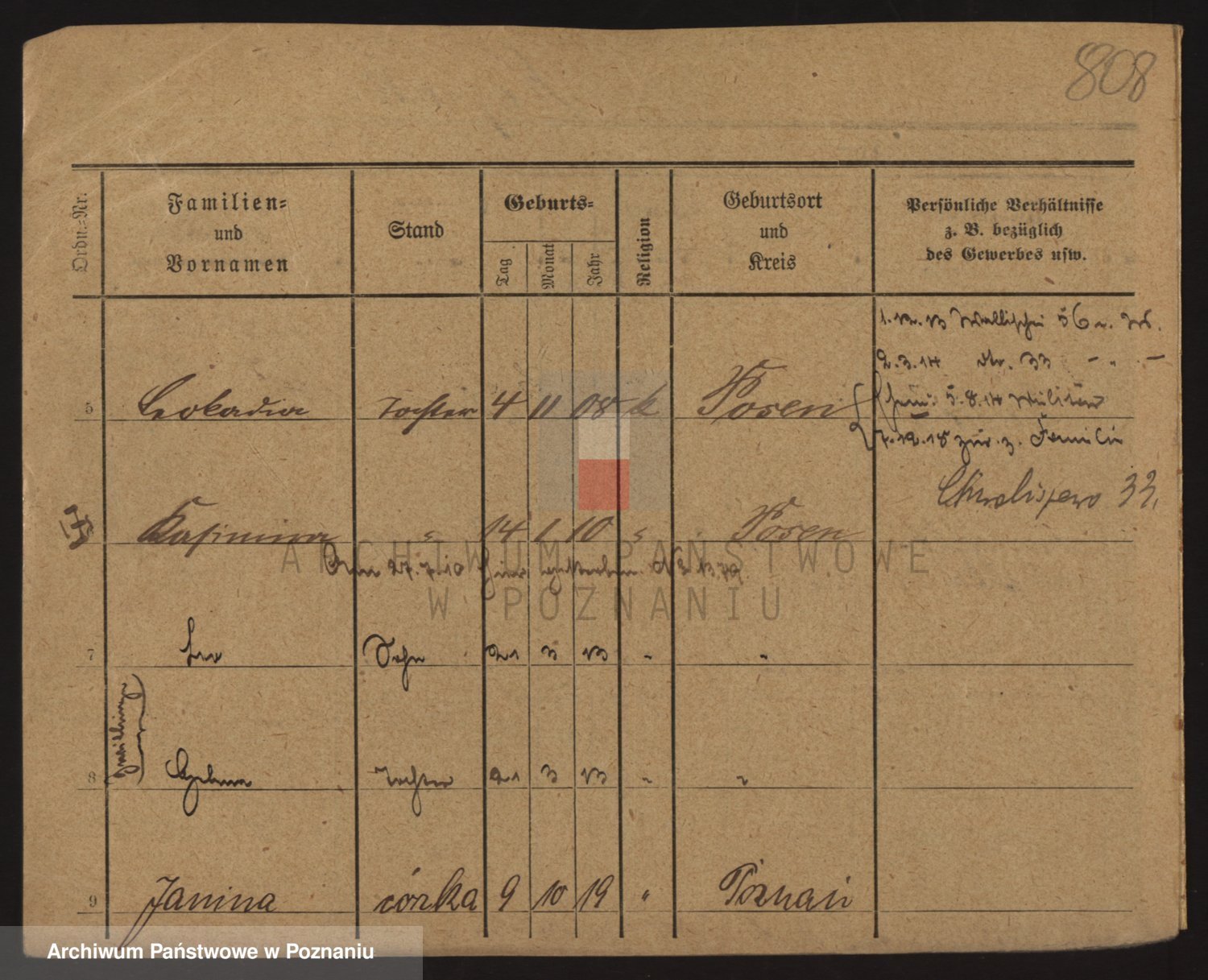 Podgląd karty osobowej dostępny jest po kliknięciu na nazwisko lub ikonkę karty. Można dokonywać powiększenia (ikony na górze) lub przechodzić między kolejnymi skanami (strzałki po bokach).
