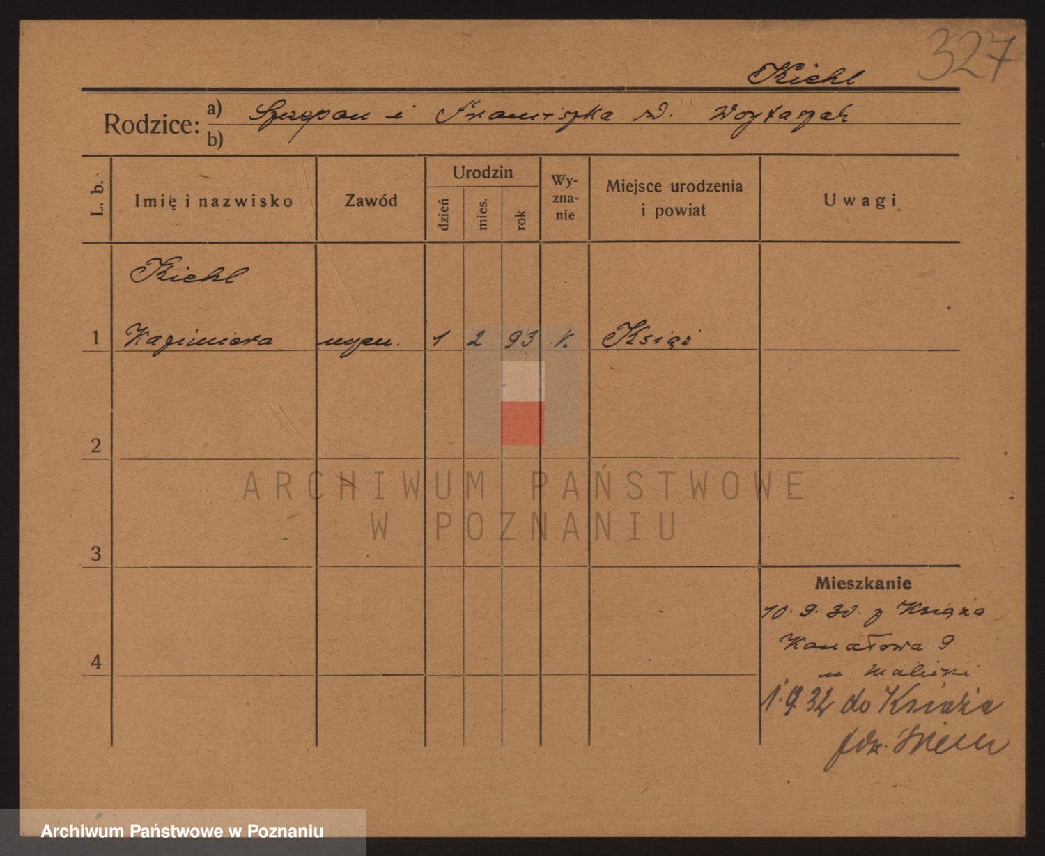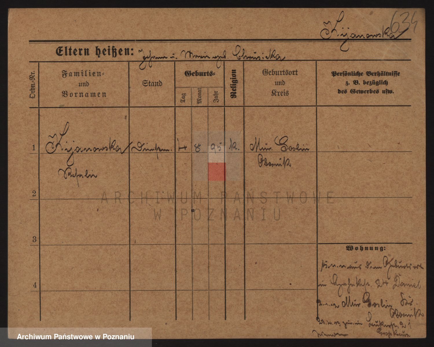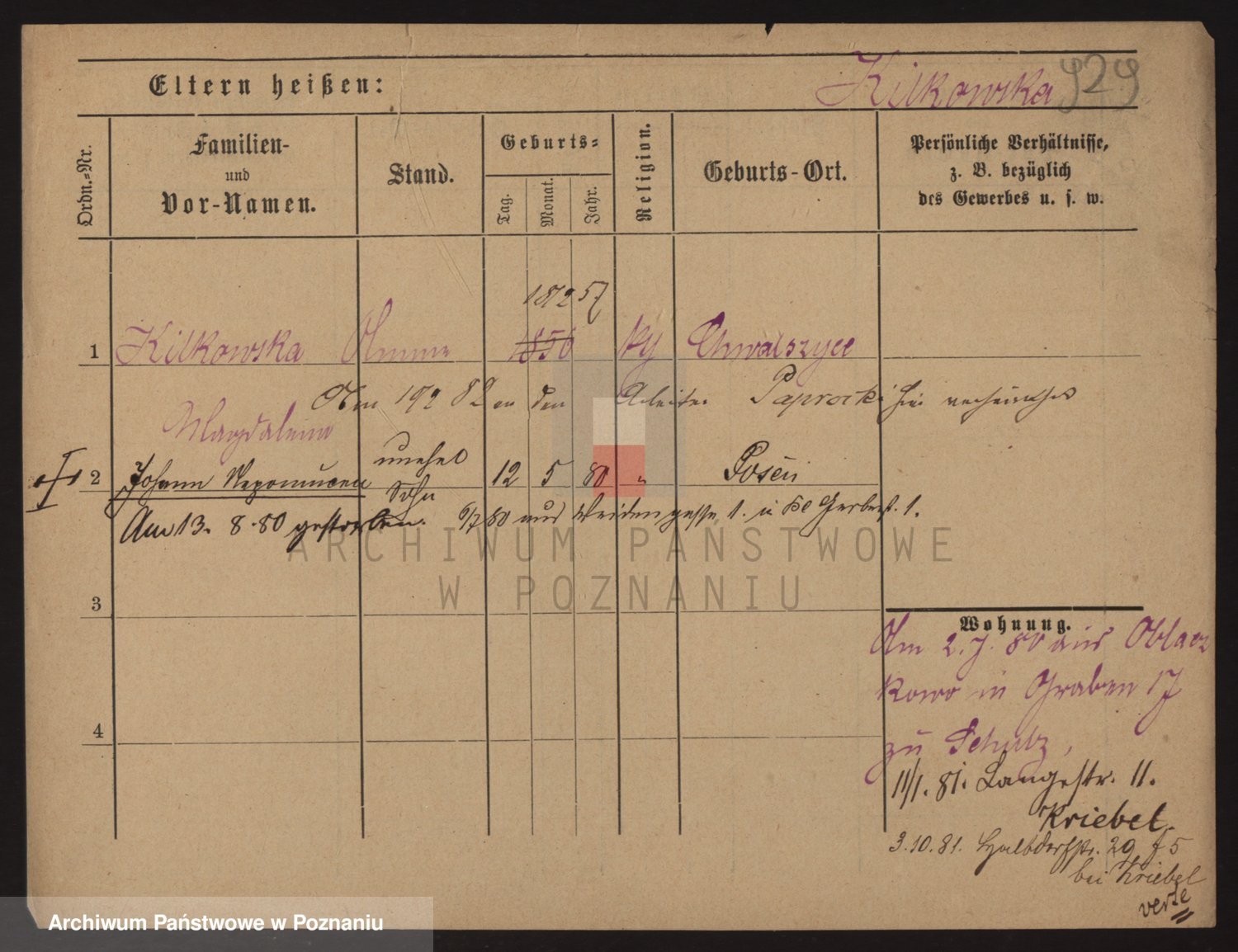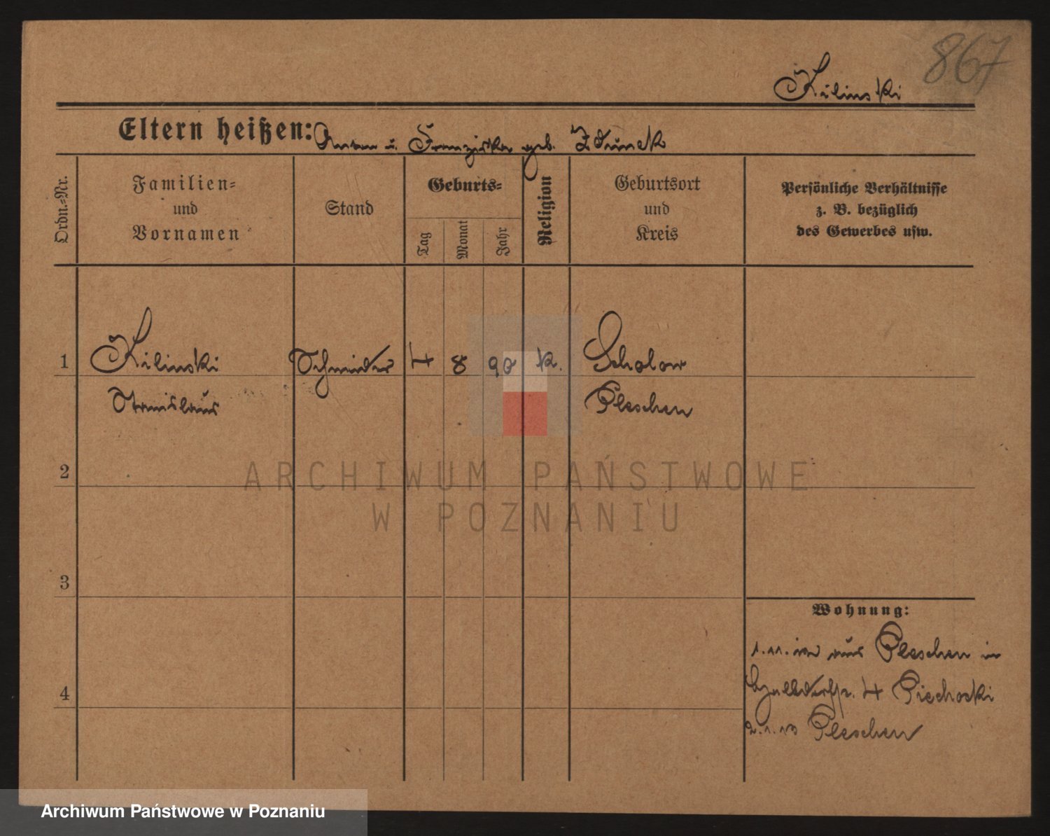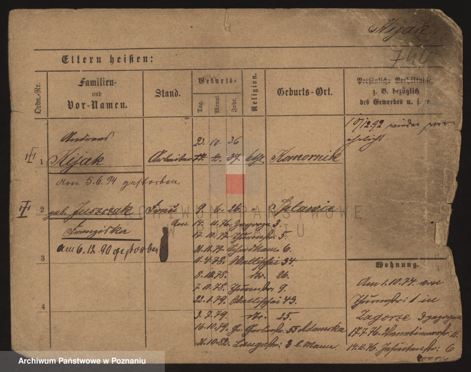 Podgląd karty osobowej dostępny jest po kliknięciu na nazwisko lub ikonkę karty. Można dokonywać powiększenia (ikony na górze) lub przechodzić między kolejnymi skanami (strzałki po bokach).