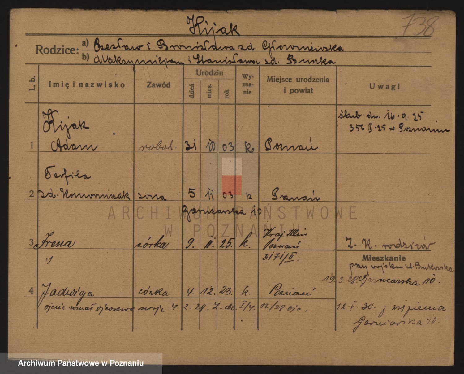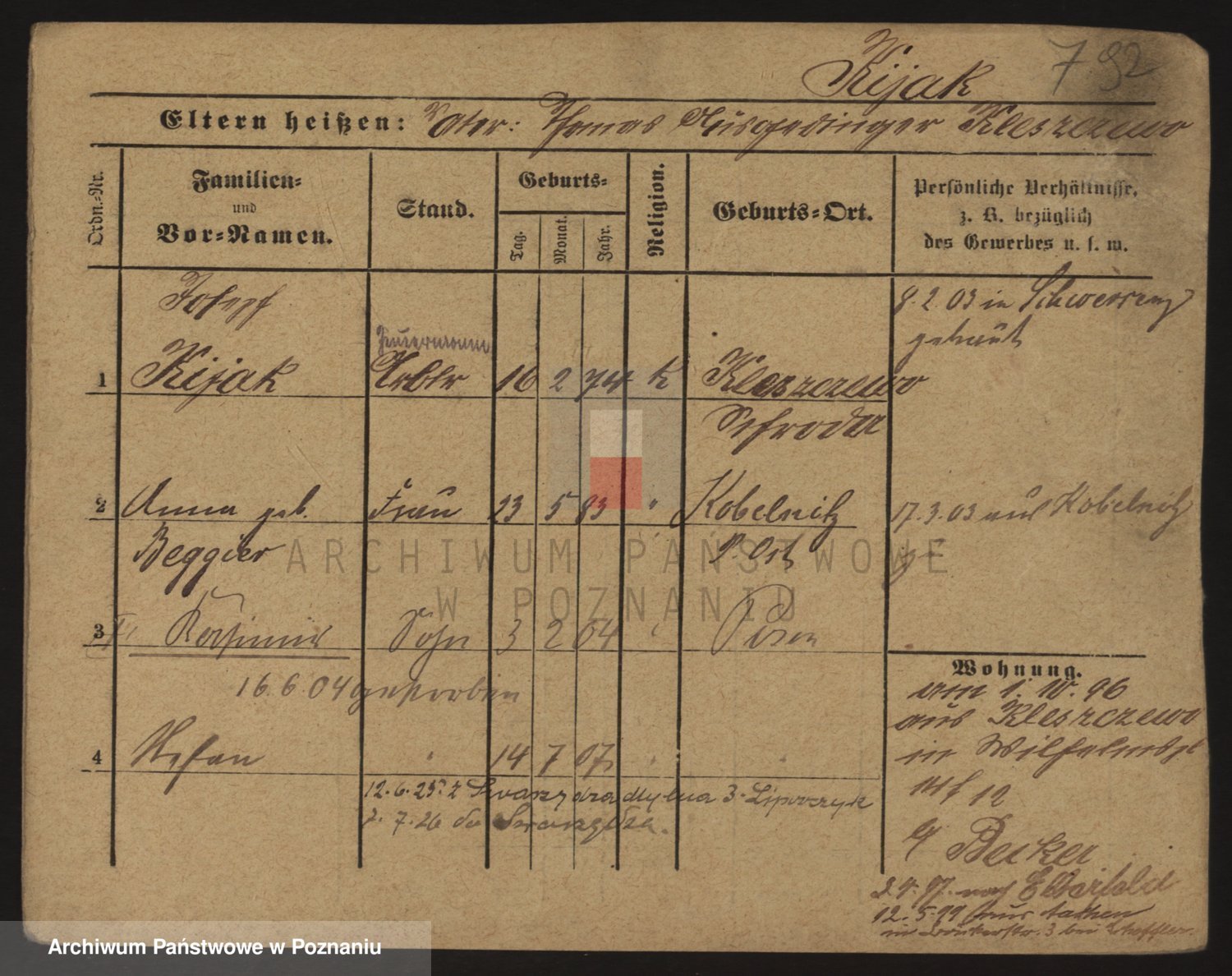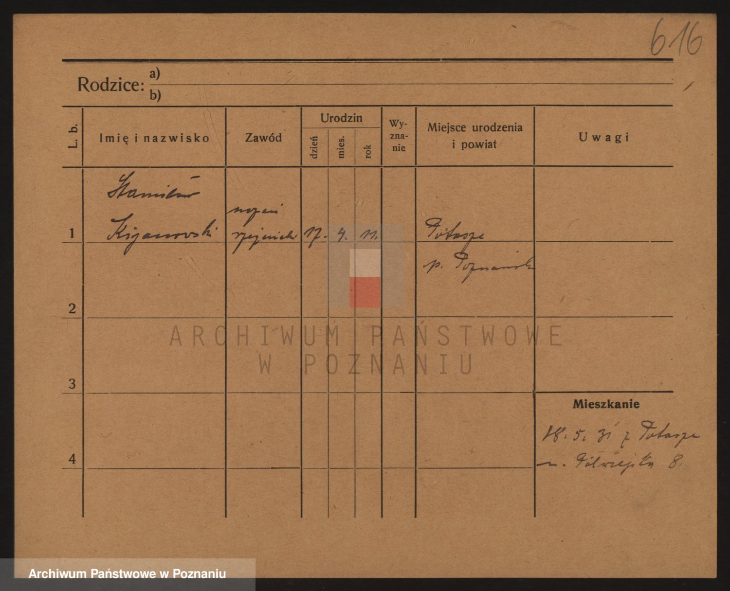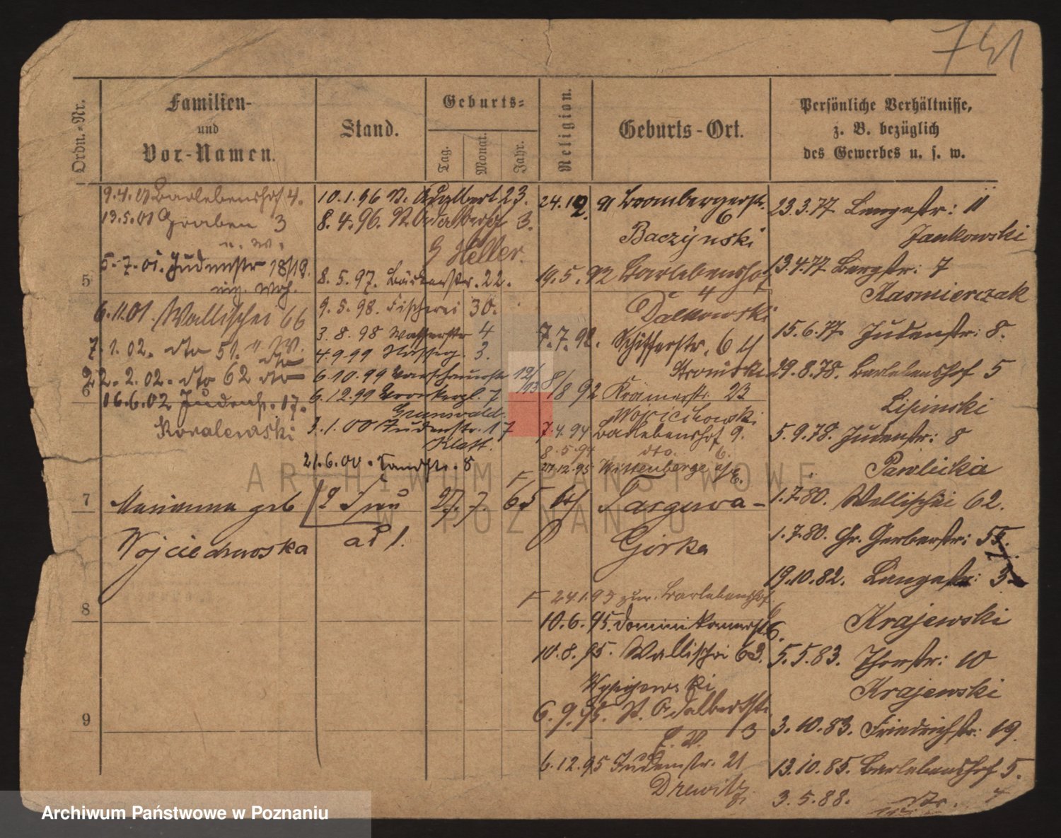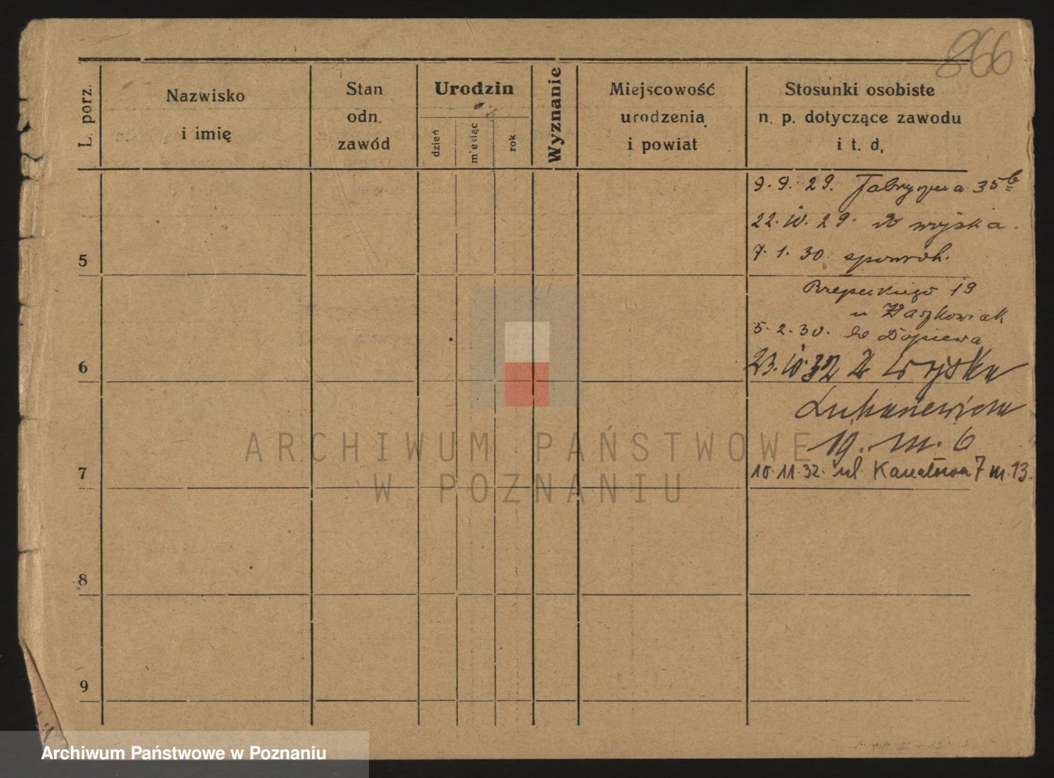 Podgląd karty osobowej dostępny jest po kliknięciu na nazwisko lub ikonkę karty. Można dokonywać powiększenia (ikony na górze) lub przechodzić między kolejnymi skanami (strzałki po bokach).
