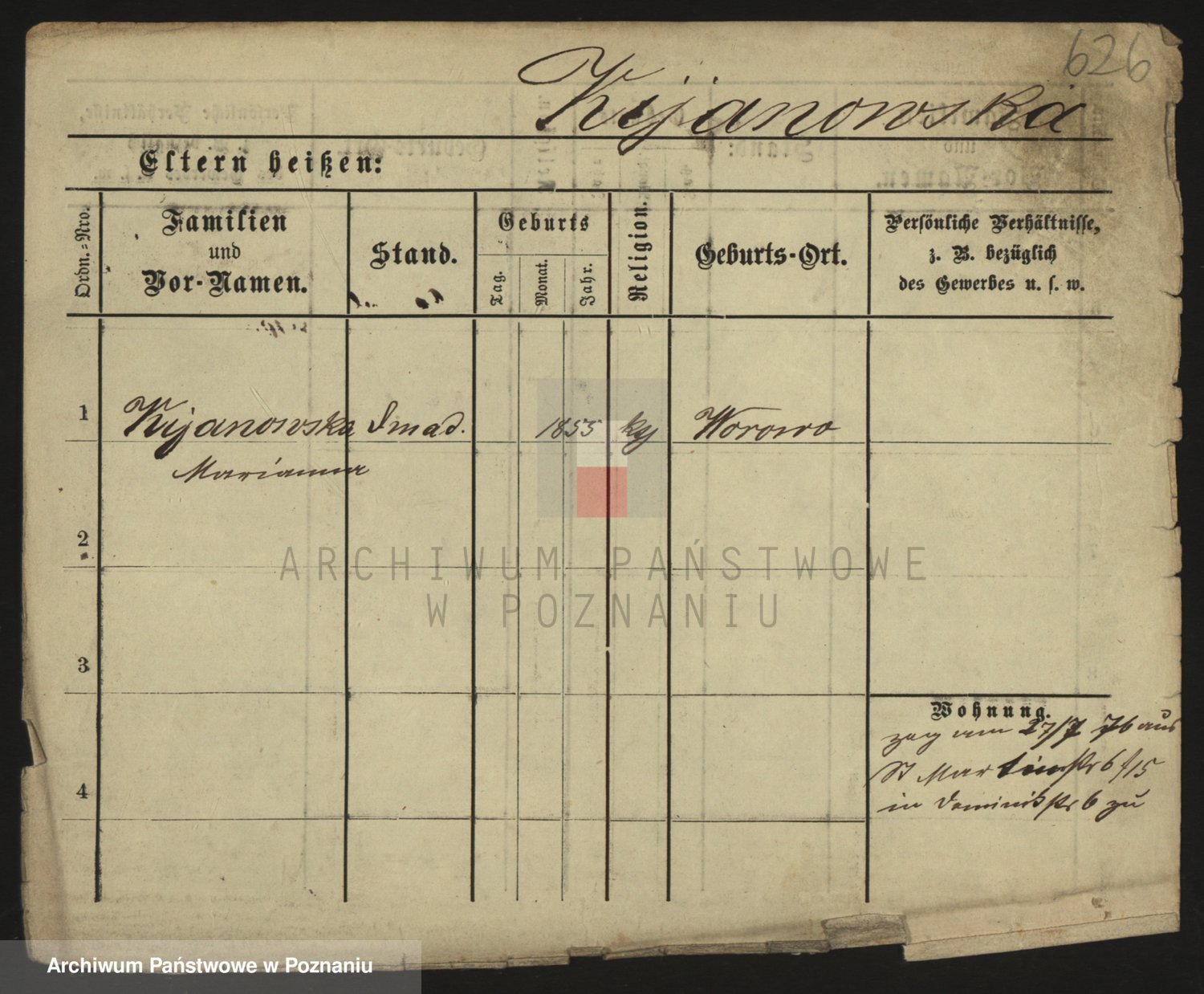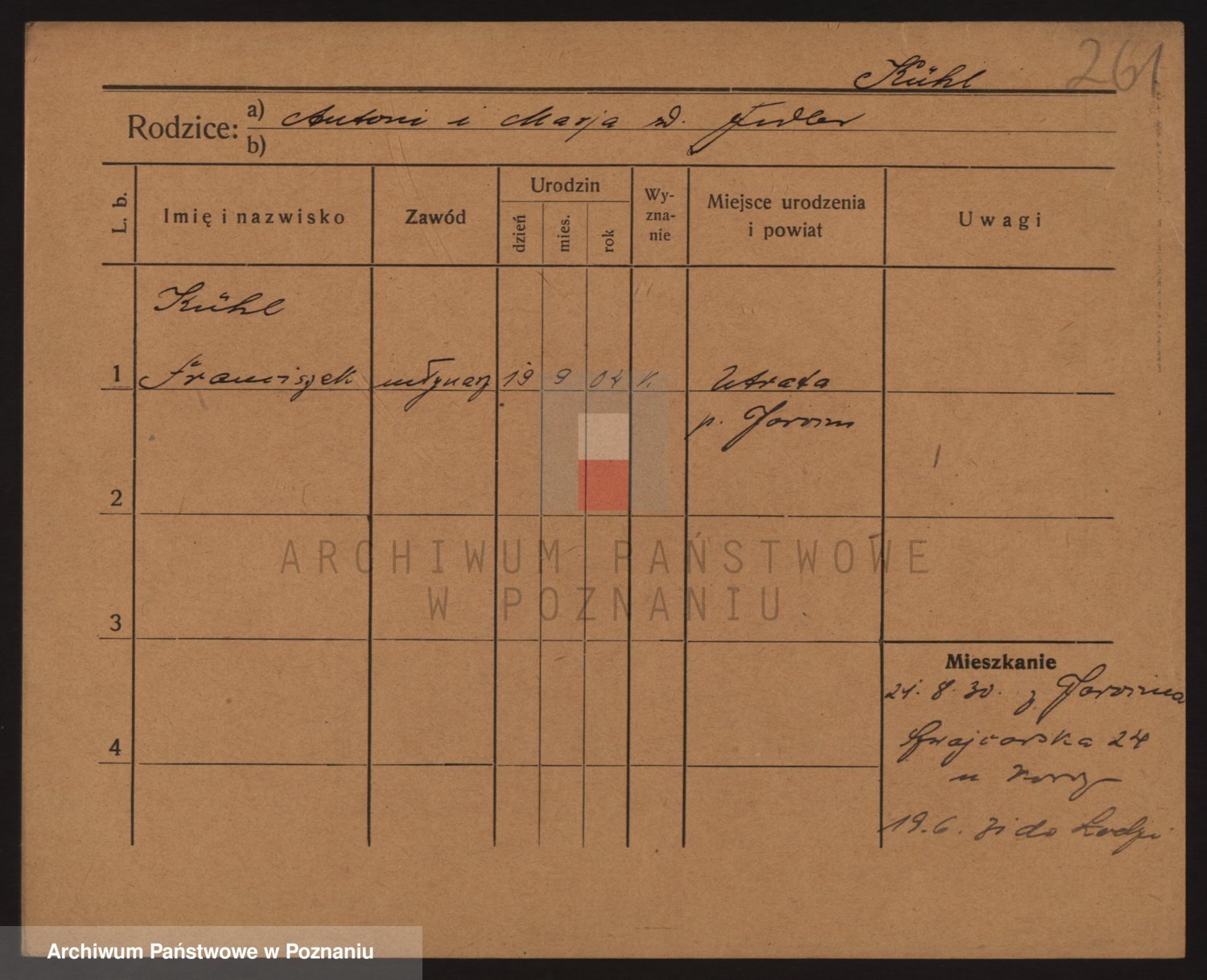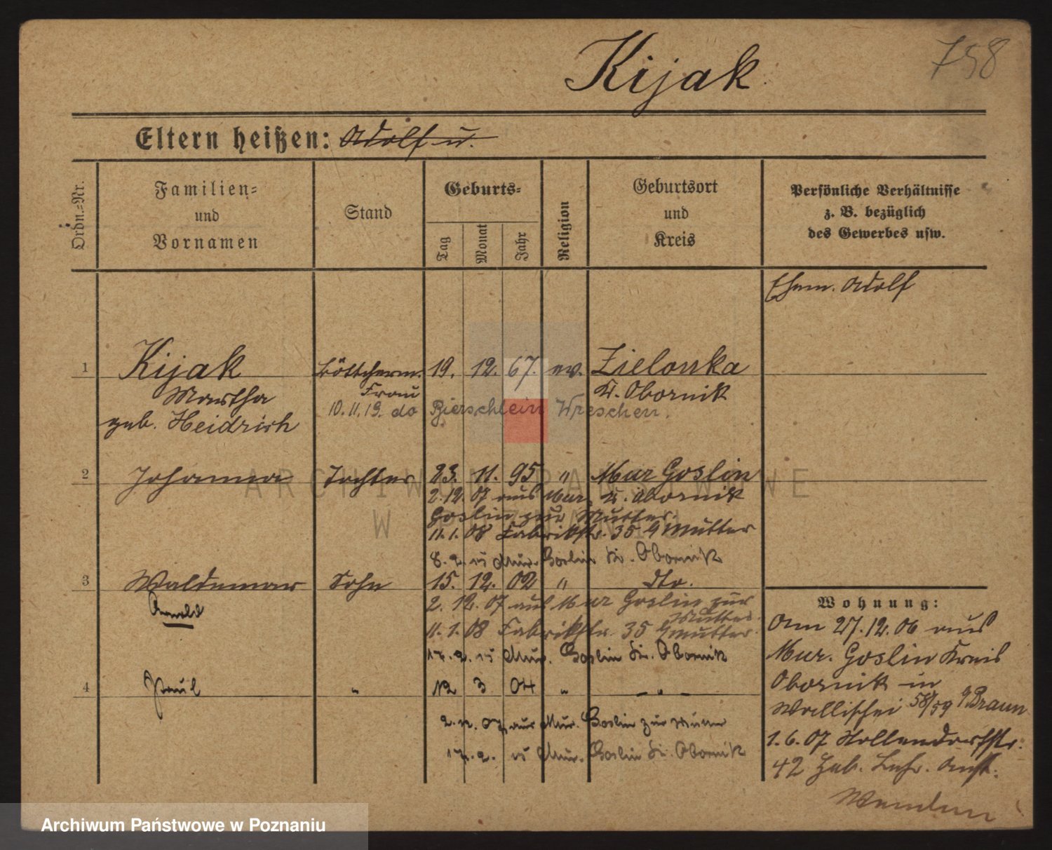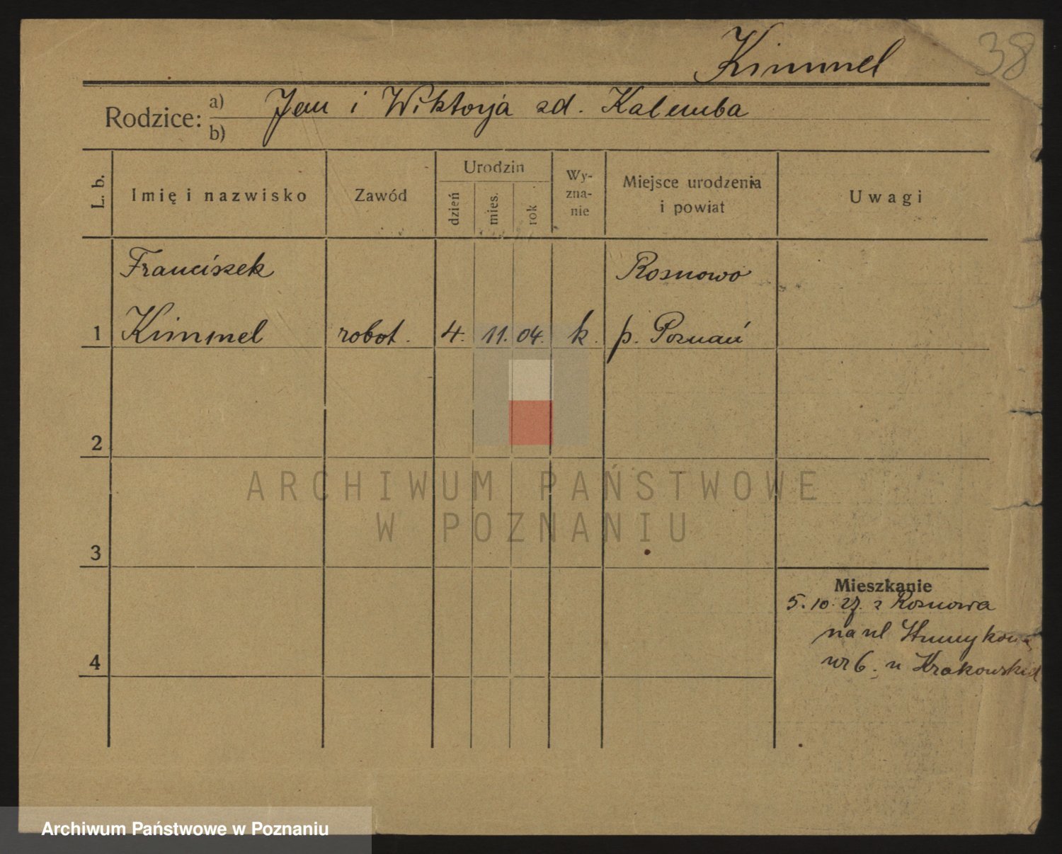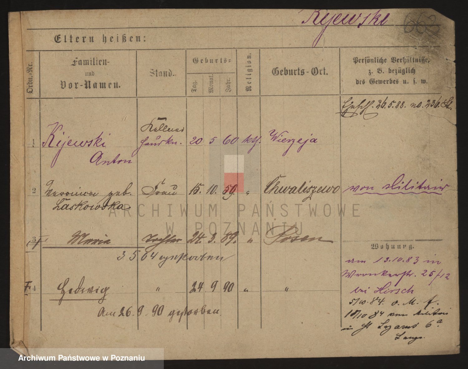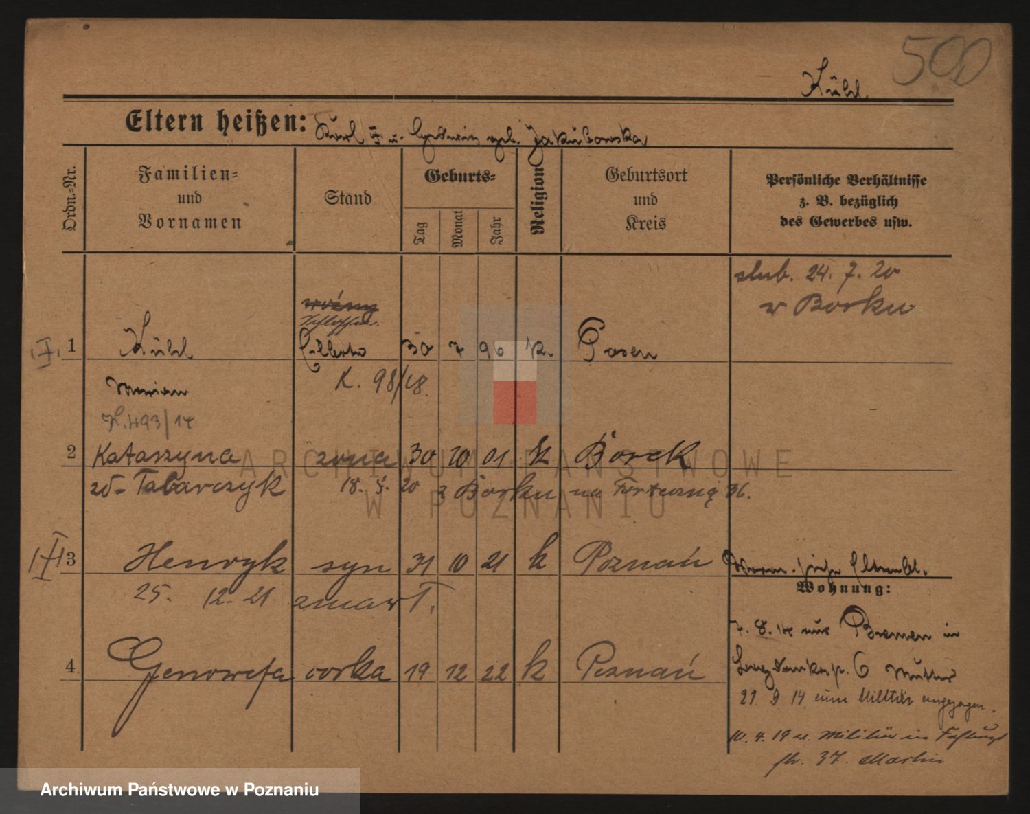 Podgląd karty osobowej dostępny jest po kliknięciu na nazwisko lub ikonkę karty. Można dokonywać powiększenia (ikony na górze) lub przechodzić między kolejnymi skanami (strzałki po bokach).