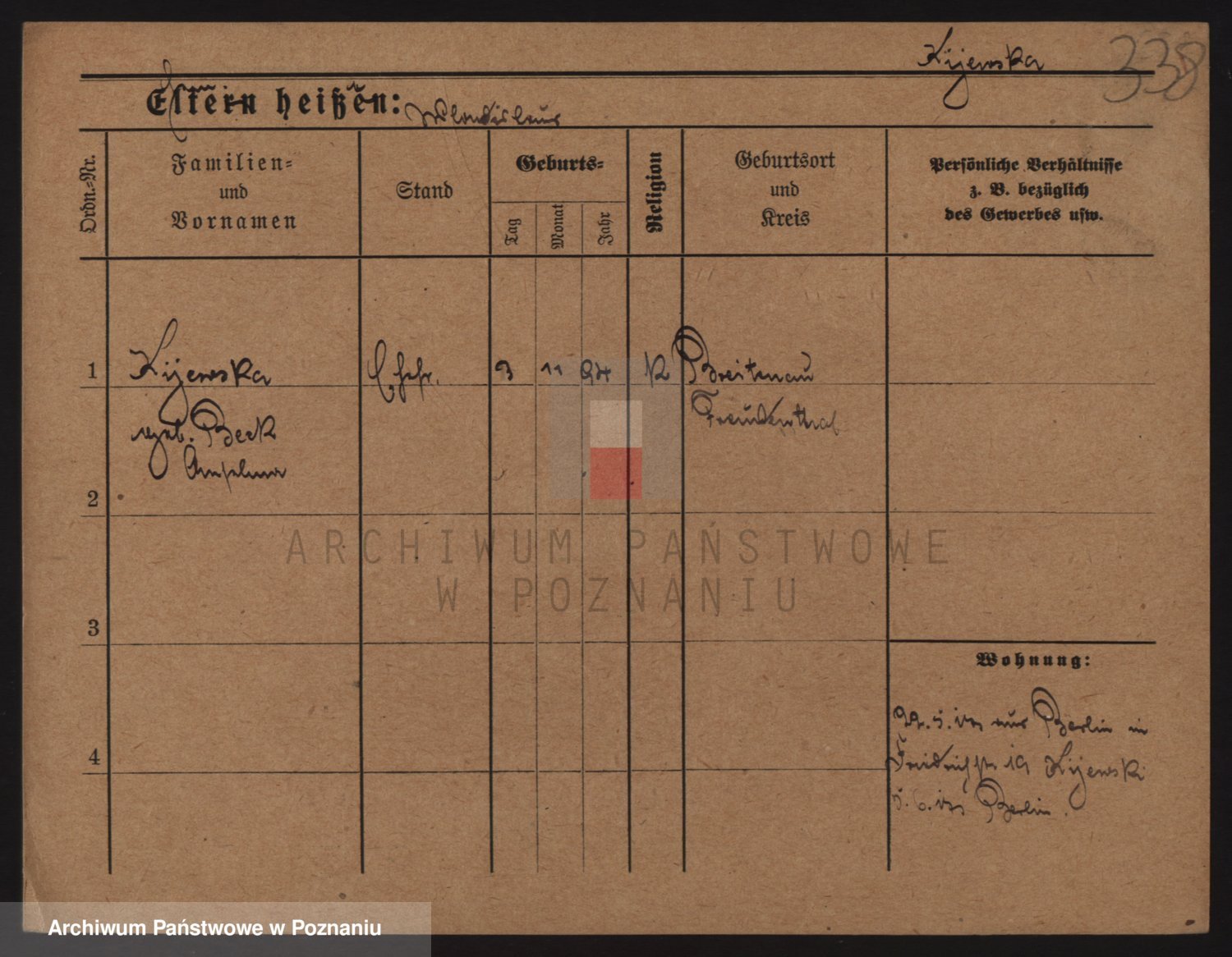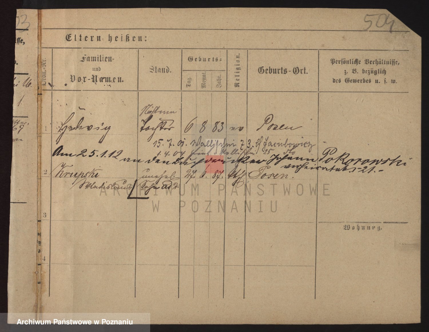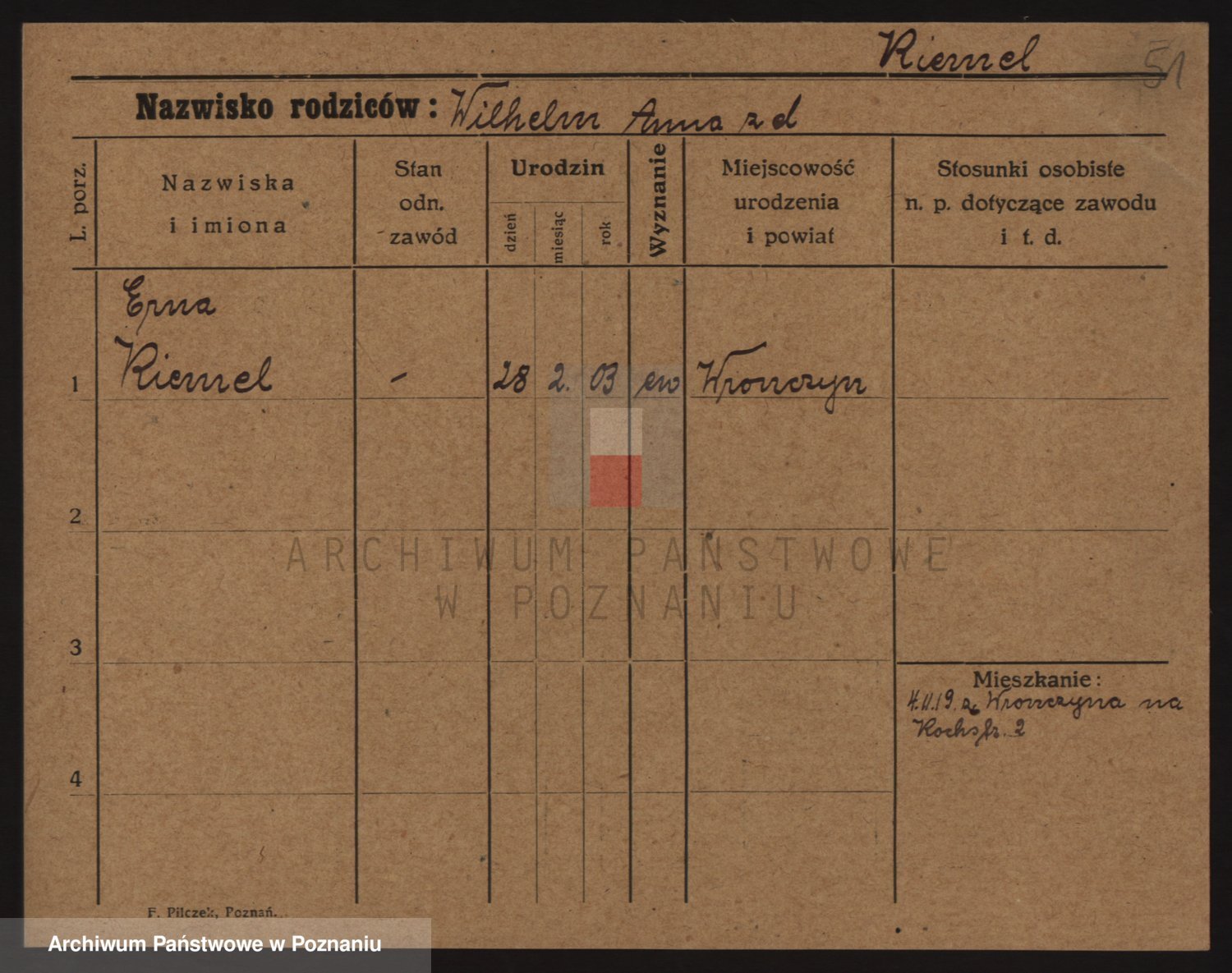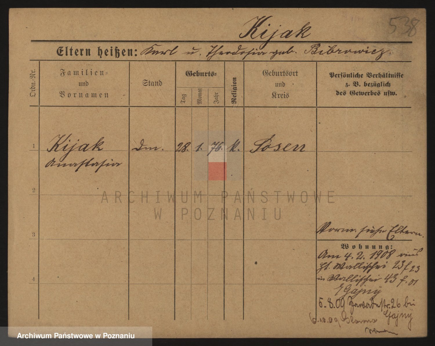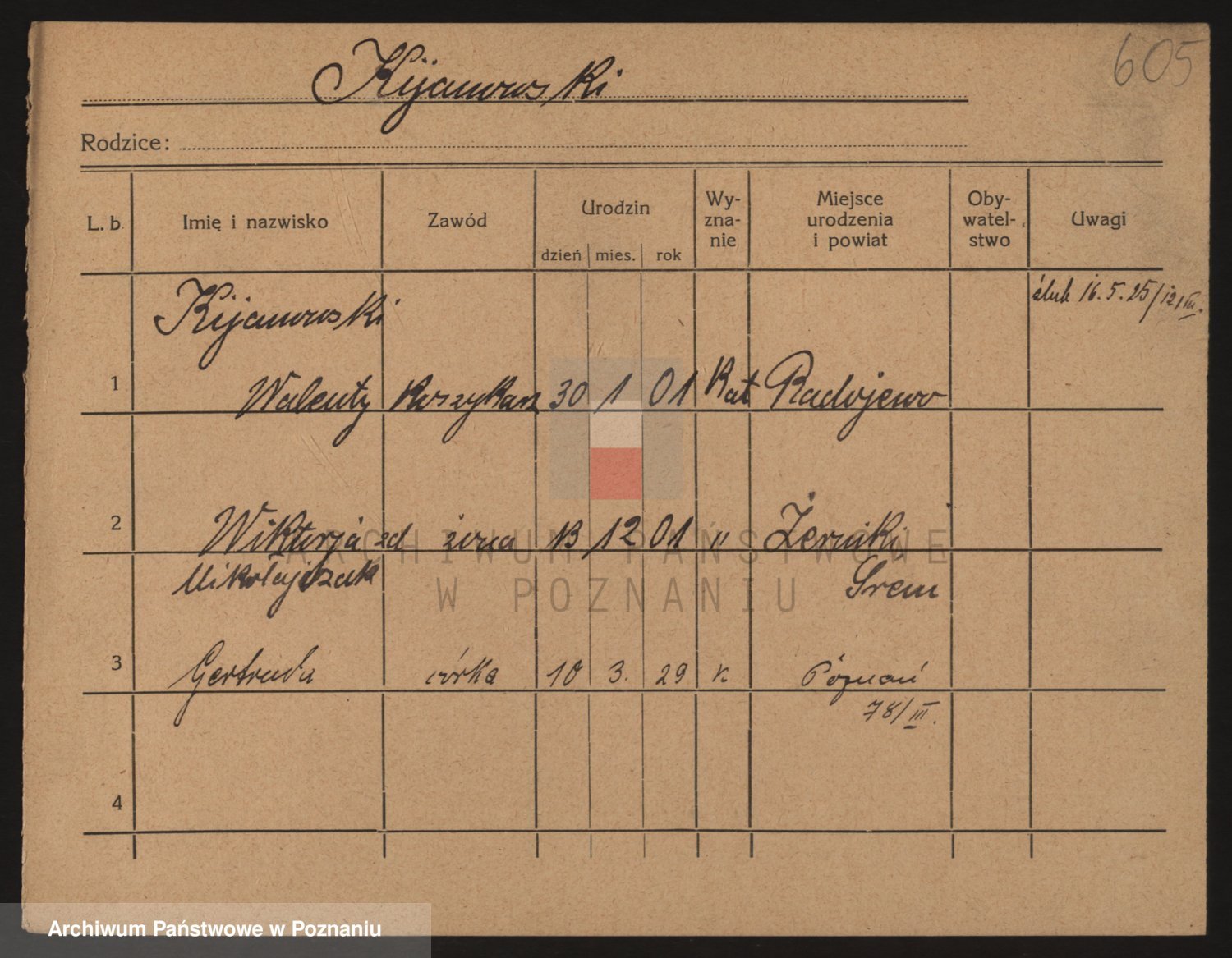 Podgląd karty osobowej dostępny jest po kliknięciu na nazwisko lub ikonkę karty. Można dokonywać powiększenia (ikony na górze) lub przechodzić między kolejnymi skanami (strzałki po bokach).