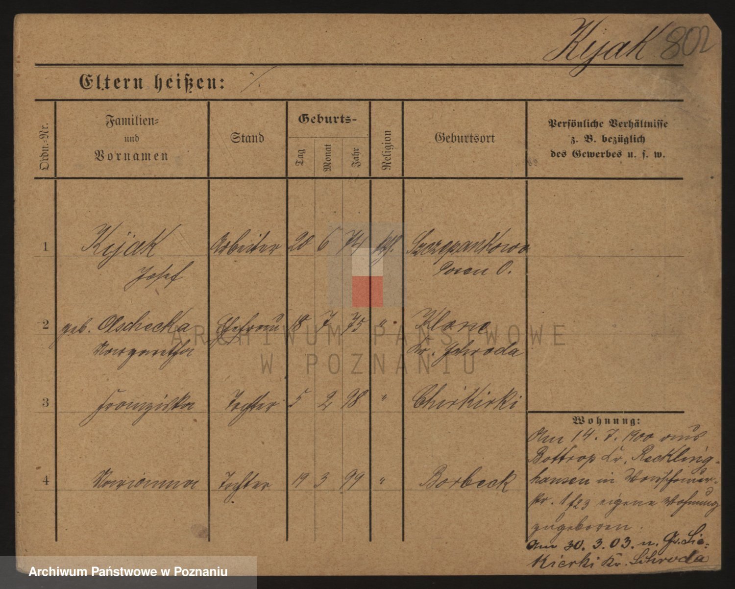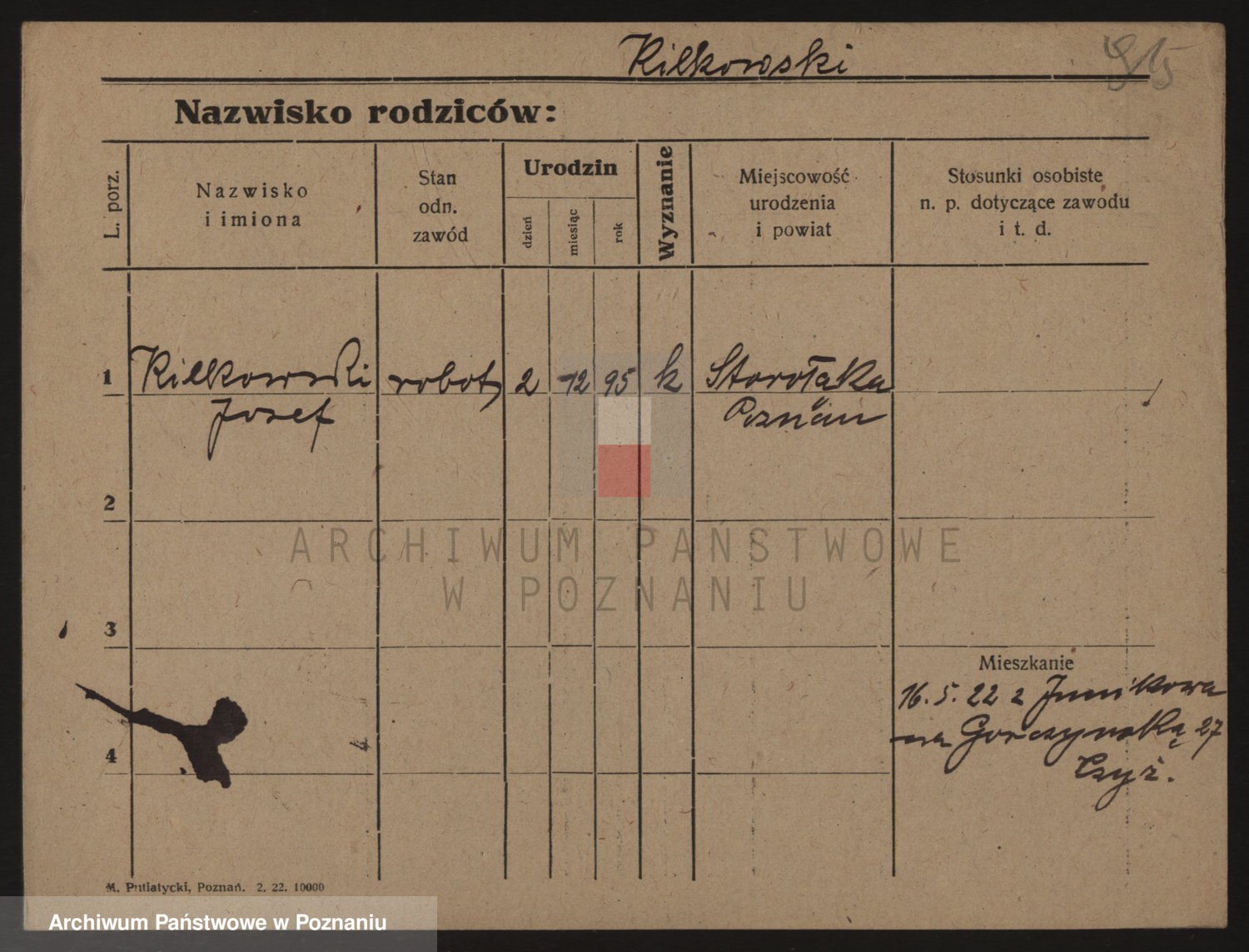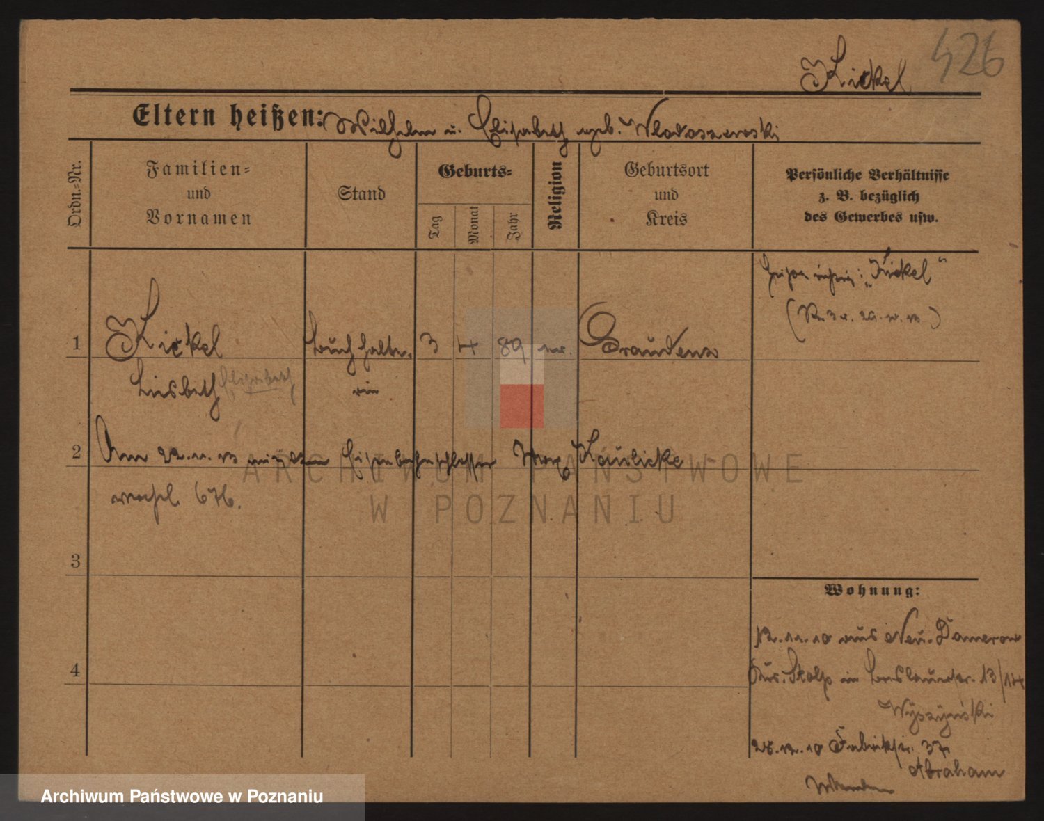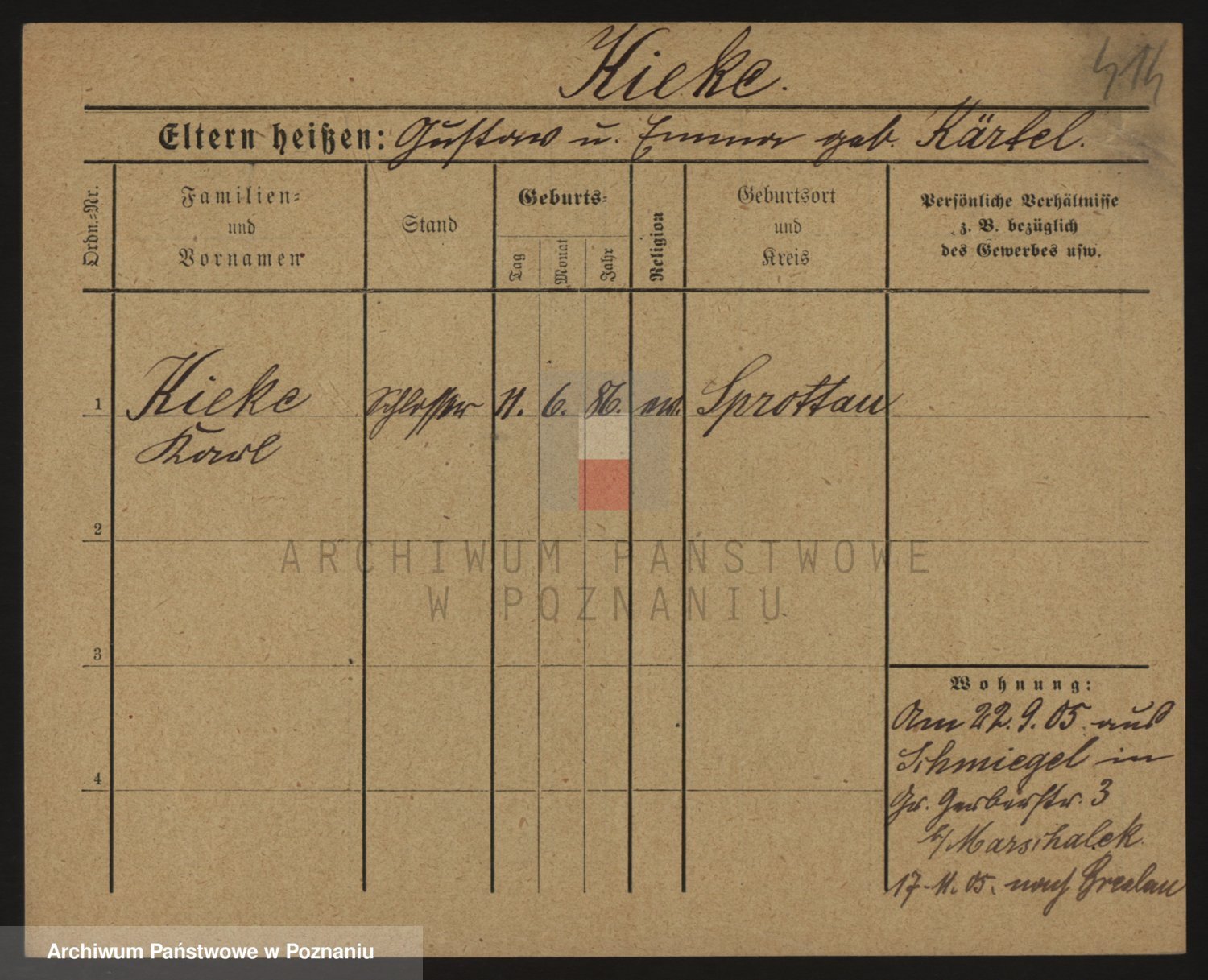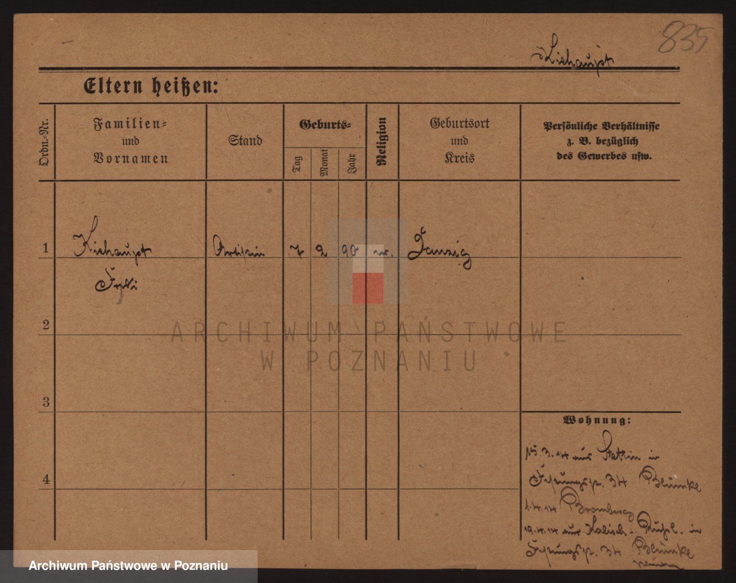 Podgląd karty osobowej dostępny jest po kliknięciu na nazwisko lub ikonkę karty. Można dokonywać powiększenia (ikony na górze) lub przechodzić między kolejnymi skanami (strzałki po bokach).