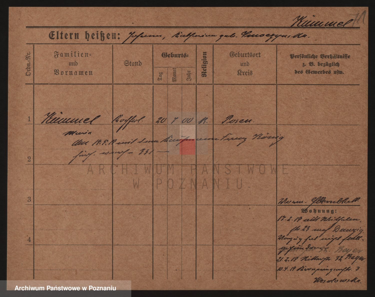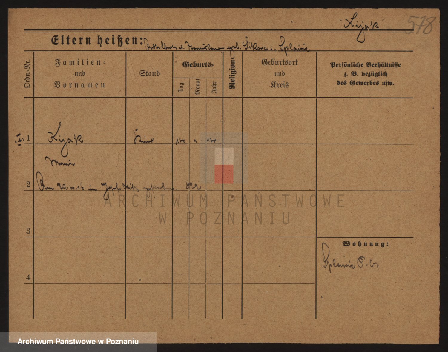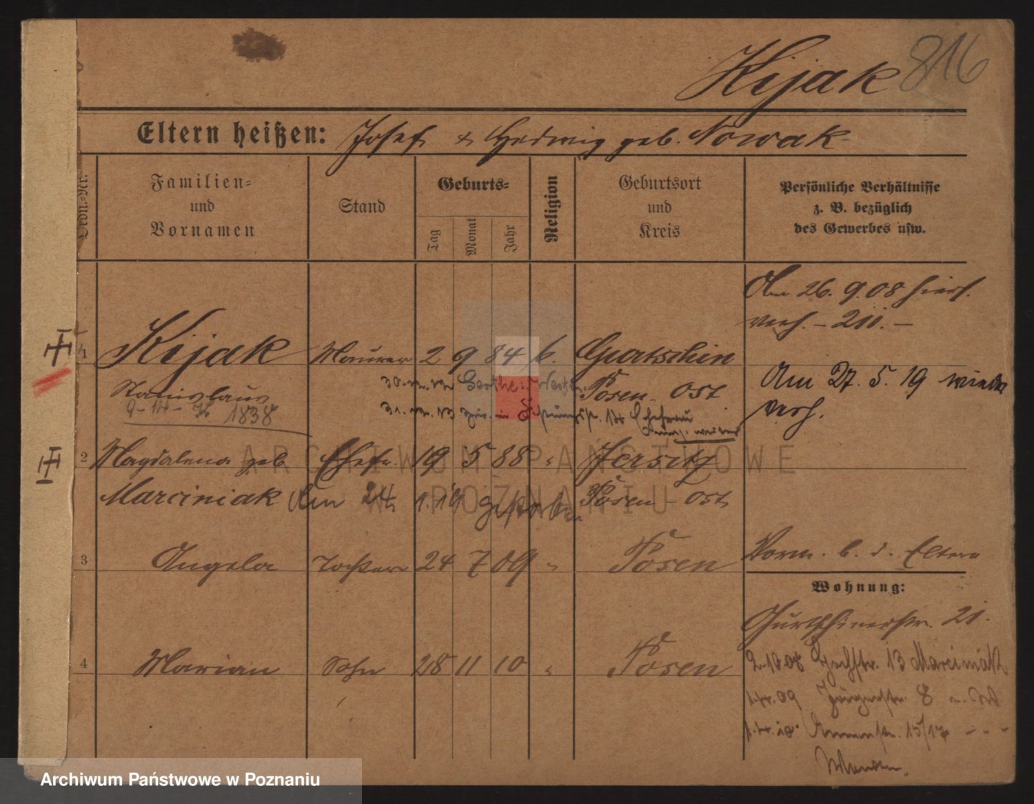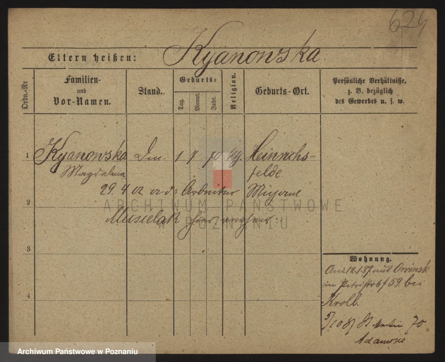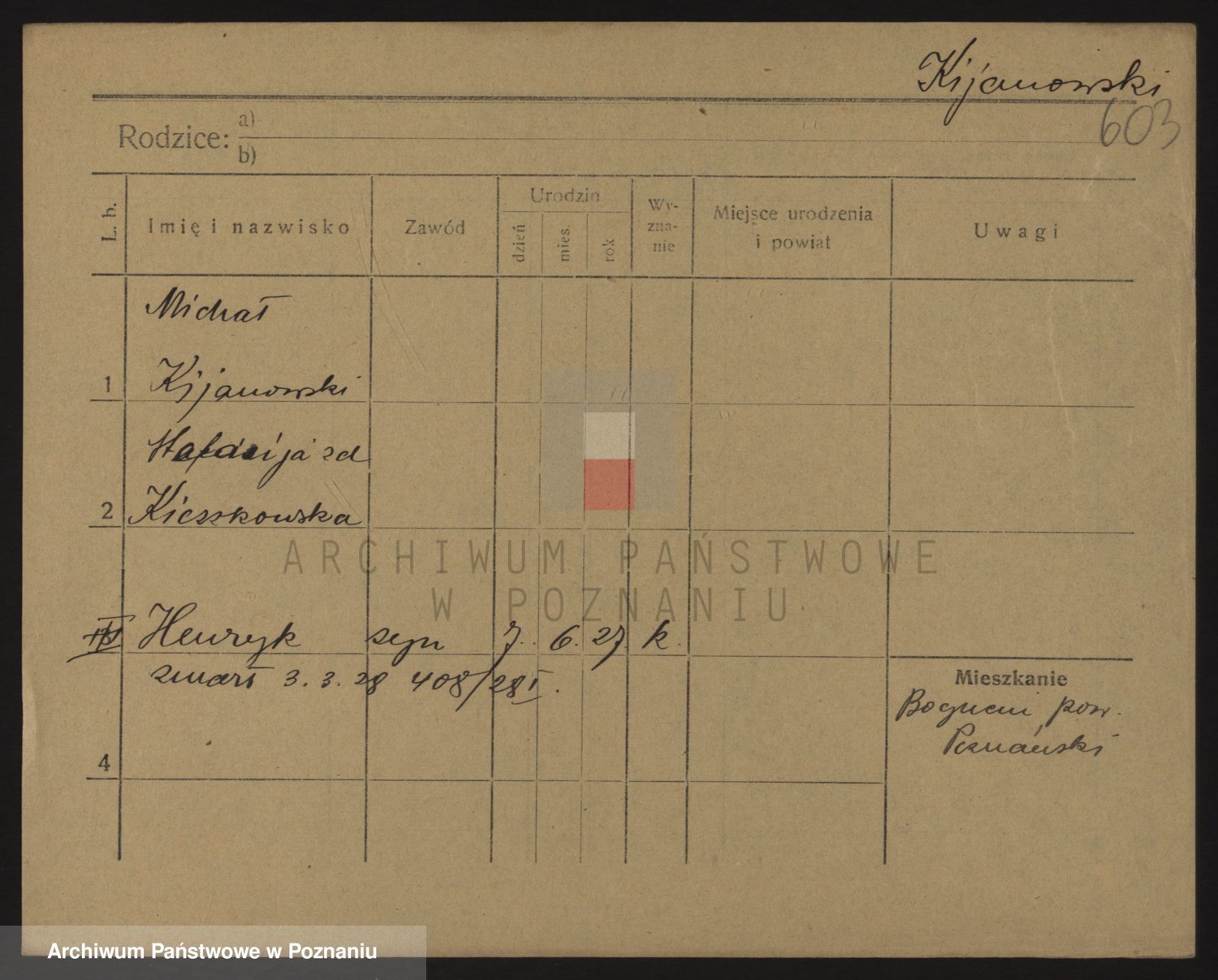 Podgląd karty osobowej dostępny jest po kliknięciu na nazwisko lub ikonkę karty. Można dokonywać powiększenia (ikony na górze) lub przechodzić między kolejnymi skanami (strzałki po bokach).