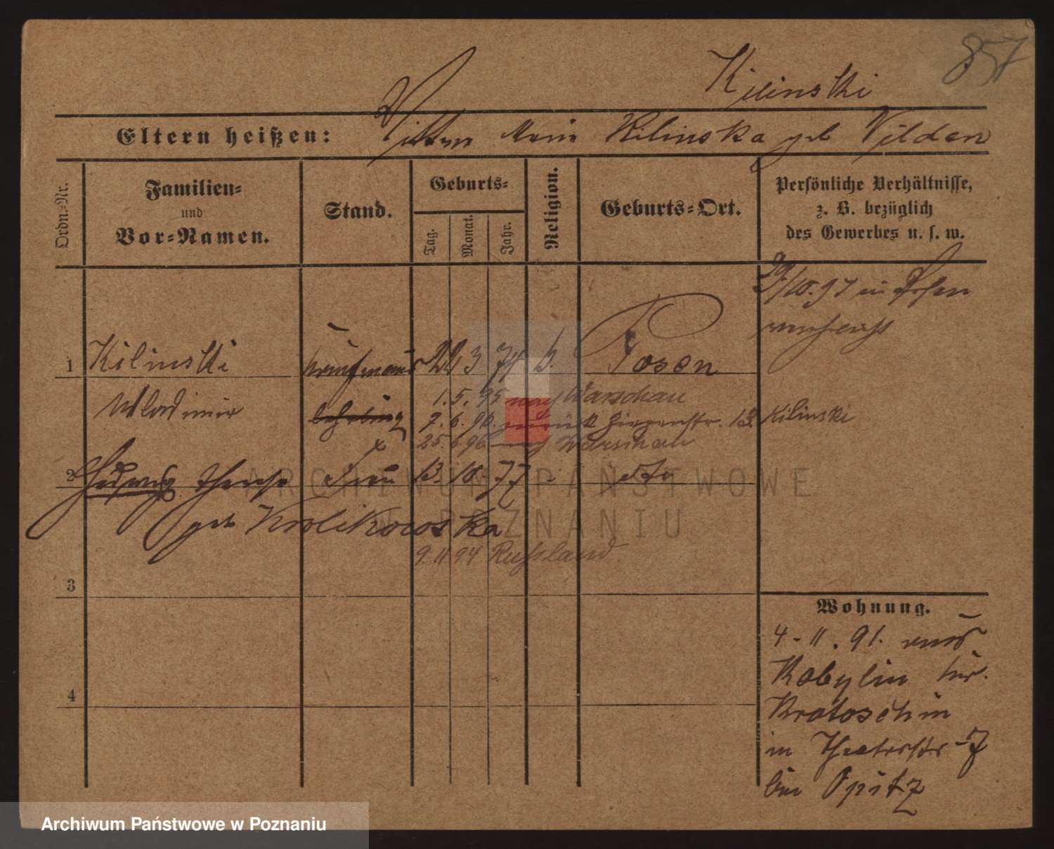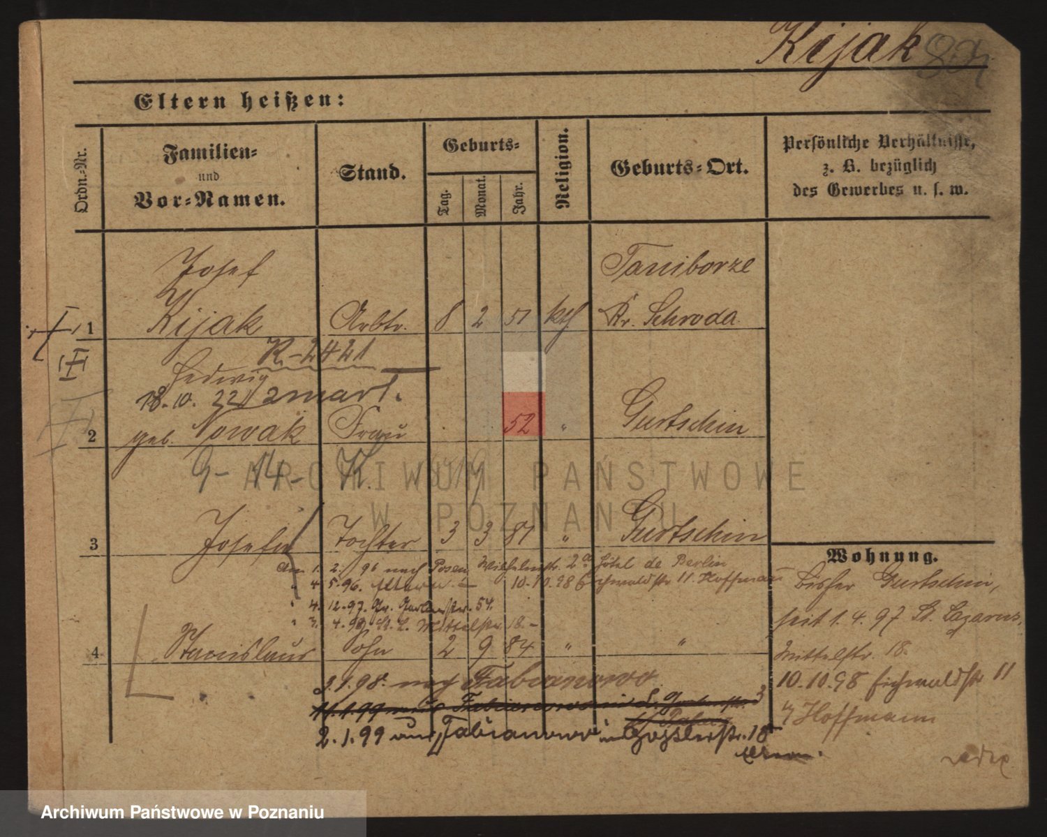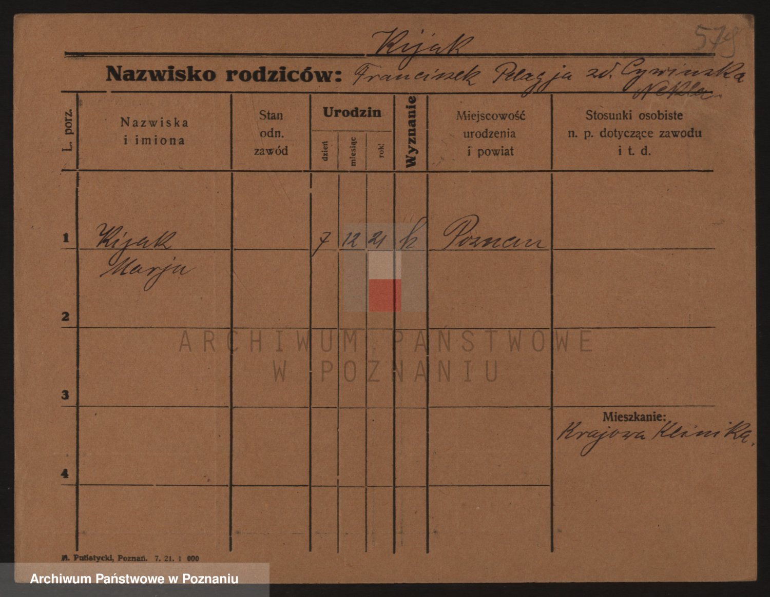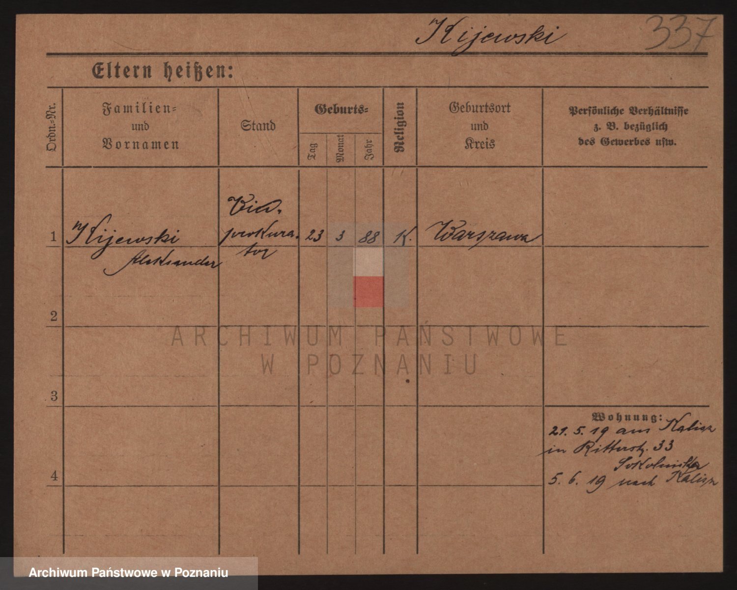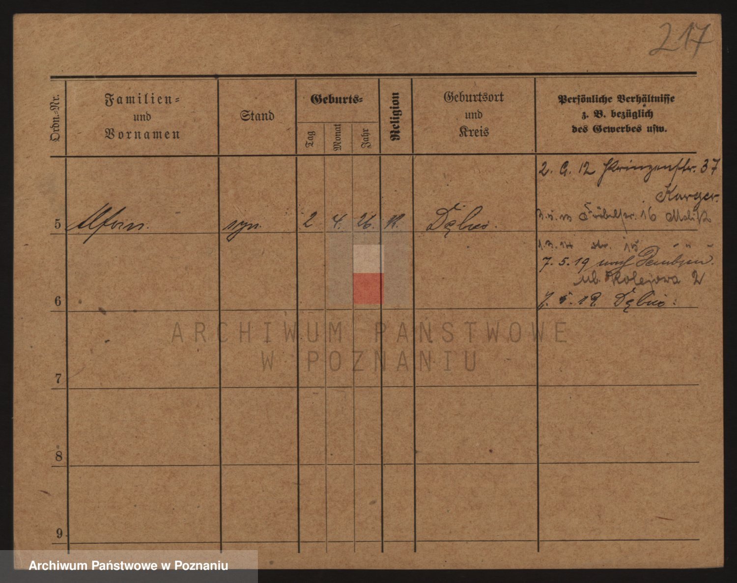 Podgląd karty osobowej dostępny jest po kliknięciu na nazwisko lub ikonkę karty. Można dokonywać powiększenia (ikony na górze) lub przechodzić między kolejnymi skanami (strzałki po bokach).