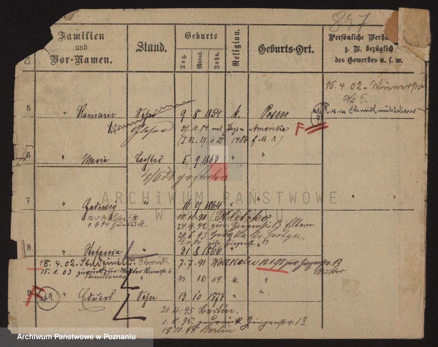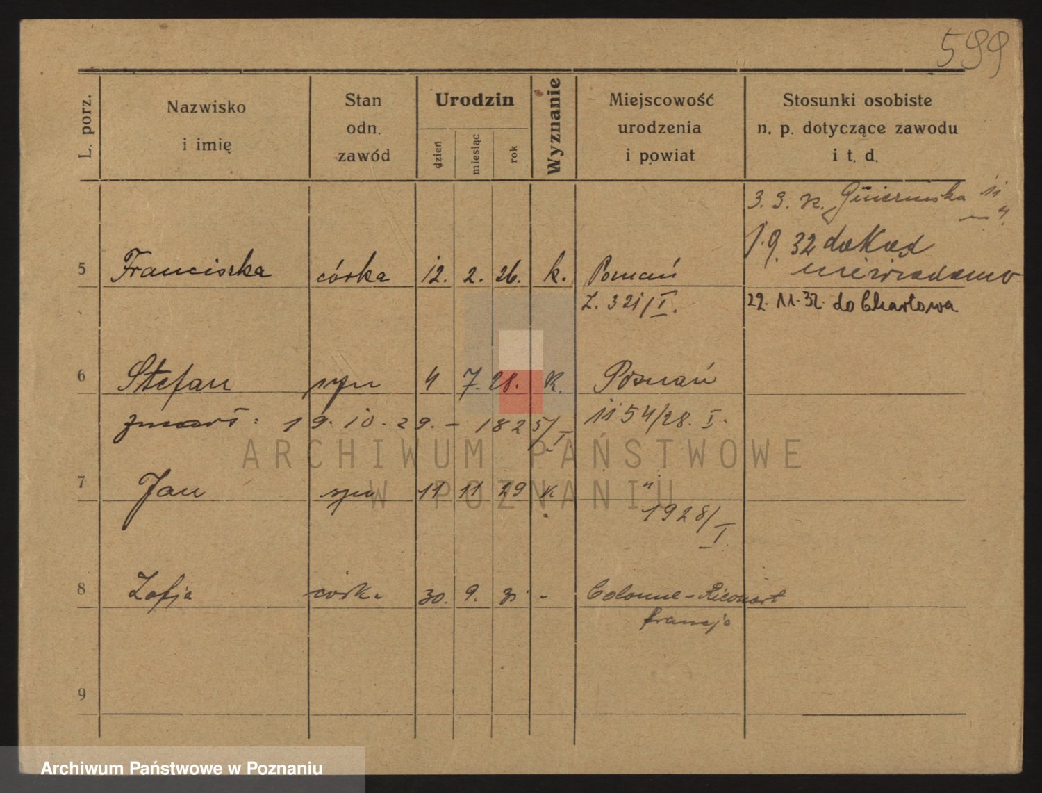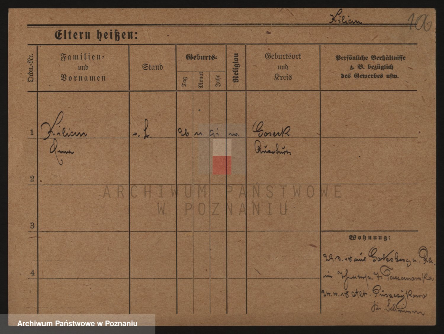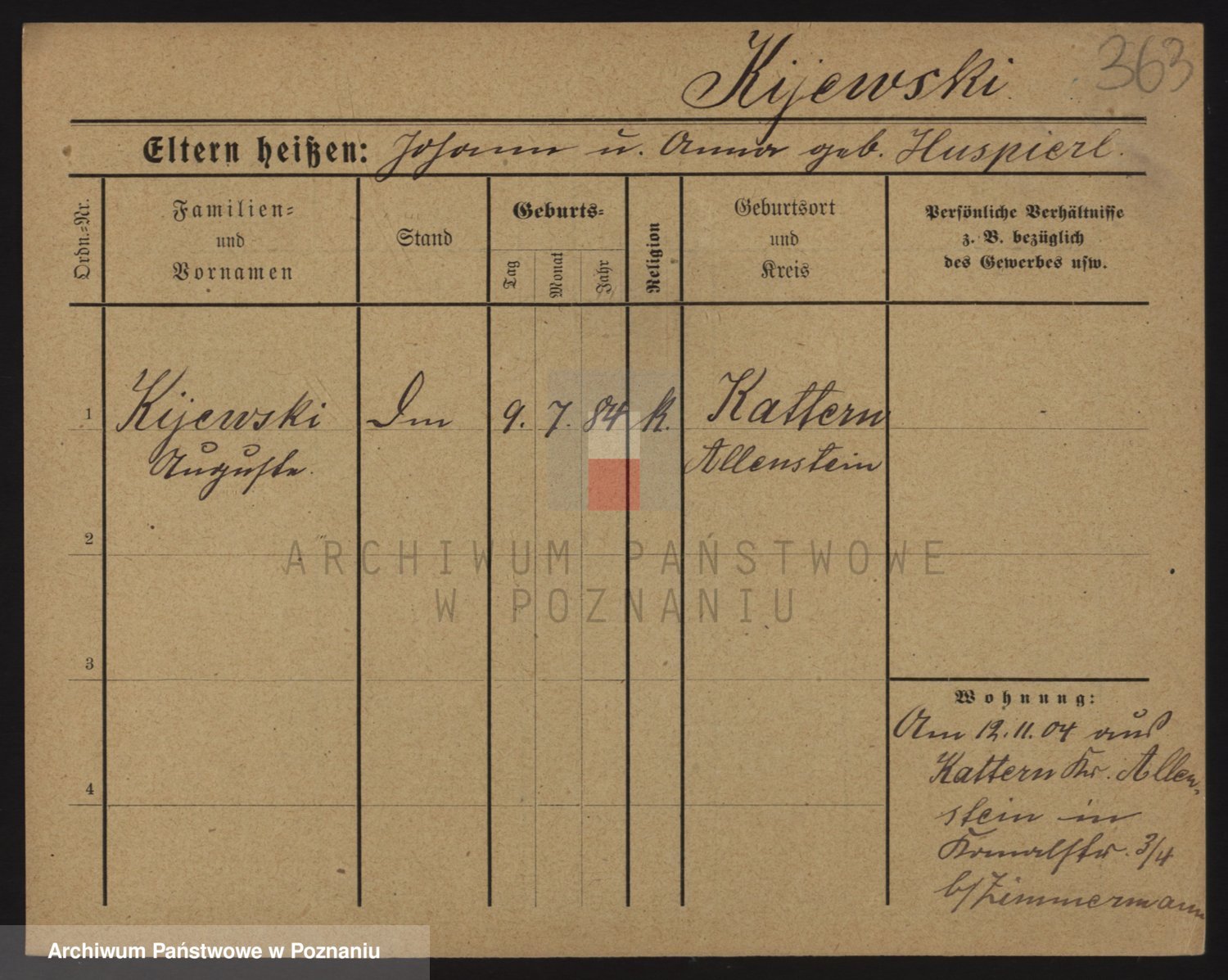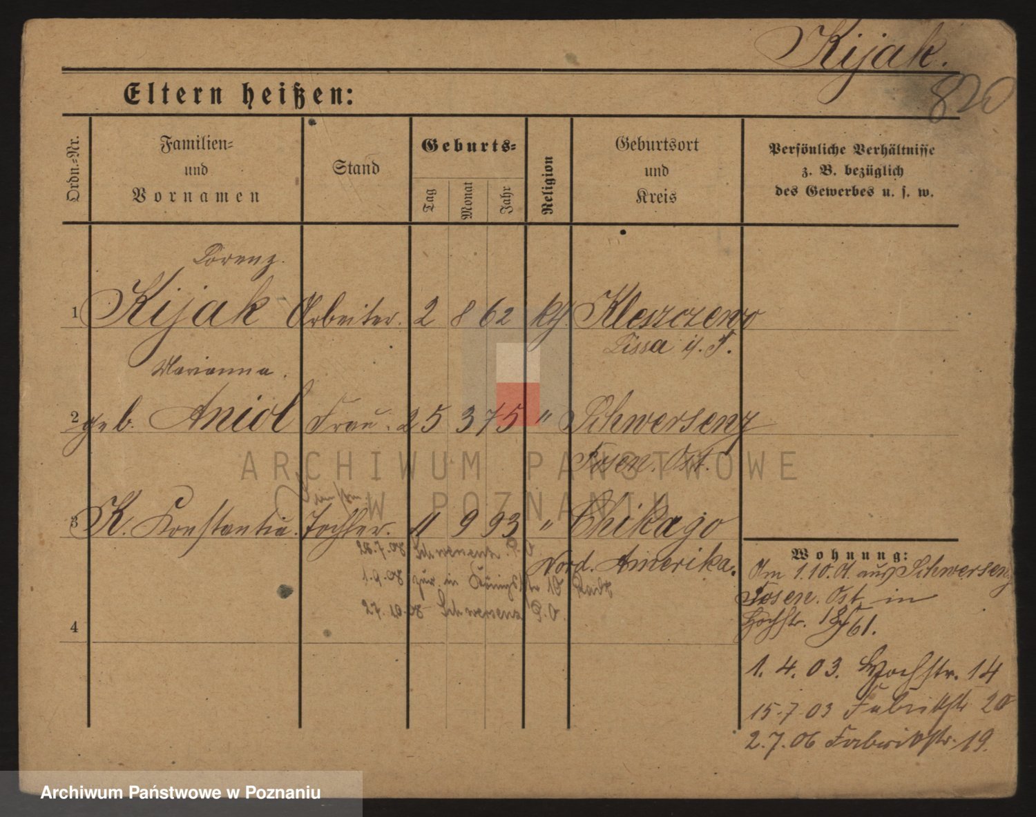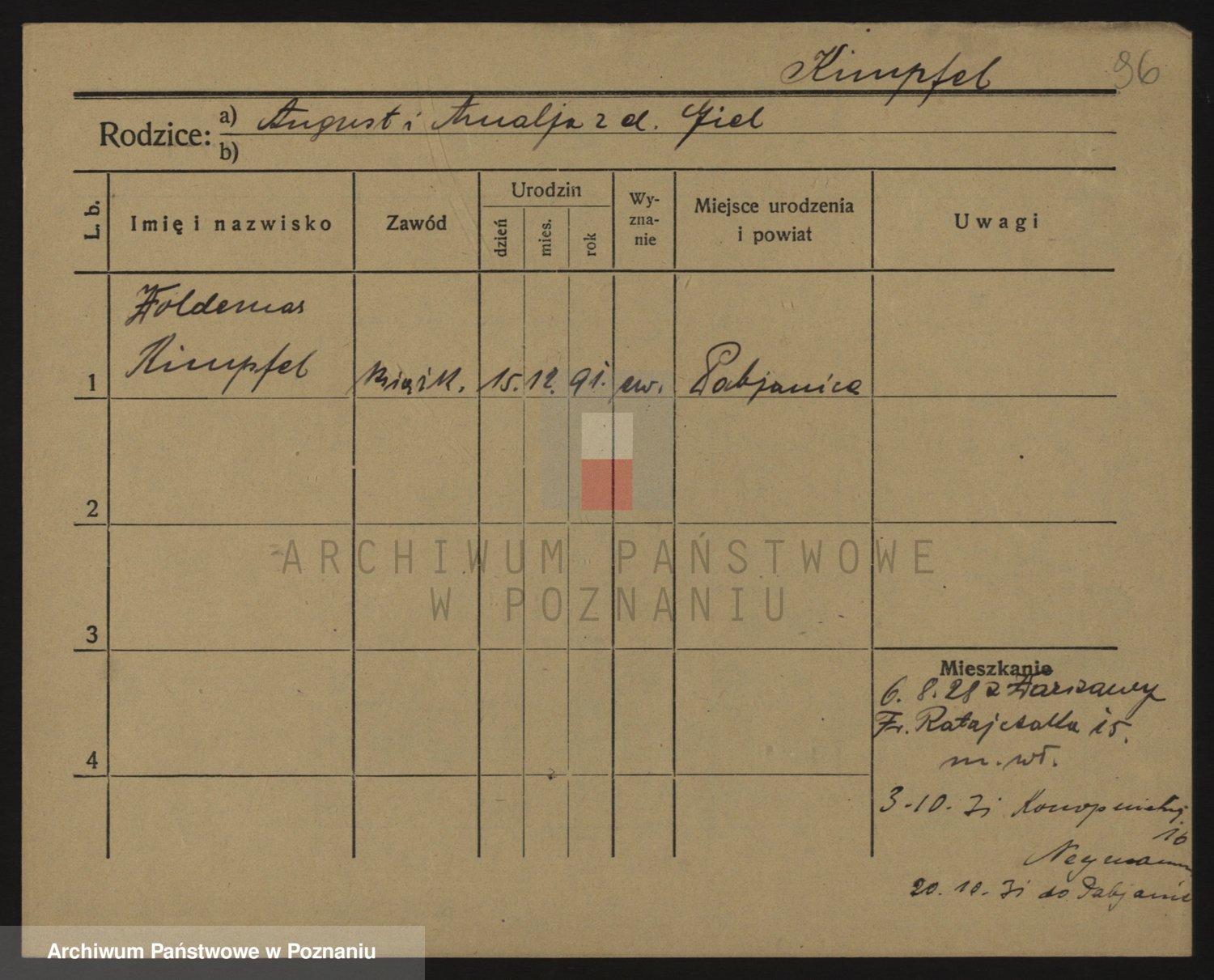 Podgląd karty osobowej dostępny jest po kliknięciu na nazwisko lub ikonkę karty. Można dokonywać powiększenia (ikony na górze) lub przechodzić między kolejnymi skanami (strzałki po bokach).