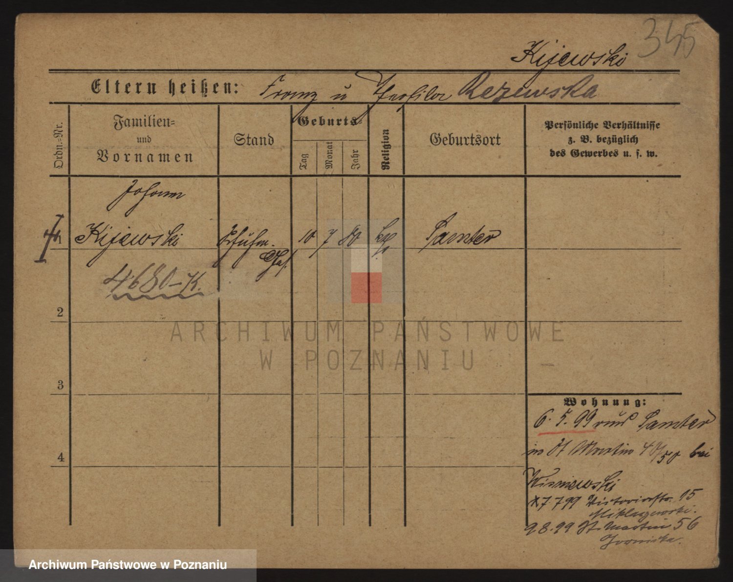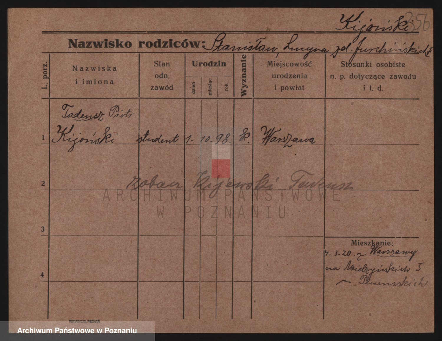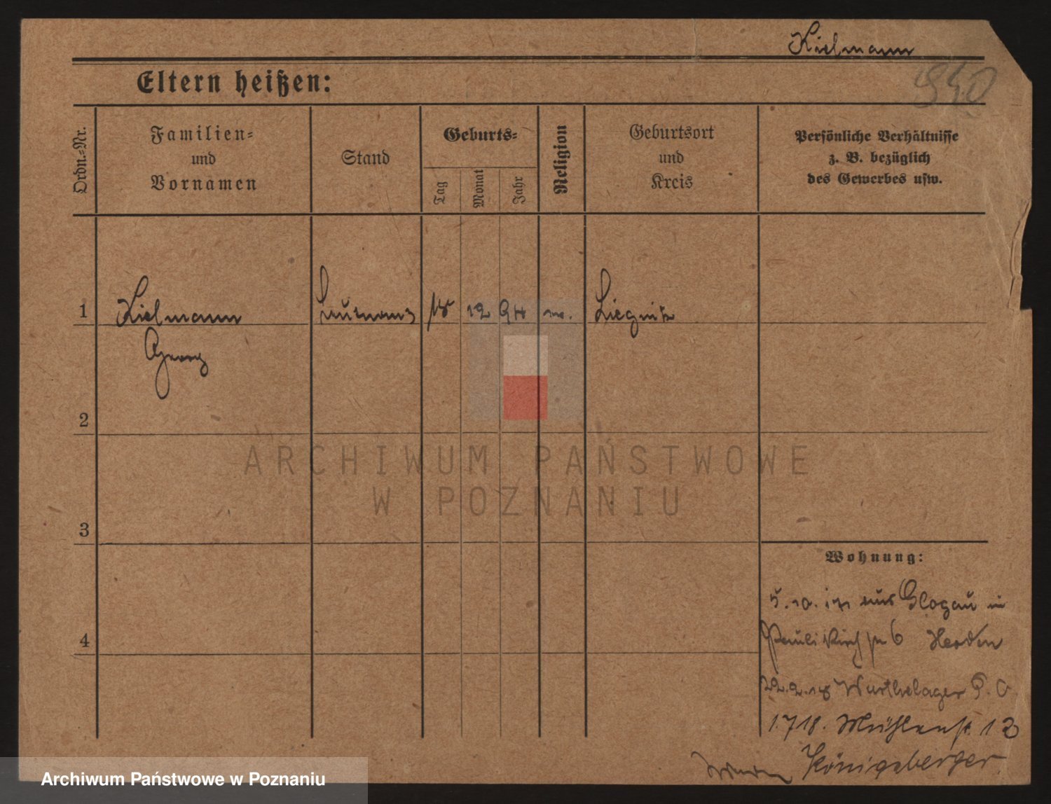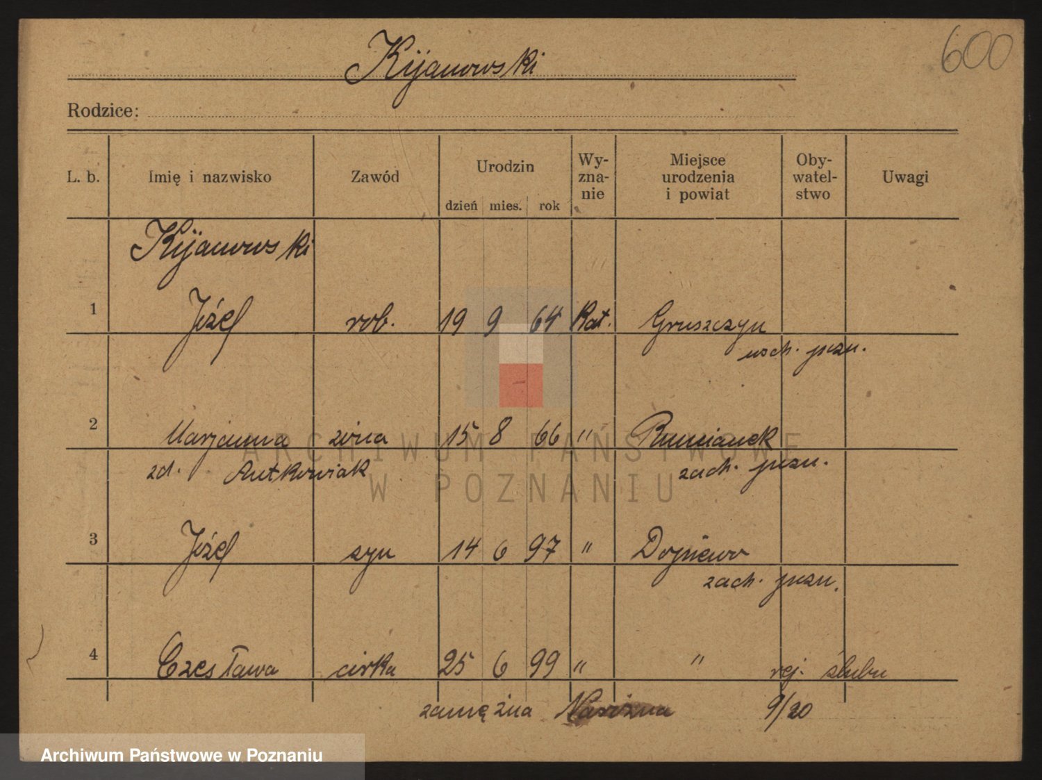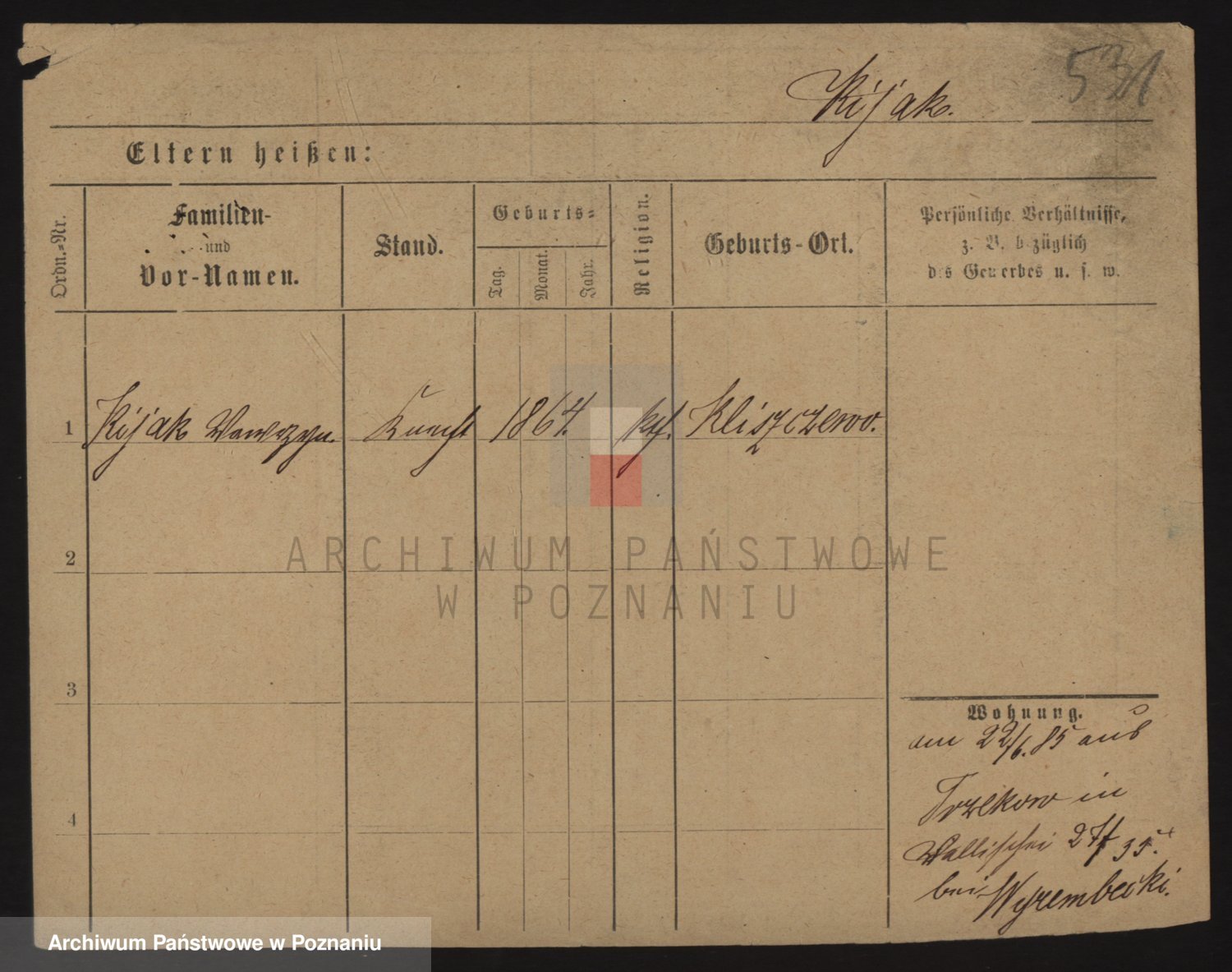 Podgląd karty osobowej dostępny jest po kliknięciu na nazwisko lub ikonkę karty. Można dokonywać powiększenia (ikony na górze) lub przechodzić między kolejnymi skanami (strzałki po bokach).