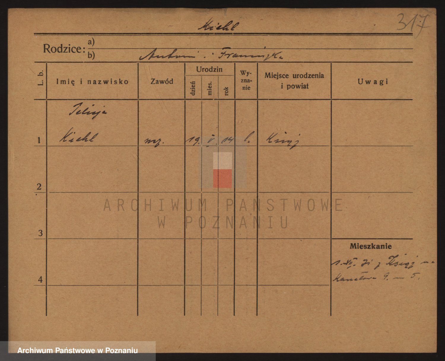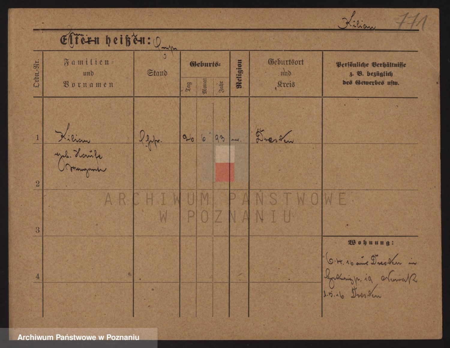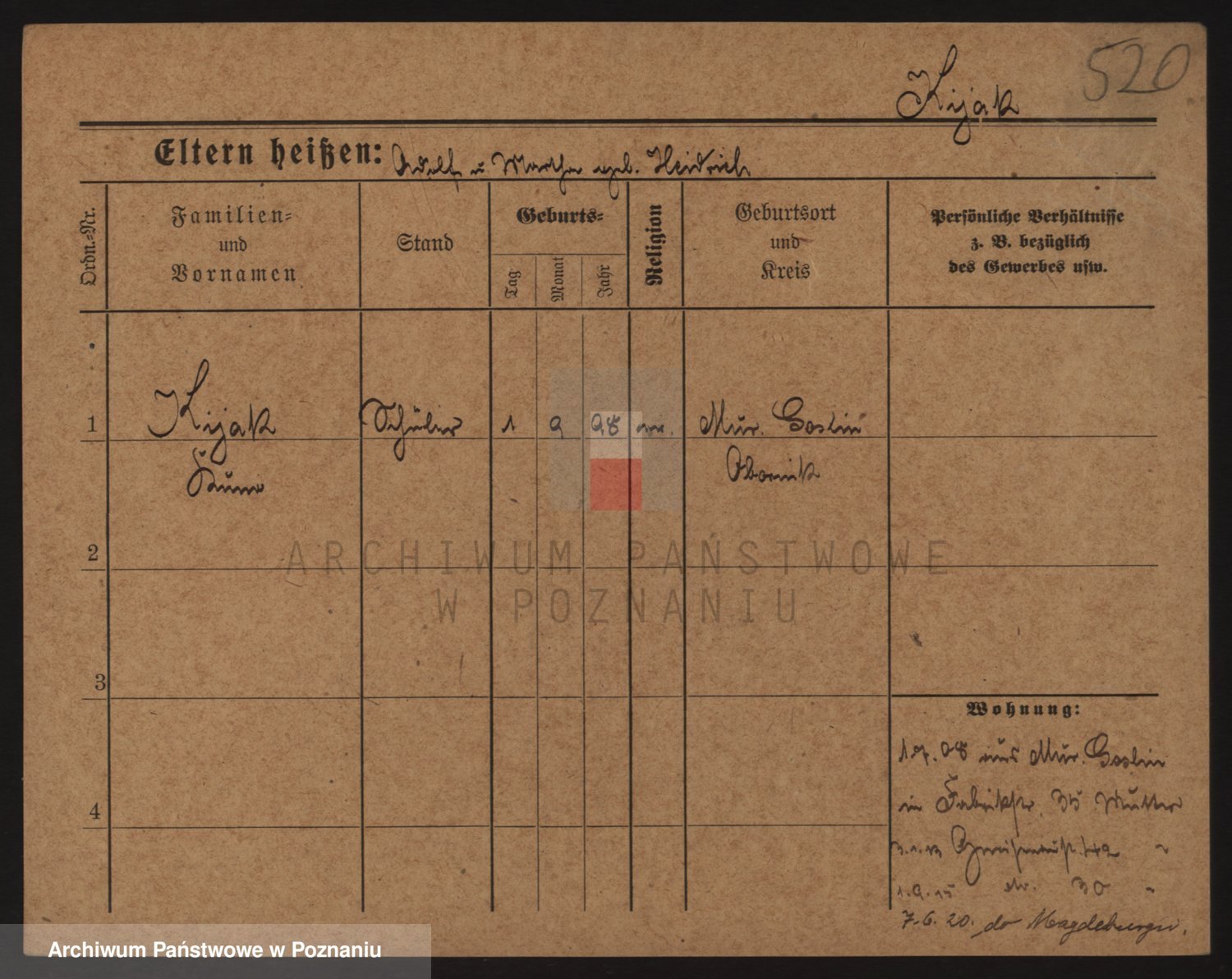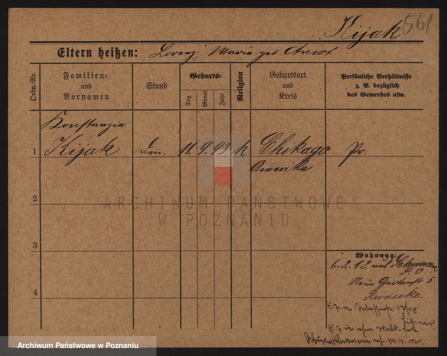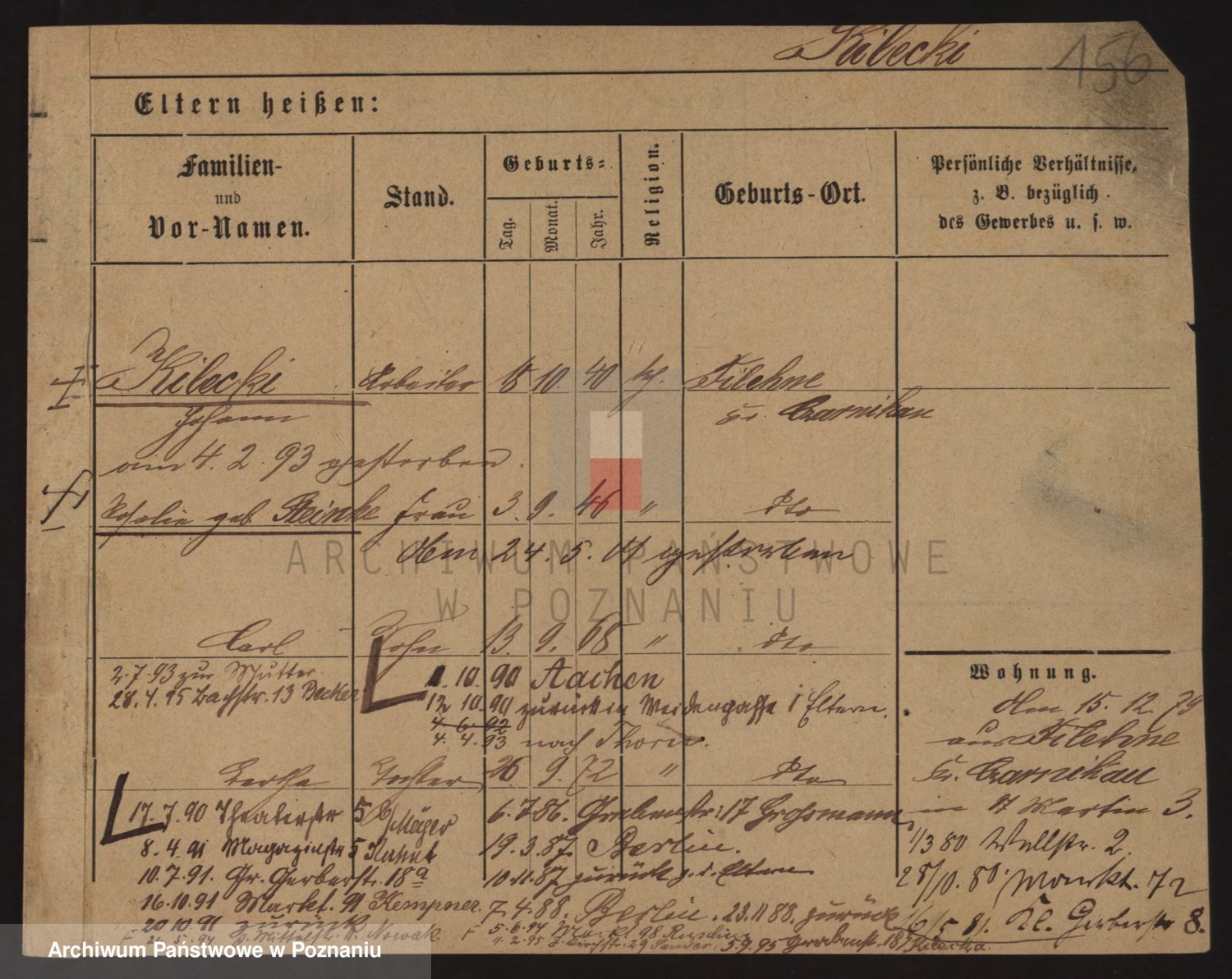 Podgląd karty osobowej dostępny jest po kliknięciu na nazwisko lub ikonkę karty. Można dokonywać powiększenia (ikony na górze) lub przechodzić między kolejnymi skanami (strzałki po bokach).