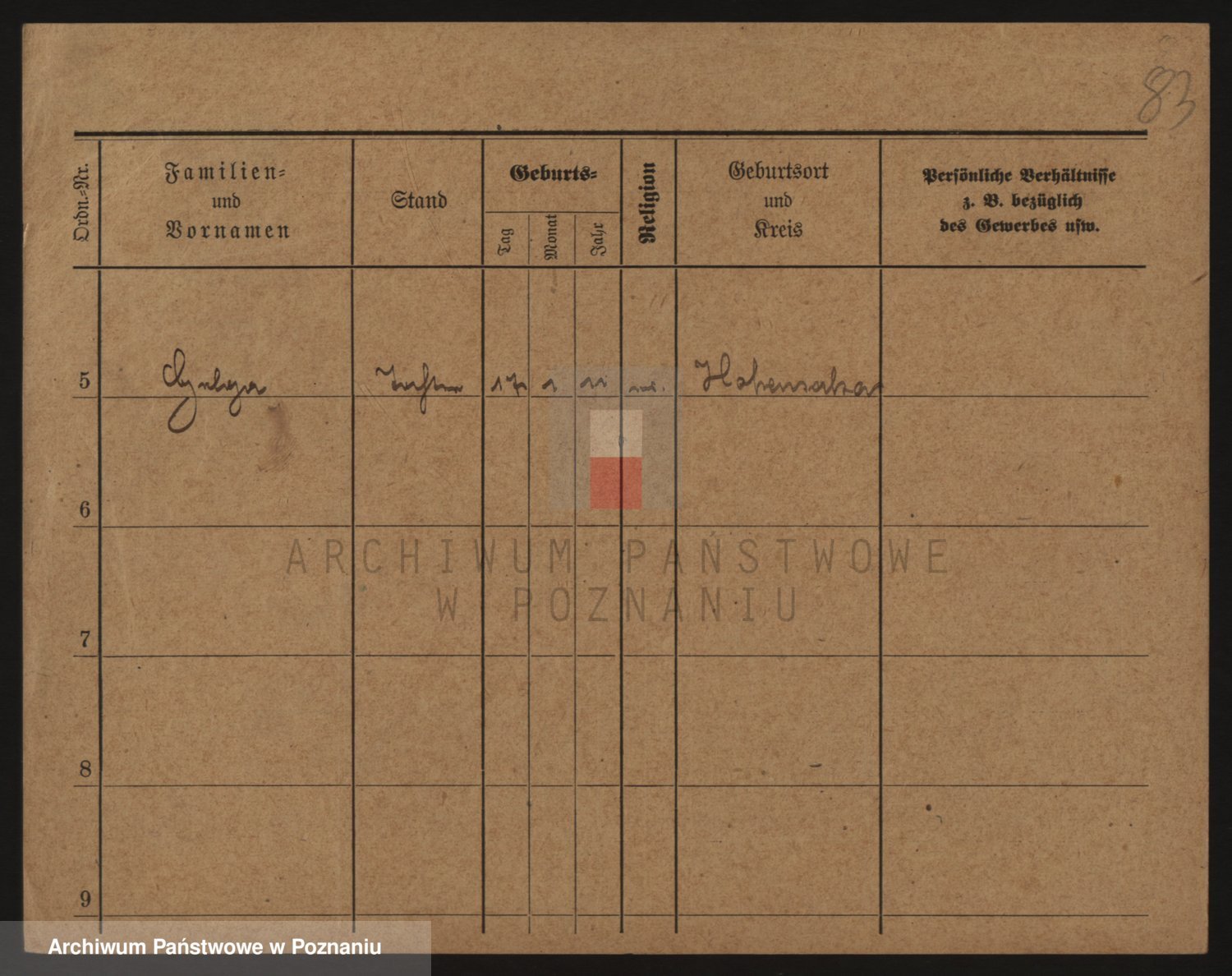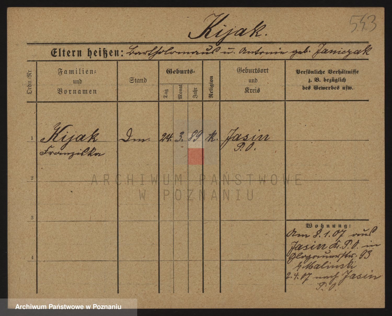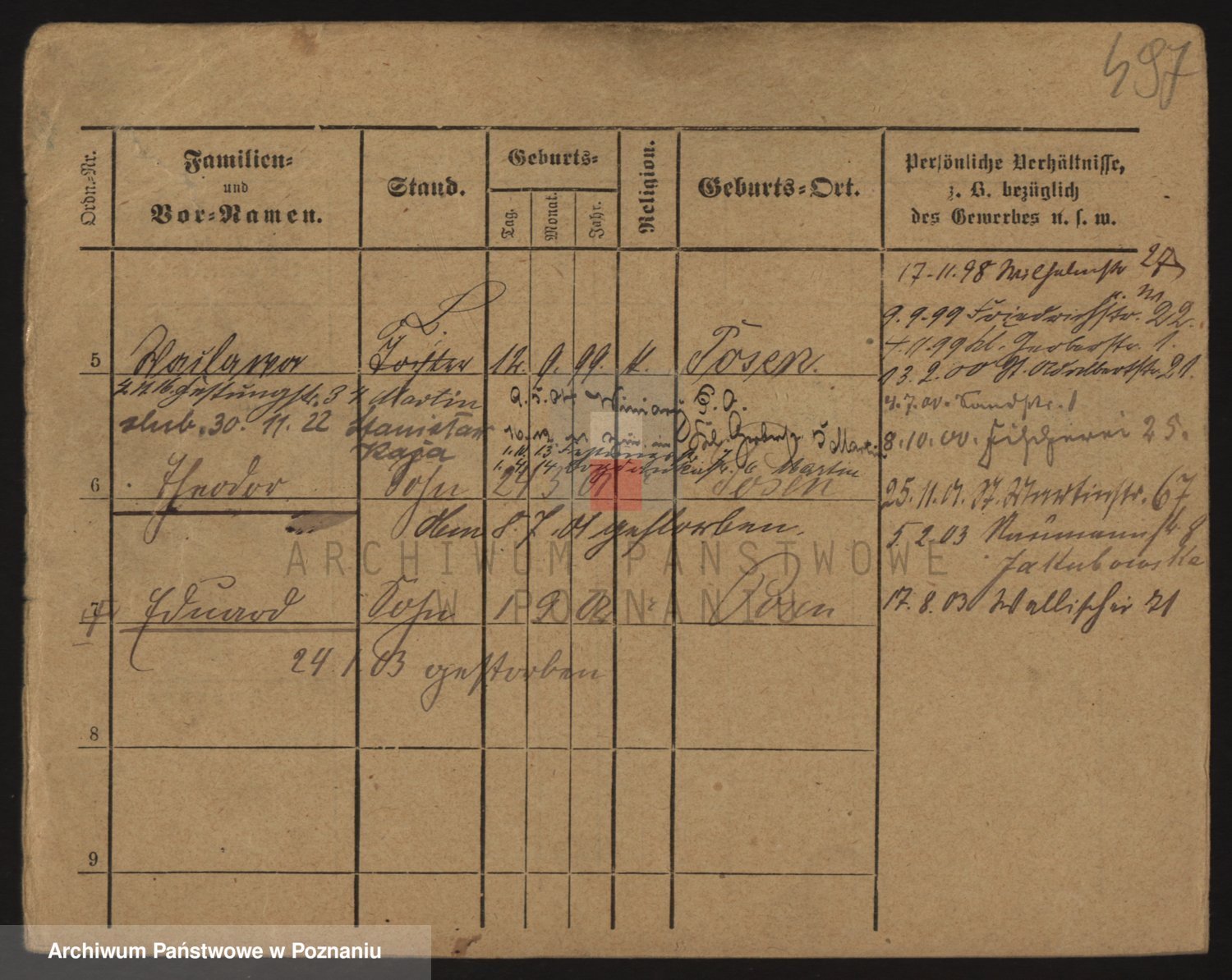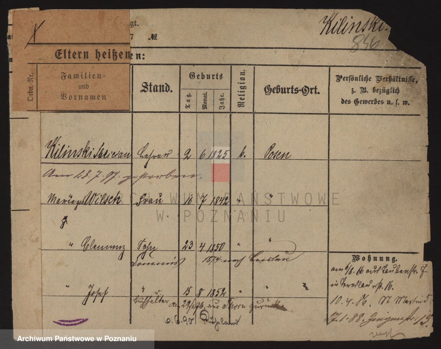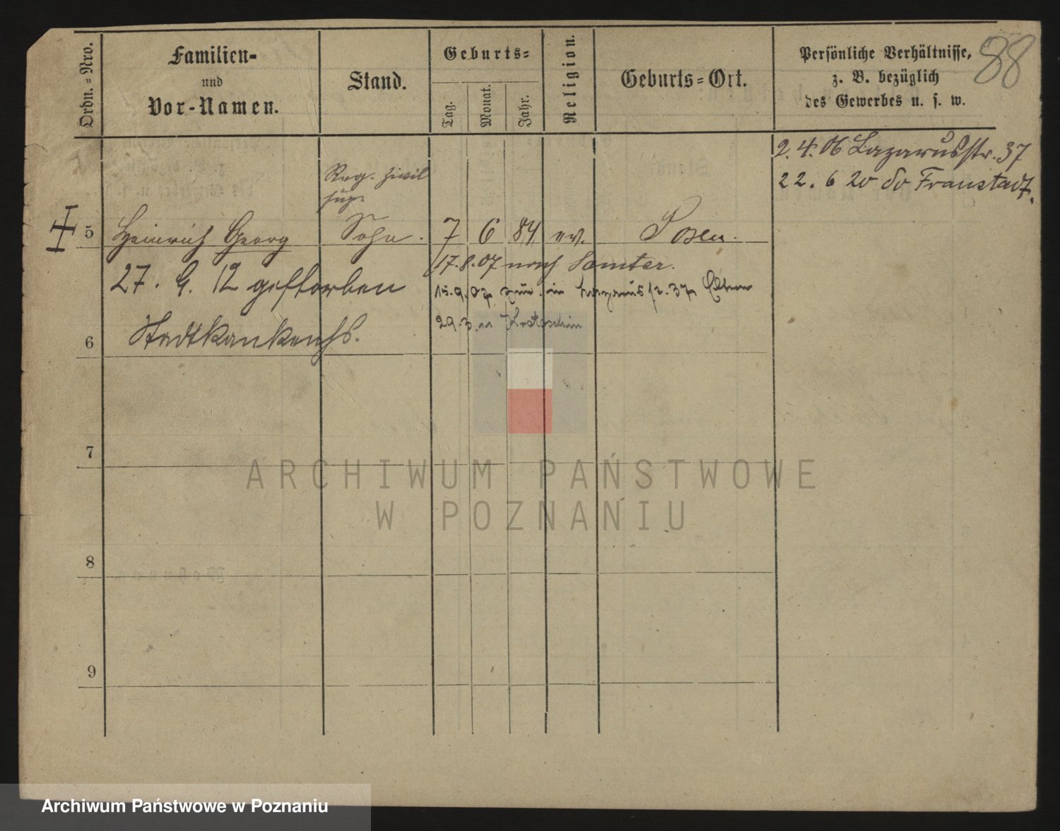 Podgląd karty osobowej dostępny jest po kliknięciu na nazwisko lub ikonkę karty. Można dokonywać powiększenia (ikony na górze) lub przechodzić między kolejnymi skanami (strzałki po bokach).