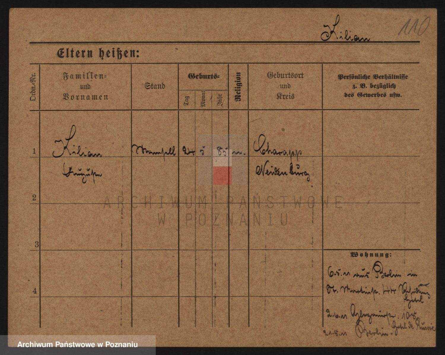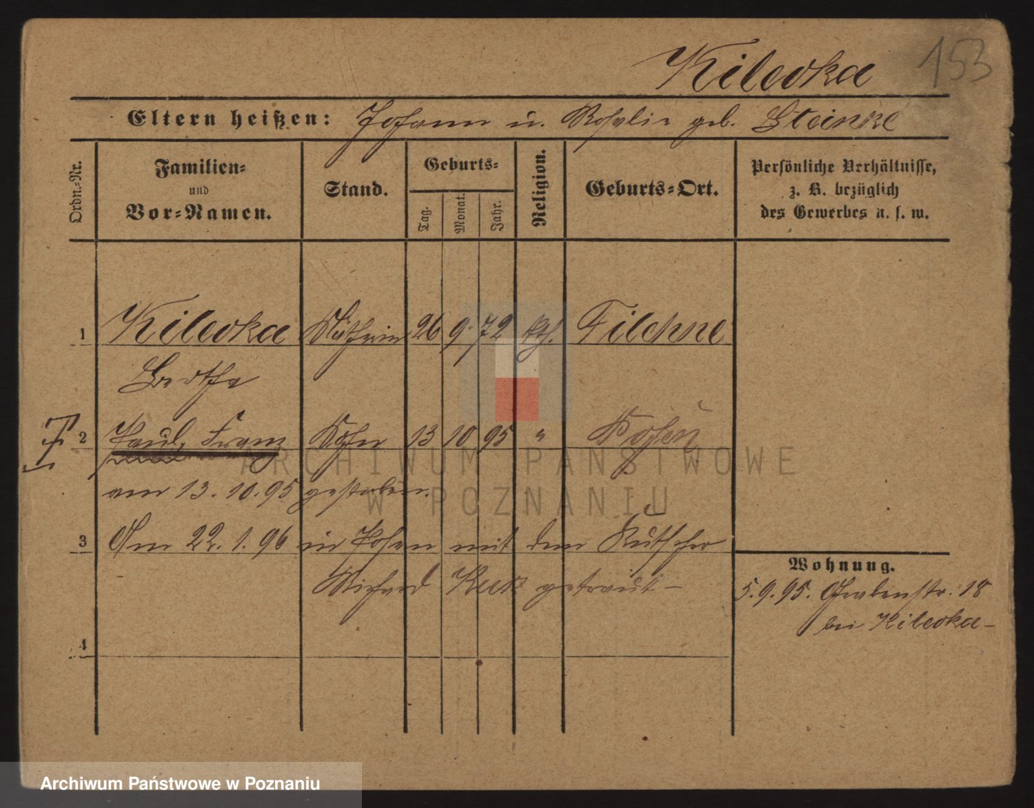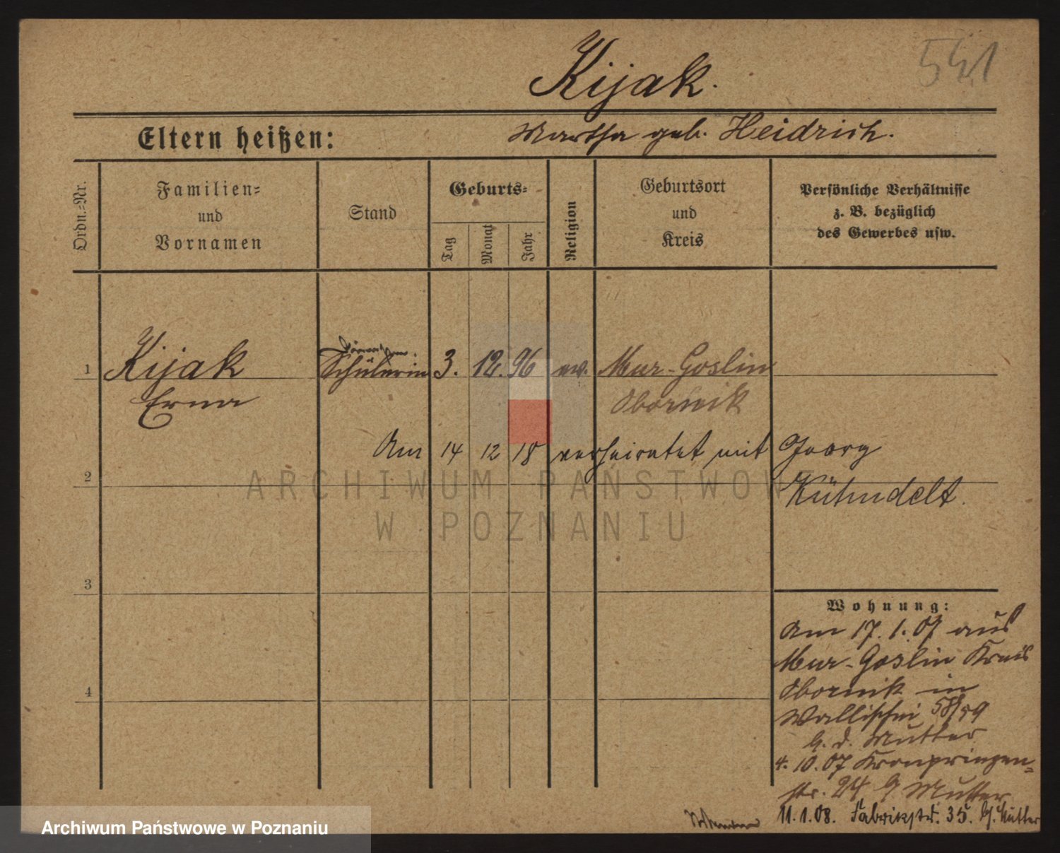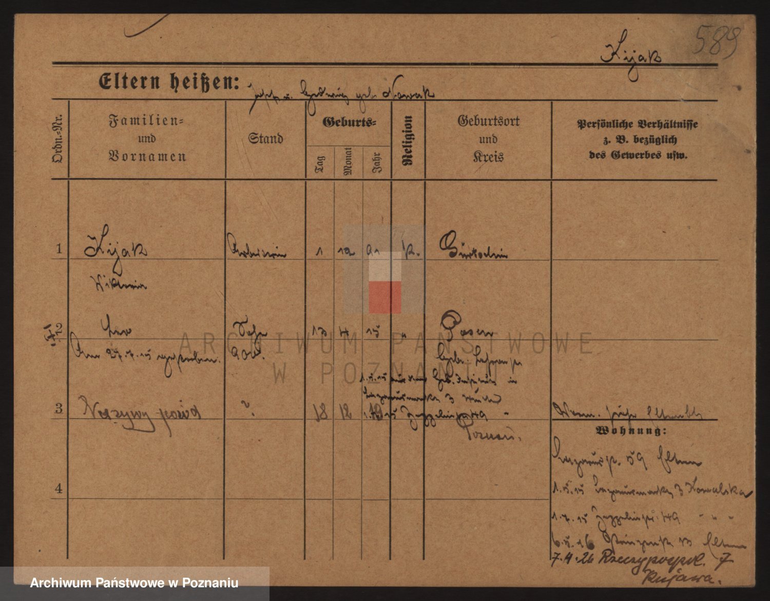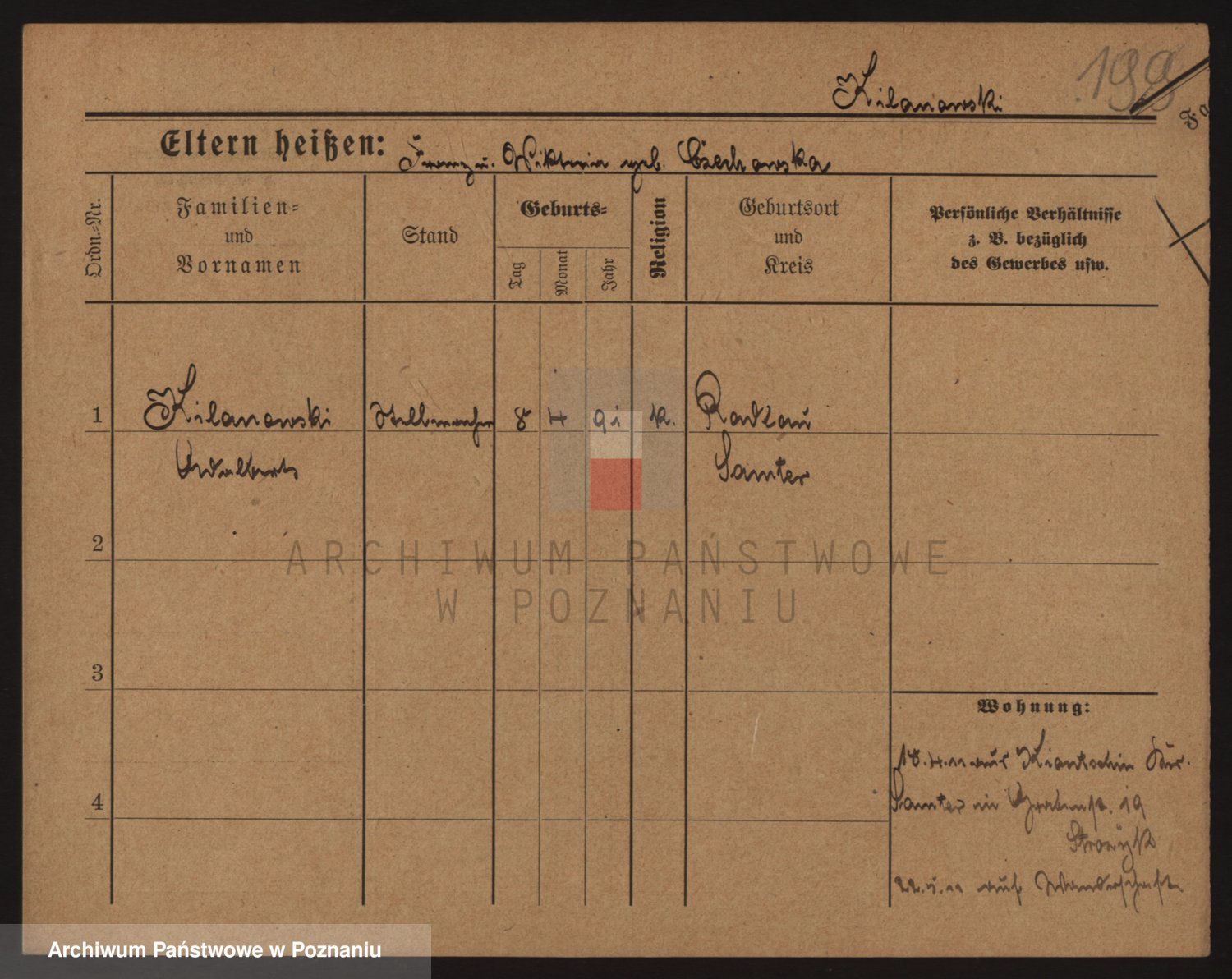 Podgląd karty osobowej dostępny jest po kliknięciu na nazwisko lub ikonkę karty. Można dokonywać powiększenia (ikony na górze) lub przechodzić między kolejnymi skanami (strzałki po bokach).