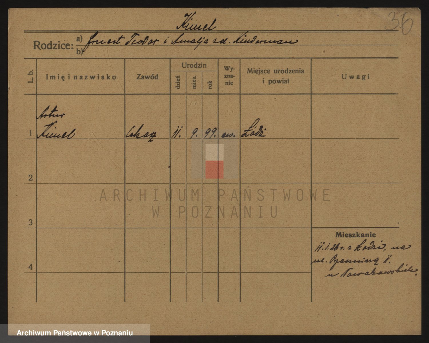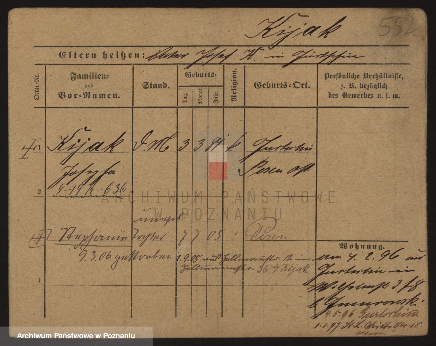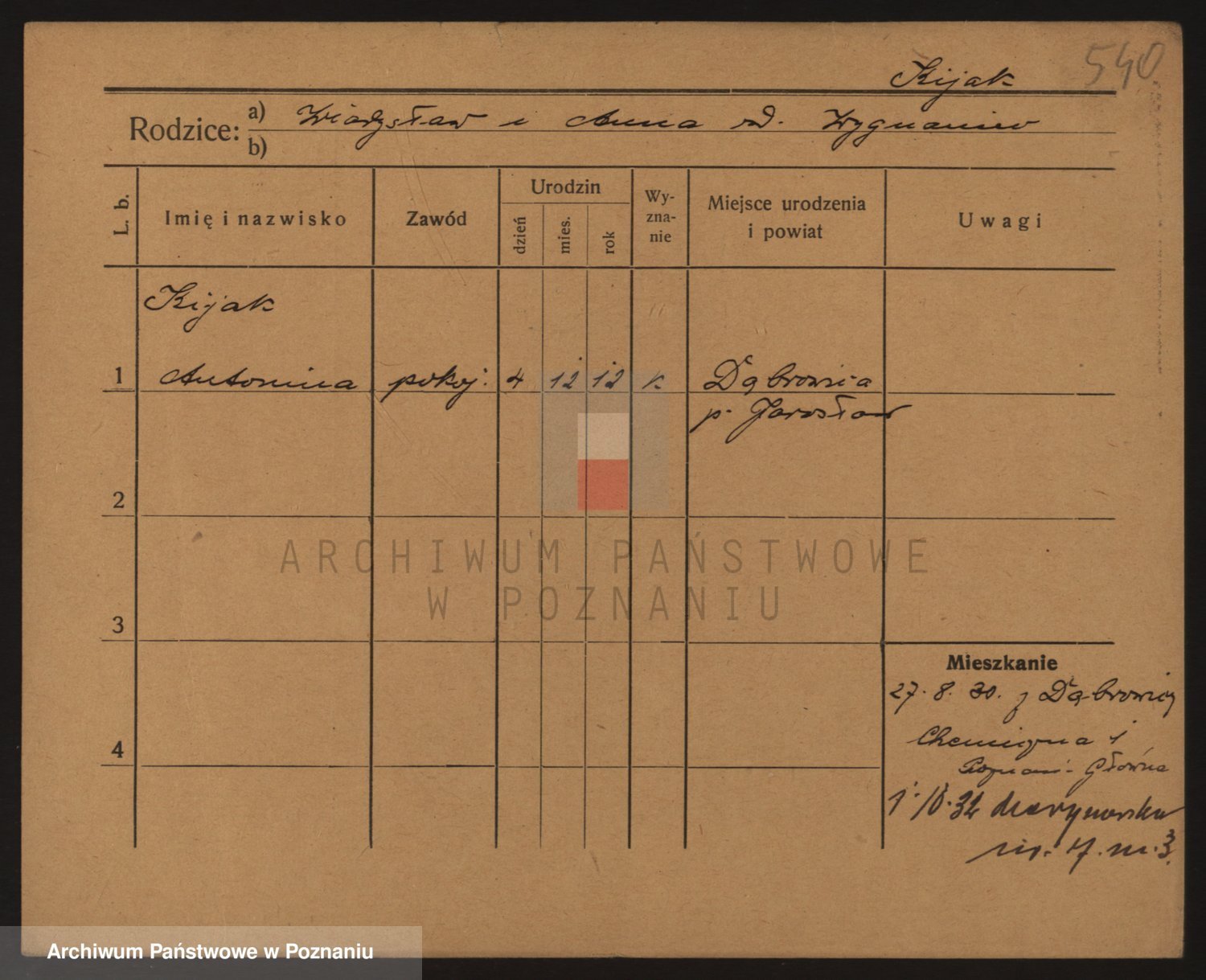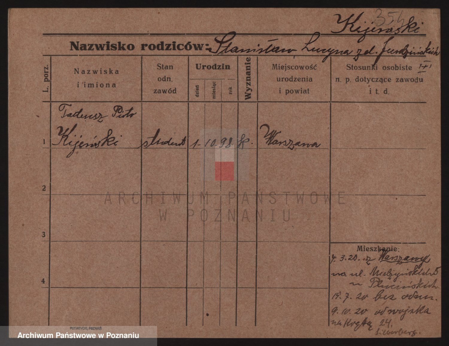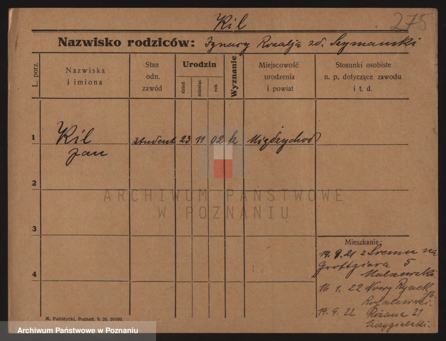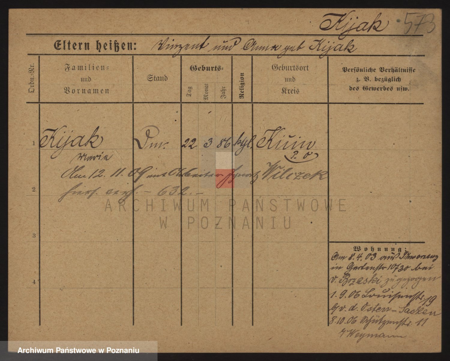 Podgląd karty osobowej dostępny jest po kliknięciu na nazwisko lub ikonkę karty. Można dokonywać powiększenia (ikony na górze) lub przechodzić między kolejnymi skanami (strzałki po bokach).