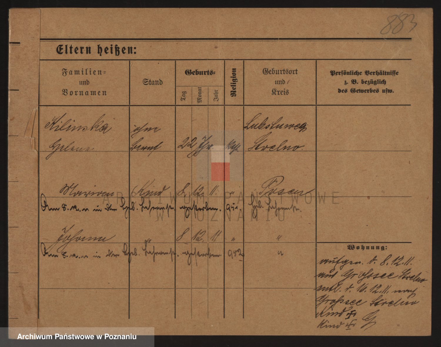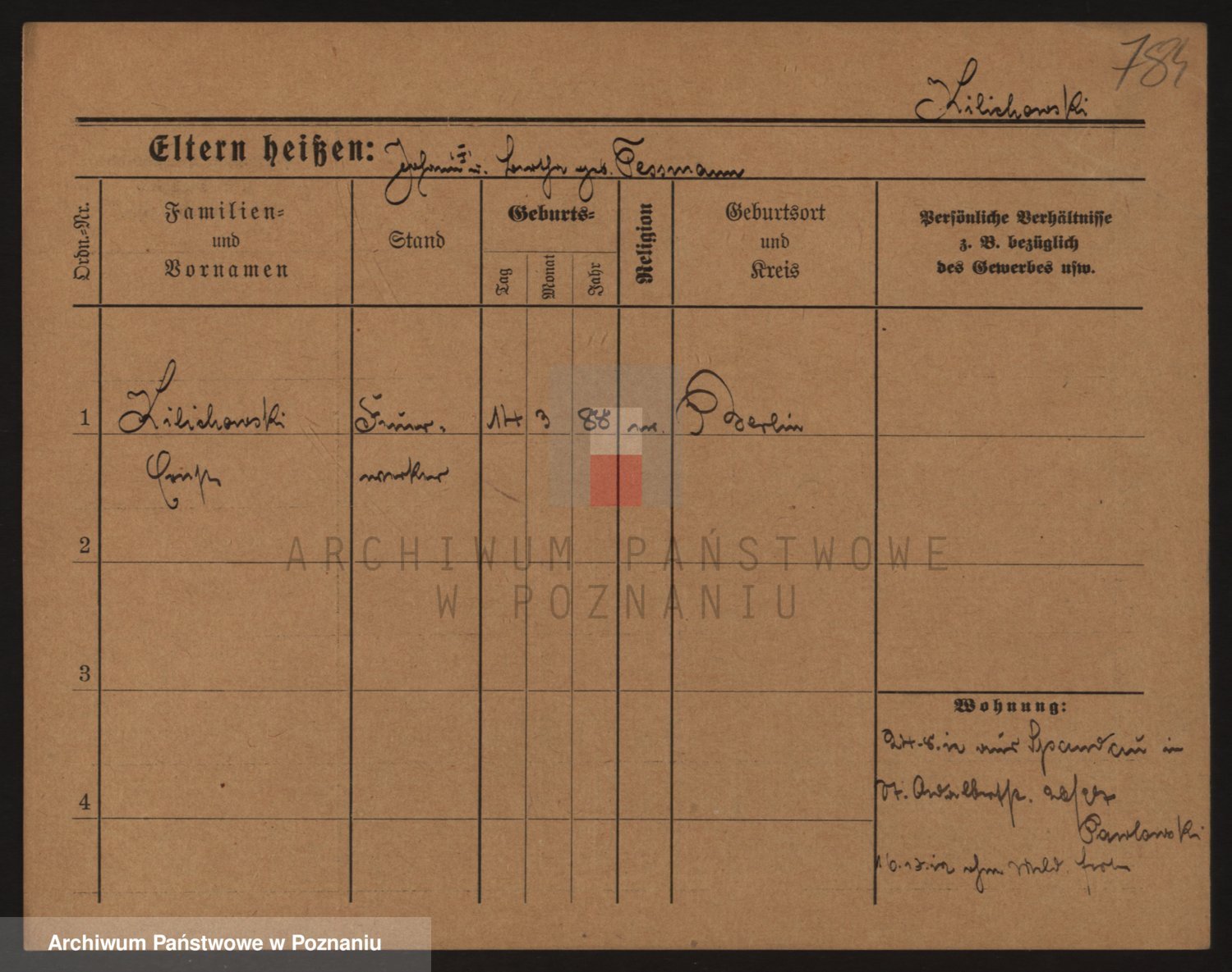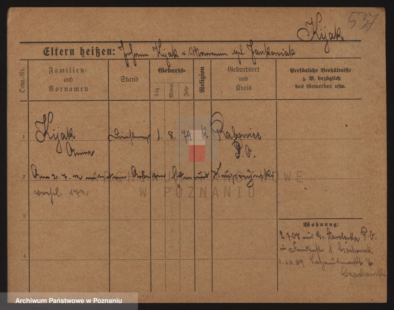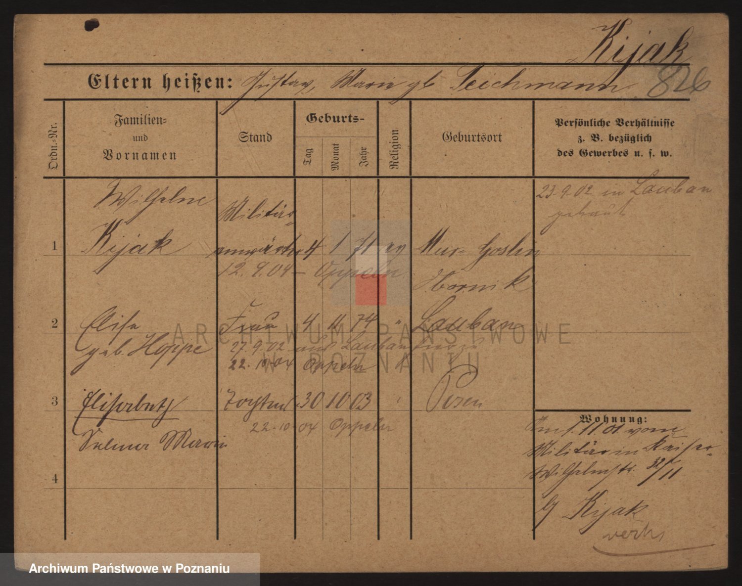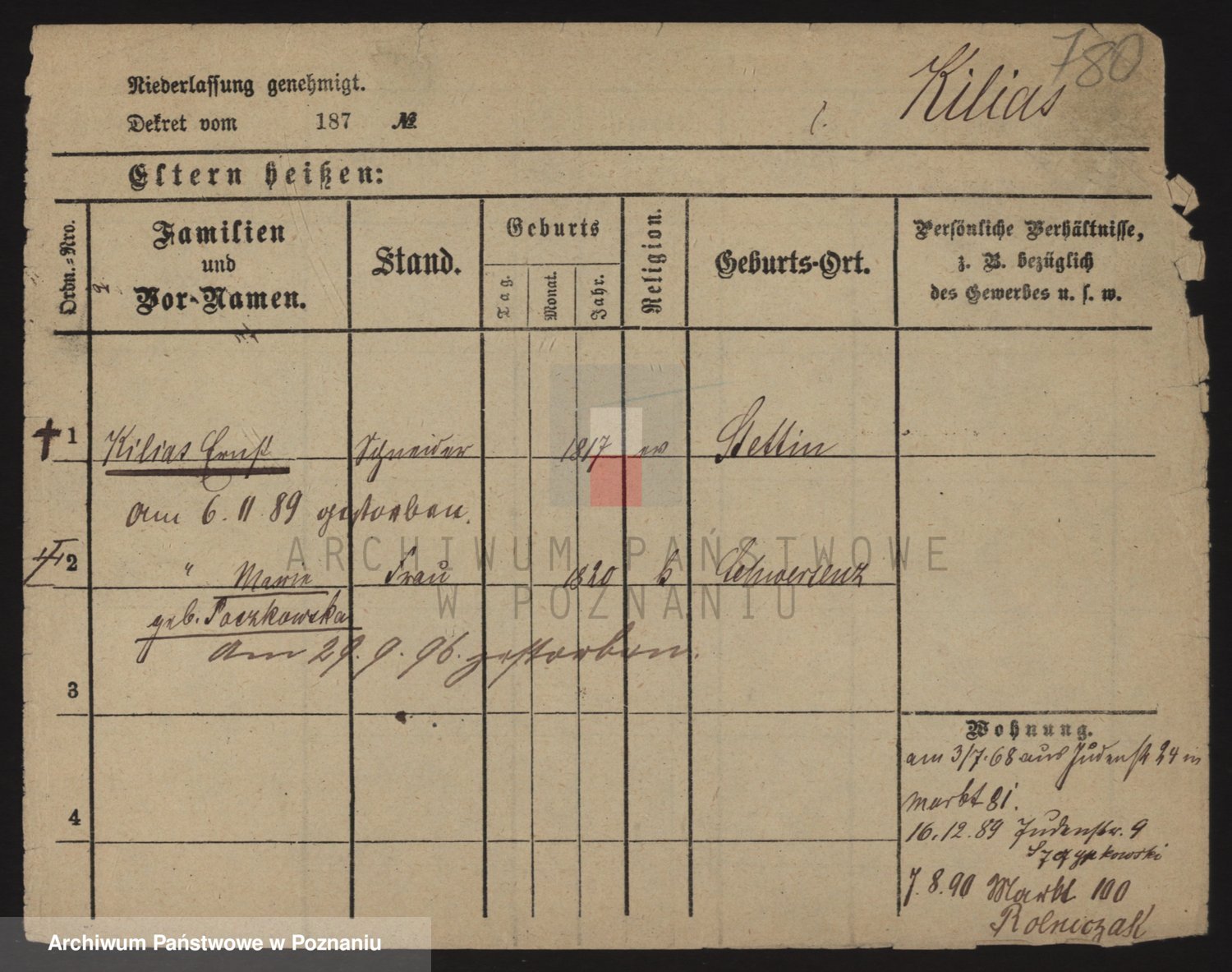 Podgląd karty osobowej dostępny jest po kliknięciu na nazwisko lub ikonkę karty. Można dokonywać powiększenia (ikony na górze) lub przechodzić między kolejnymi skanami (strzałki po bokach).