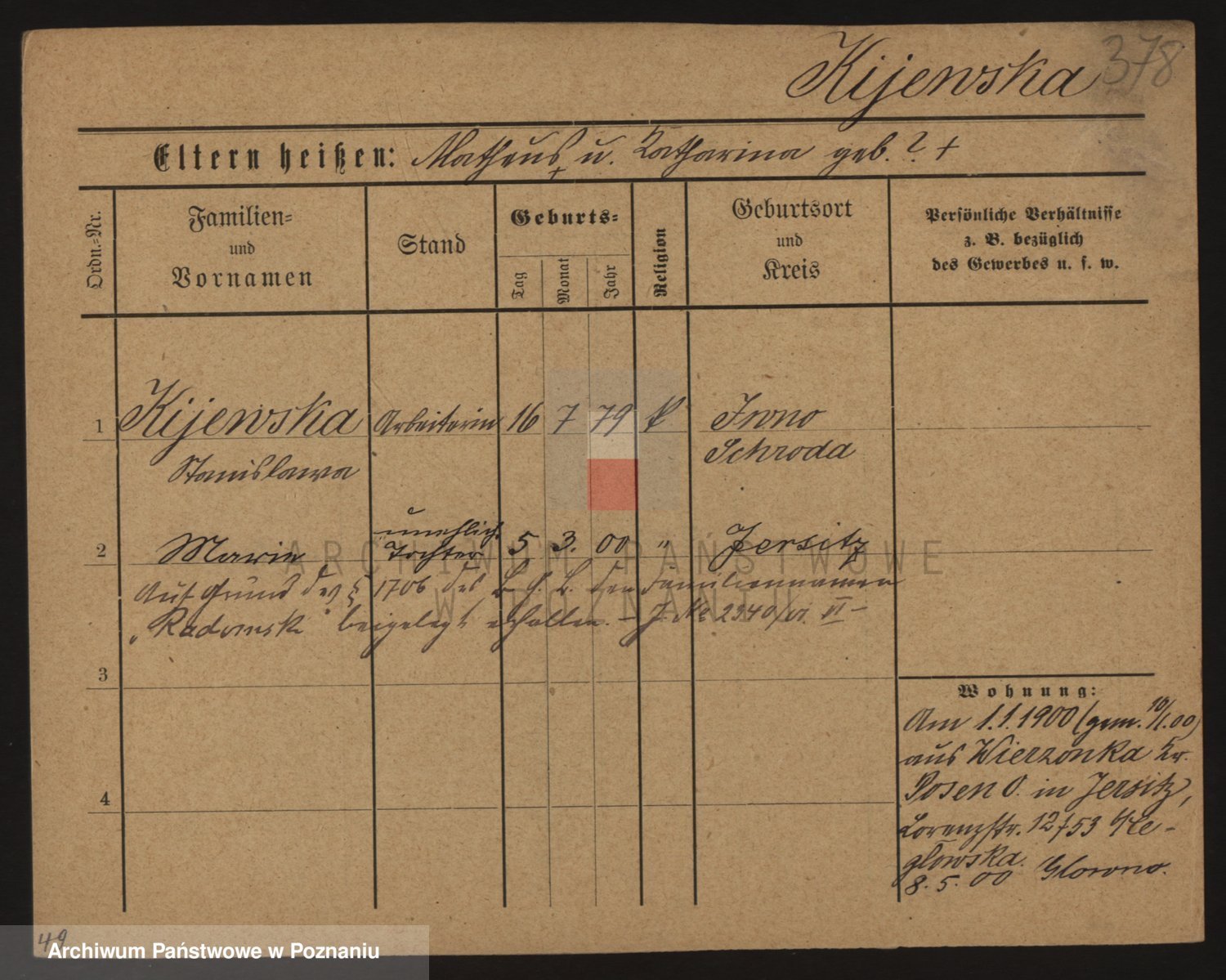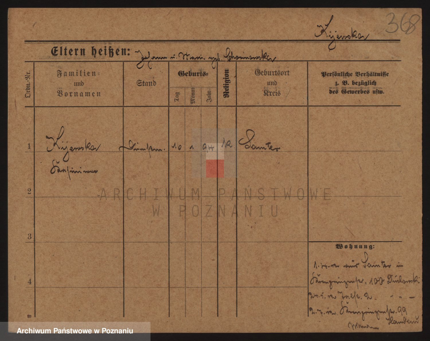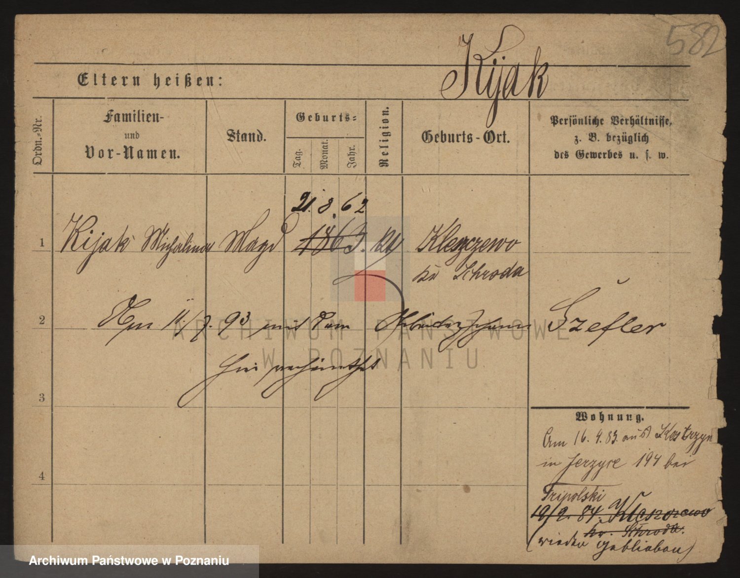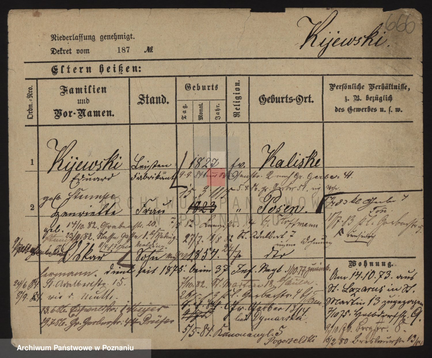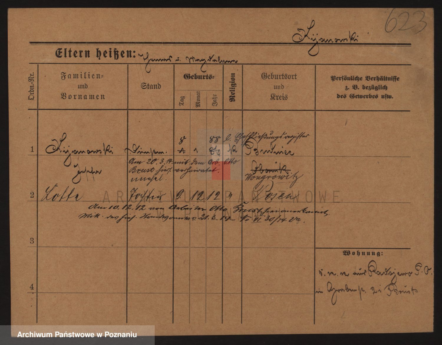 Podgląd karty osobowej dostępny jest po kliknięciu na nazwisko lub ikonkę karty. Można dokonywać powiększenia (ikony na górze) lub przechodzić między kolejnymi skanami (strzałki po bokach).