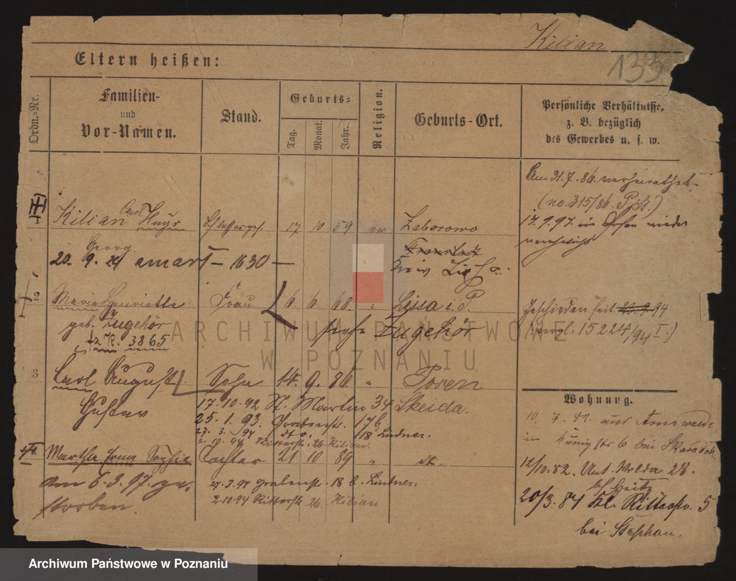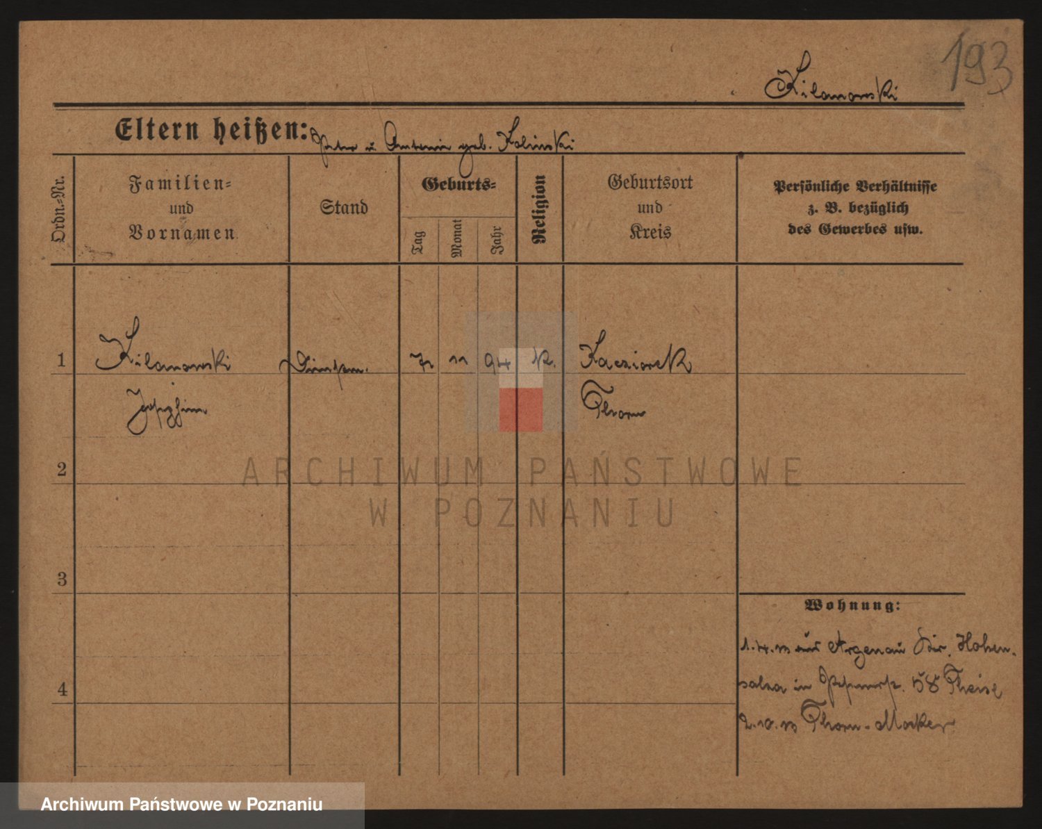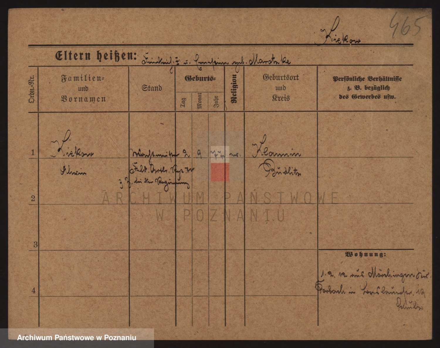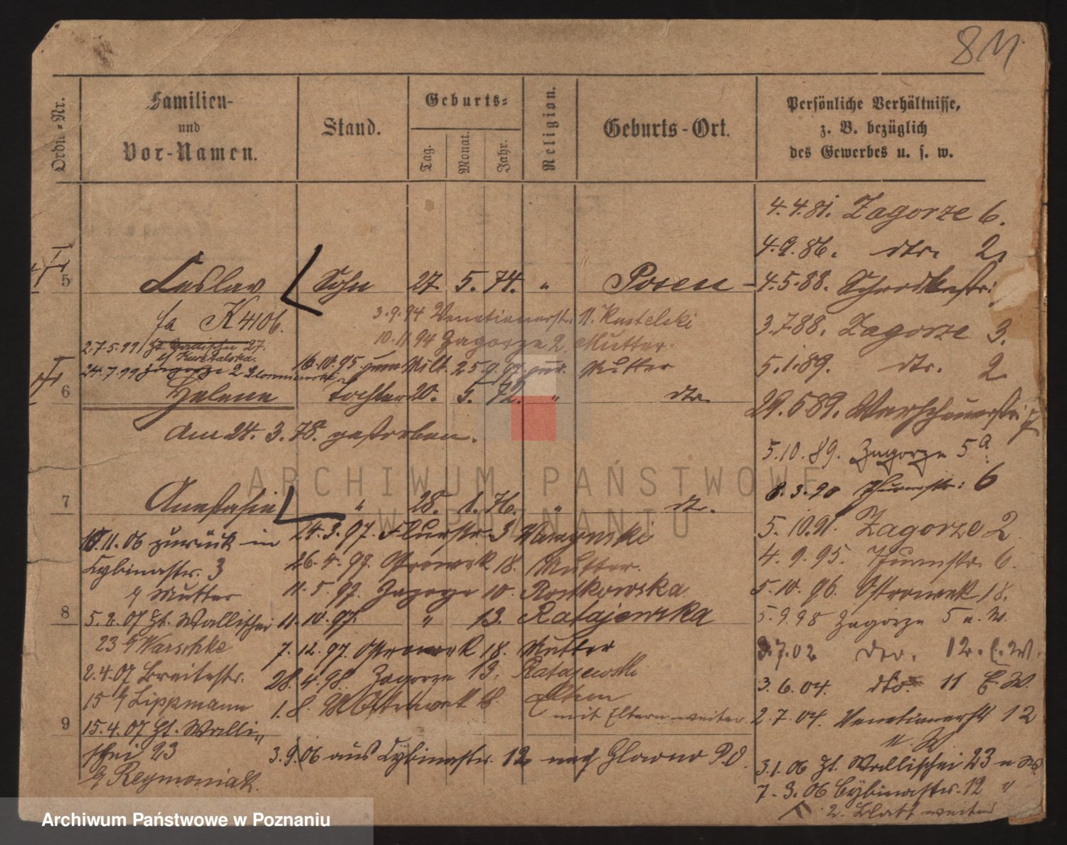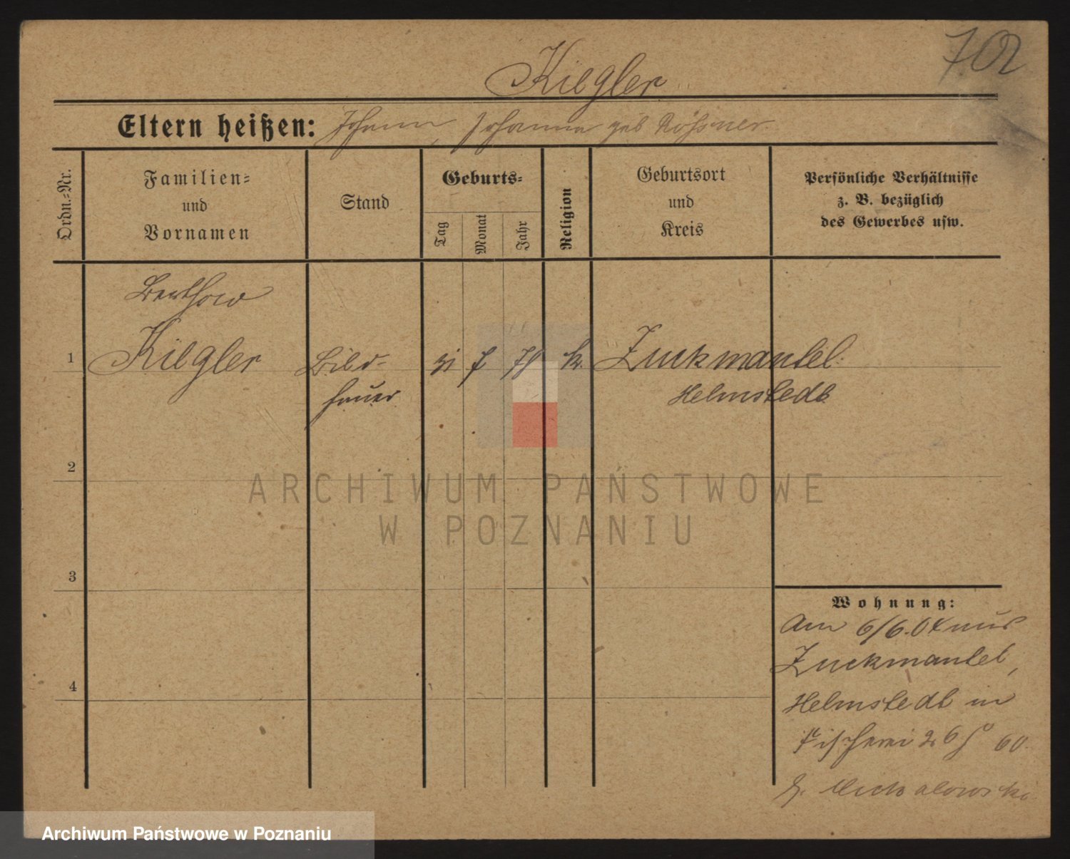 Podgląd karty osobowej dostępny jest po kliknięciu na nazwisko lub ikonkę karty. Można dokonywać powiększenia (ikony na górze) lub przechodzić między kolejnymi skanami (strzałki po bokach).