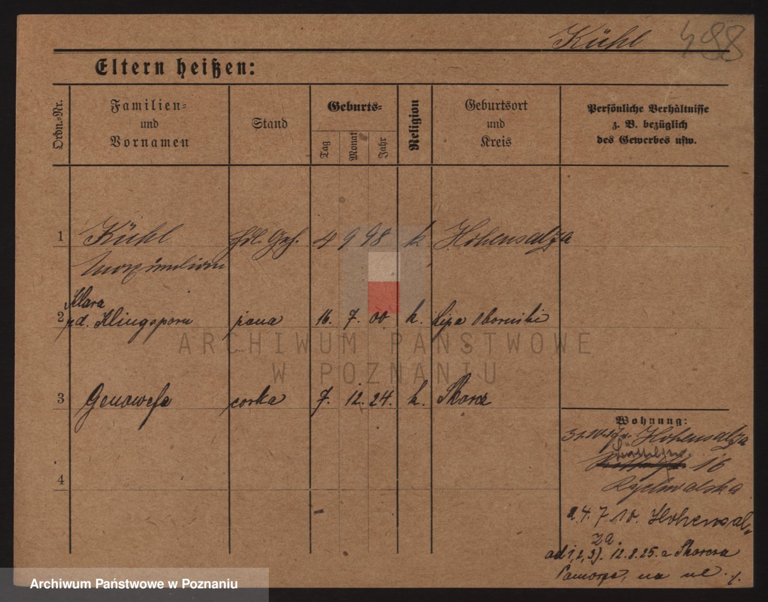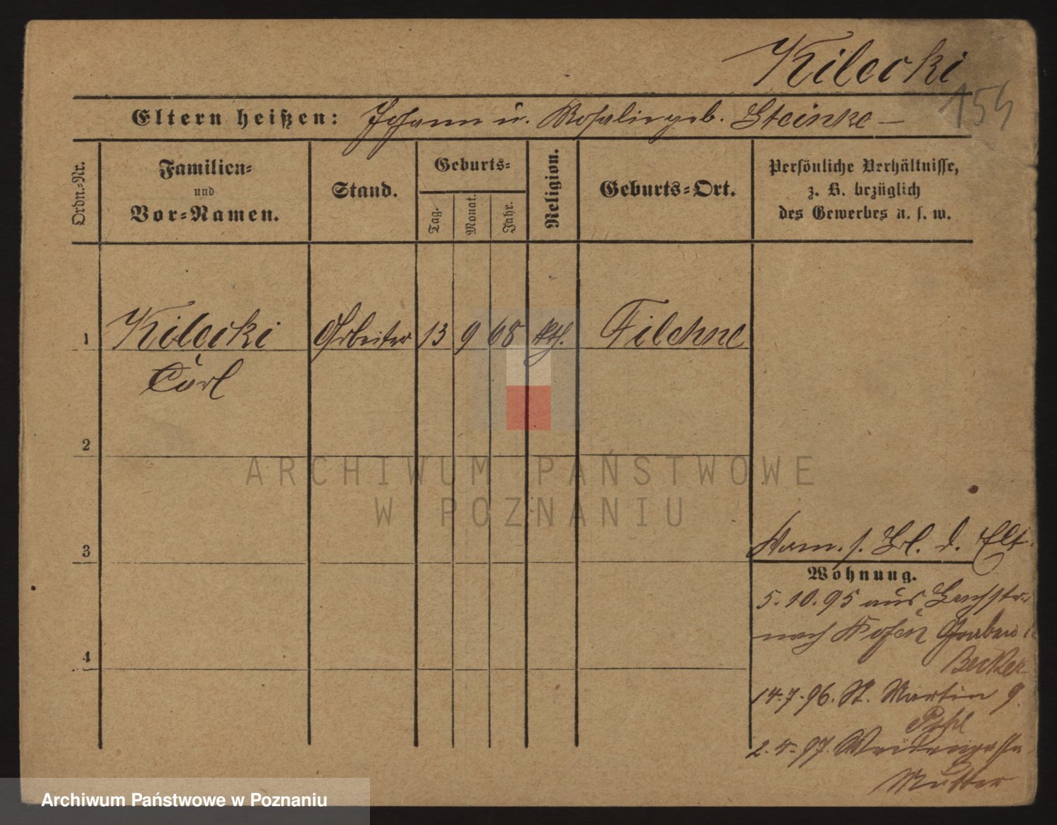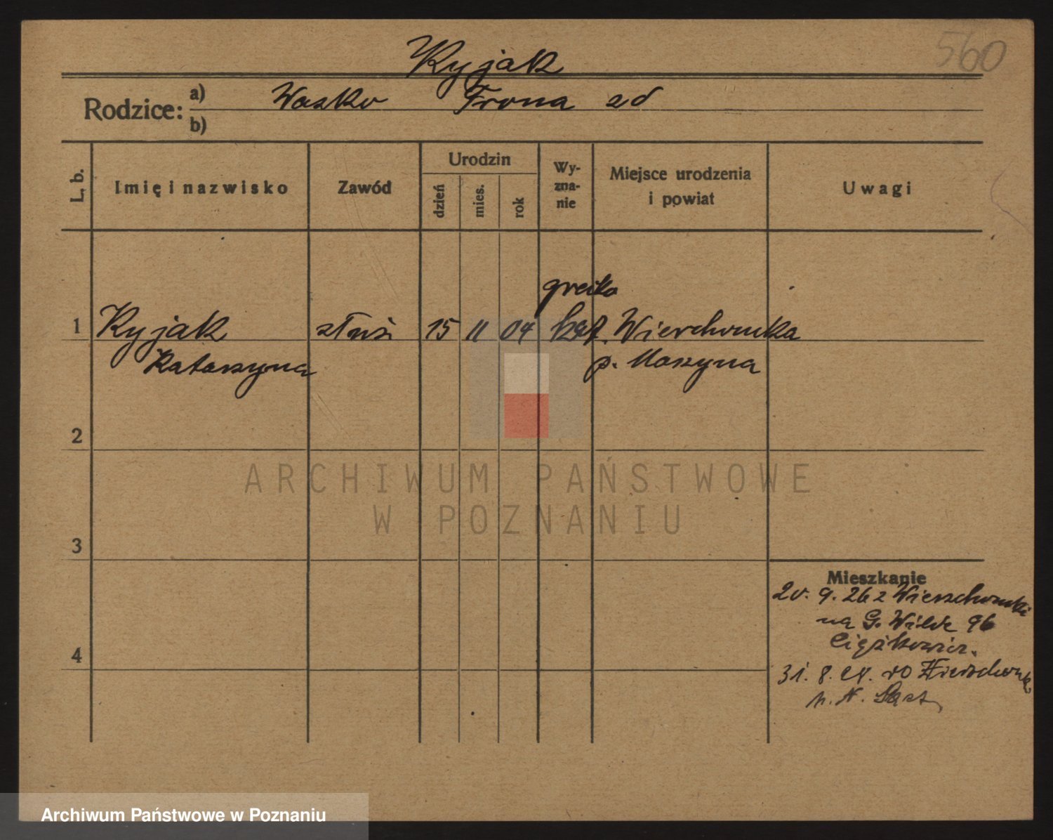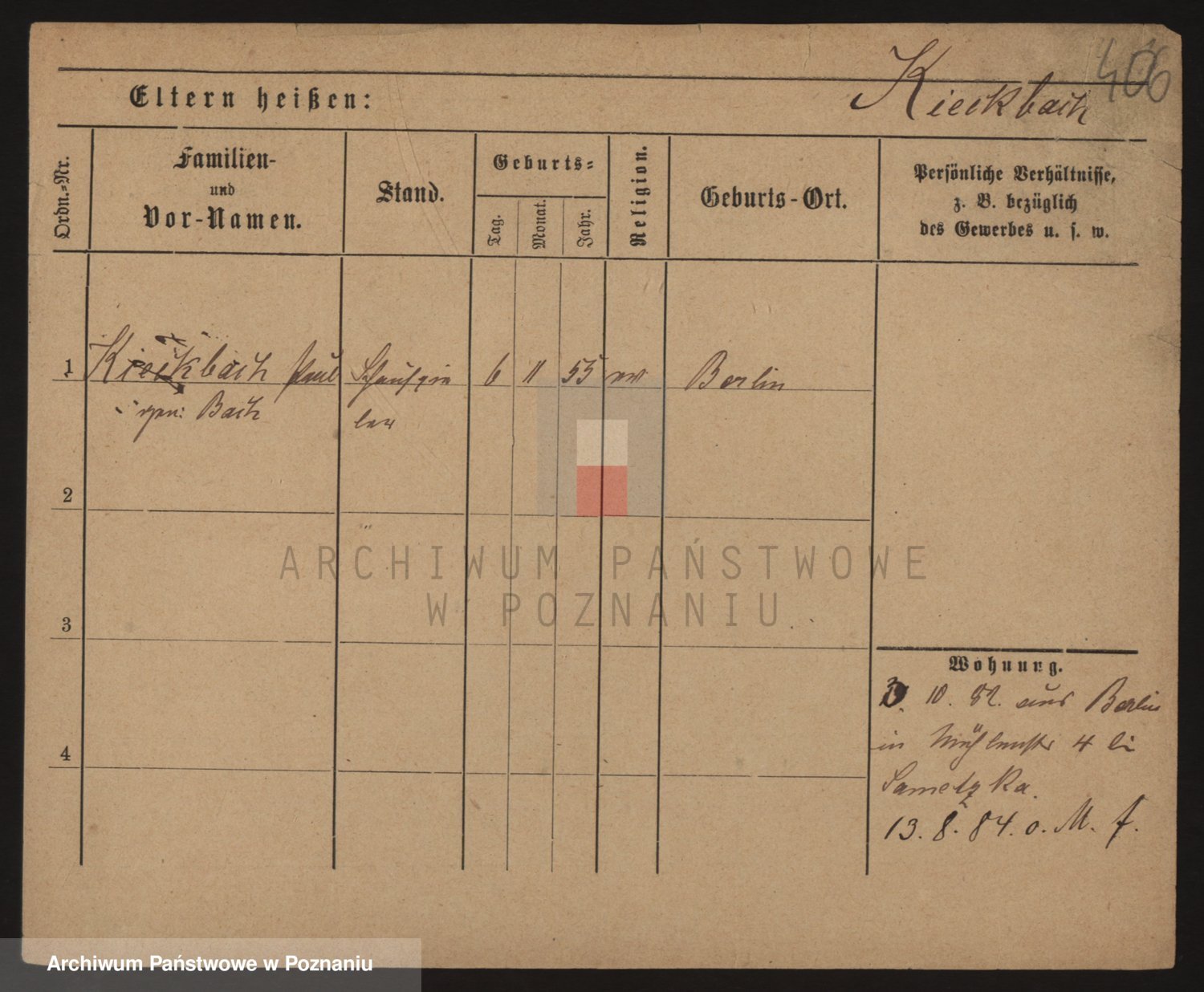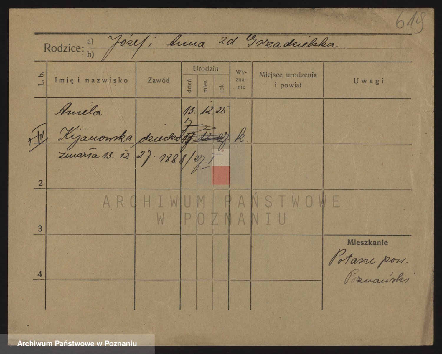 Podgląd karty osobowej dostępny jest po kliknięciu na nazwisko lub ikonkę karty. Można dokonywać powiększenia (ikony na górze) lub przechodzić między kolejnymi skanami (strzałki po bokach).