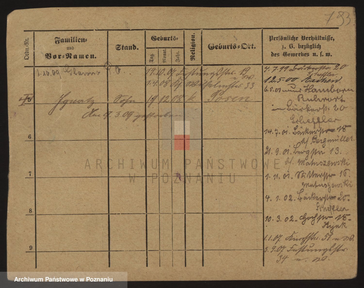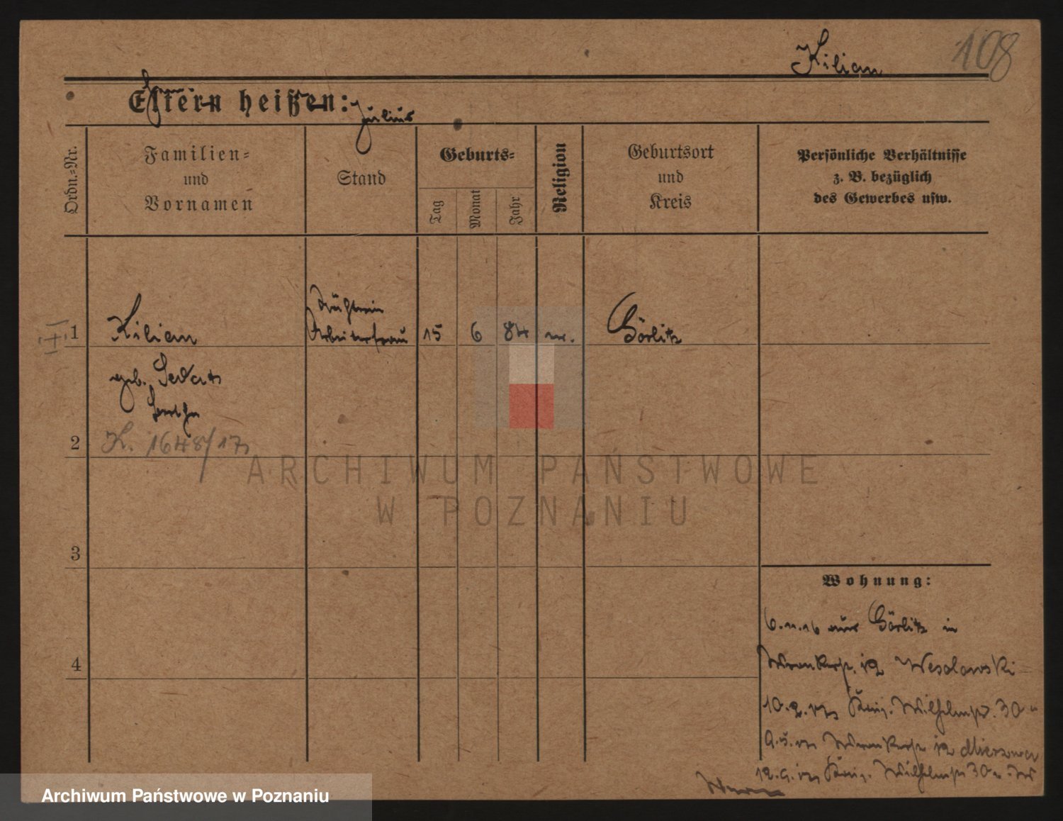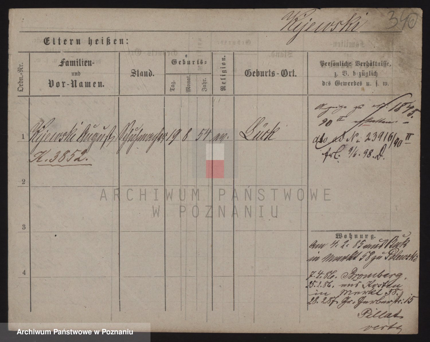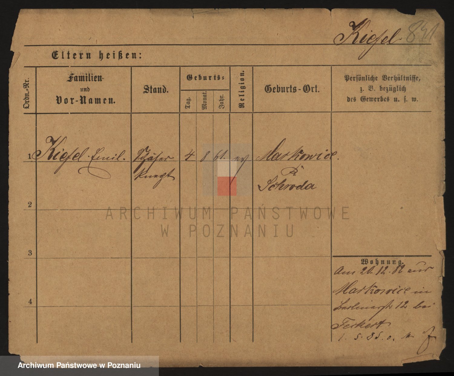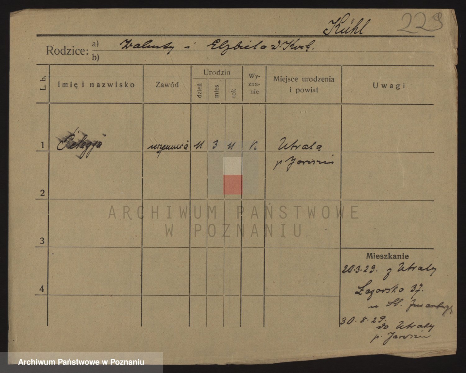Podgląd karty osobowej dostępny jest po kliknięciu na nazwisko lub ikonkę karty. Można dokonywać powiększenia (ikony na górze) lub przechodzić między kolejnymi skanami (strzałki po bokach).
