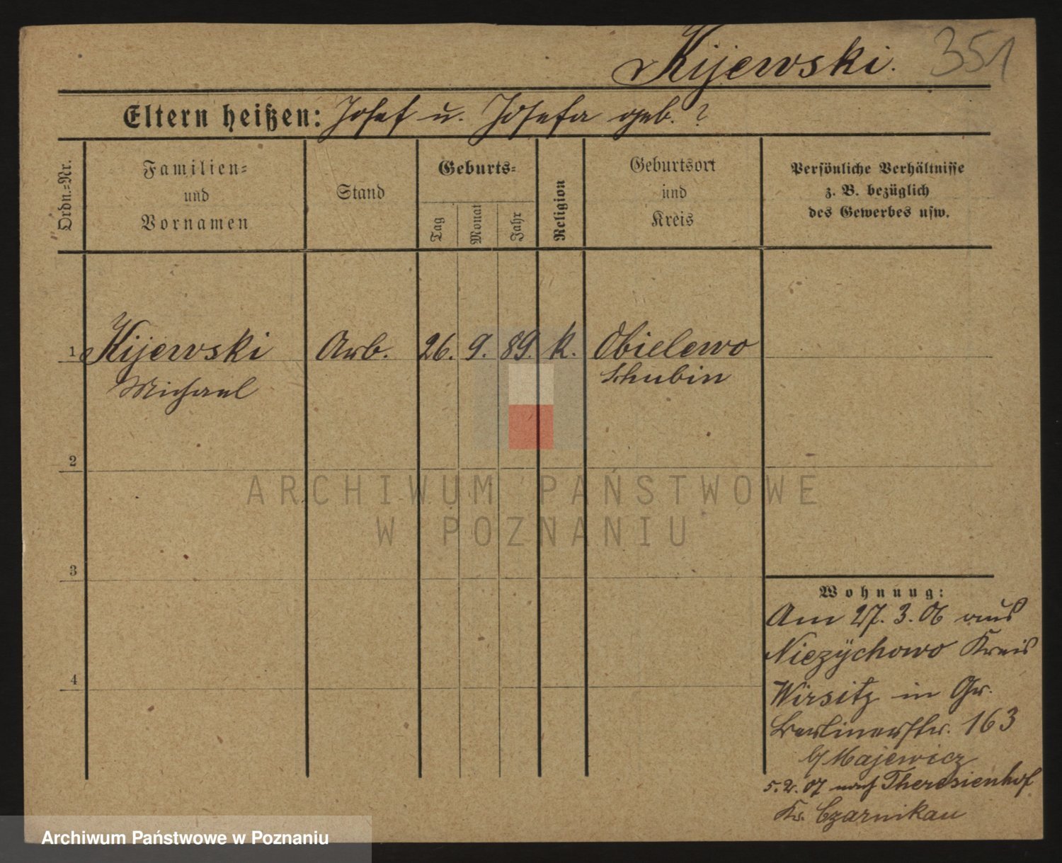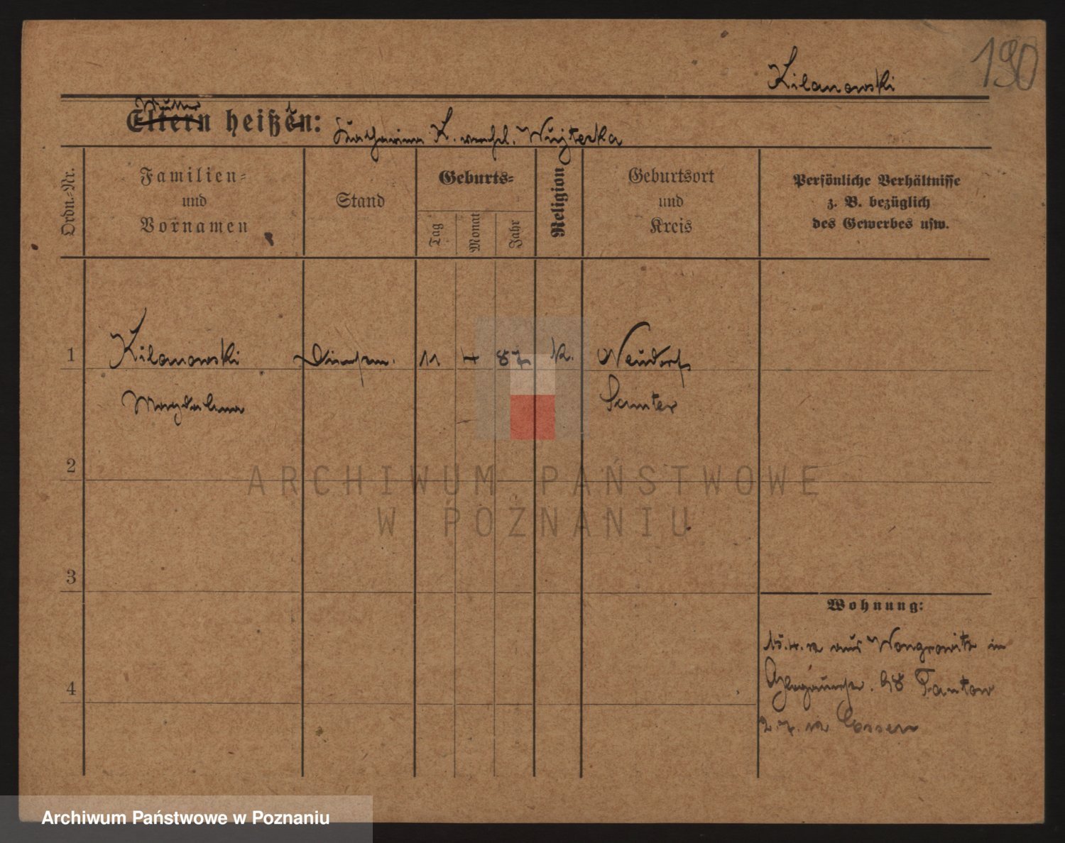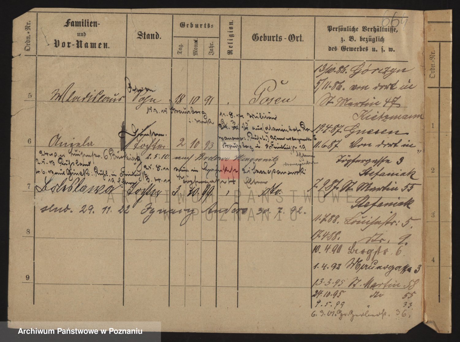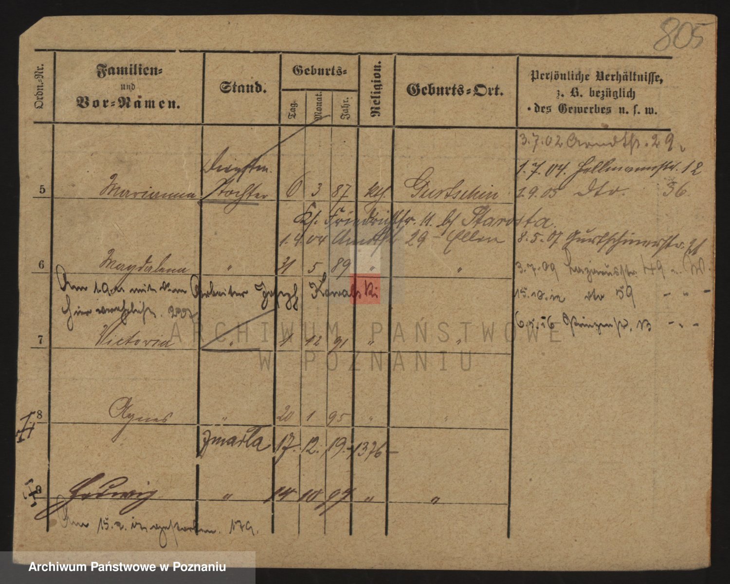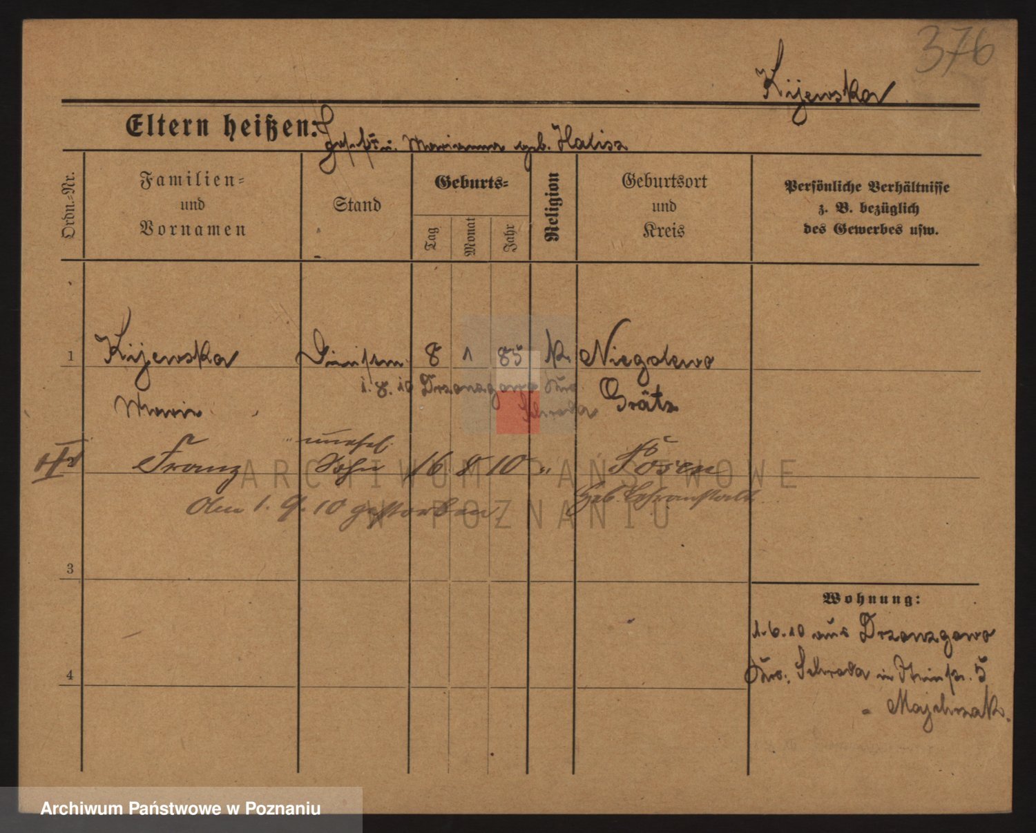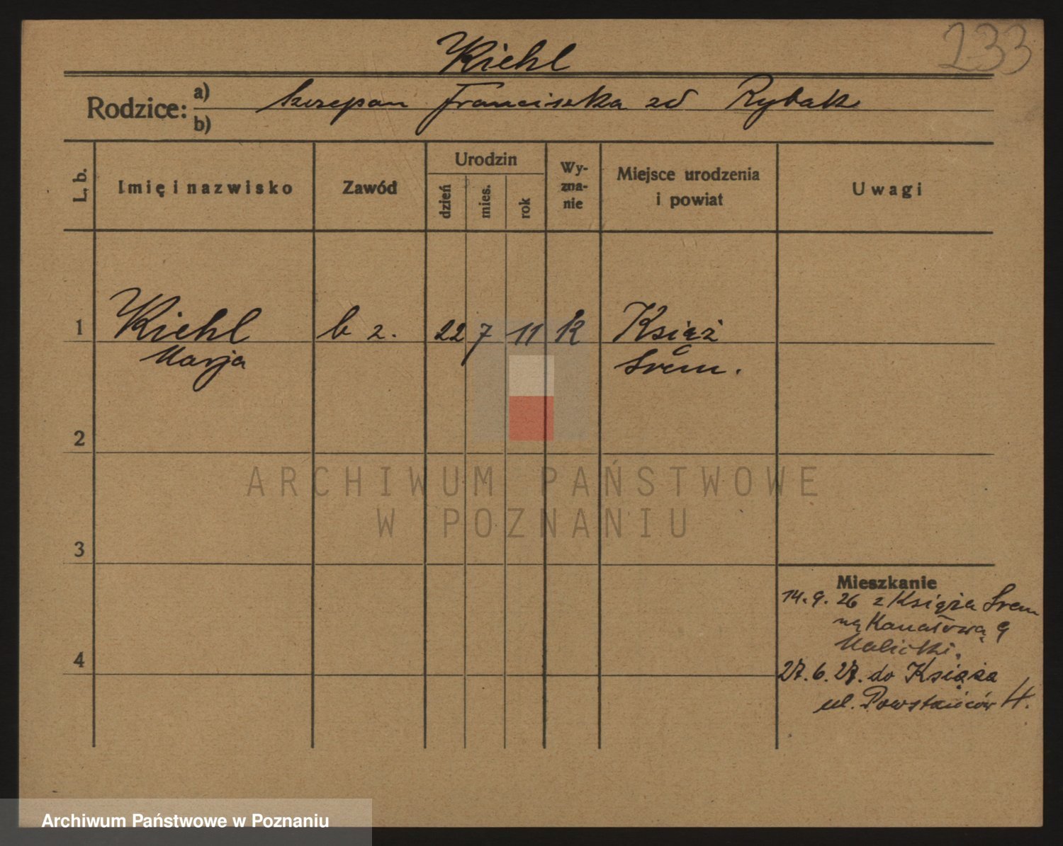 Podgląd karty osobowej dostępny jest po kliknięciu na nazwisko lub ikonkę karty. Można dokonywać powiększenia (ikony na górze) lub przechodzić między kolejnymi skanami (strzałki po bokach).