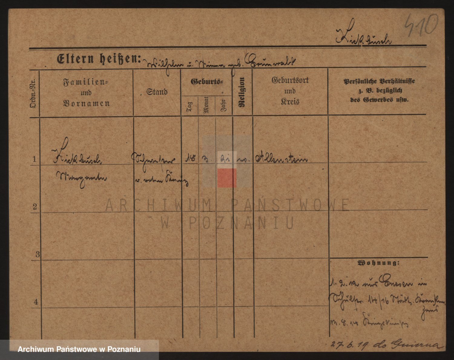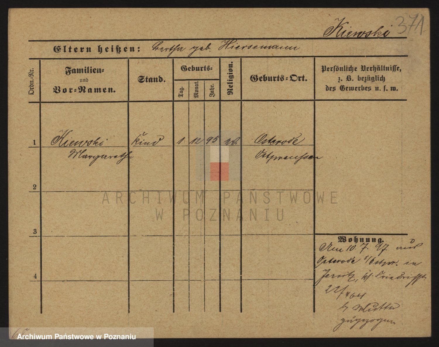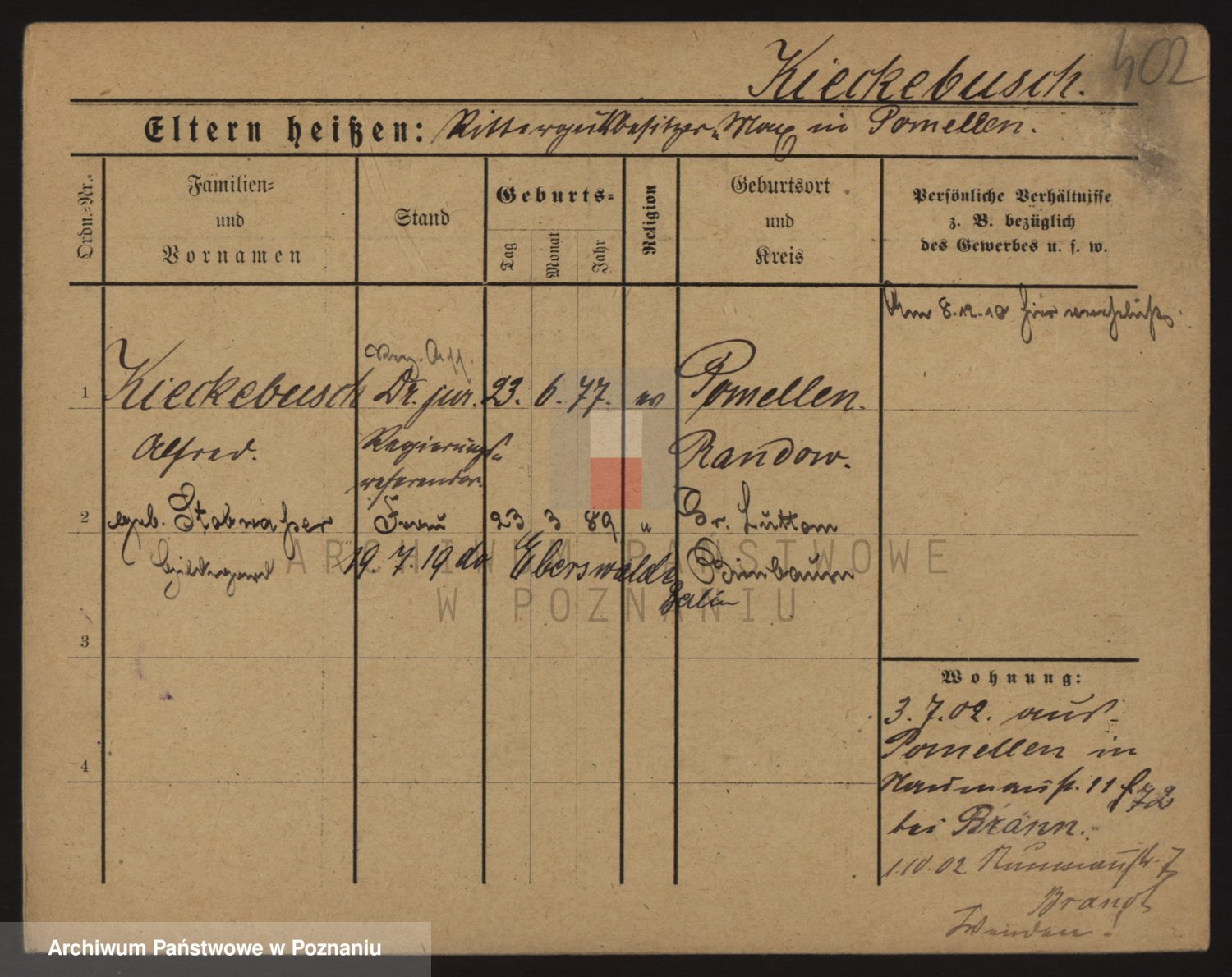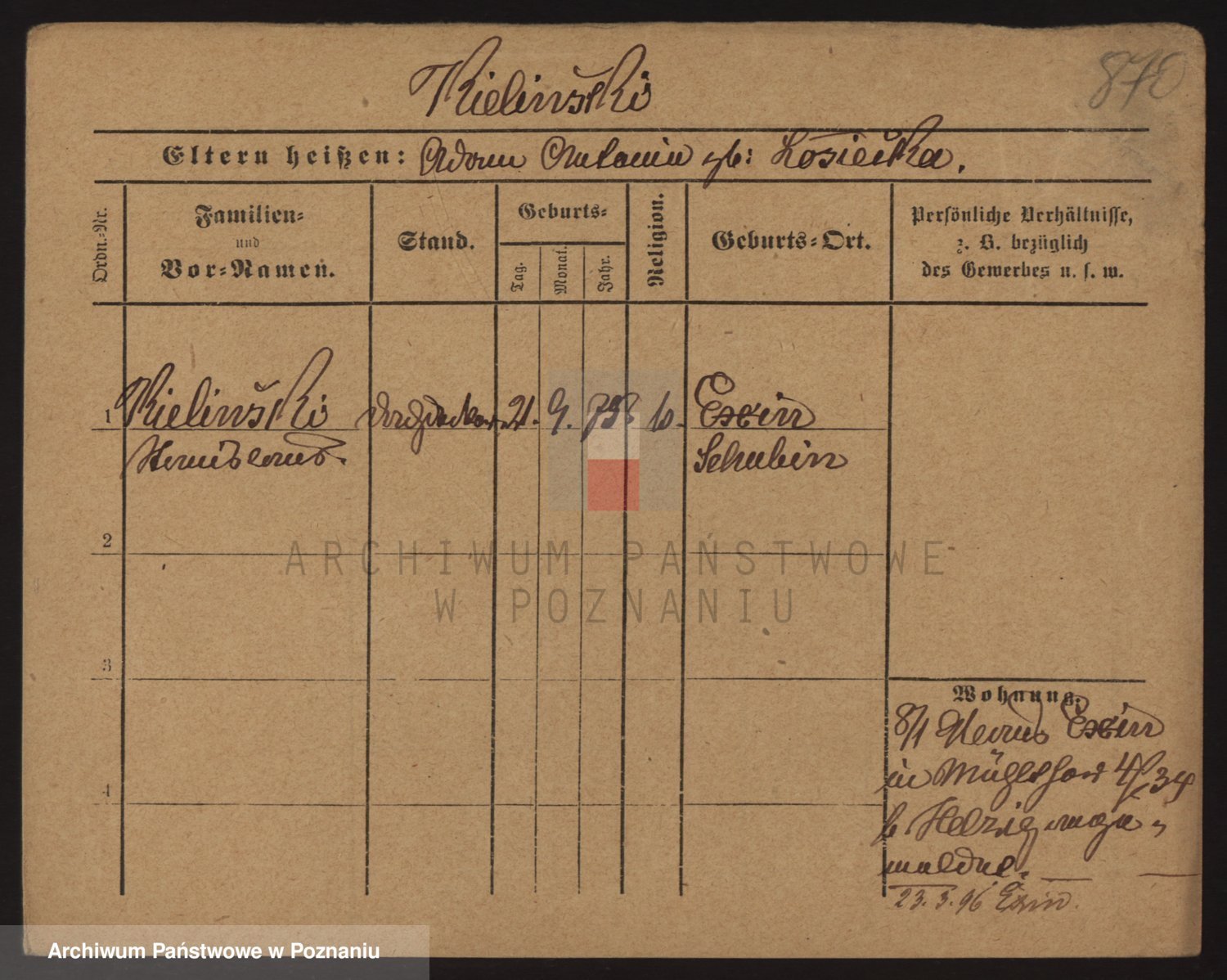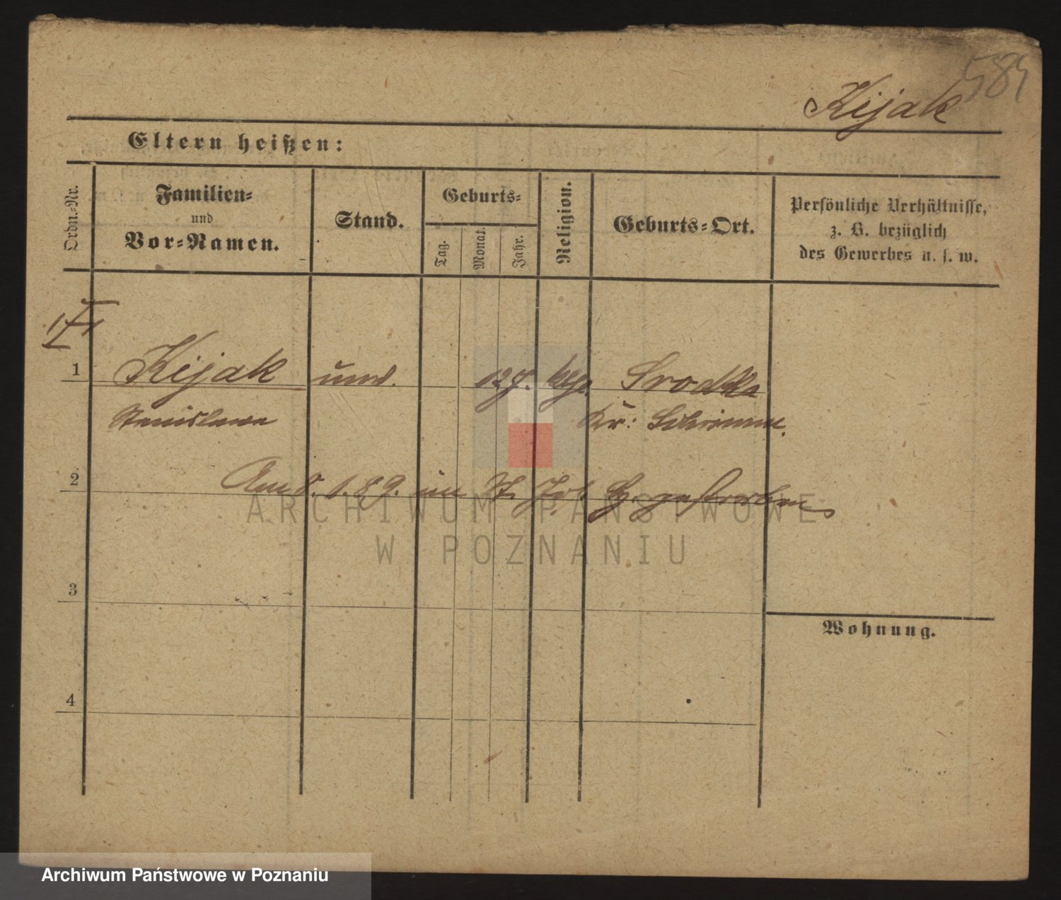 Podgląd karty osobowej dostępny jest po kliknięciu na nazwisko lub ikonkę karty. Można dokonywać powiększenia (ikony na górze) lub przechodzić między kolejnymi skanami (strzałki po bokach).