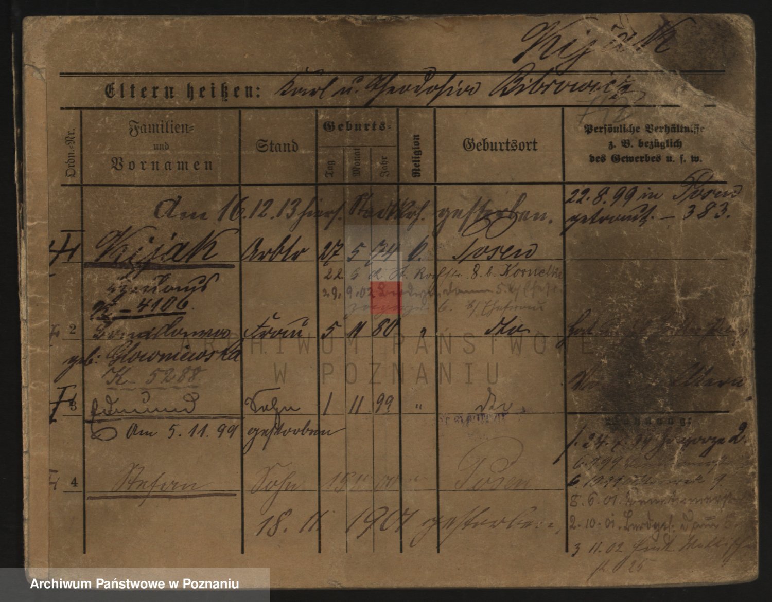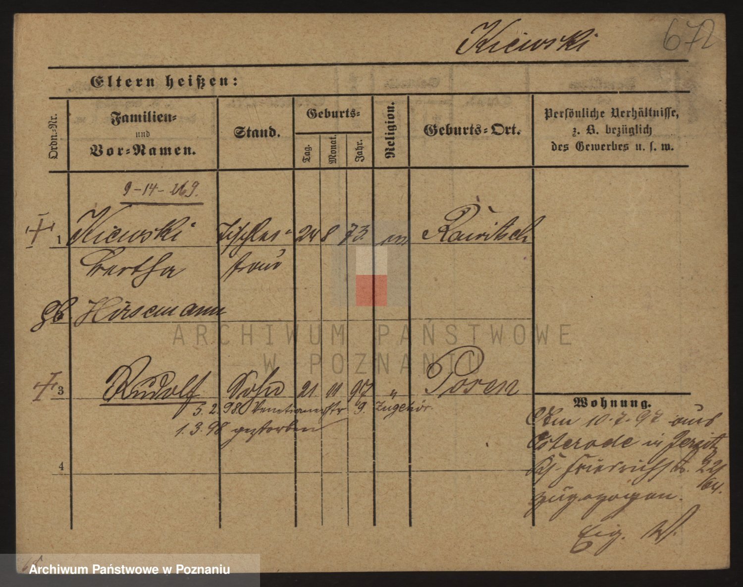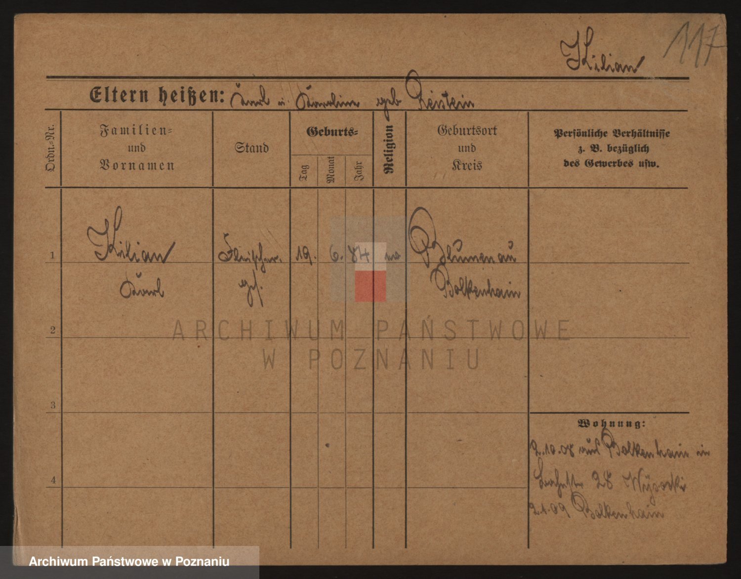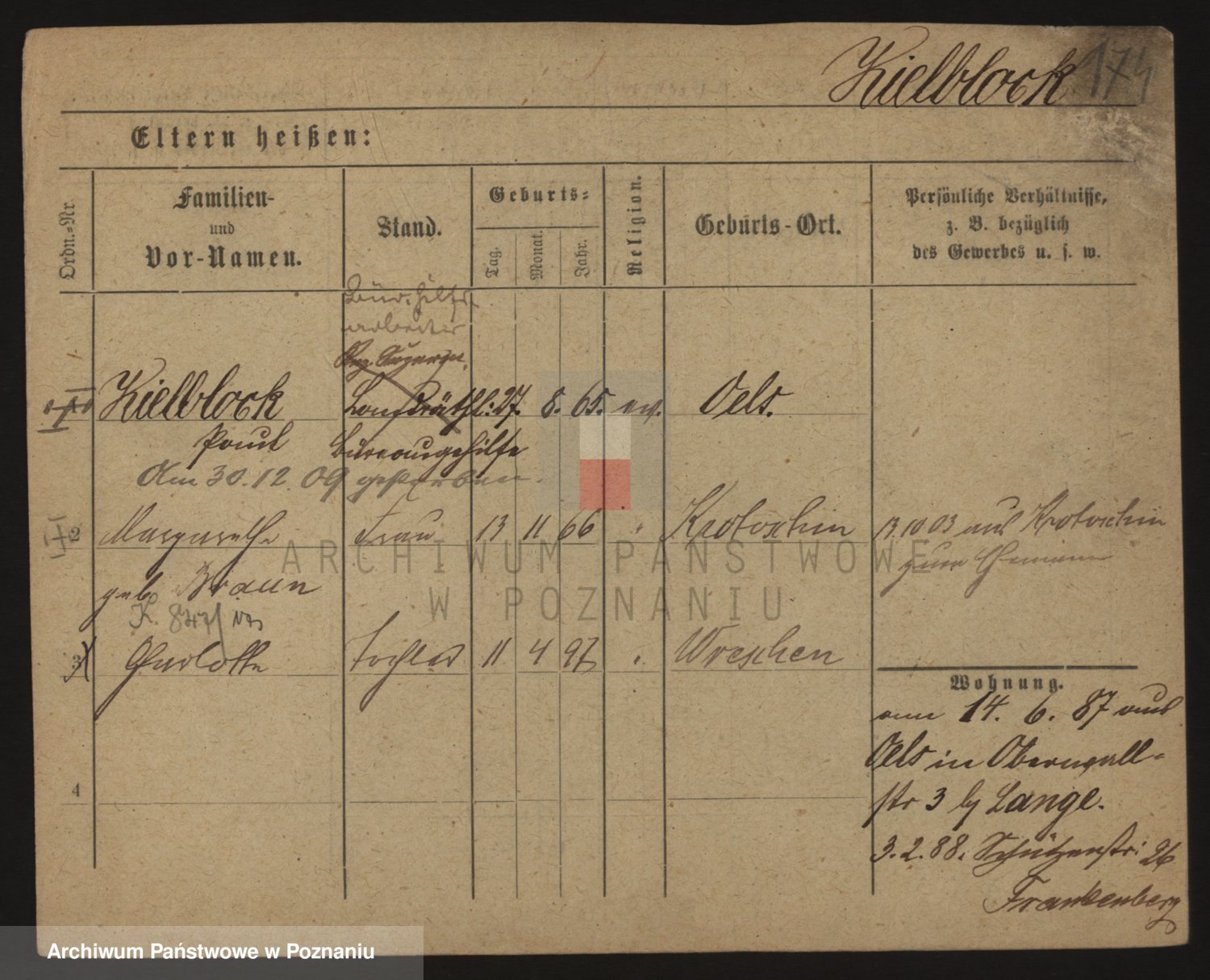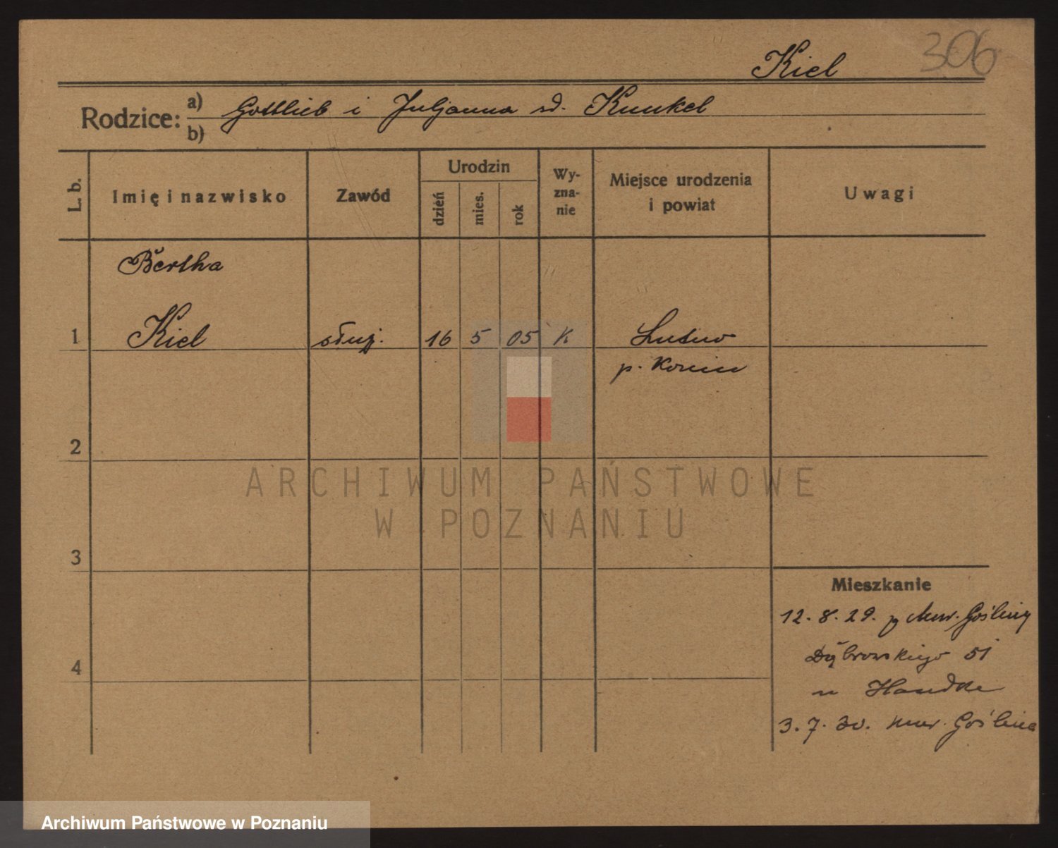 Podgląd karty osobowej dostępny jest po kliknięciu na nazwisko lub ikonkę karty. Można dokonywać powiększenia (ikony na górze) lub przechodzić między kolejnymi skanami (strzałki po bokach).