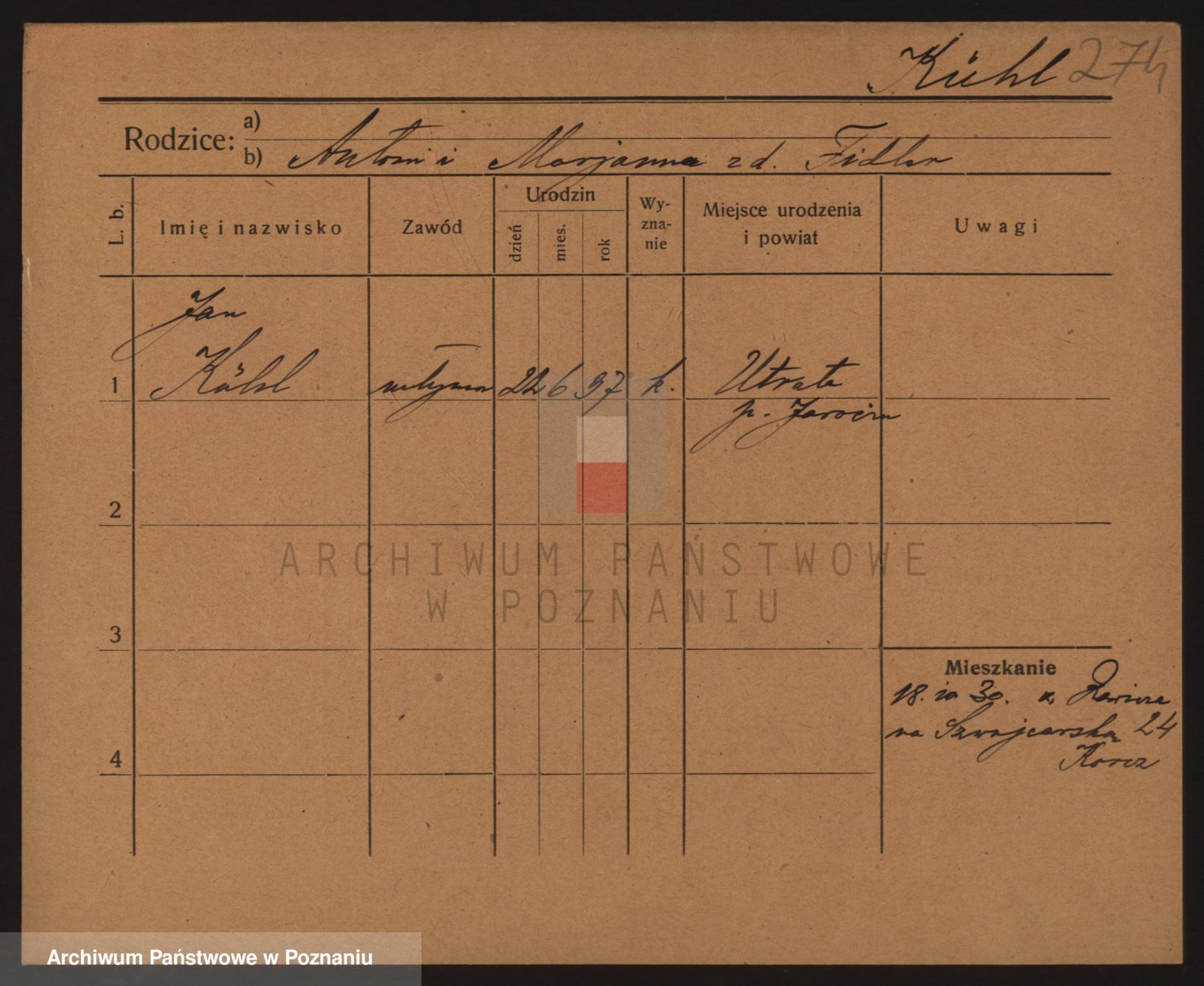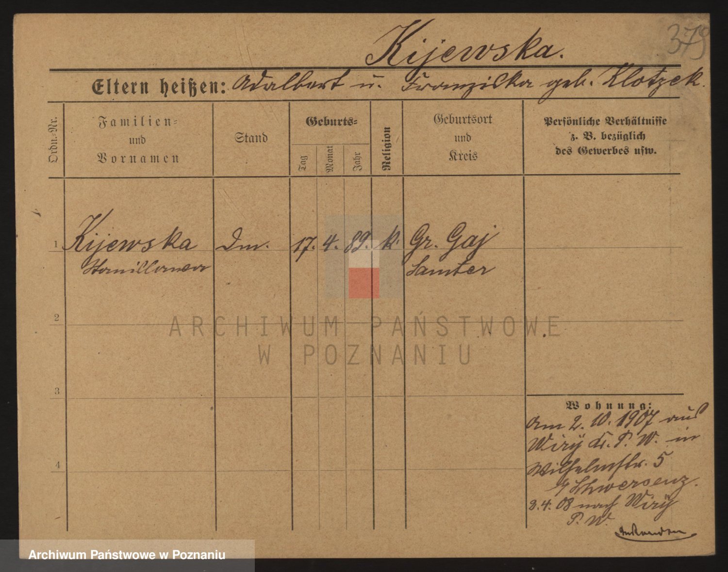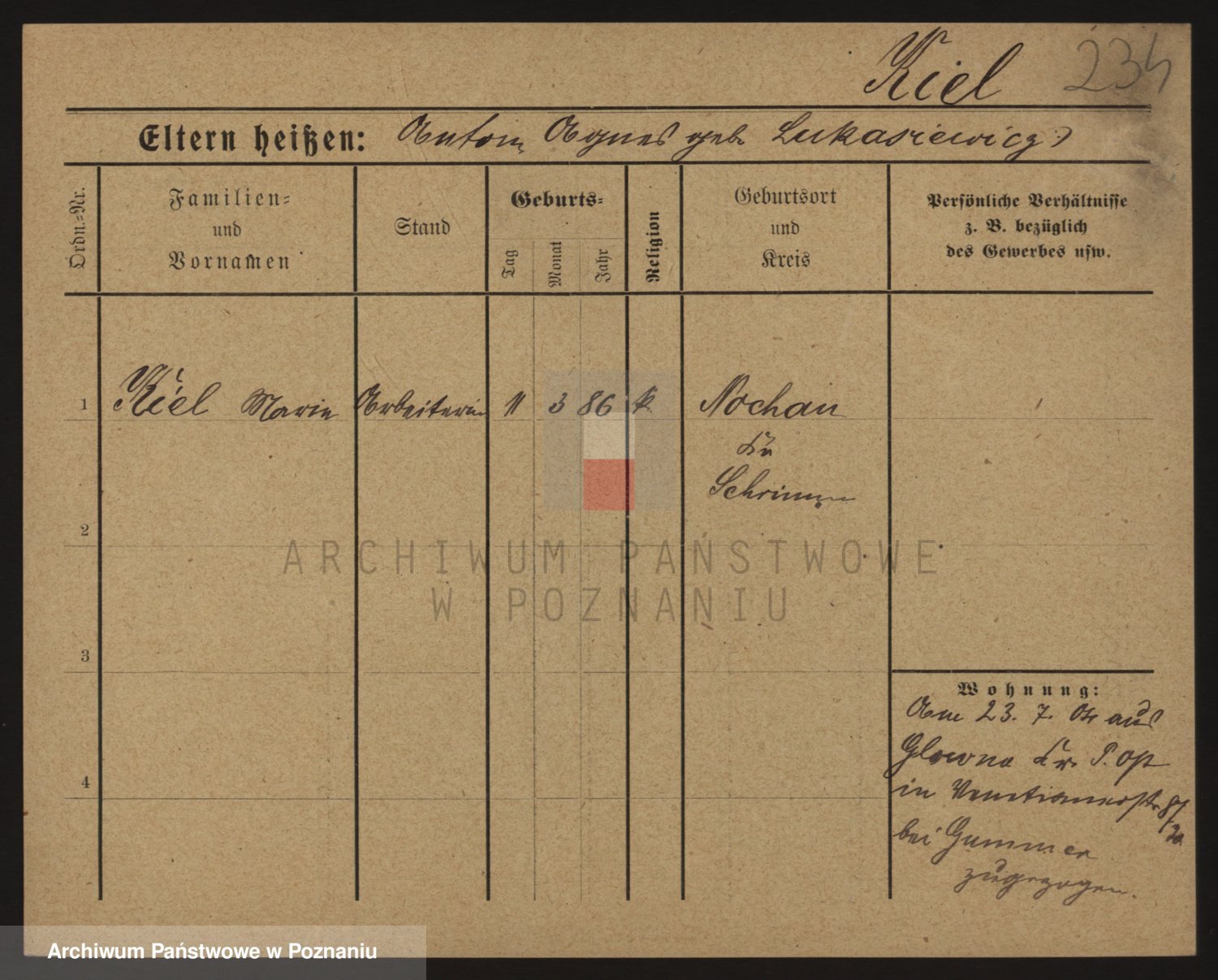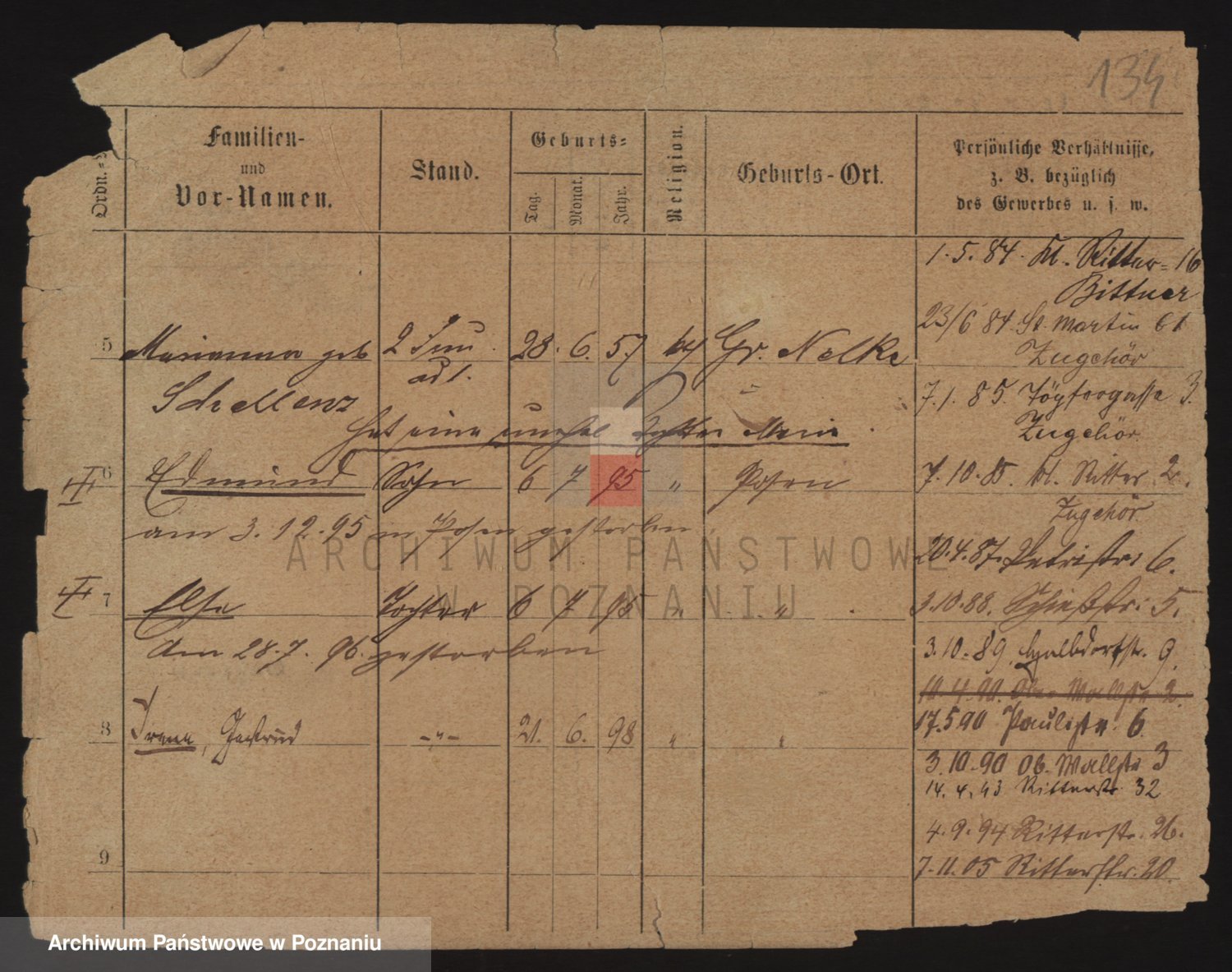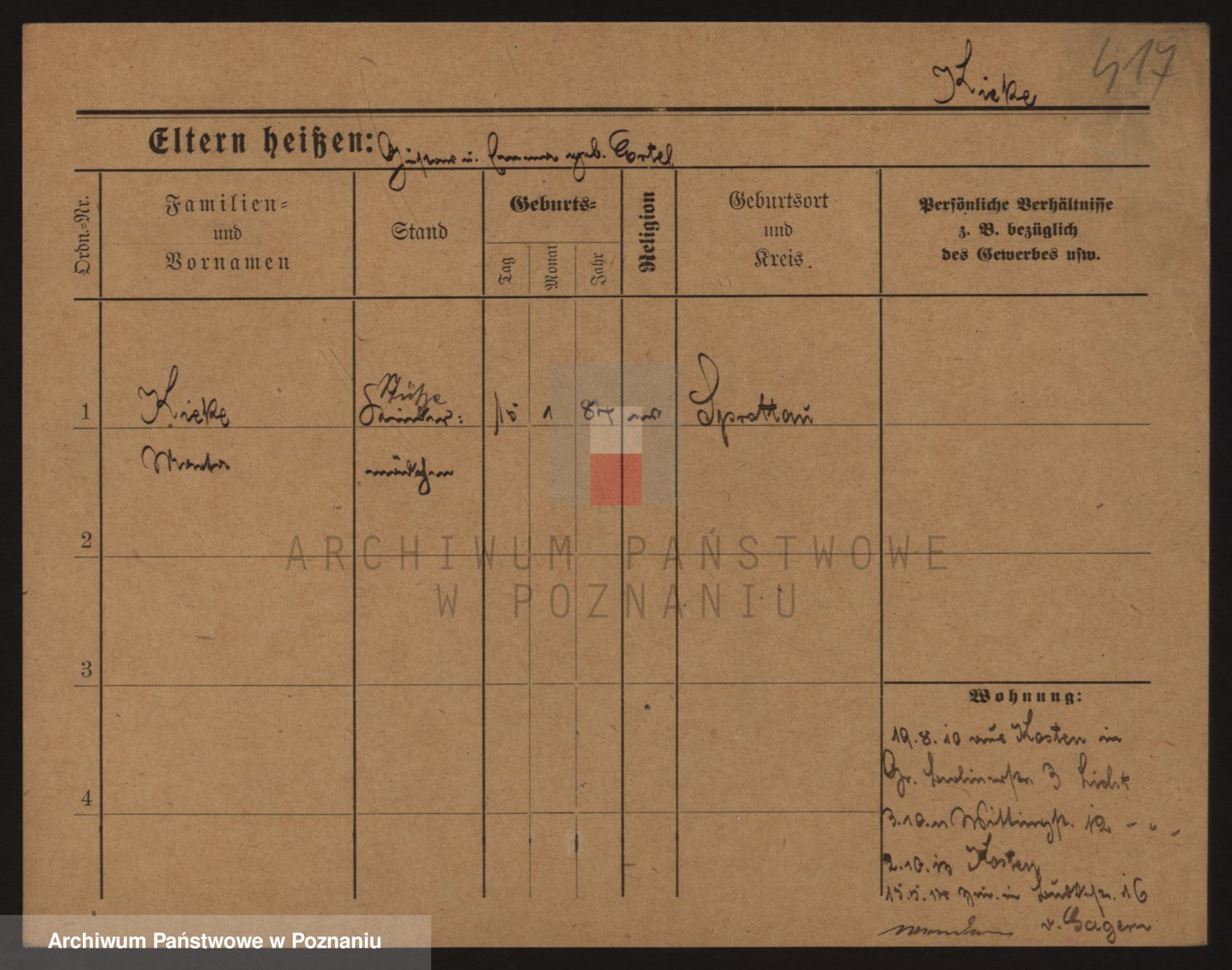 Podgląd karty osobowej dostępny jest po kliknięciu na nazwisko lub ikonkę karty. Można dokonywać powiększenia (ikony na górze) lub przechodzić między kolejnymi skanami (strzałki po bokach).
