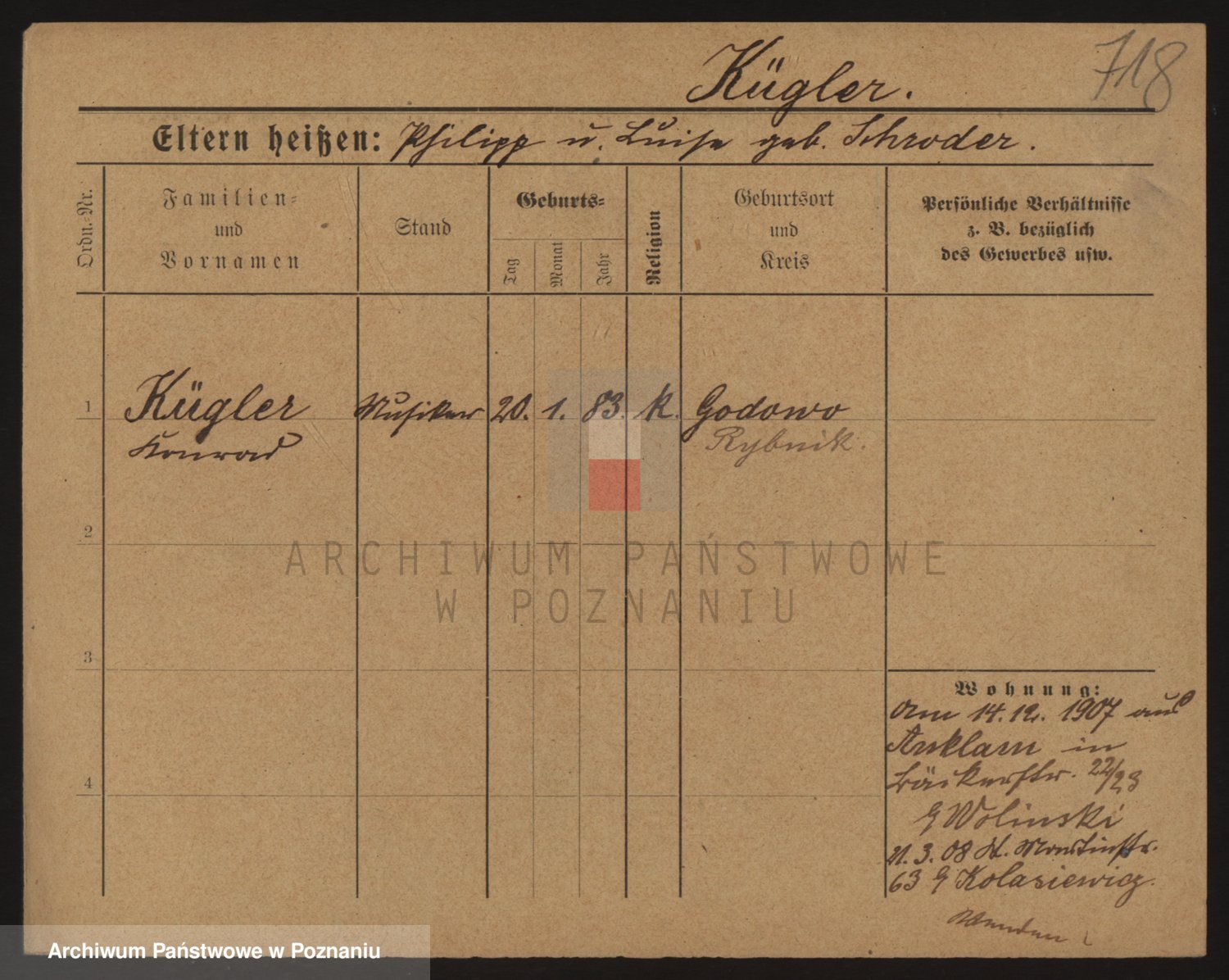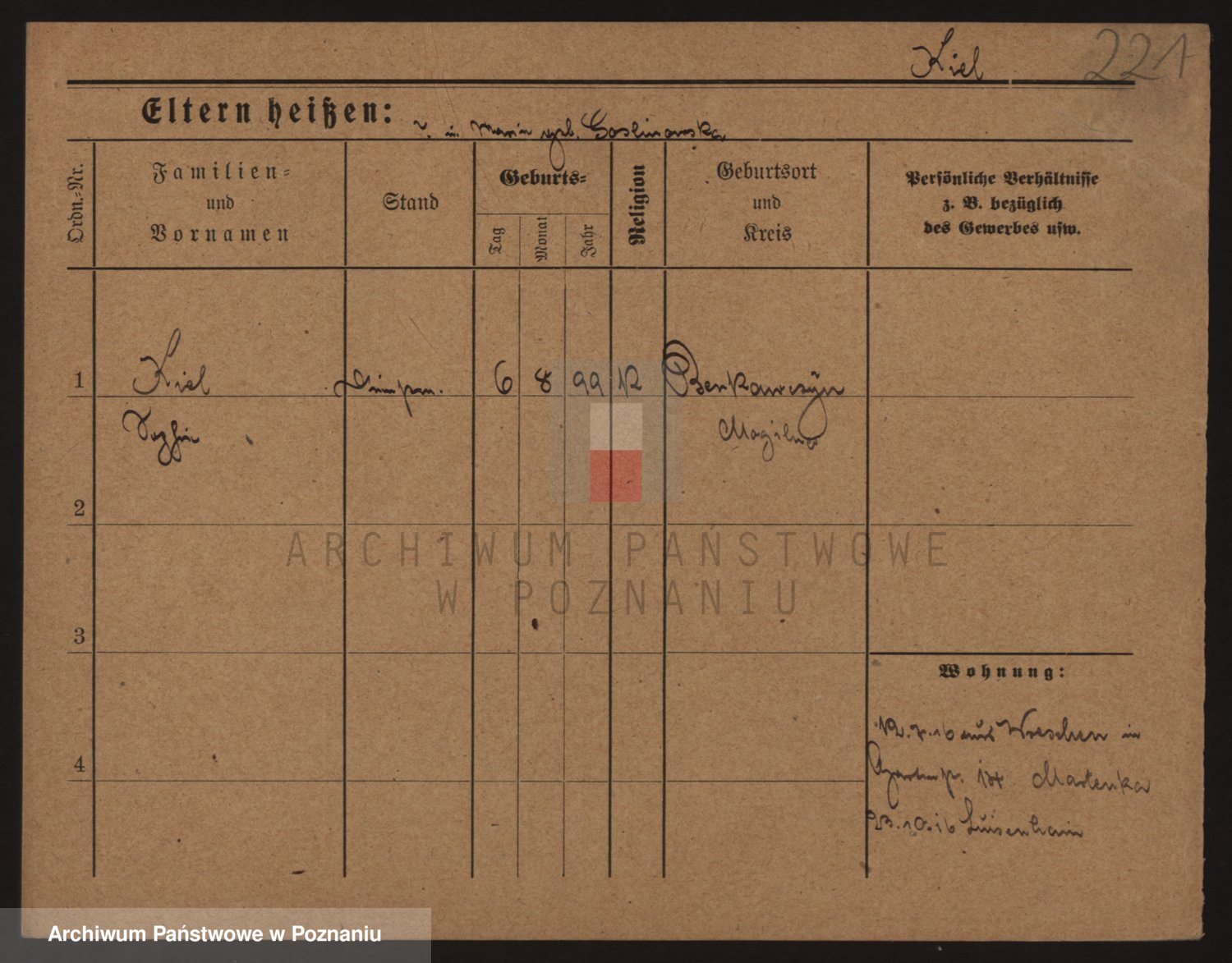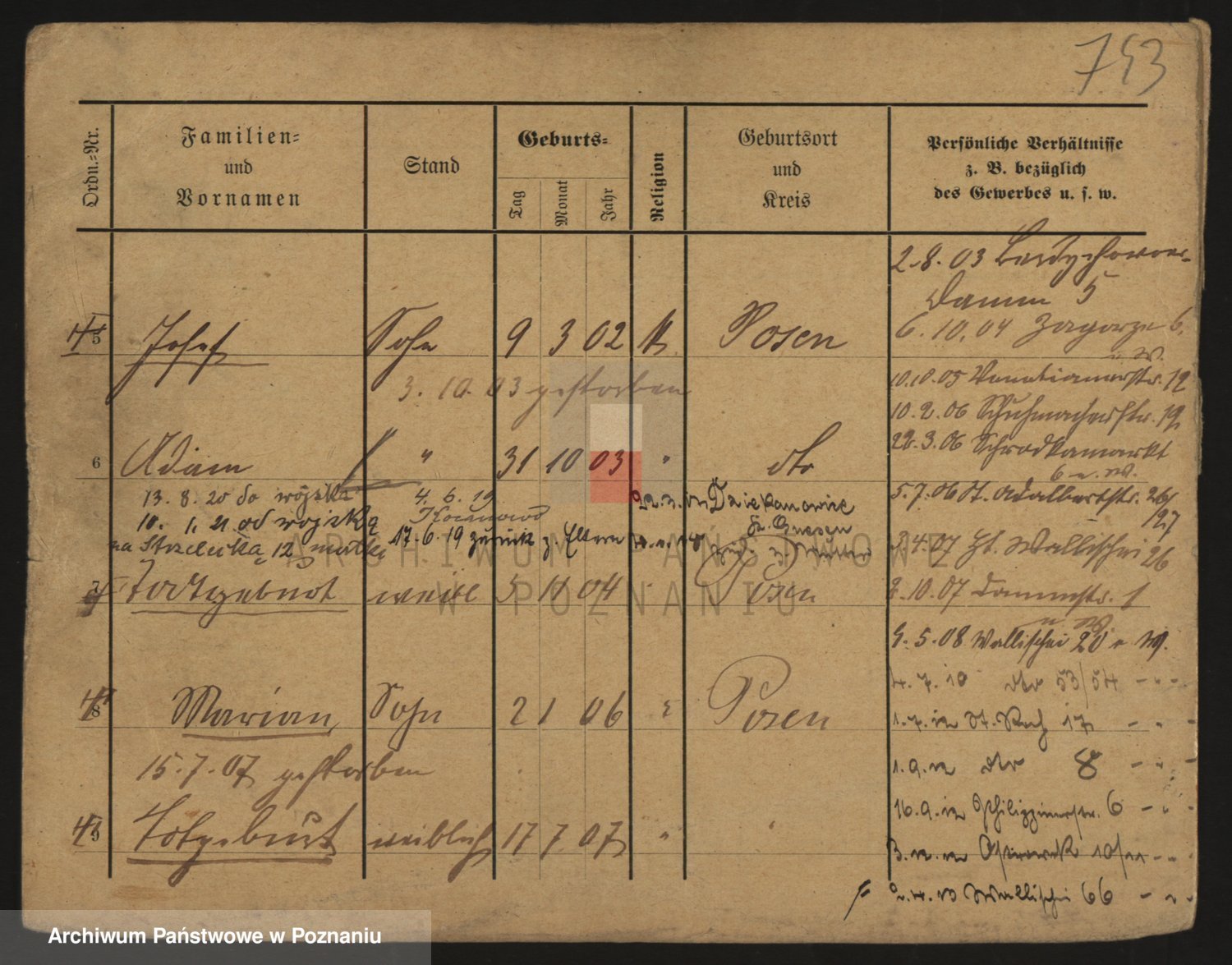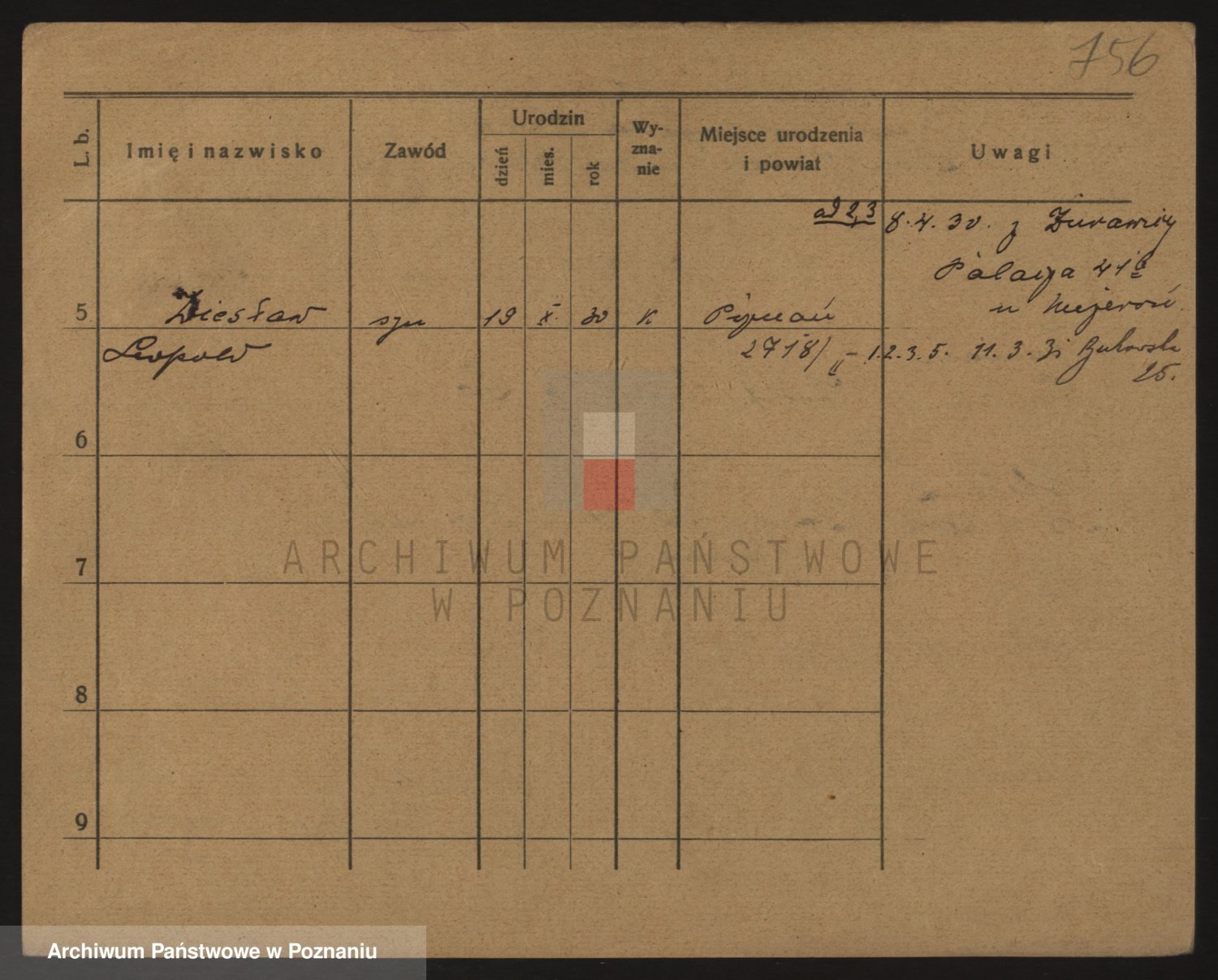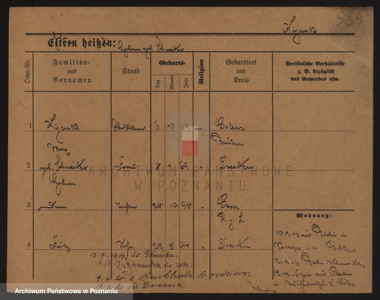 Podgląd karty osobowej dostępny jest po kliknięciu na nazwisko lub ikonkę karty. Można dokonywać powiększenia (ikony na górze) lub przechodzić między kolejnymi skanami (strzałki po bokach).