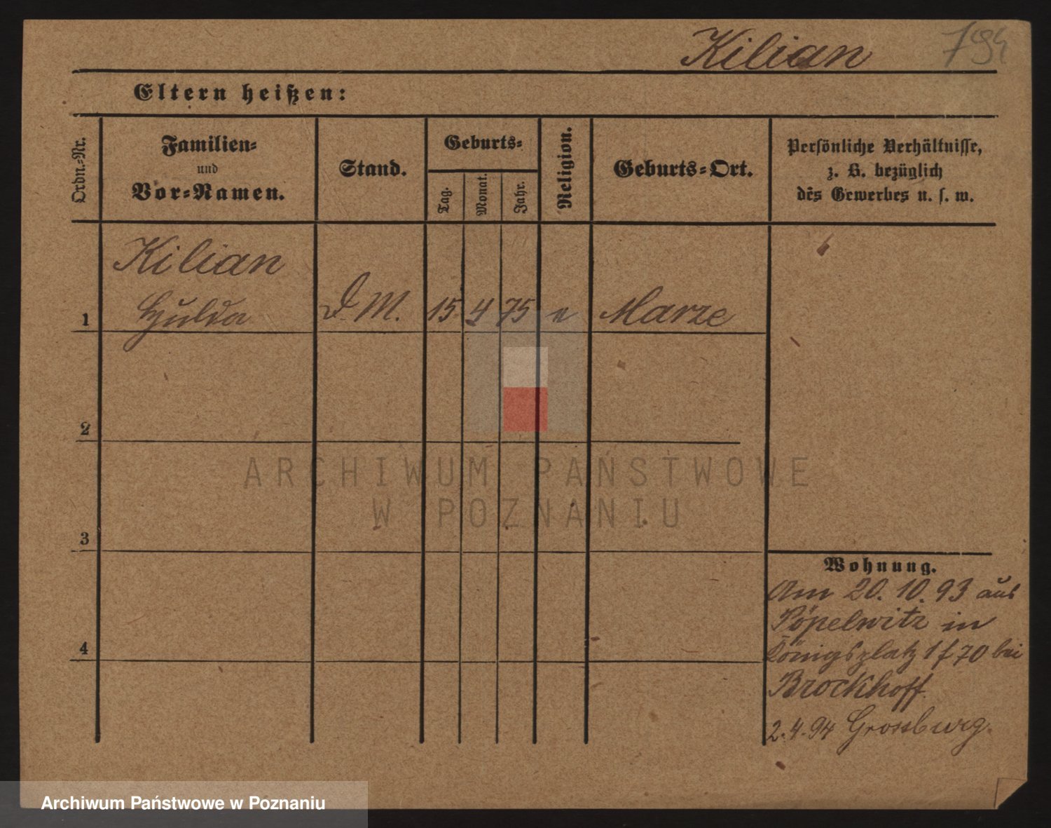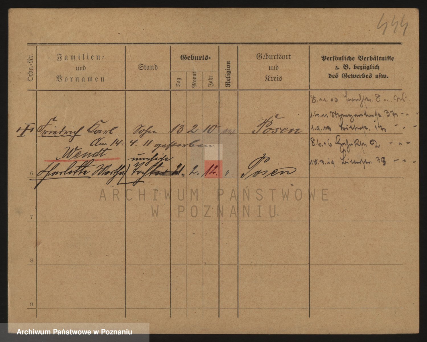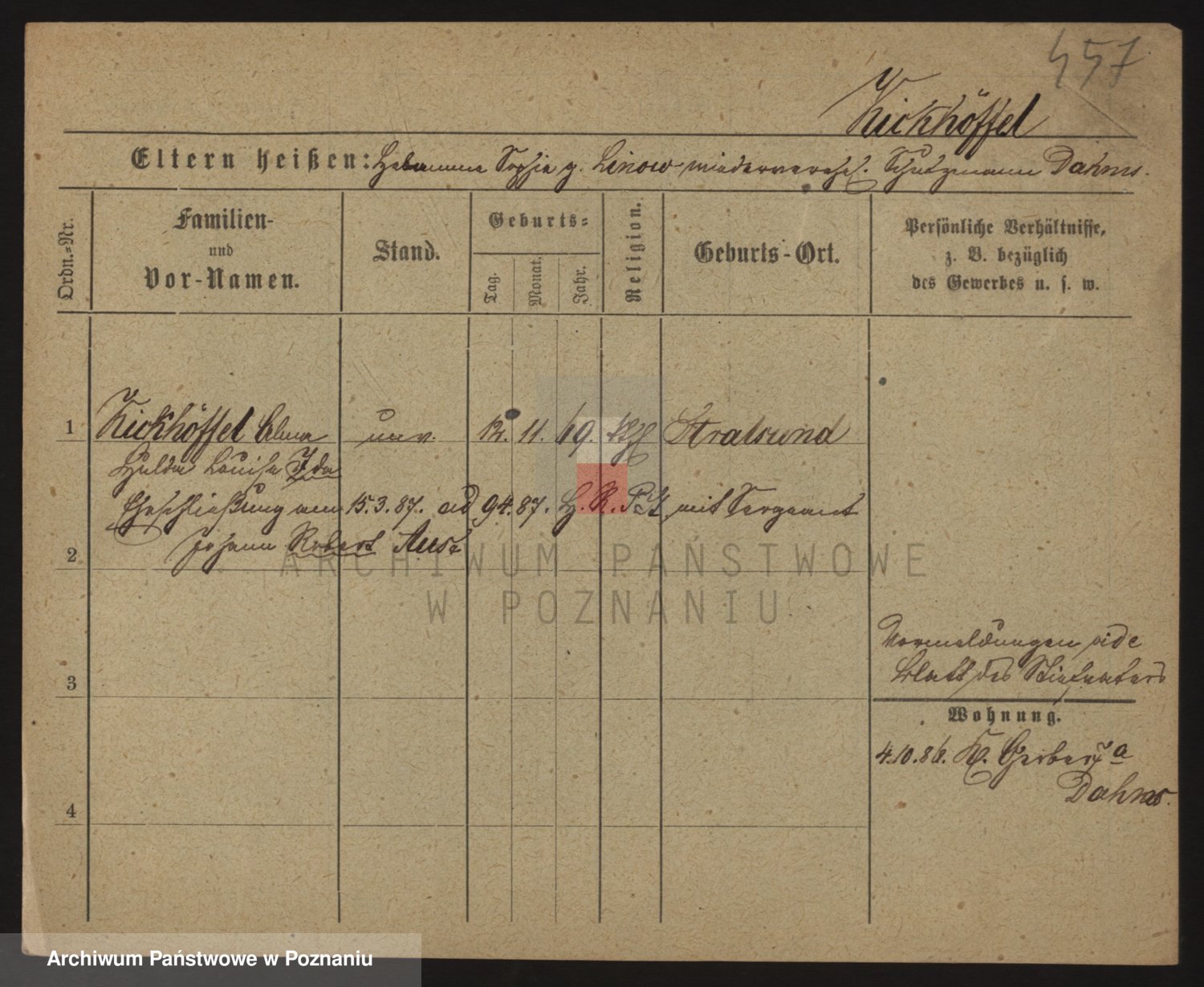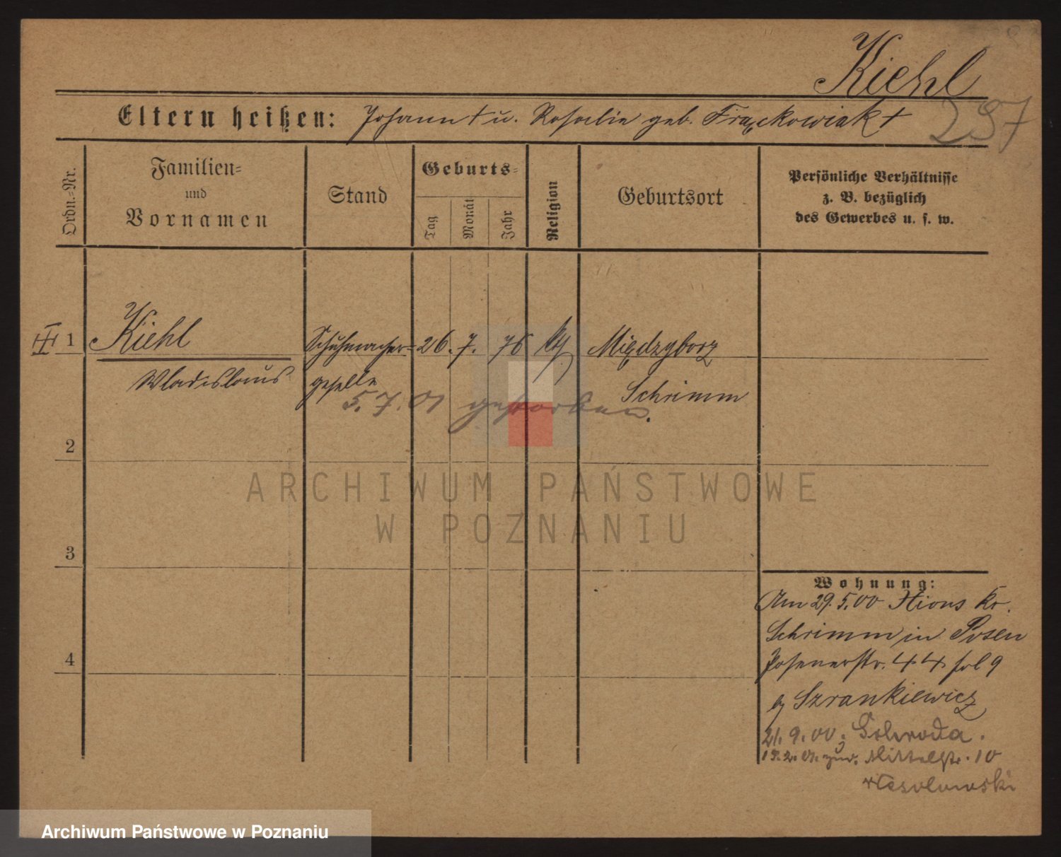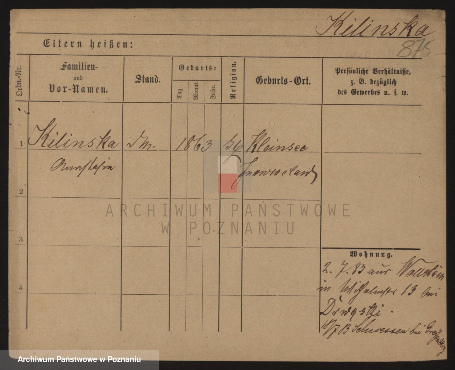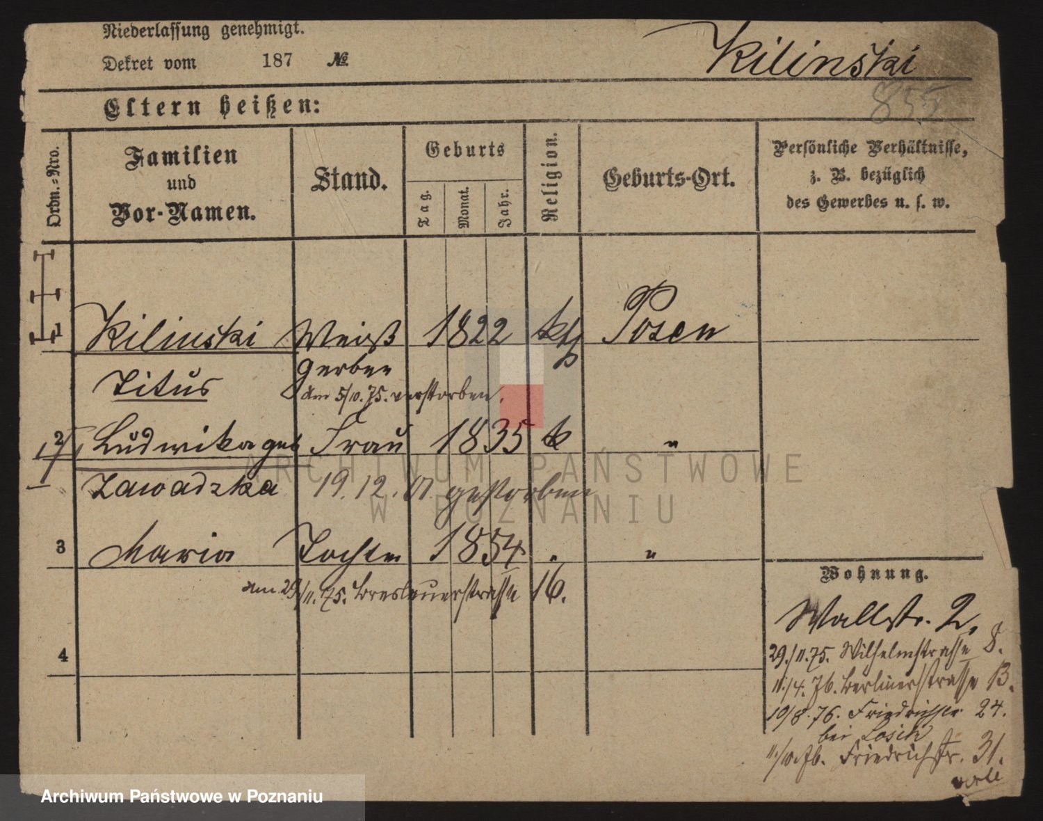Podgląd karty osobowej dostępny jest po kliknięciu na nazwisko lub ikonkę karty. Można dokonywać powiększenia (ikony na górze) lub przechodzić między kolejnymi skanami (strzałki po bokach).