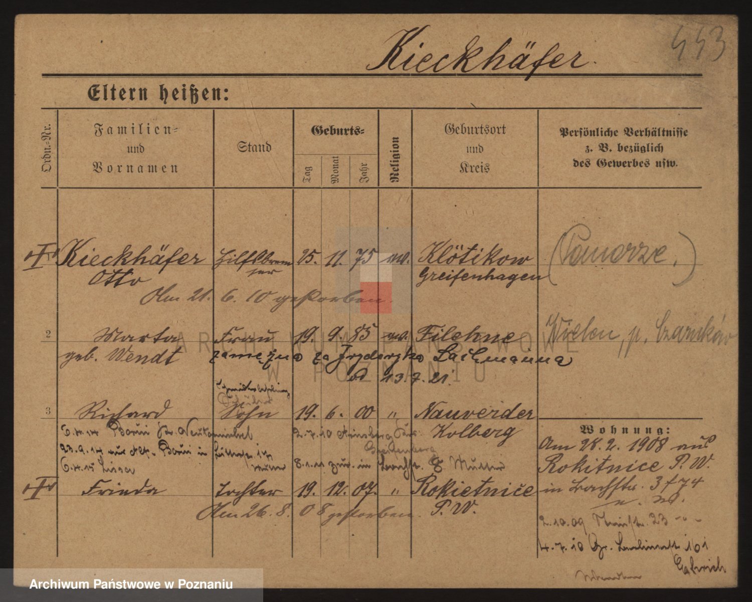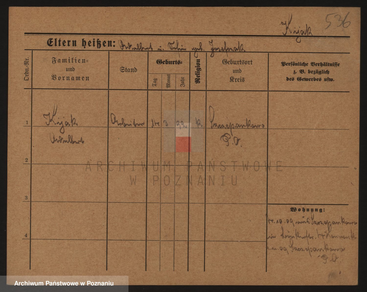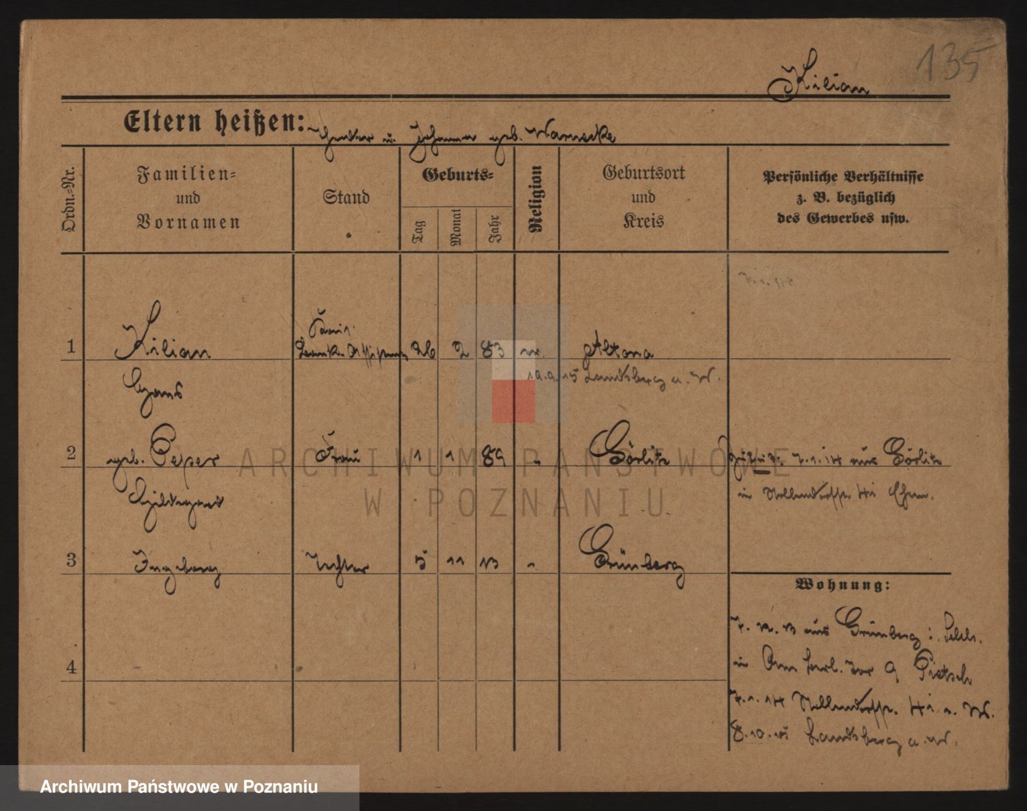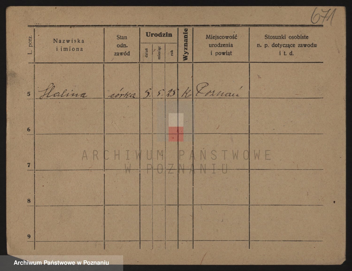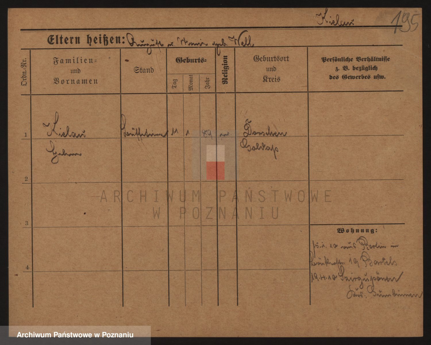 Podgląd karty osobowej dostępny jest po kliknięciu na nazwisko lub ikonkę karty. Można dokonywać powiększenia (ikony na górze) lub przechodzić między kolejnymi skanami (strzałki po bokach).