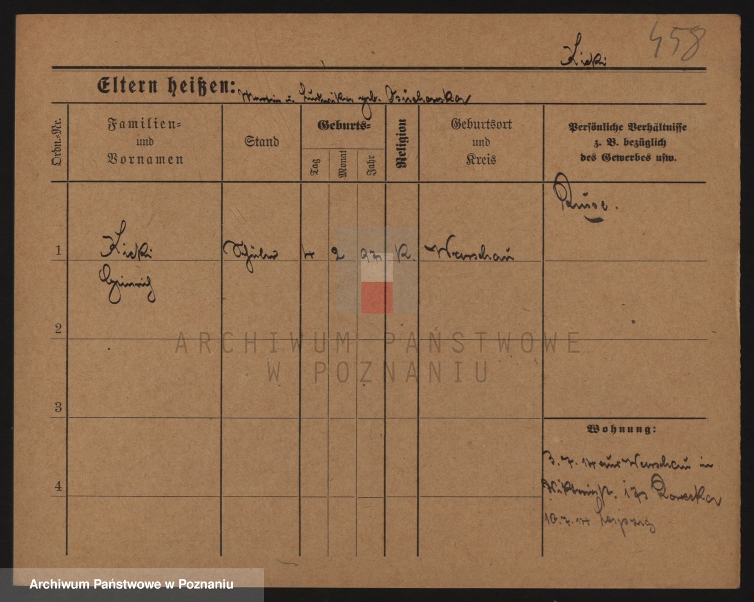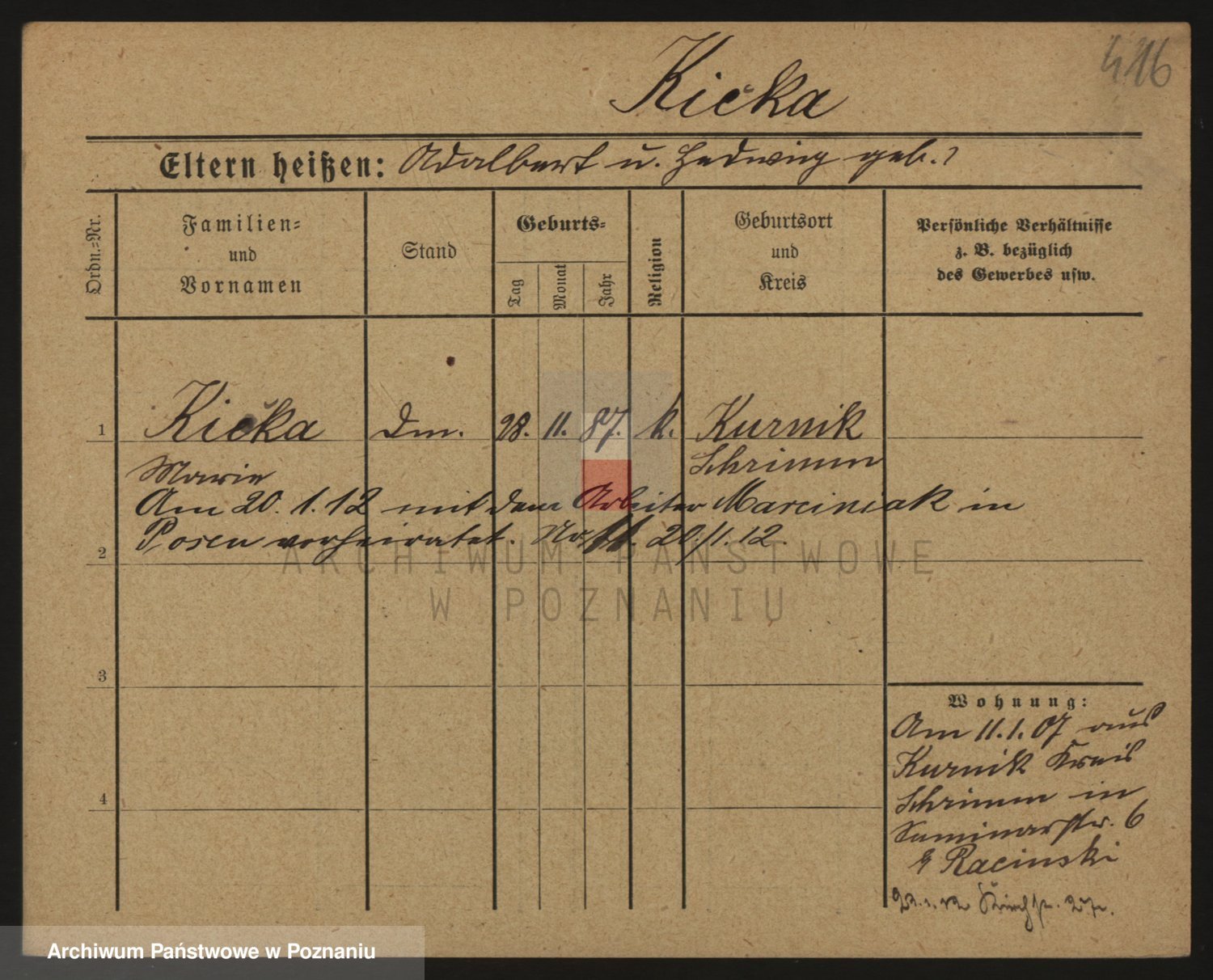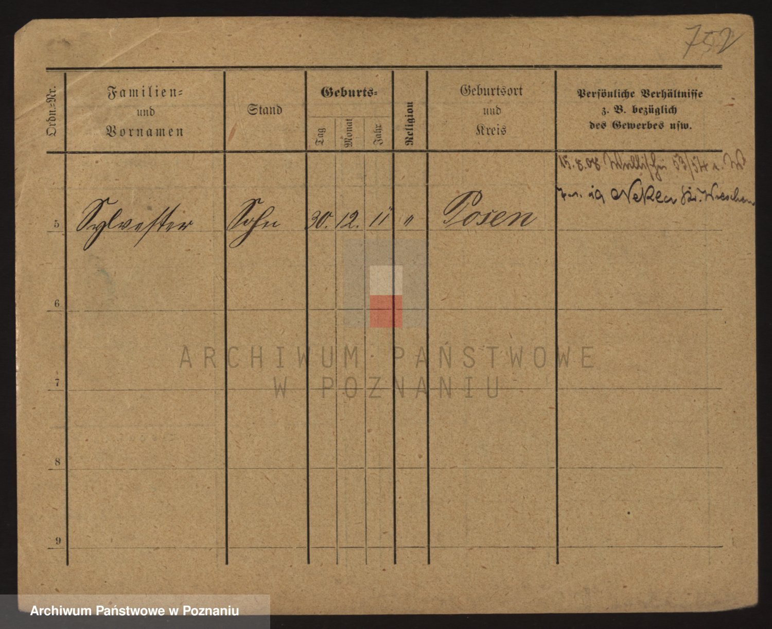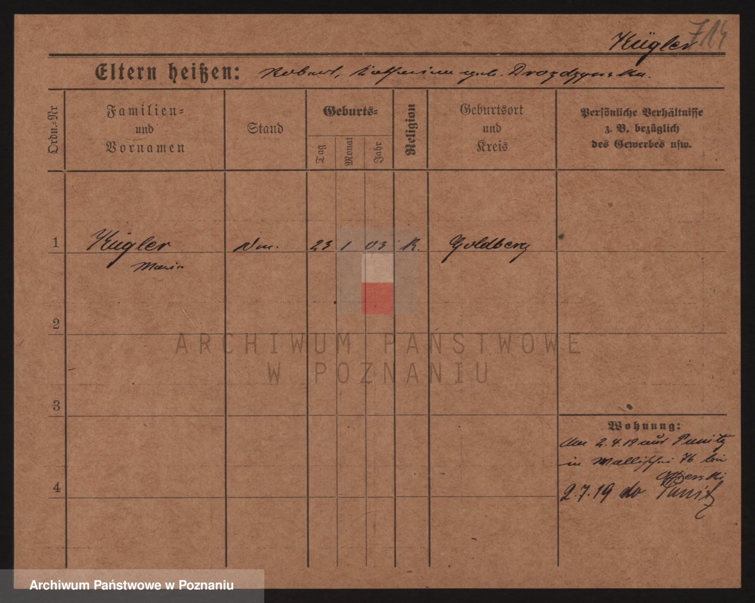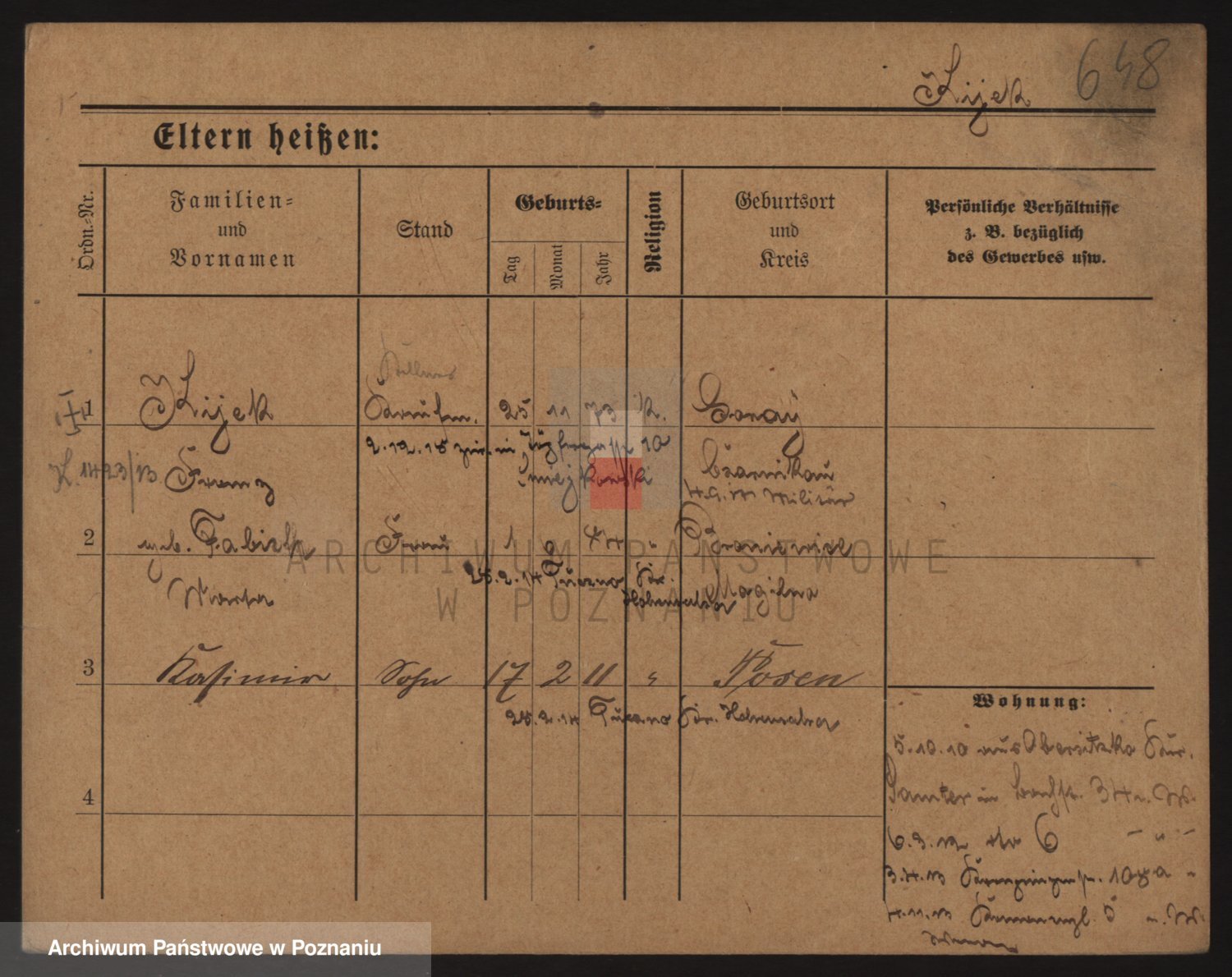 Podgląd karty osobowej dostępny jest po kliknięciu na nazwisko lub ikonkę karty. Można dokonywać powiększenia (ikony na górze) lub przechodzić między kolejnymi skanami (strzałki po bokach).