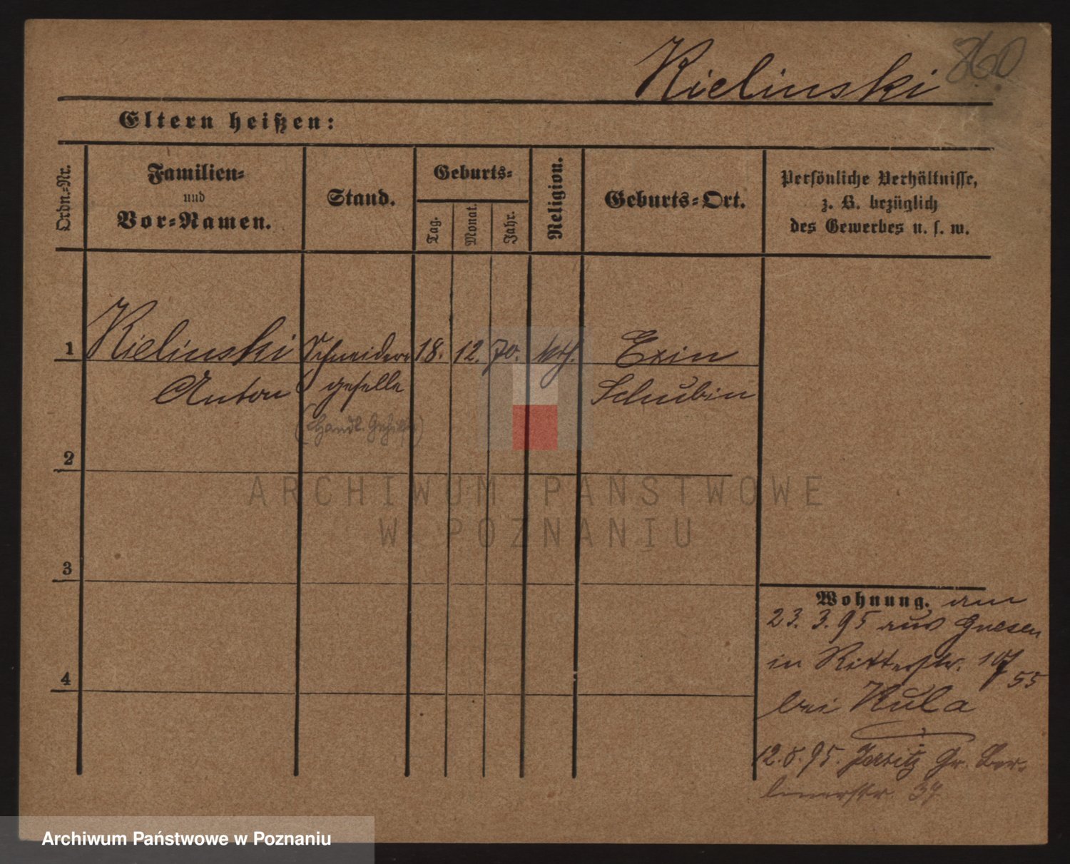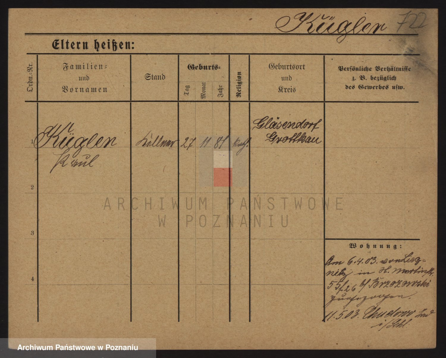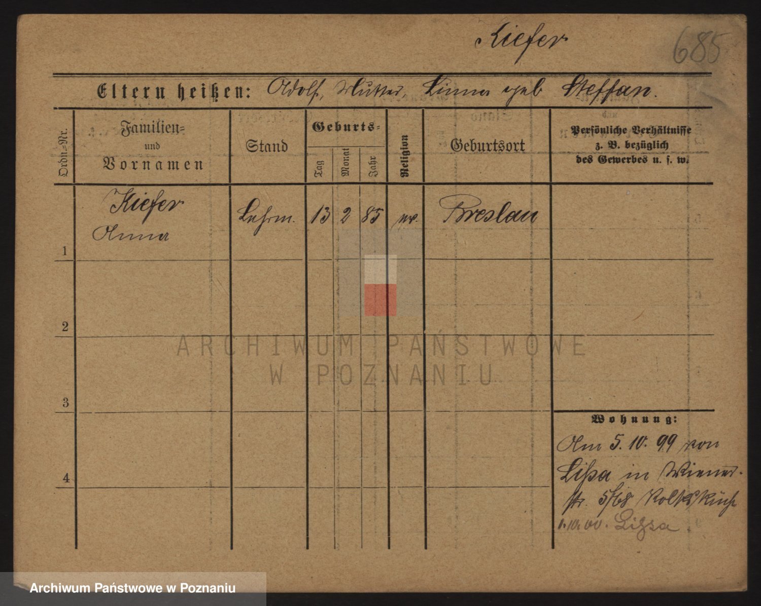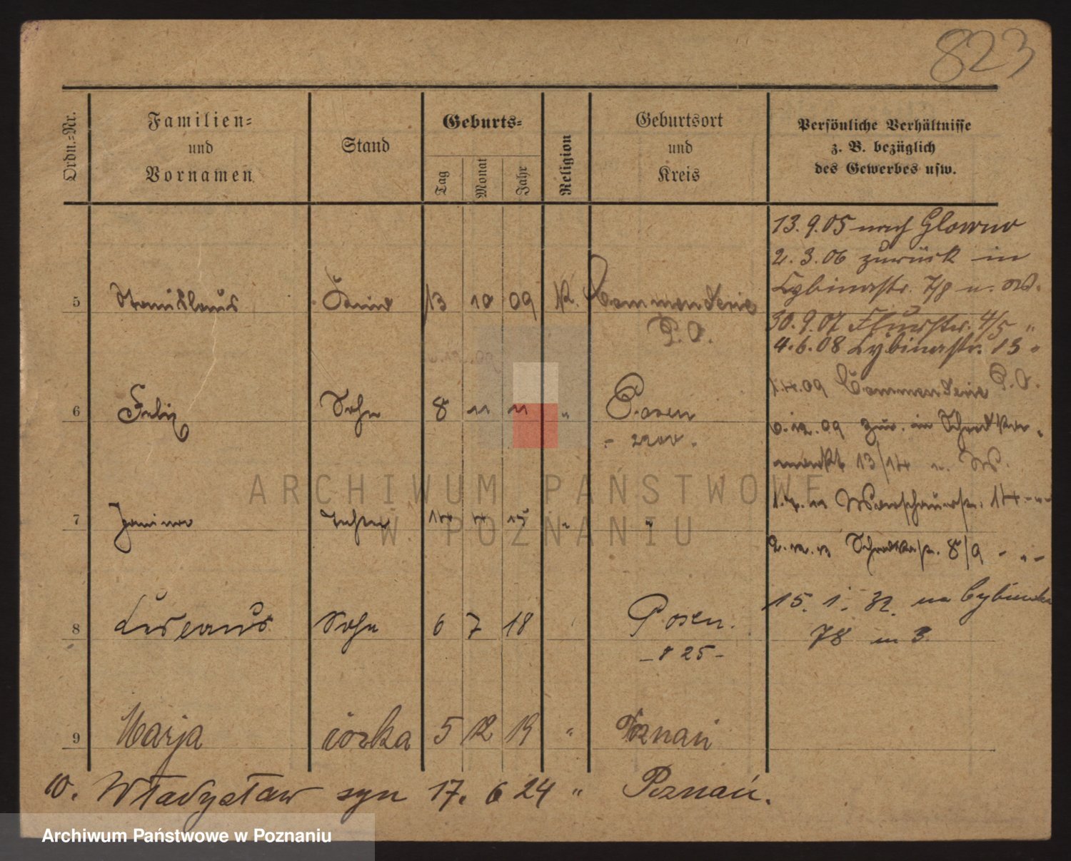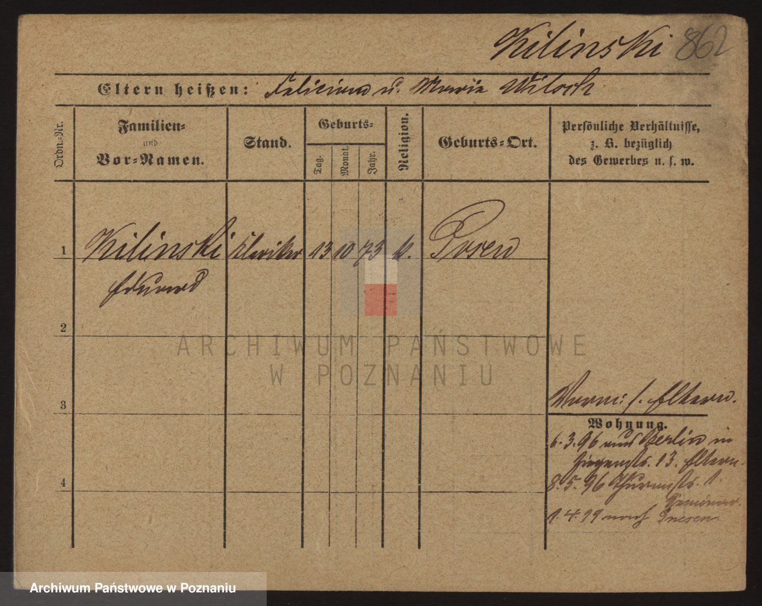 Podgląd karty osobowej dostępny jest po kliknięciu na nazwisko lub ikonkę karty. Można dokonywać powiększenia (ikony na górze) lub przechodzić między kolejnymi skanami (strzałki po bokach).