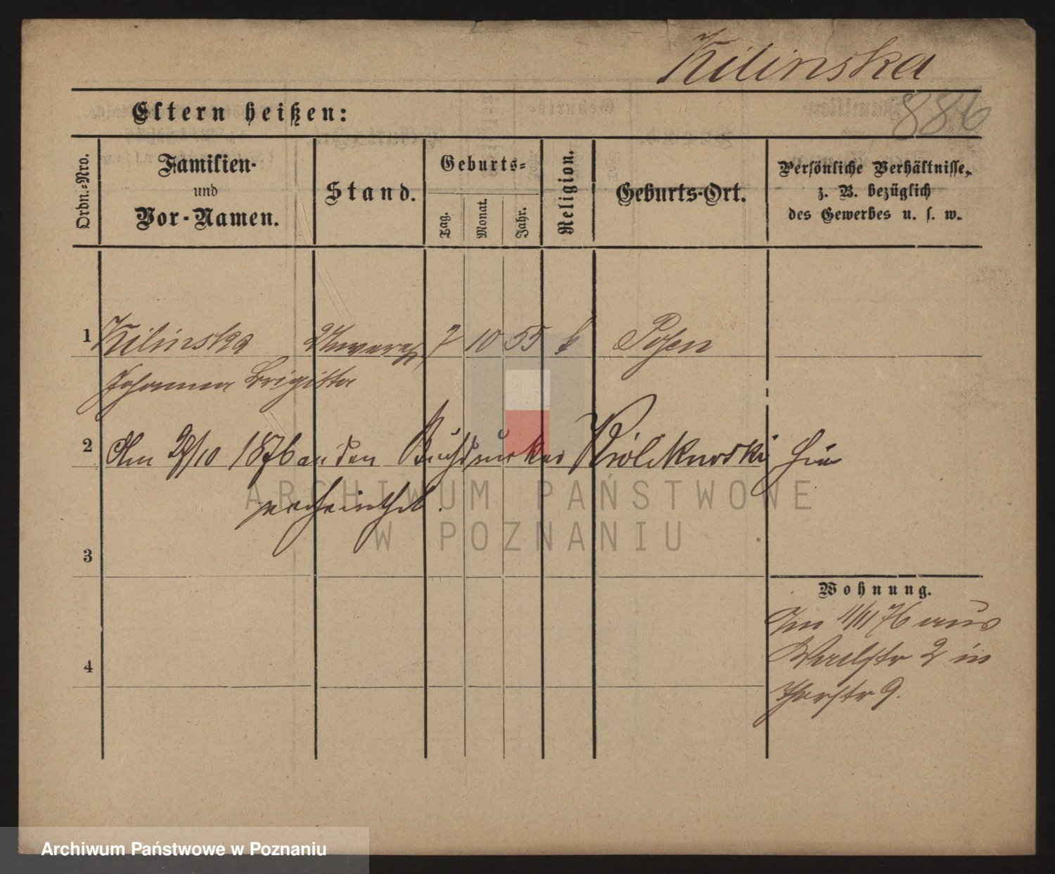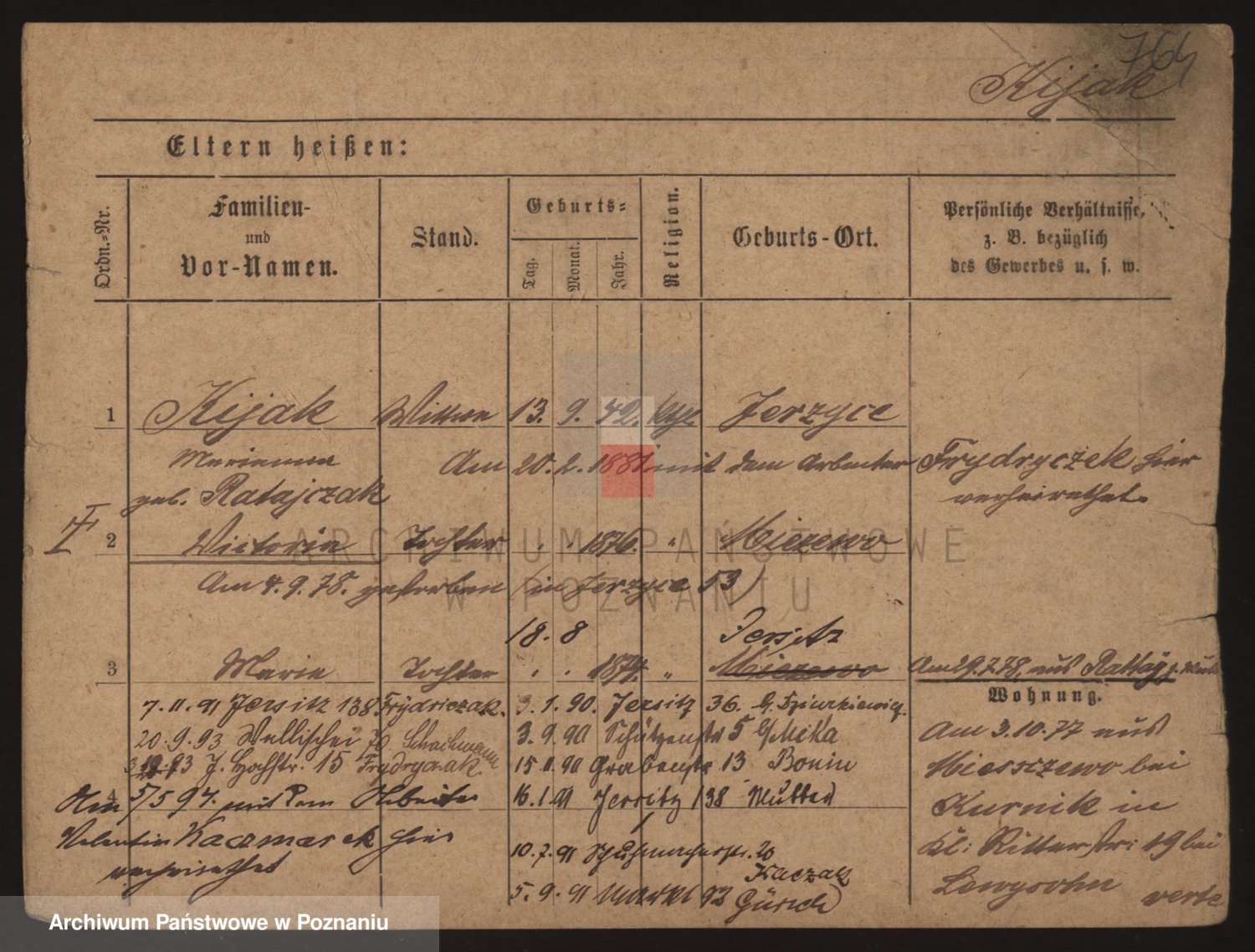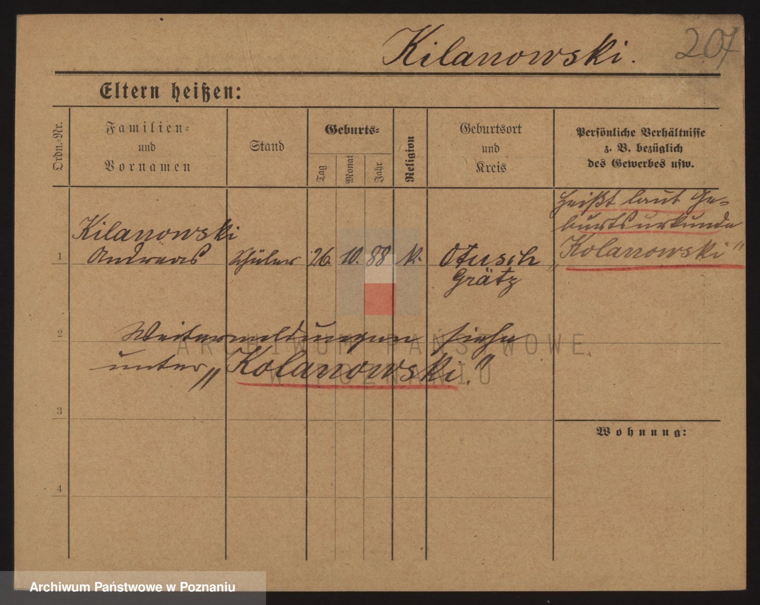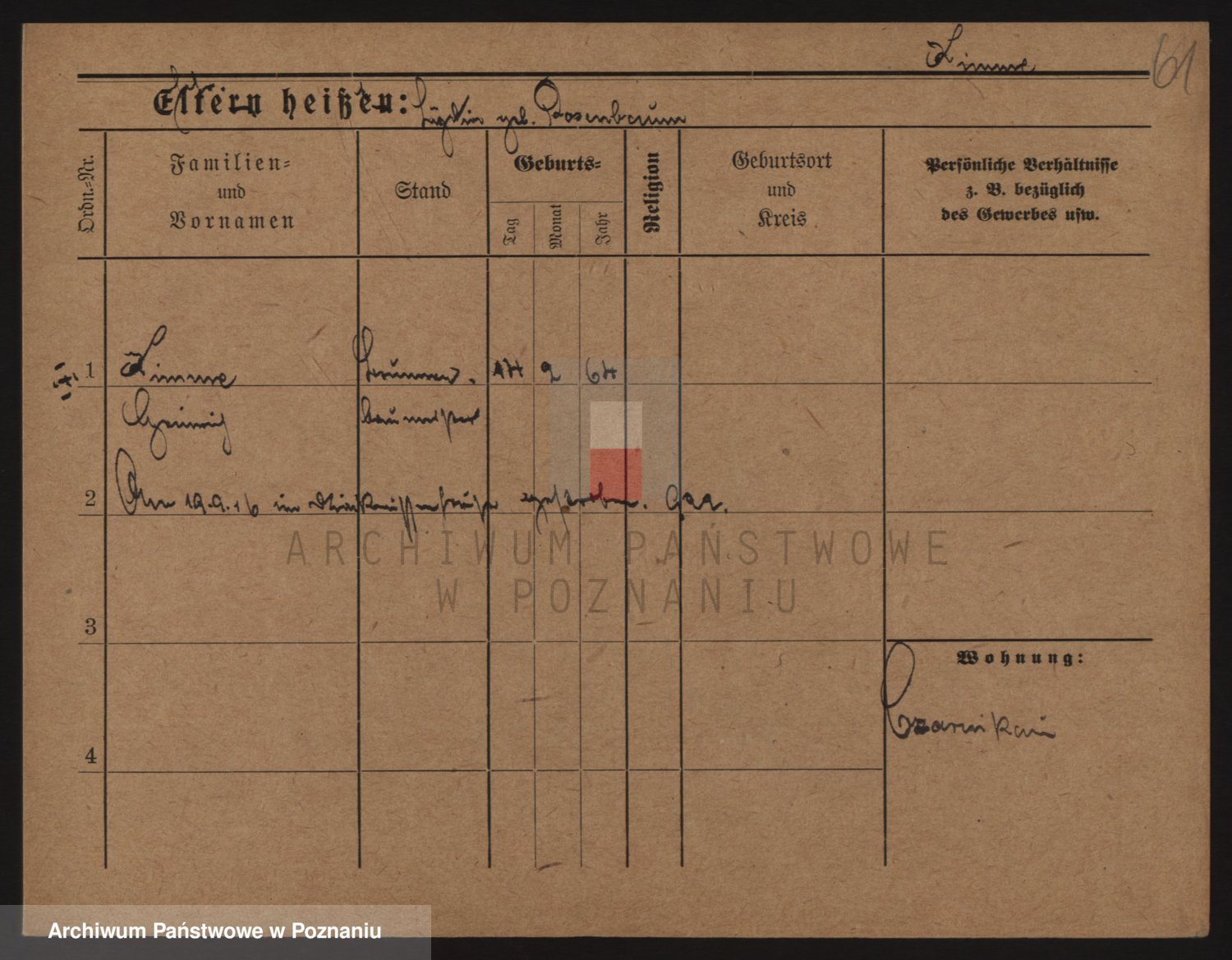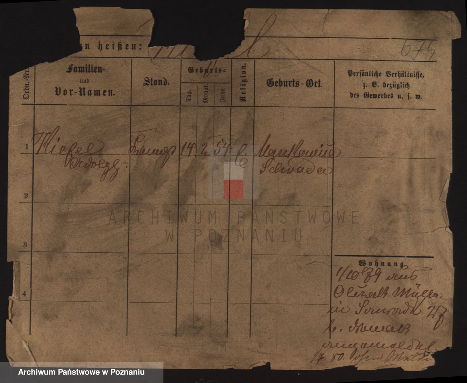 Podgląd karty osobowej dostępny jest po kliknięciu na nazwisko lub ikonkę karty. Można dokonywać powiększenia (ikony na górze) lub przechodzić między kolejnymi skanami (strzałki po bokach).