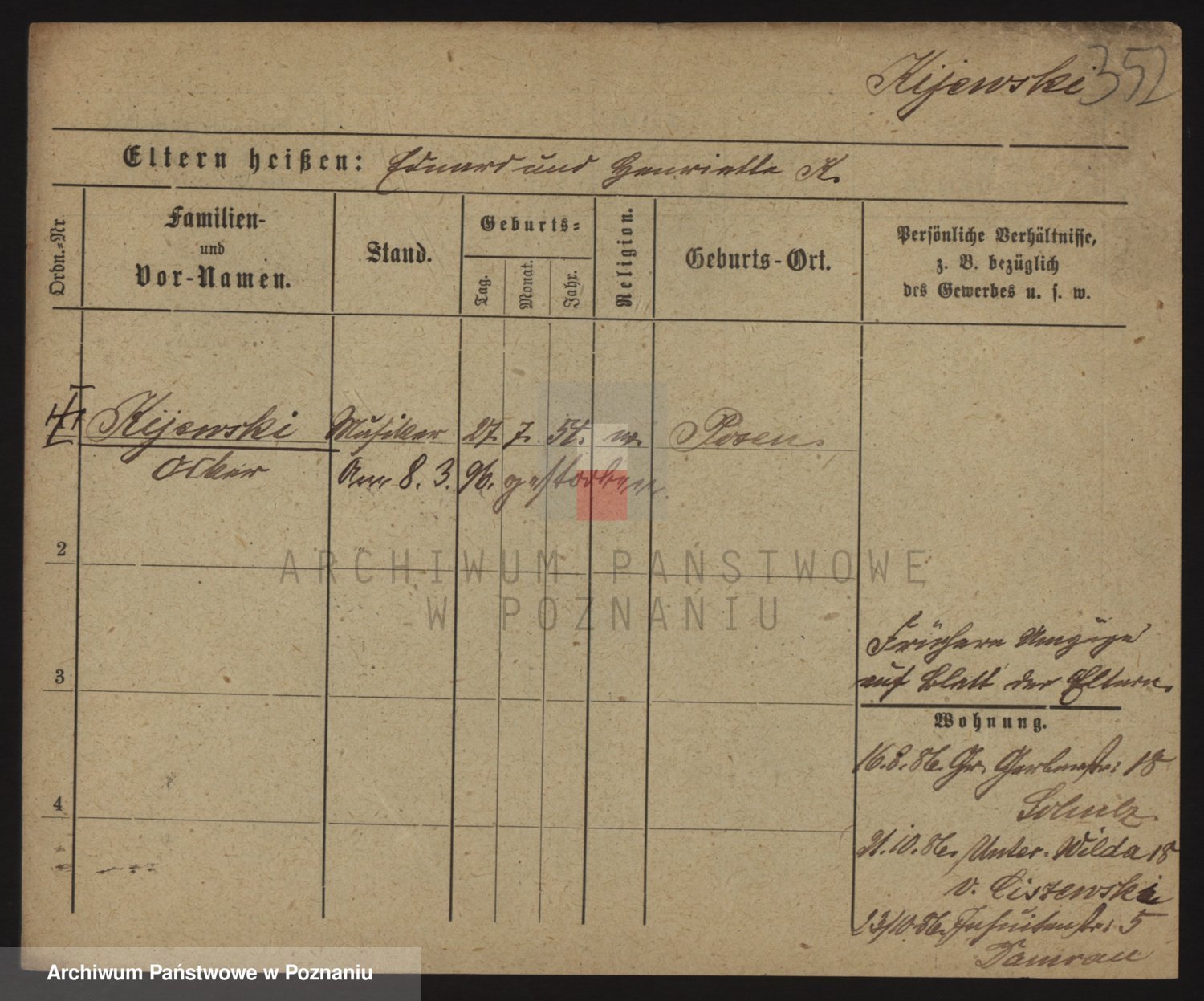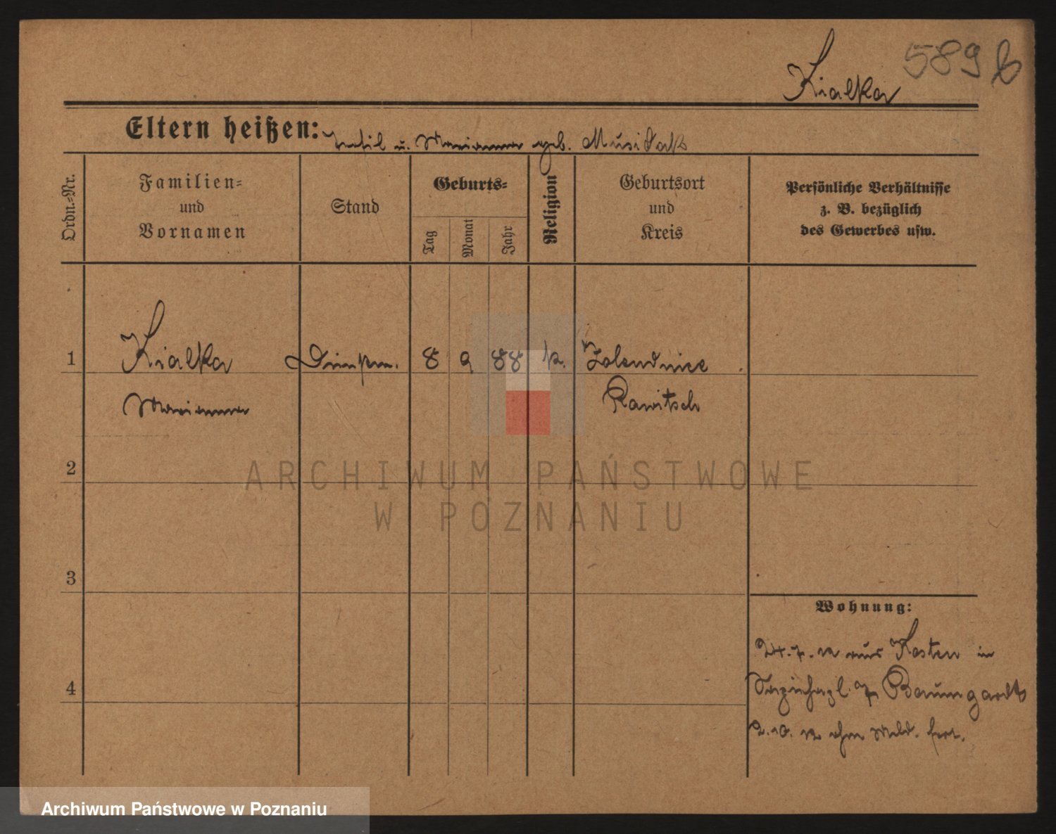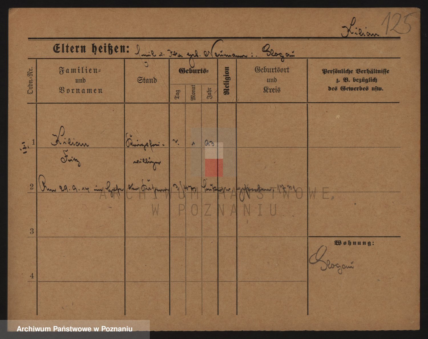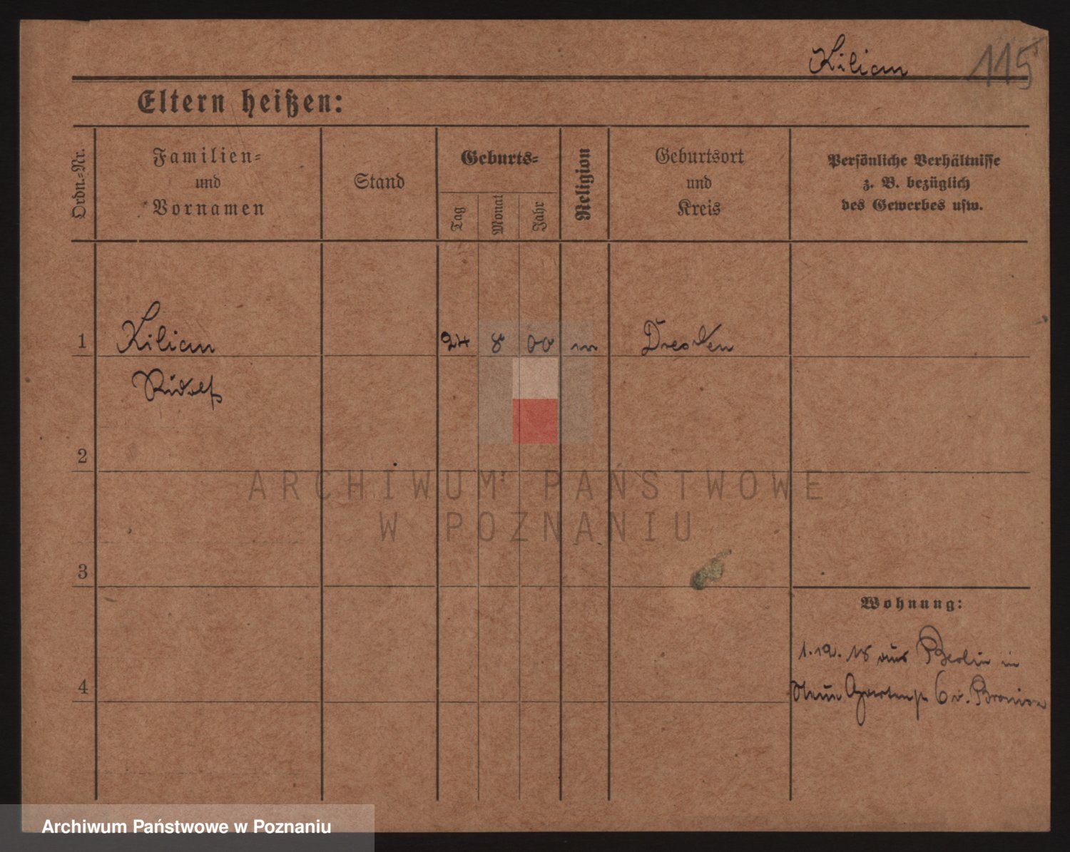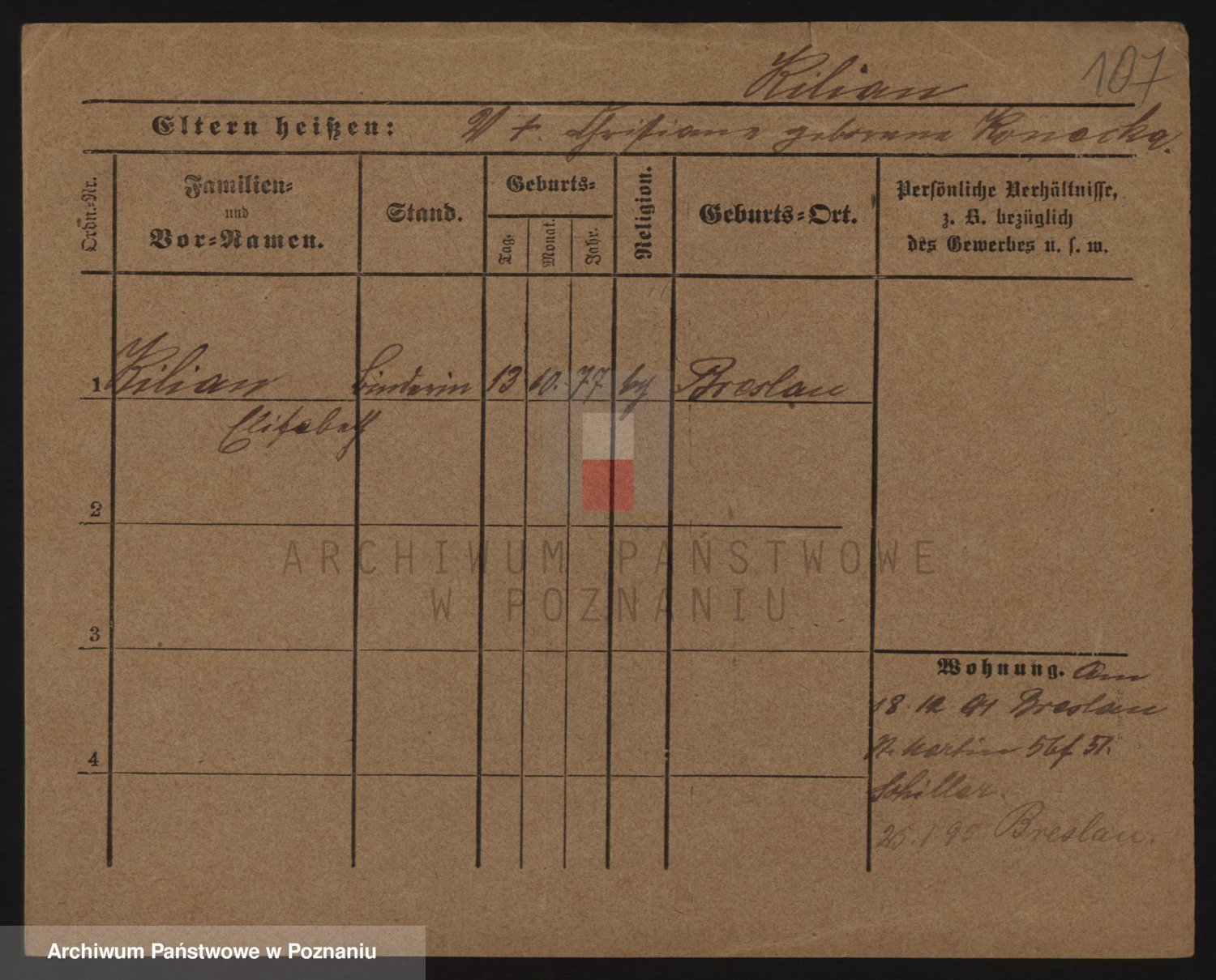 Podgląd karty osobowej dostępny jest po kliknięciu na nazwisko lub ikonkę karty. Można dokonywać powiększenia (ikony na górze) lub przechodzić między kolejnymi skanami (strzałki po bokach).
