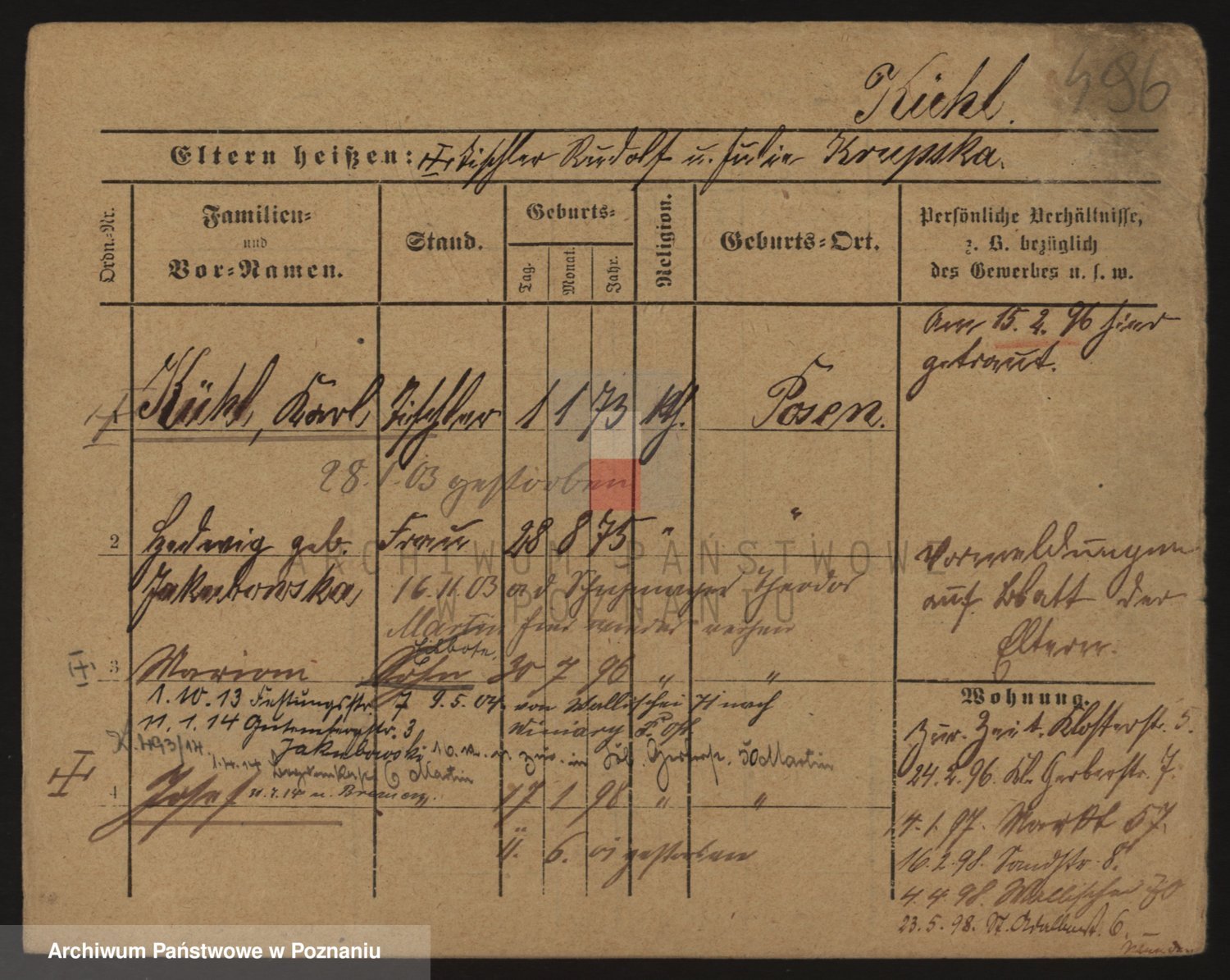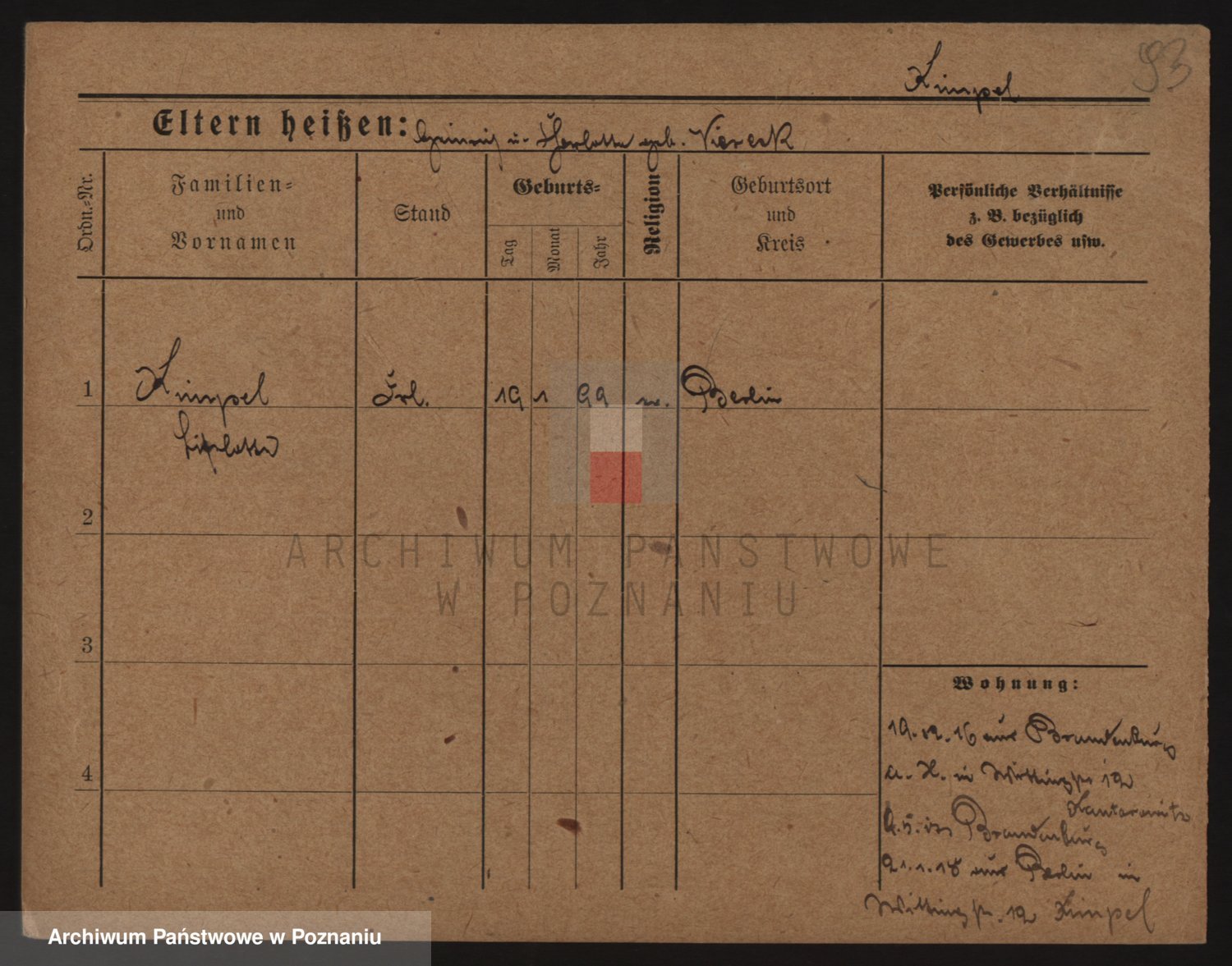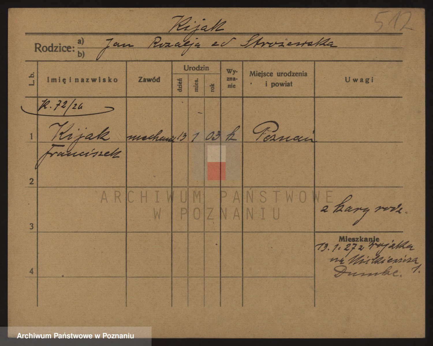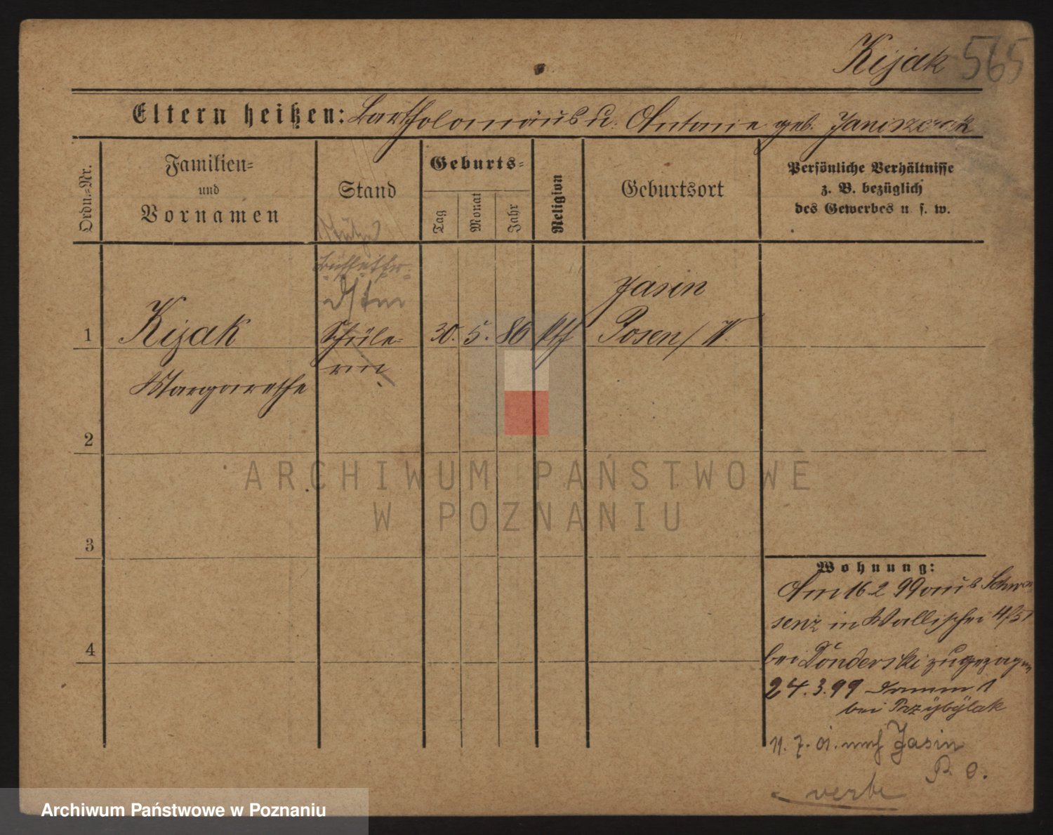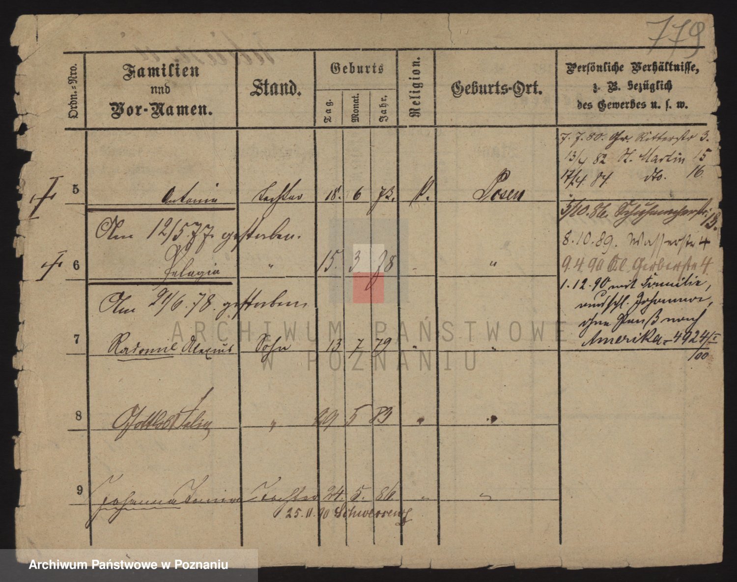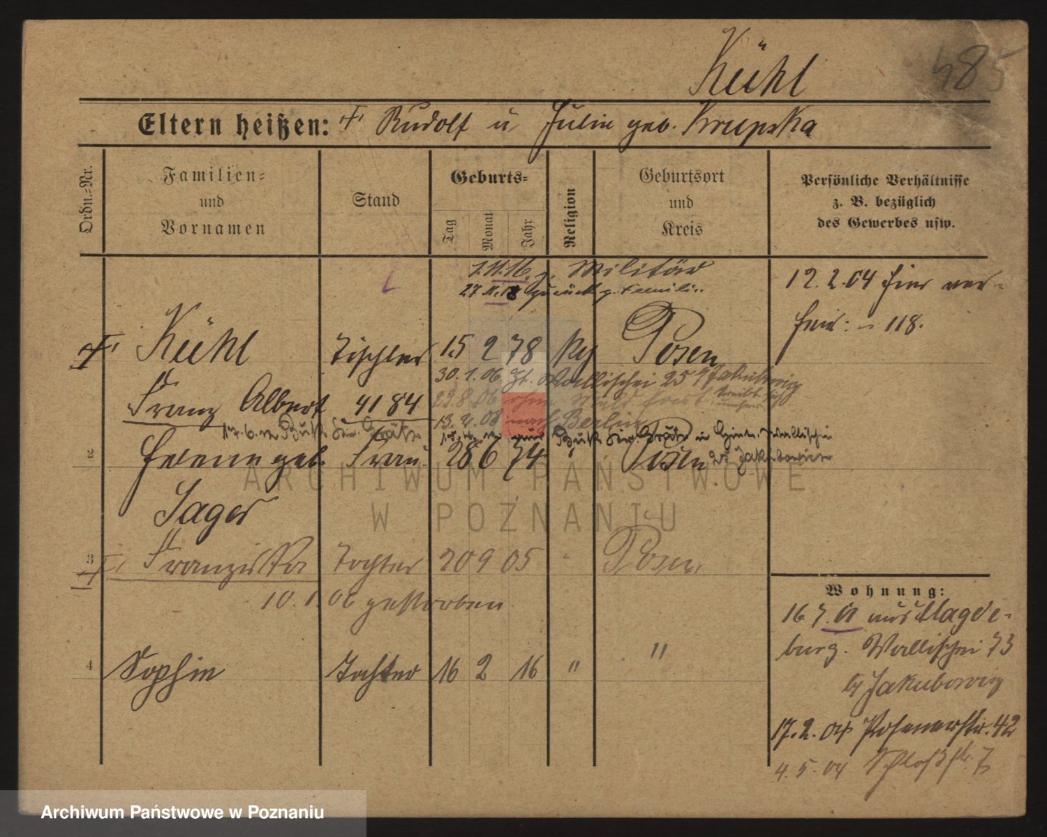 Podgląd karty osobowej dostępny jest po kliknięciu na nazwisko lub ikonkę karty. Można dokonywać powiększenia (ikony na górze) lub przechodzić między kolejnymi skanami (strzałki po bokach).