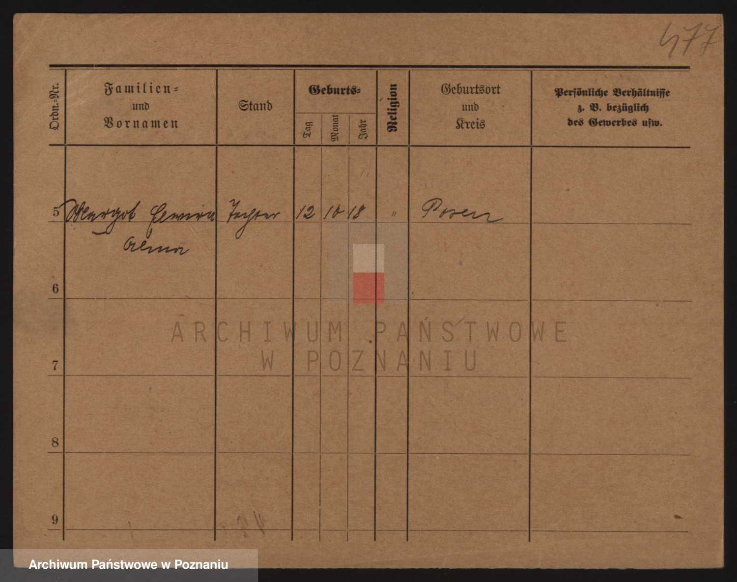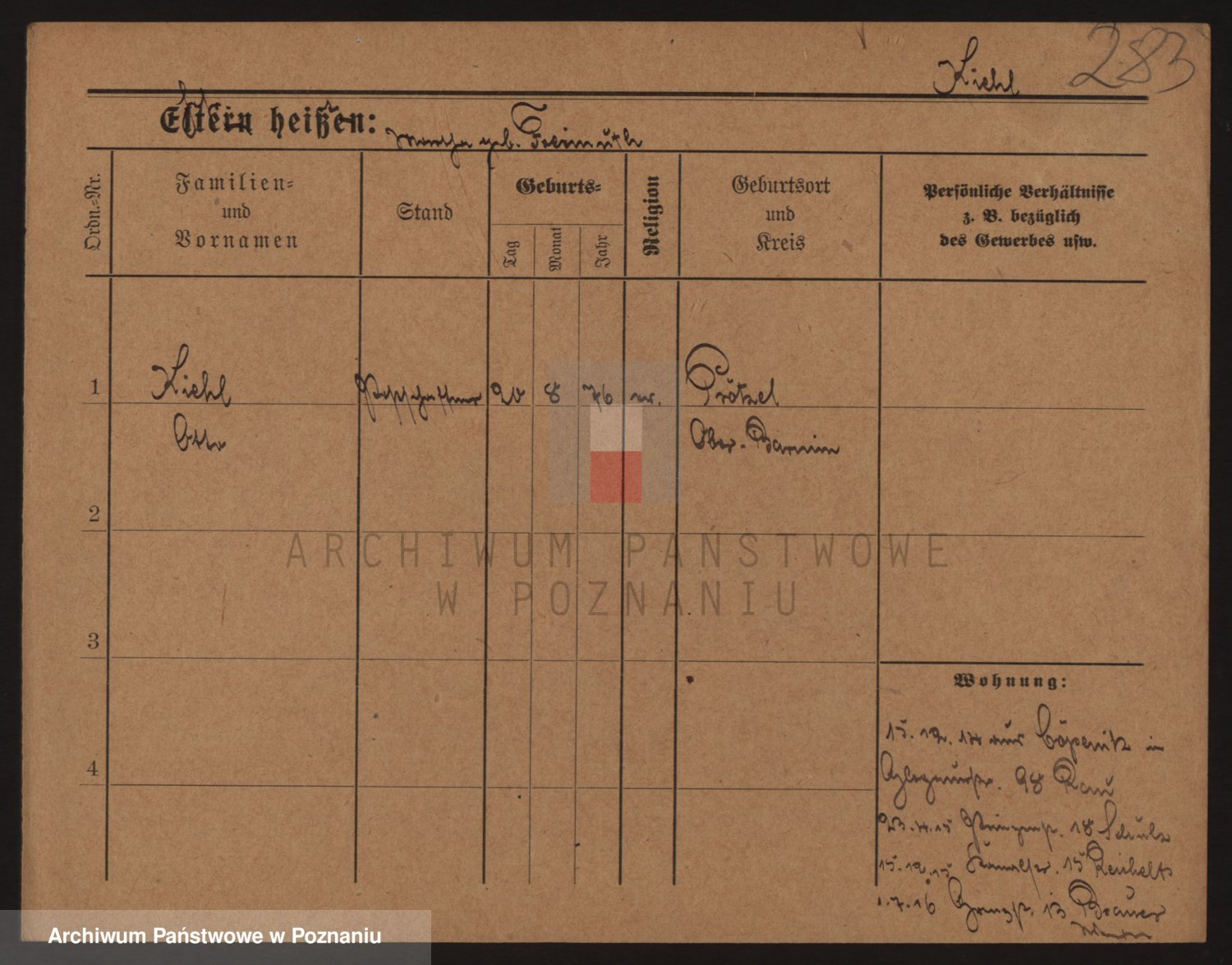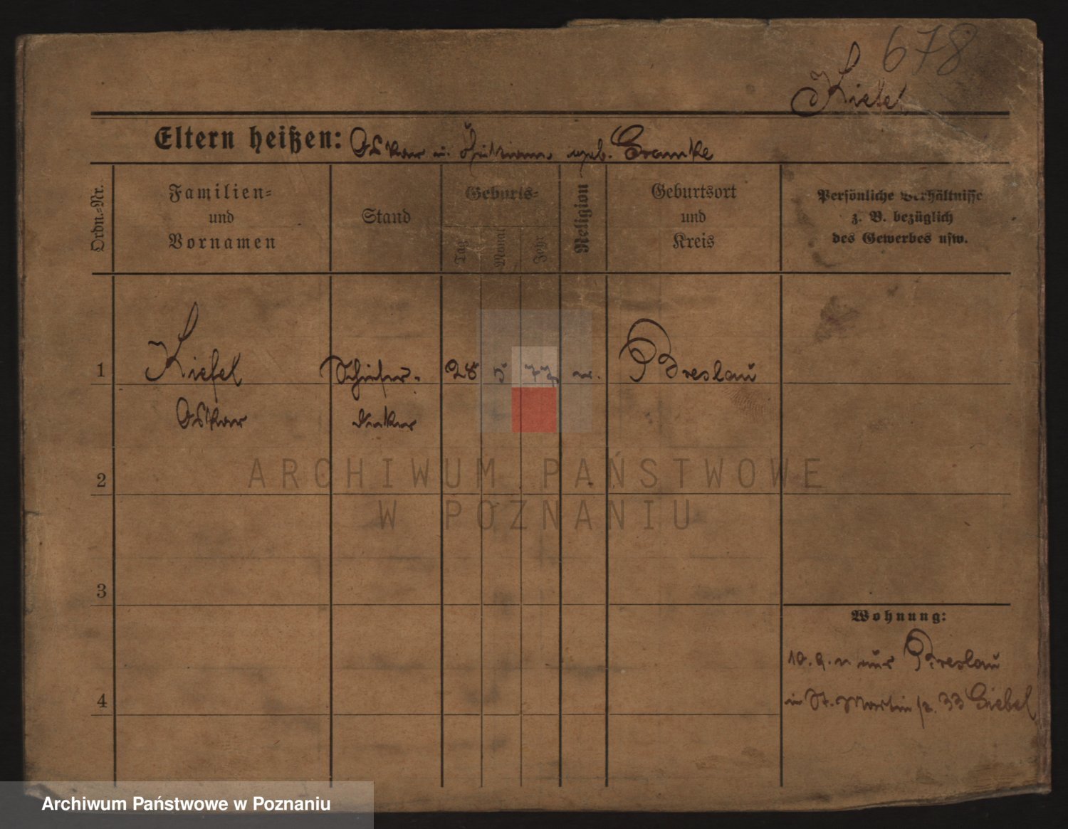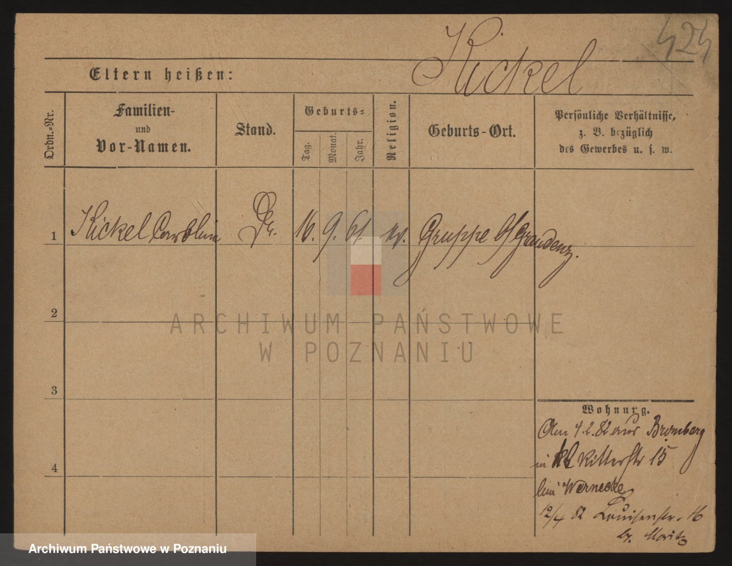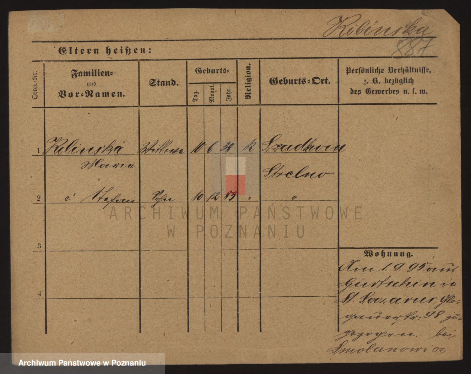 Podgląd karty osobowej dostępny jest po kliknięciu na nazwisko lub ikonkę karty. Można dokonywać powiększenia (ikony na górze) lub przechodzić między kolejnymi skanami (strzałki po bokach).