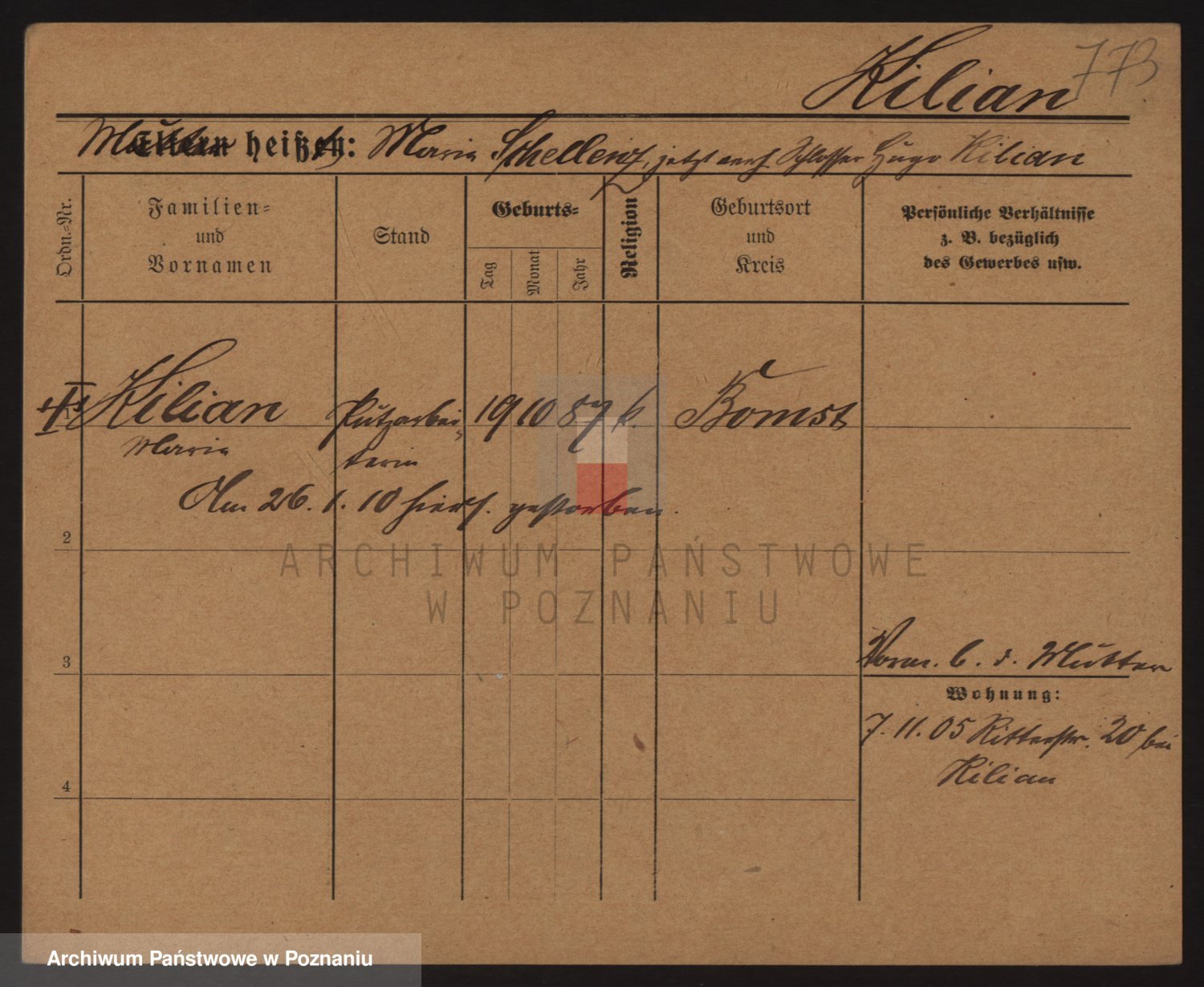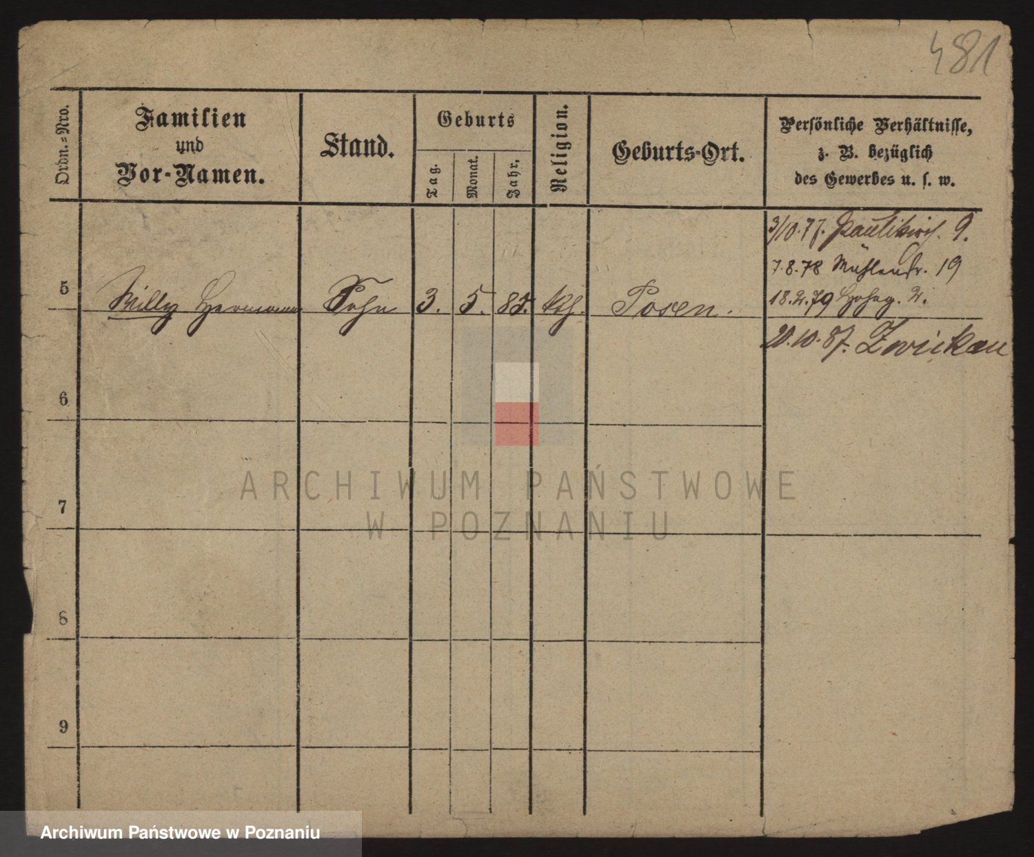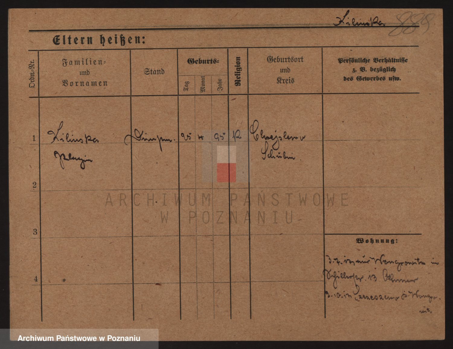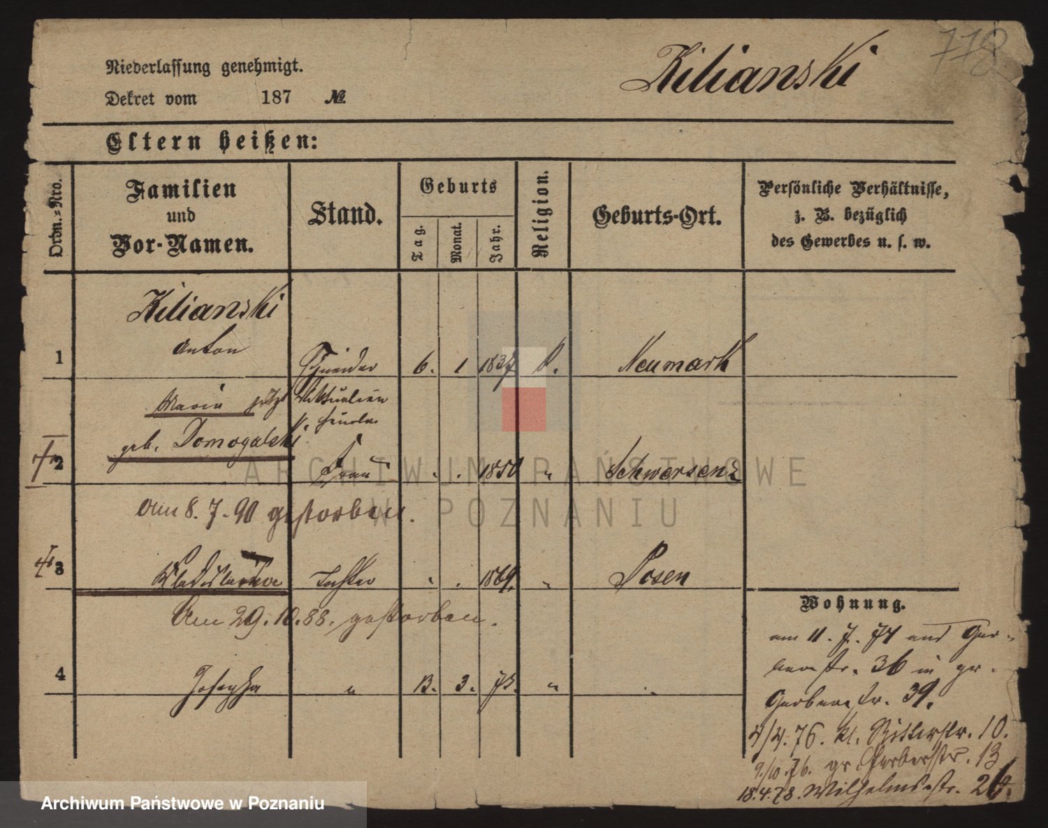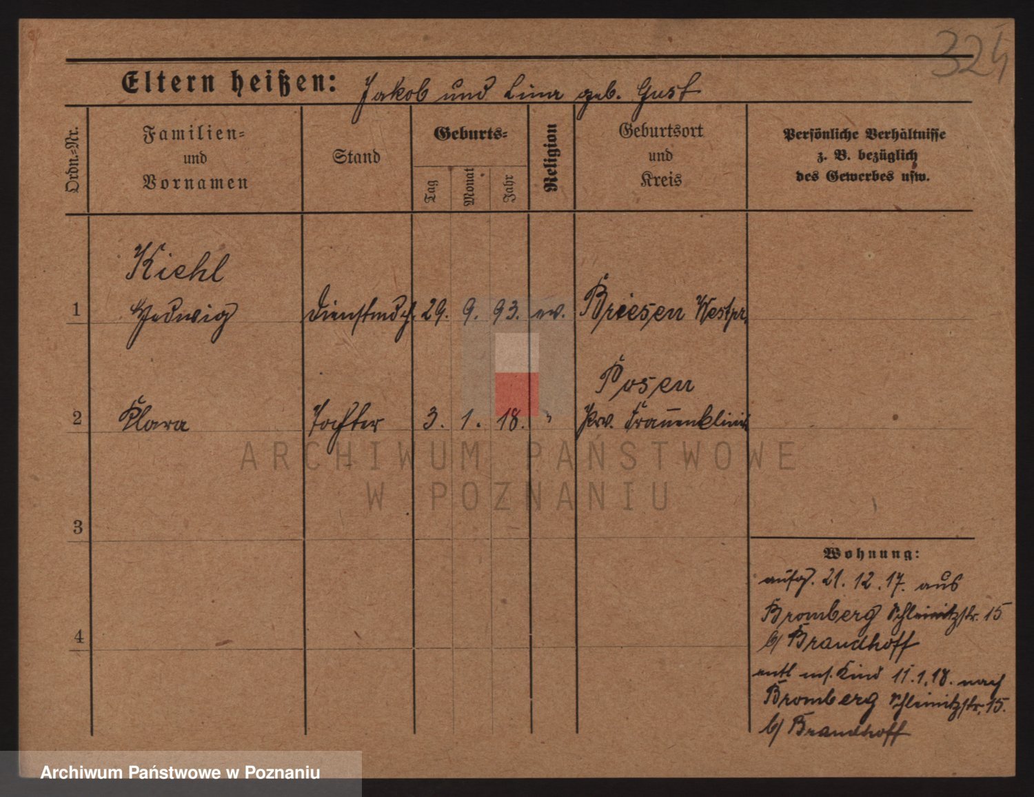 Podgląd karty osobowej dostępny jest po kliknięciu na nazwisko lub ikonkę karty. Można dokonywać powiększenia (ikony na górze) lub przechodzić między kolejnymi skanami (strzałki po bokach).