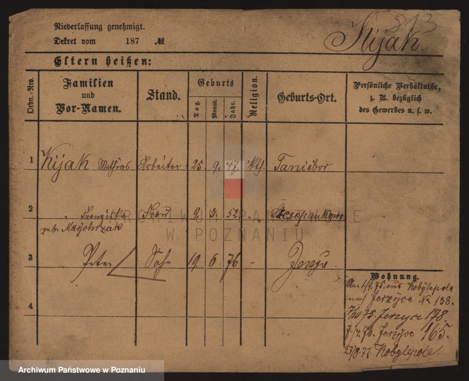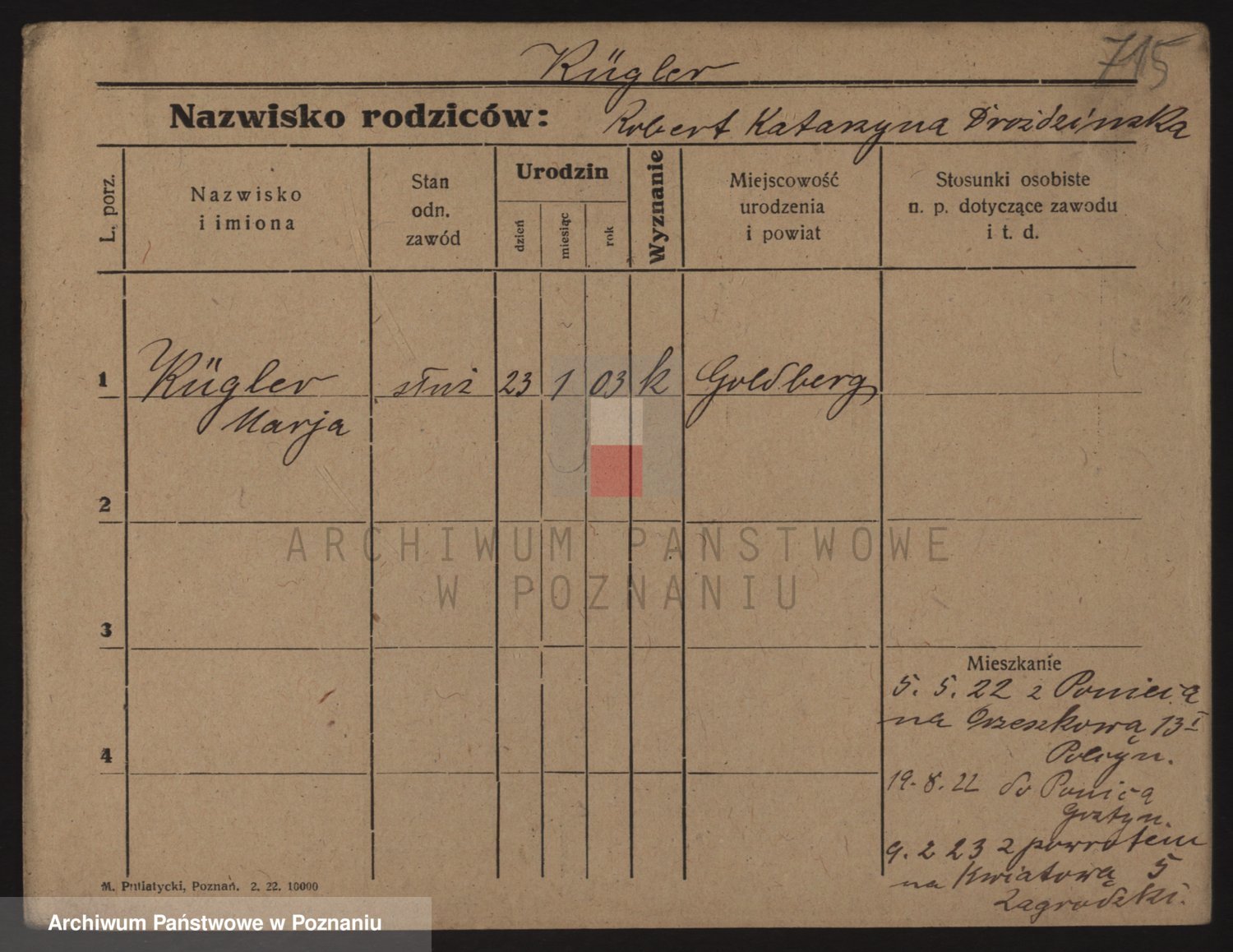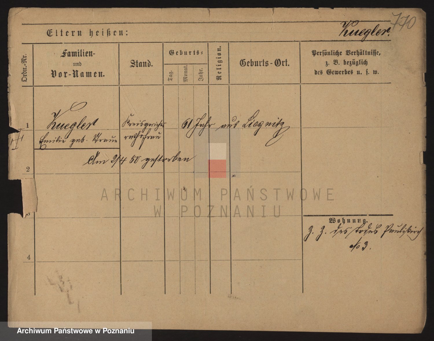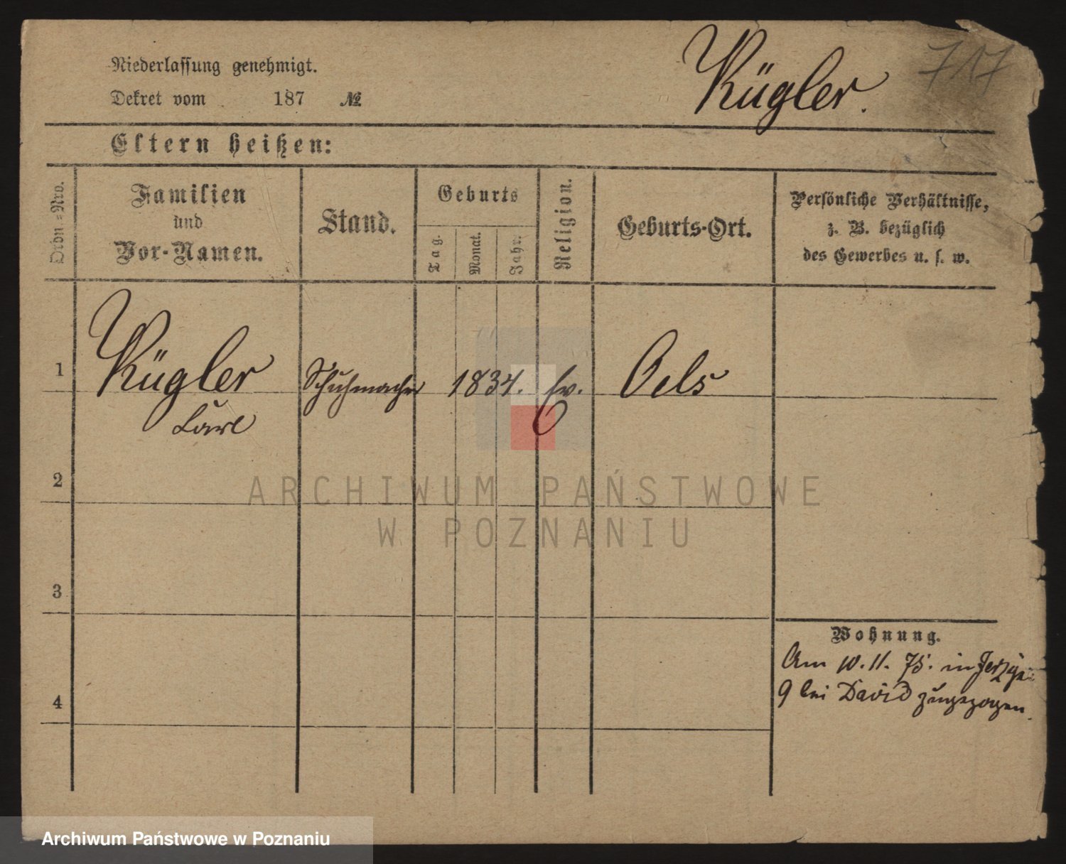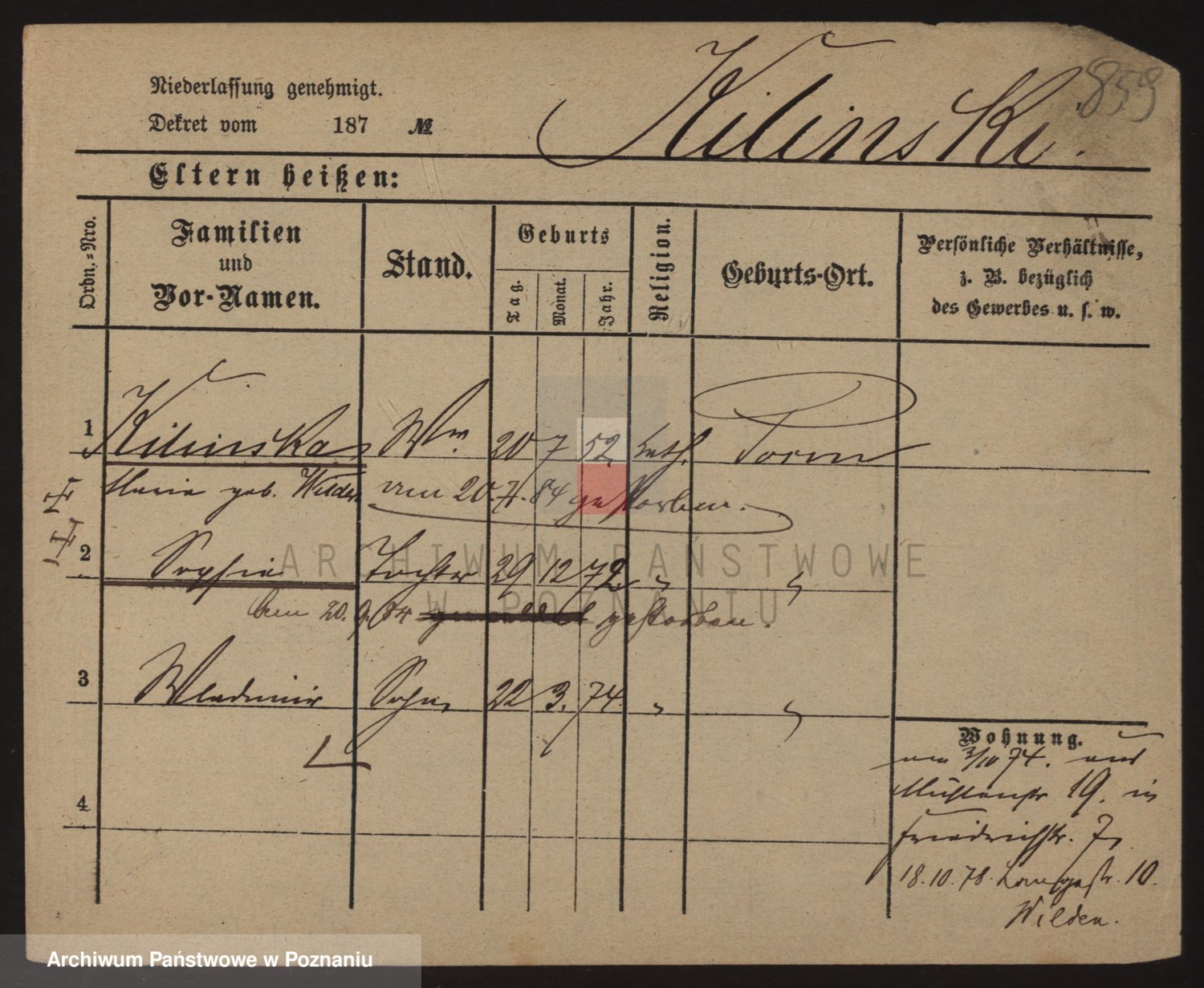 Podgląd karty osobowej dostępny jest po kliknięciu na nazwisko lub ikonkę karty. Można dokonywać powiększenia (ikony na górze) lub przechodzić między kolejnymi skanami (strzałki po bokach).