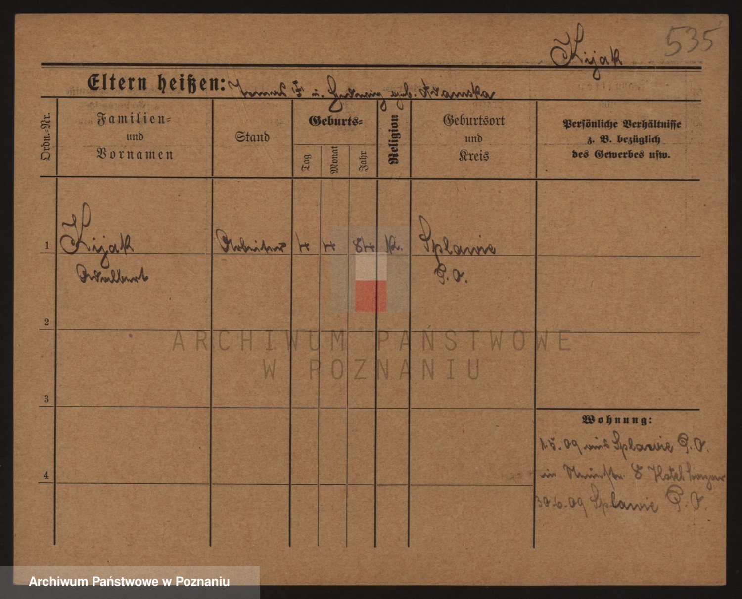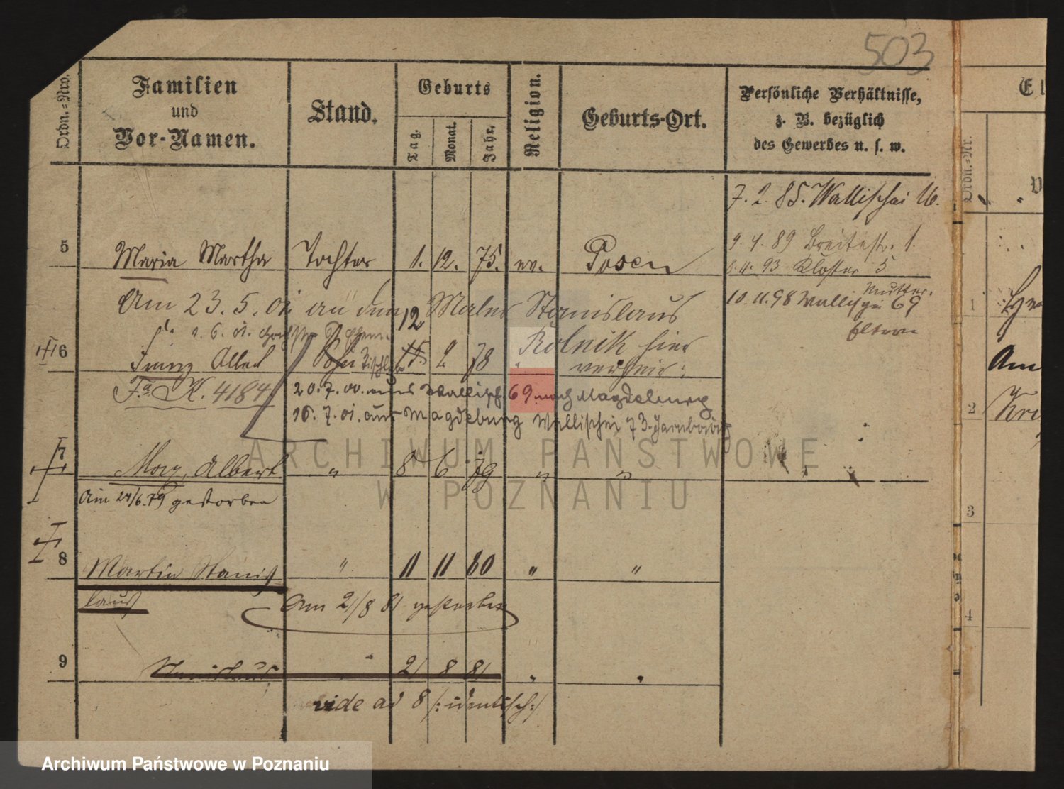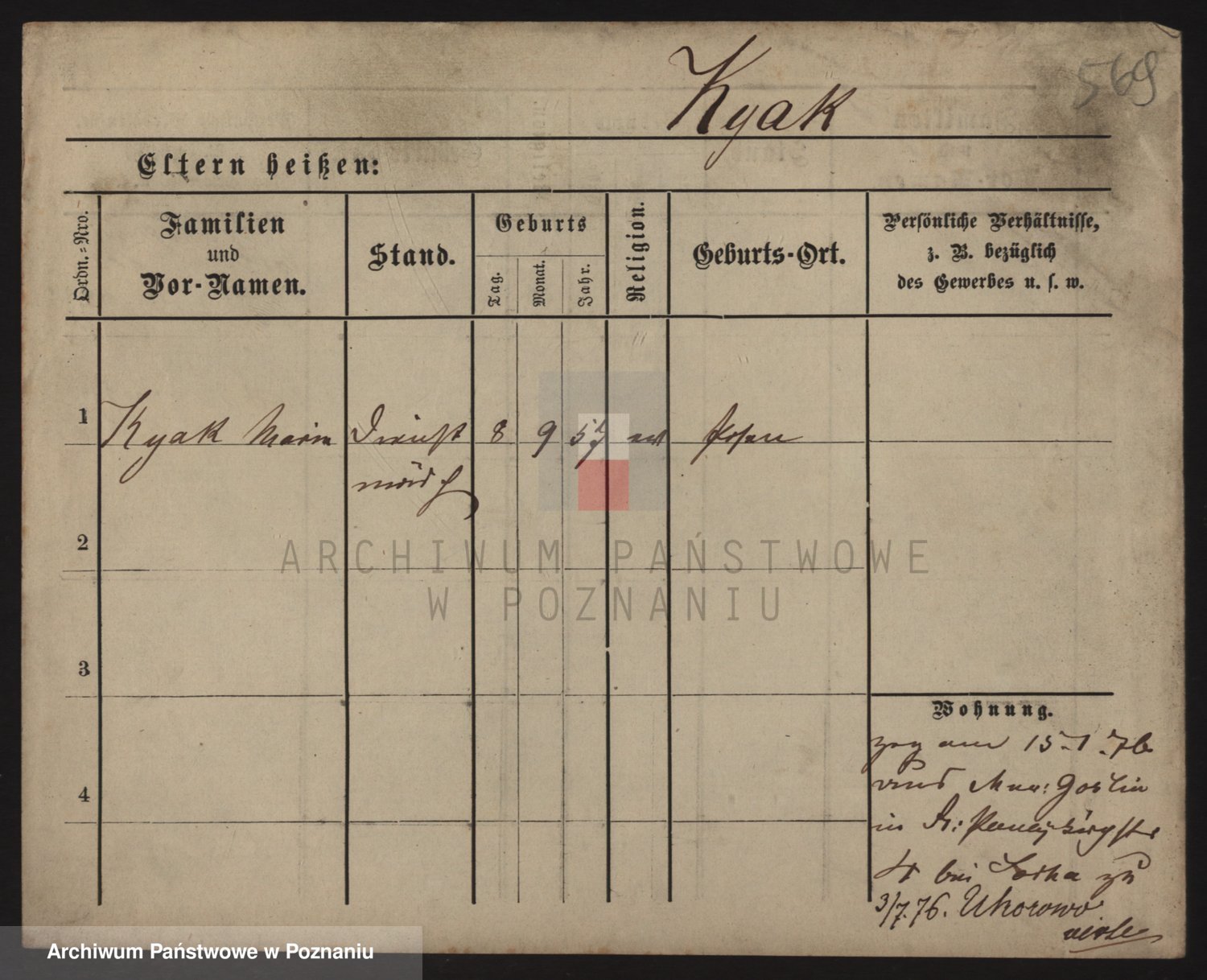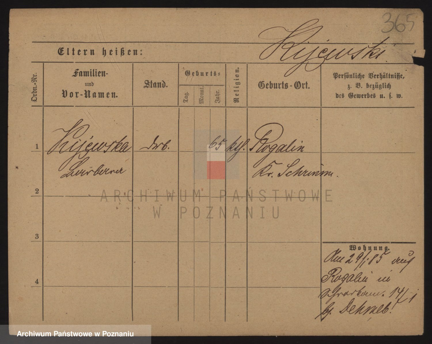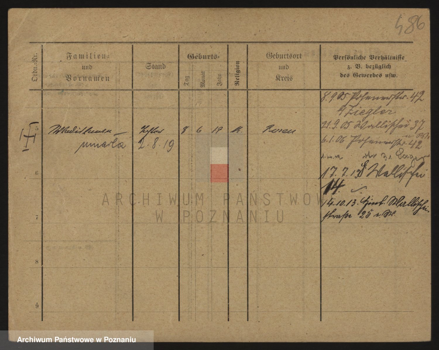 Podgląd karty osobowej dostępny jest po kliknięciu na nazwisko lub ikonkę karty. Można dokonywać powiększenia (ikony na górze) lub przechodzić między kolejnymi skanami (strzałki po bokach).