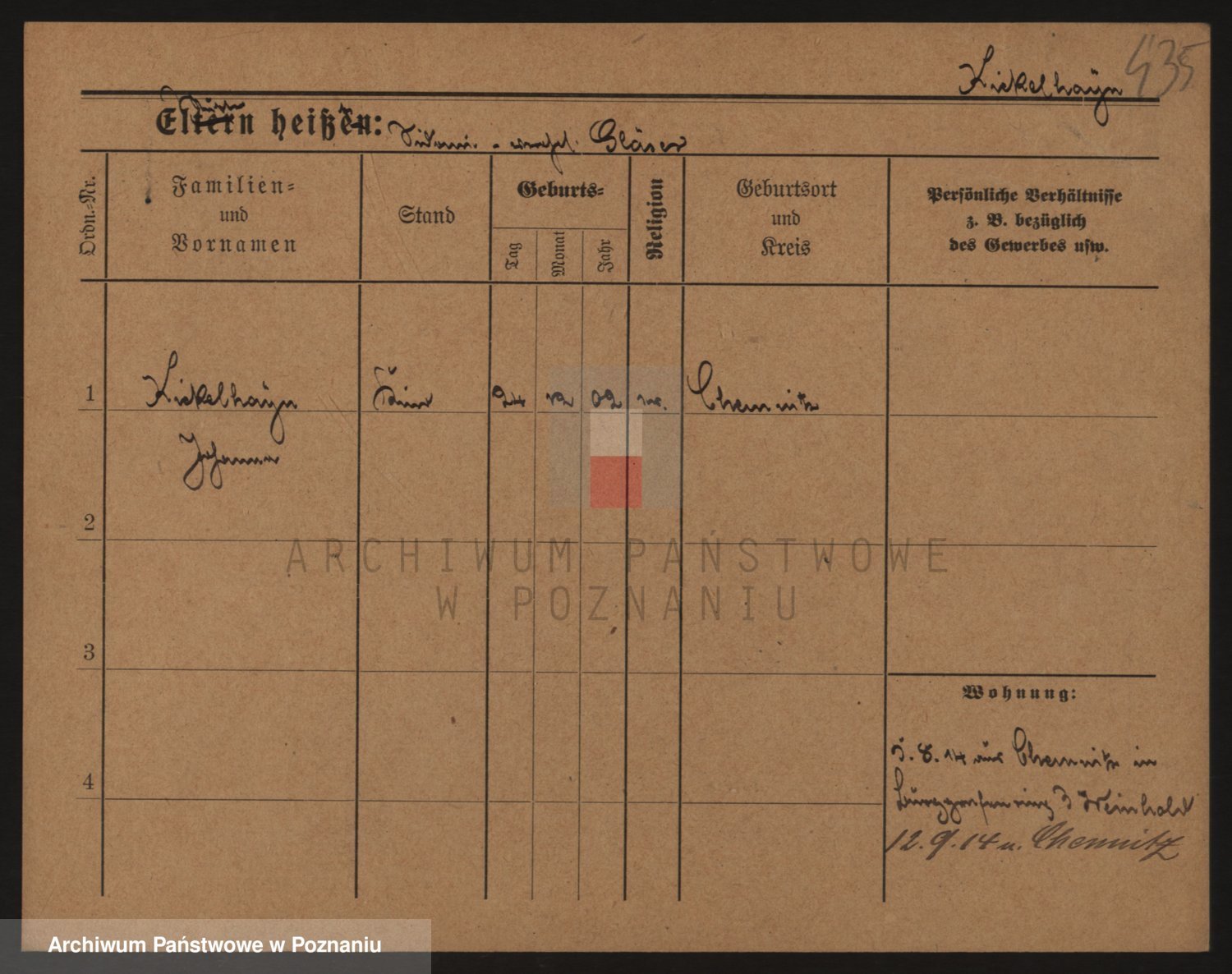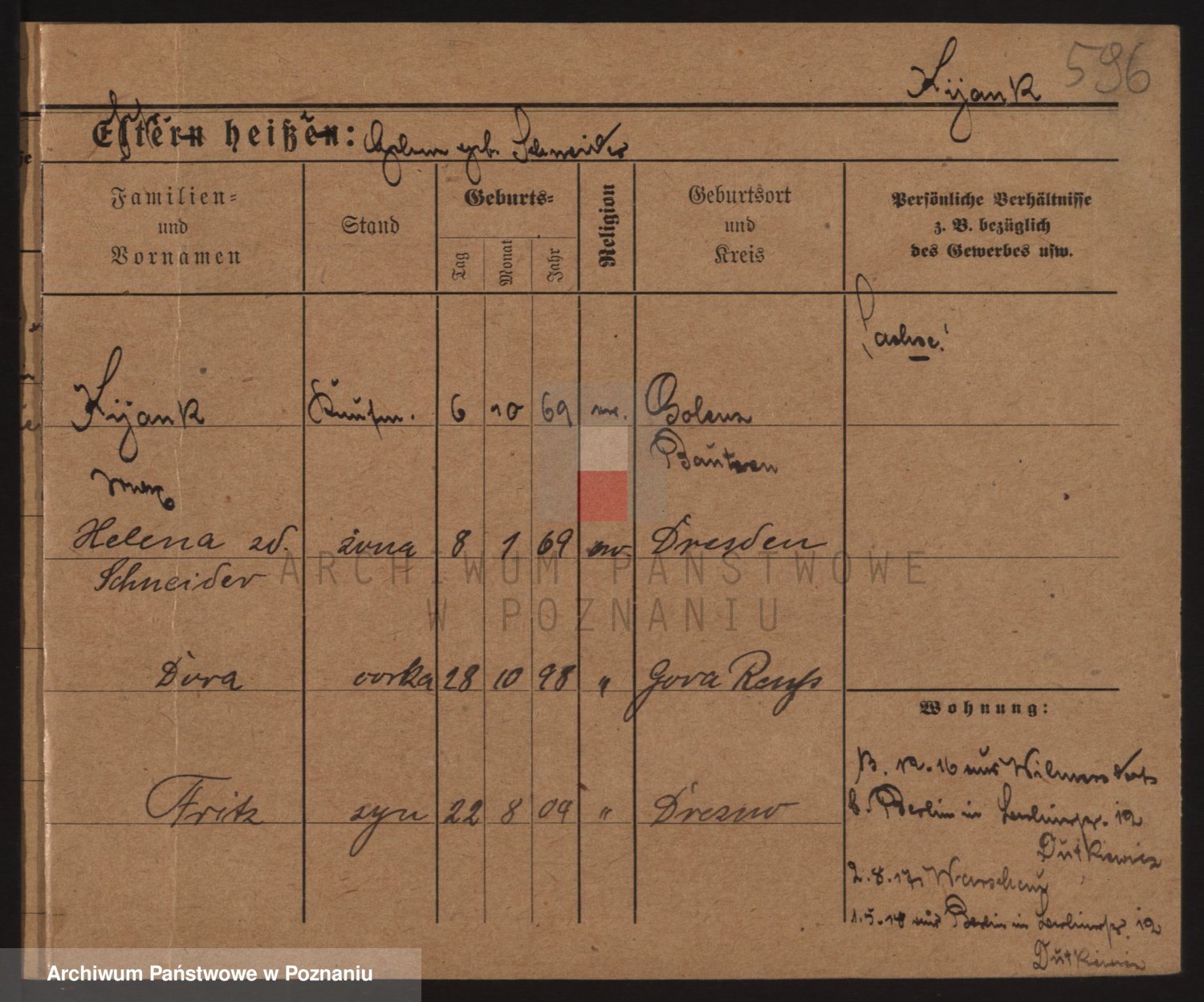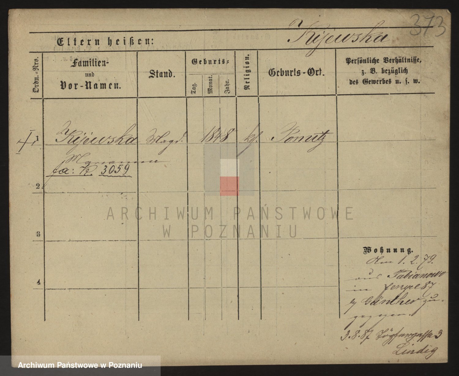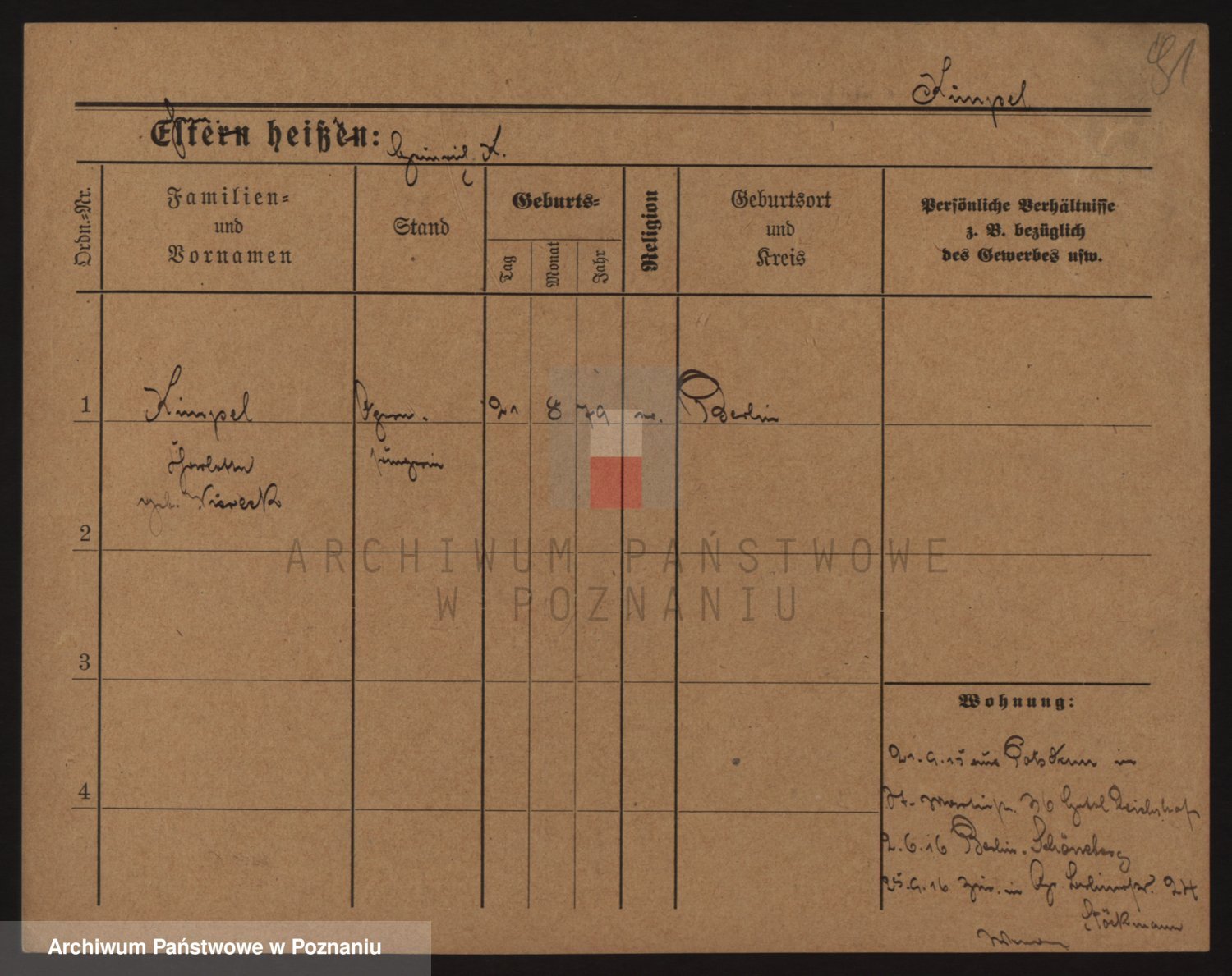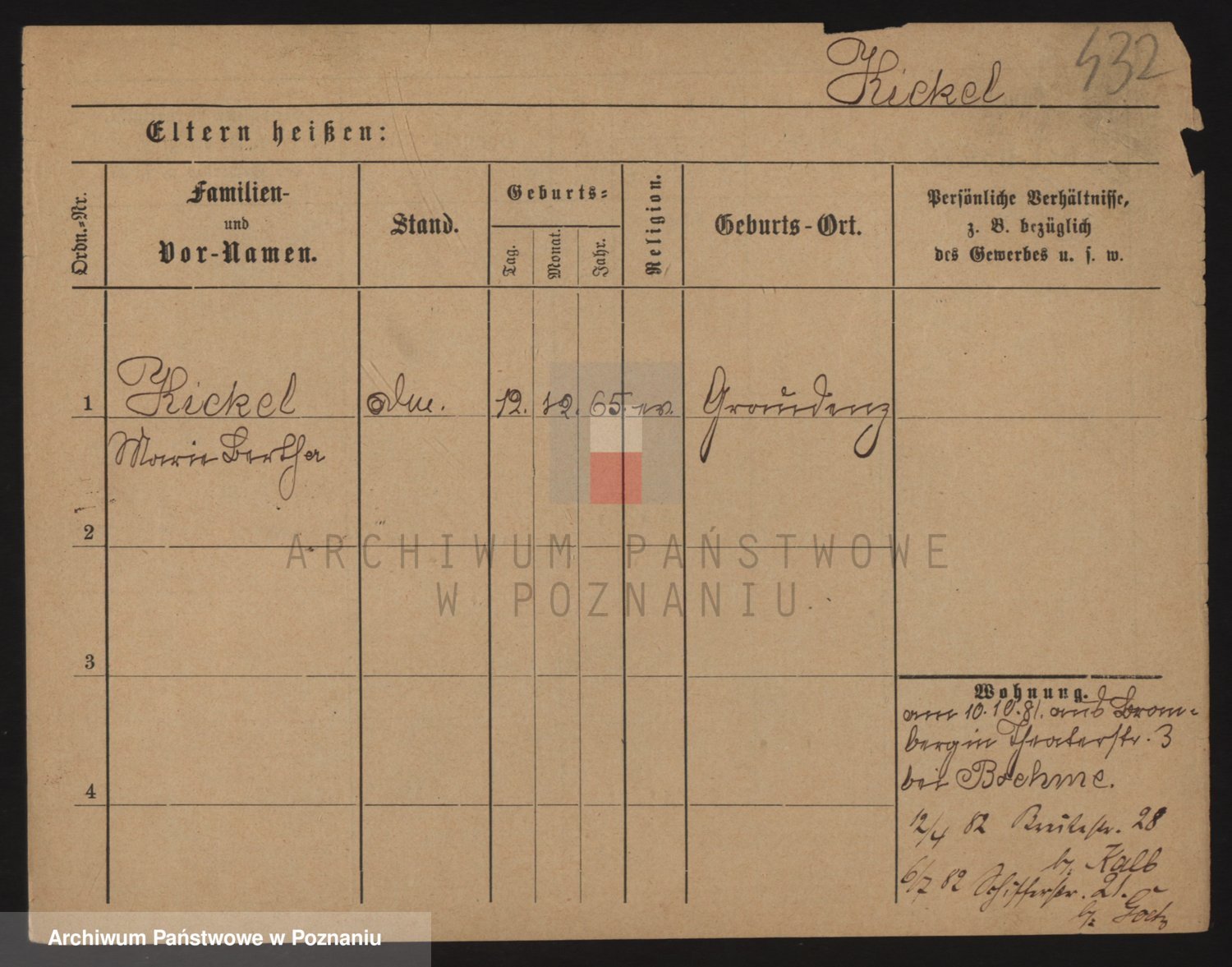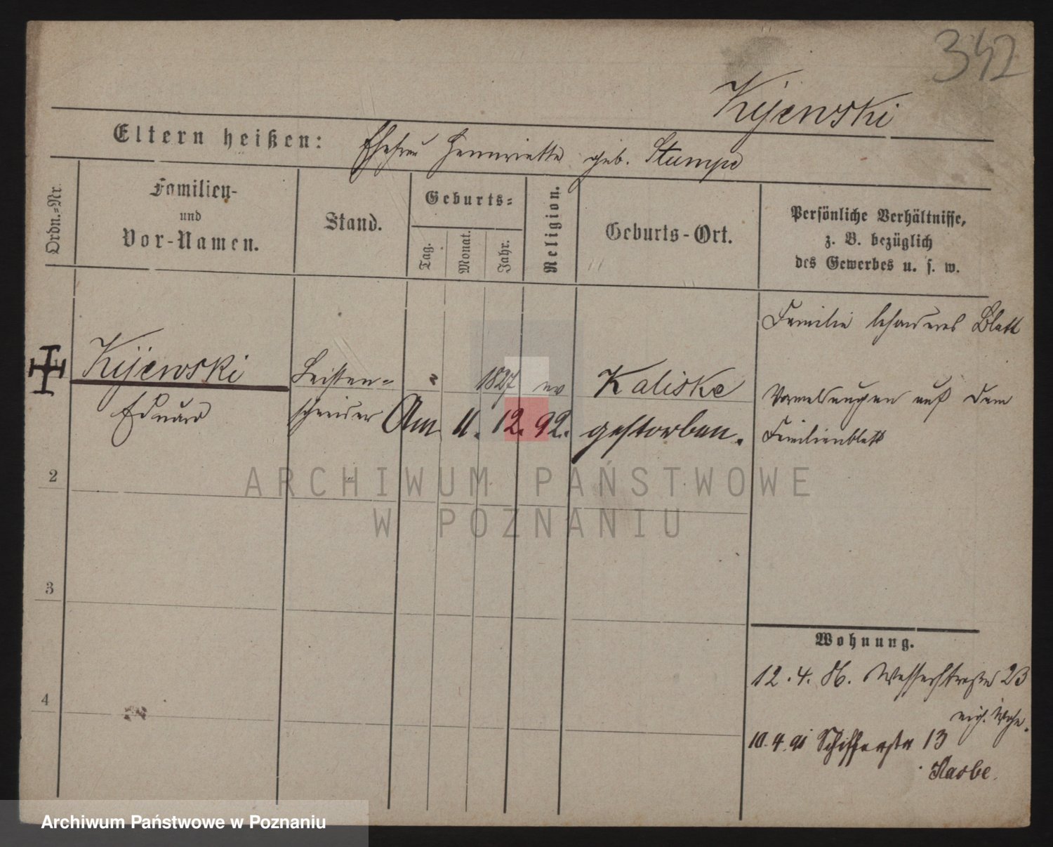 Podgląd karty osobowej dostępny jest po kliknięciu na nazwisko lub ikonkę karty. Można dokonywać powiększenia (ikony na górze) lub przechodzić między kolejnymi skanami (strzałki po bokach).