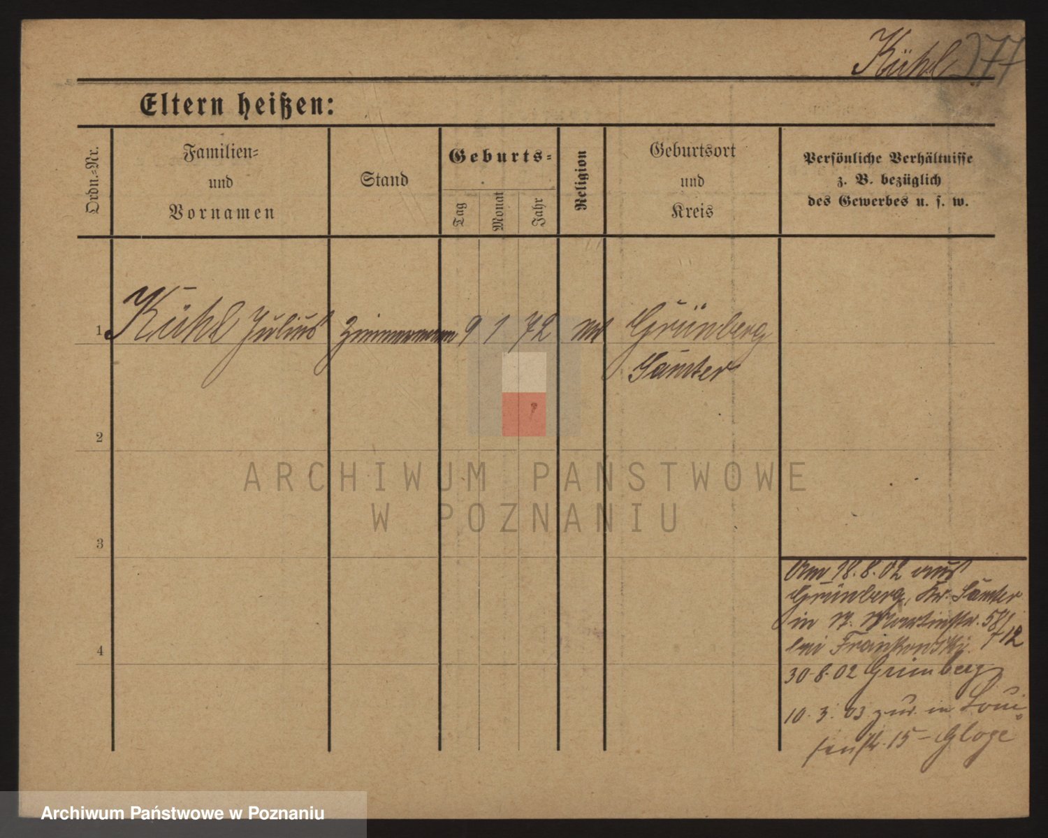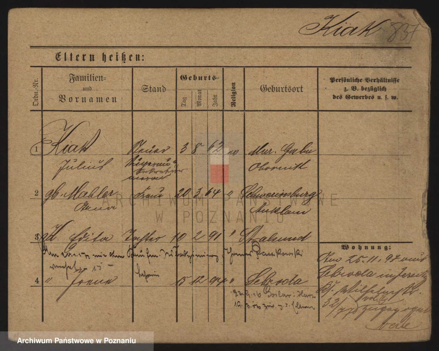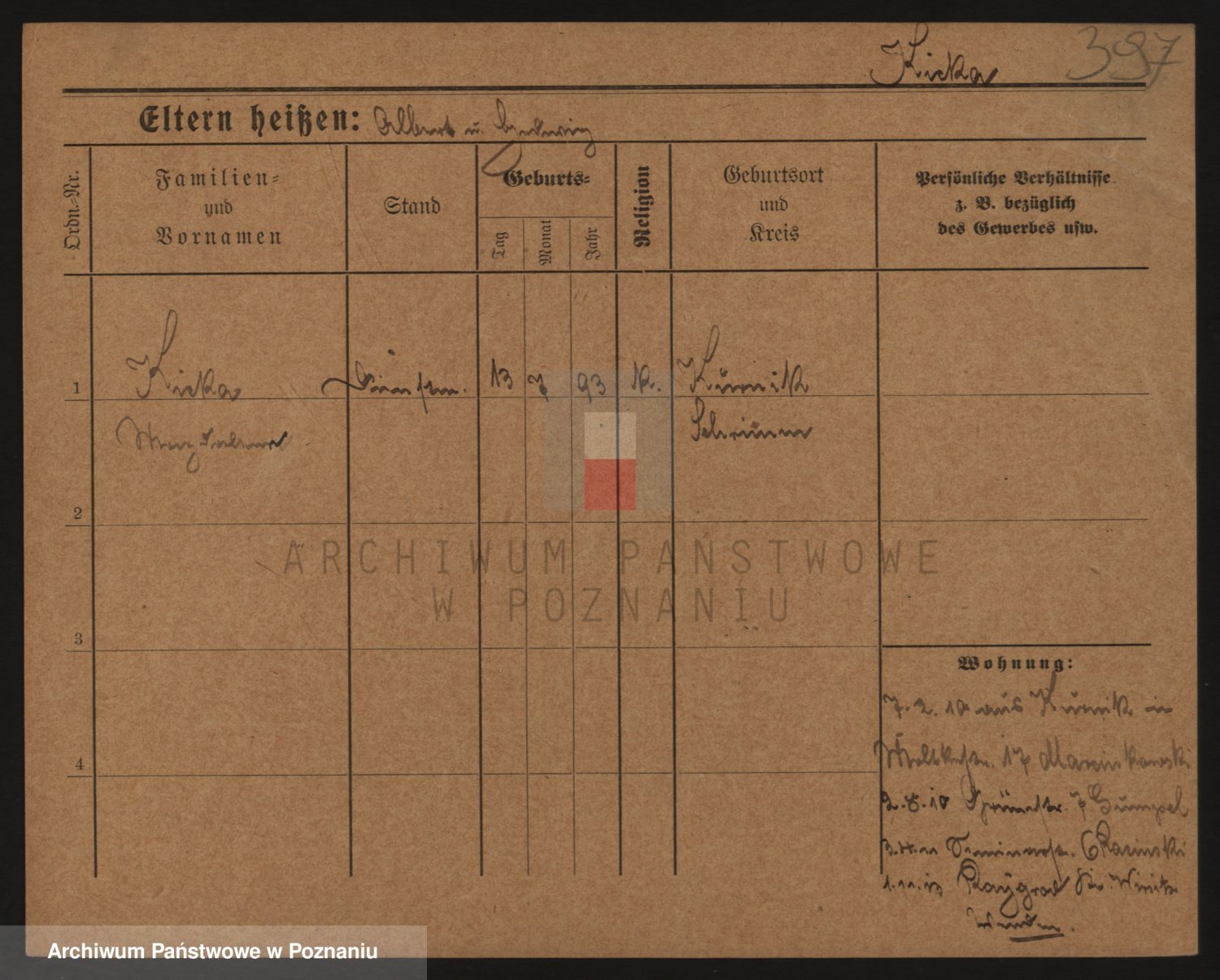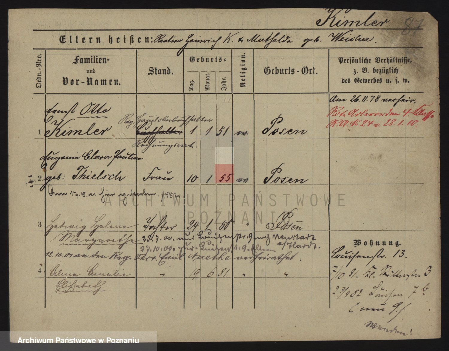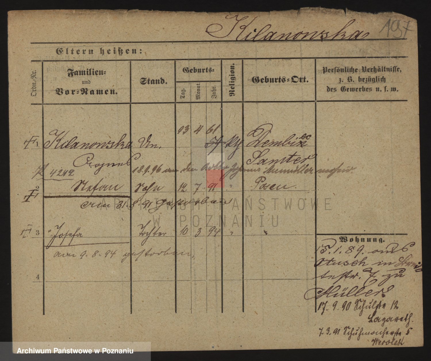 Podgląd karty osobowej dostępny jest po kliknięciu na nazwisko lub ikonkę karty. Można dokonywać powiększenia (ikony na górze) lub przechodzić między kolejnymi skanami (strzałki po bokach).