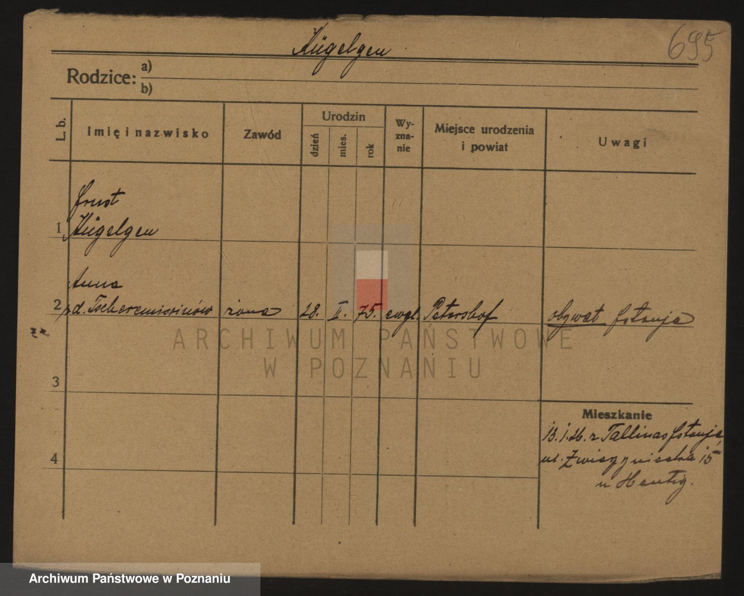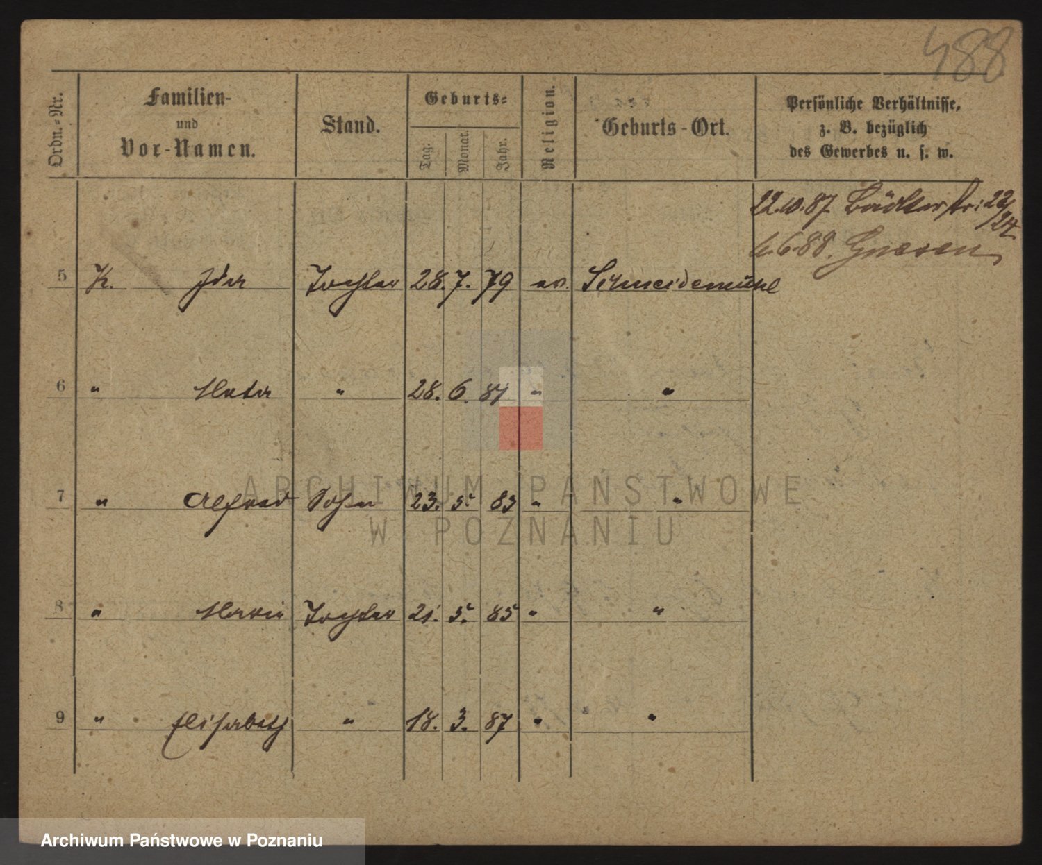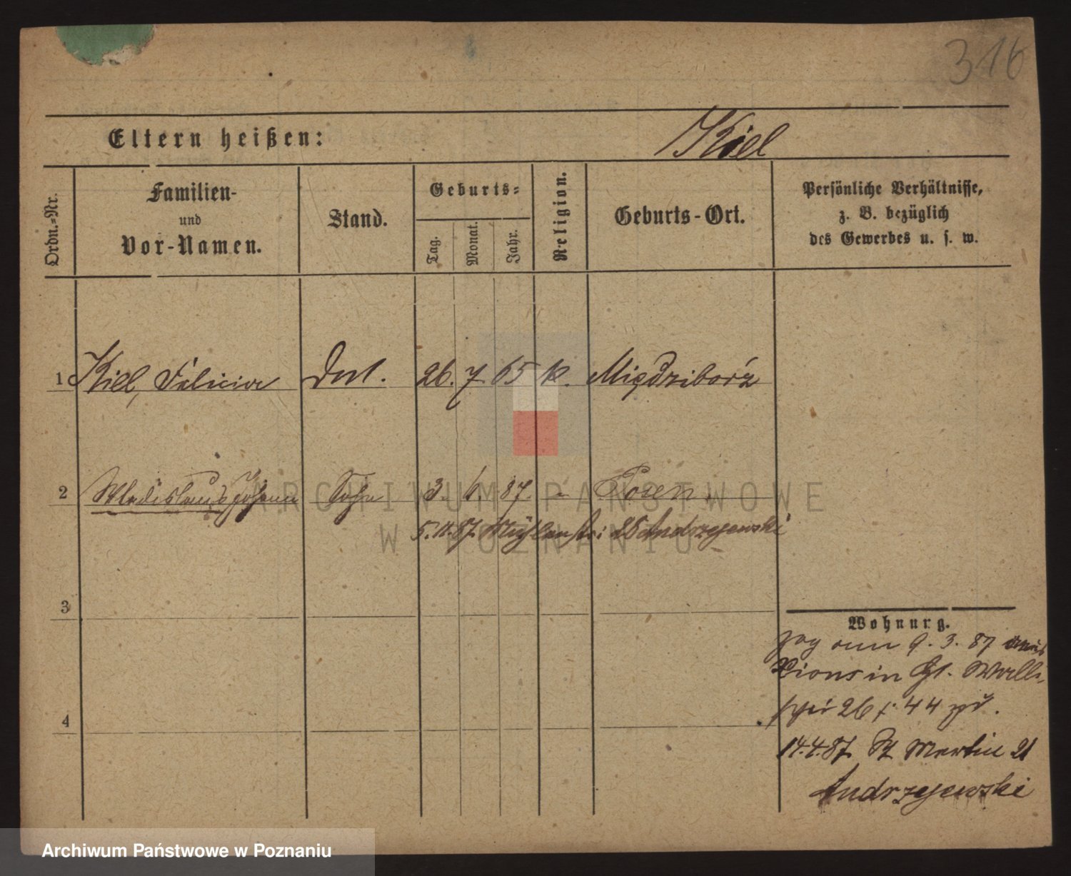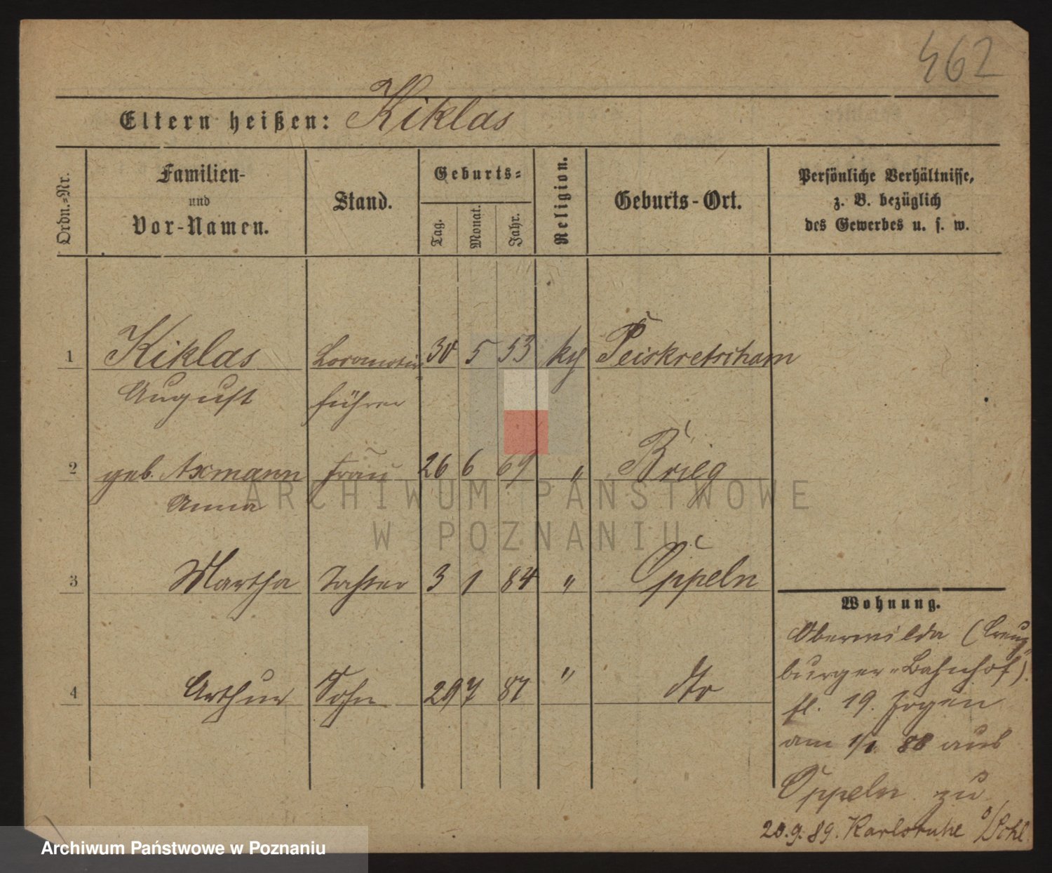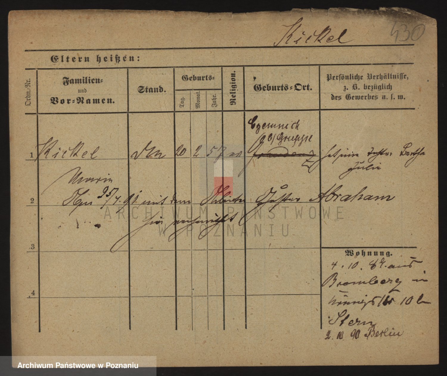 Podgląd karty osobowej dostępny jest po kliknięciu na nazwisko lub ikonkę karty. Można dokonywać powiększenia (ikony na górze) lub przechodzić między kolejnymi skanami (strzałki po bokach).